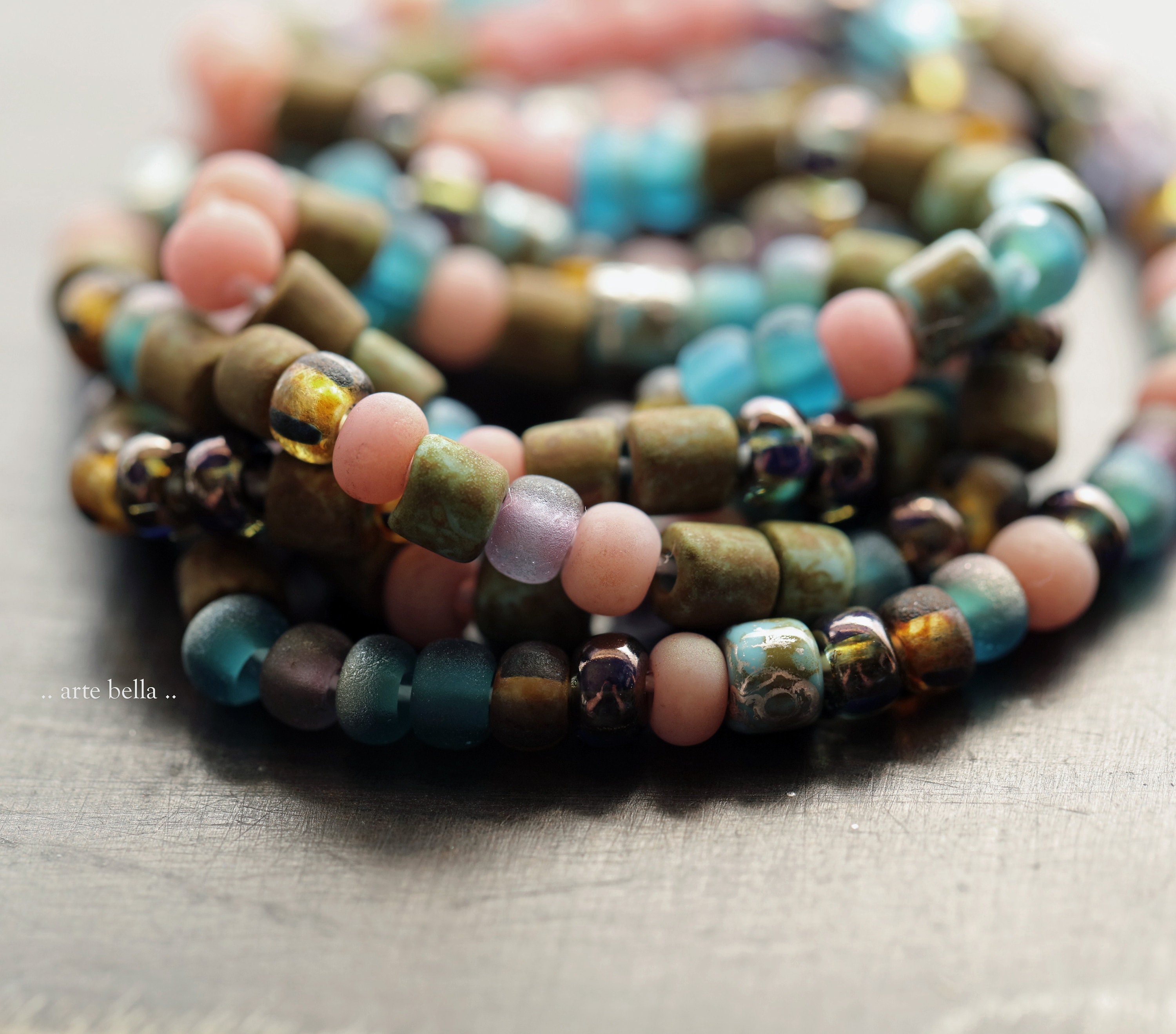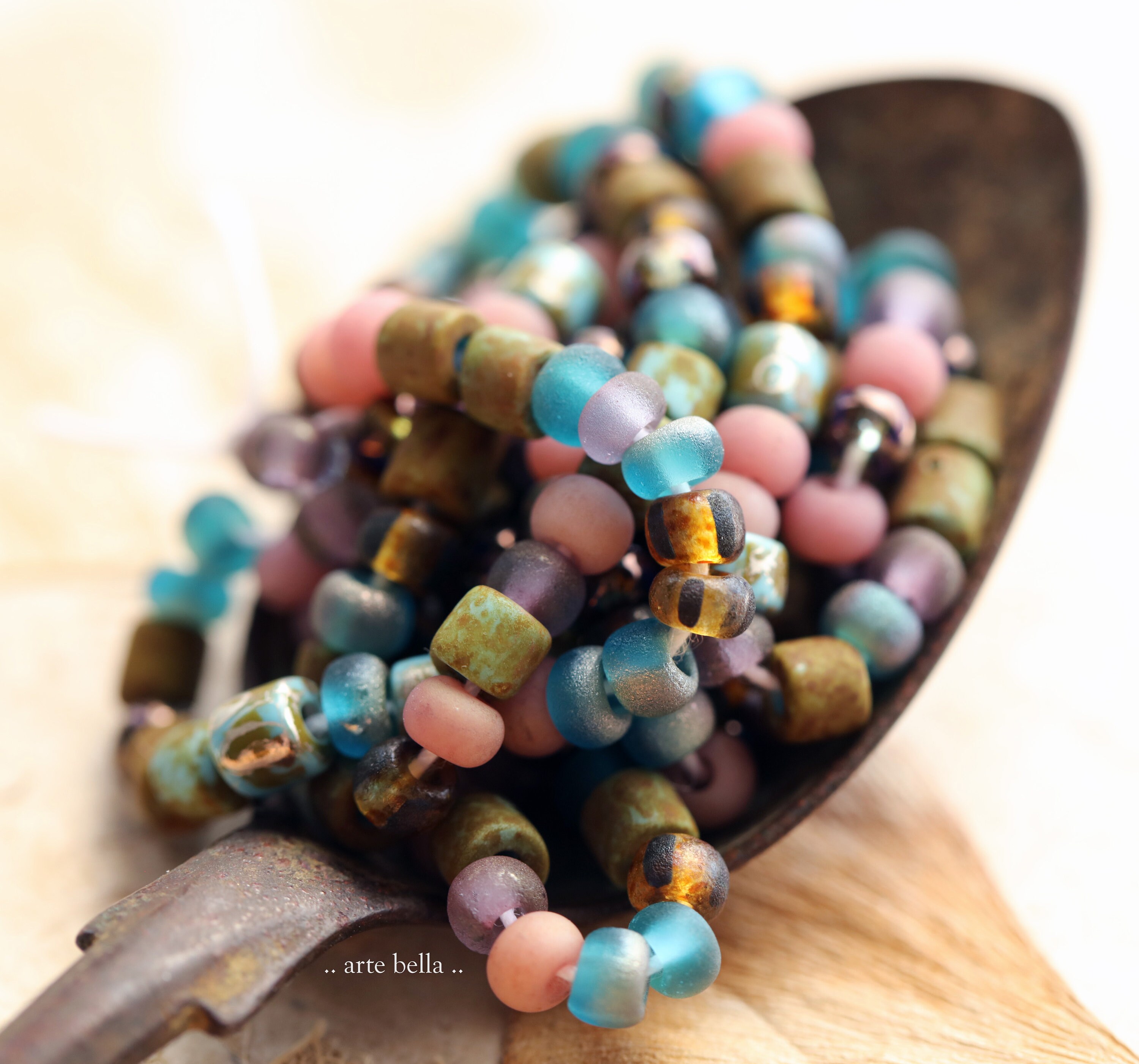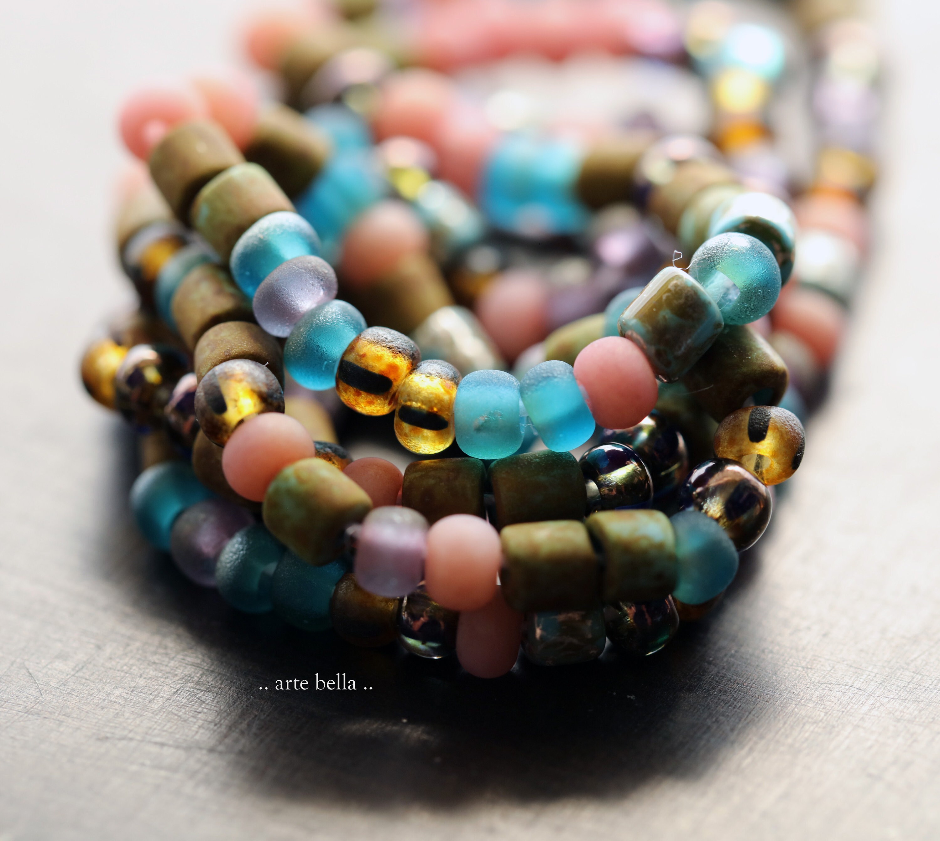 MATTE JUBILEE SEED Mix .. 20" Premium Picasso Czech Glass Aged Striped Seed Tube Bead Mix Size 6/0 (9029-st)