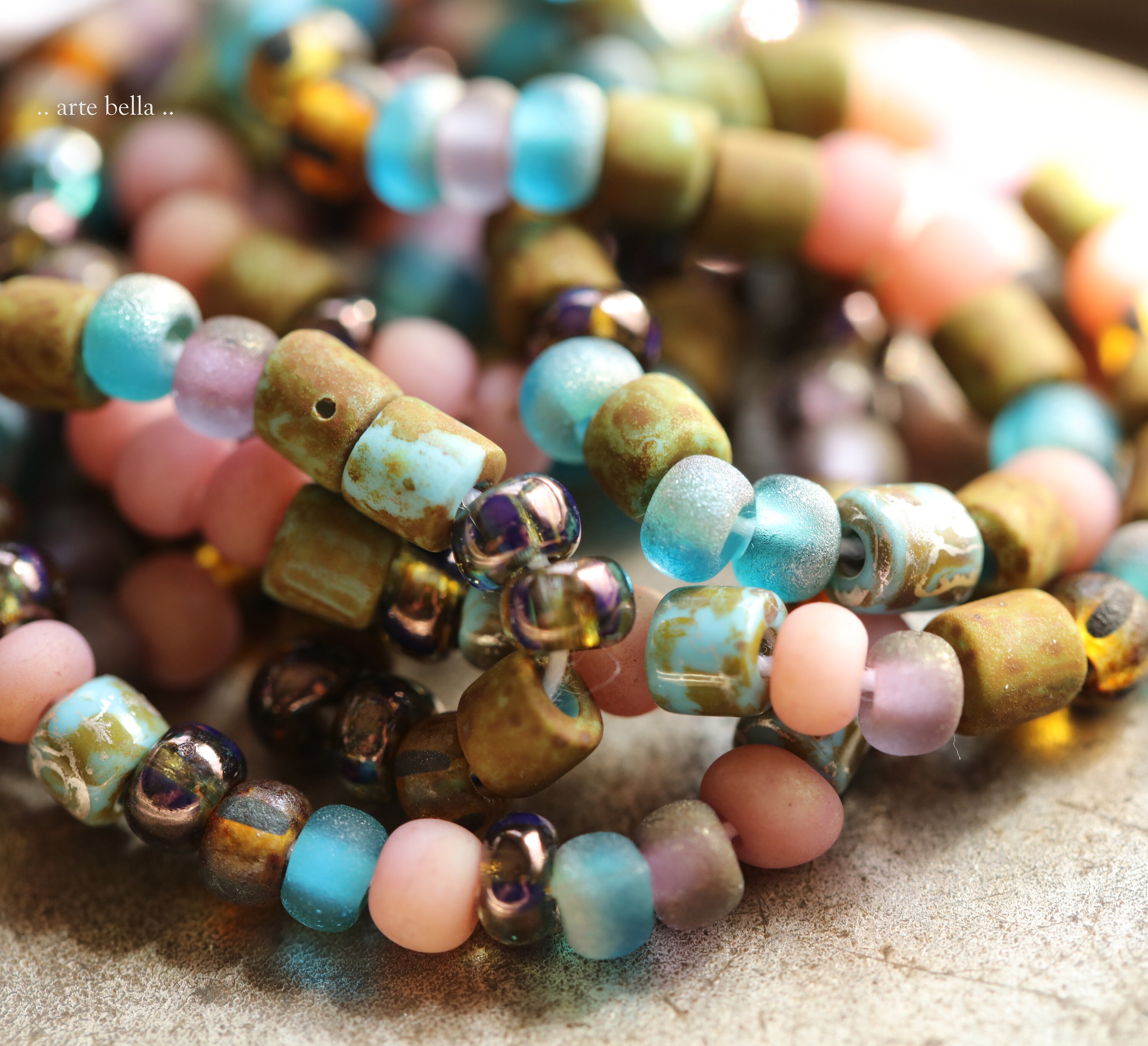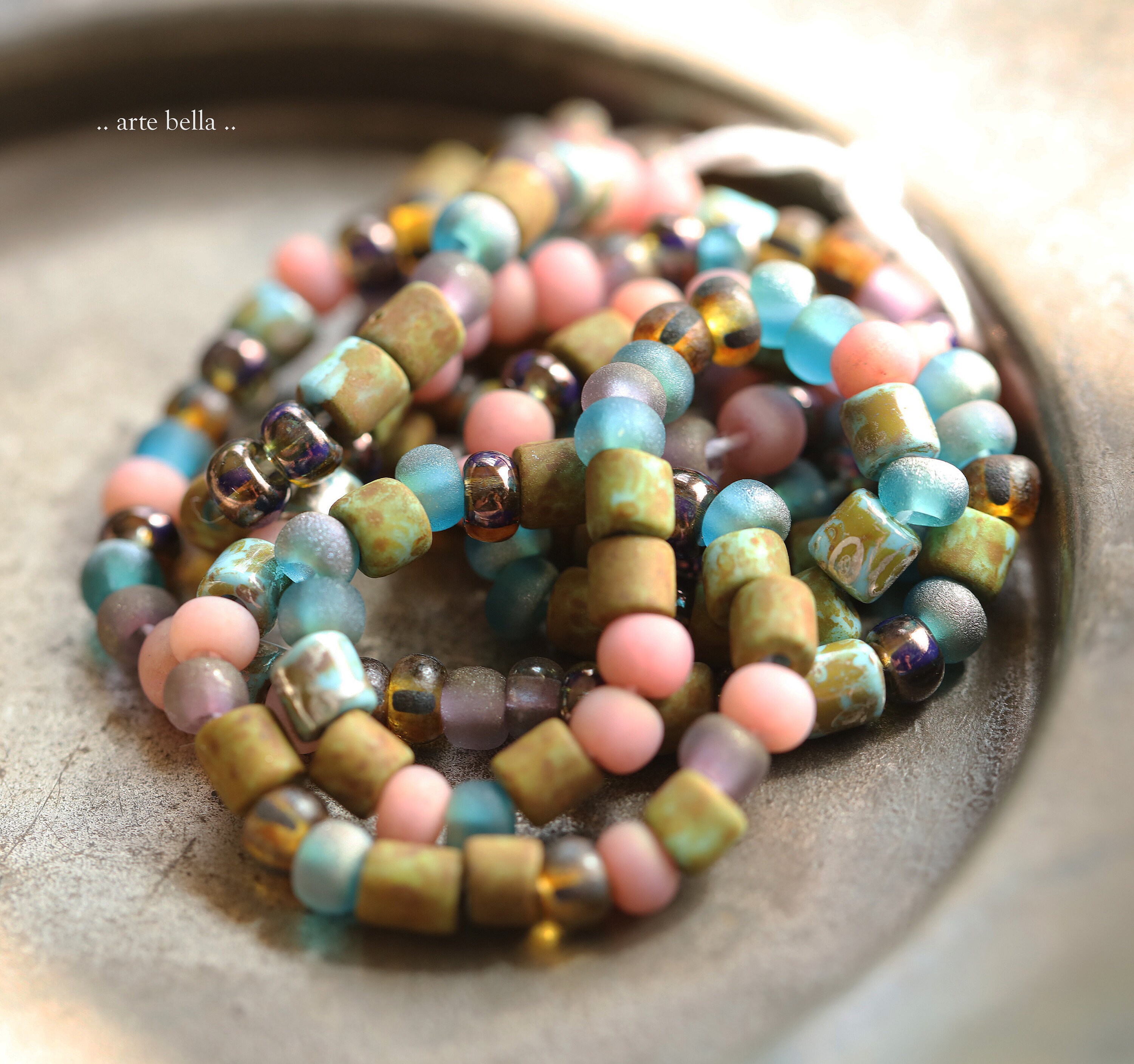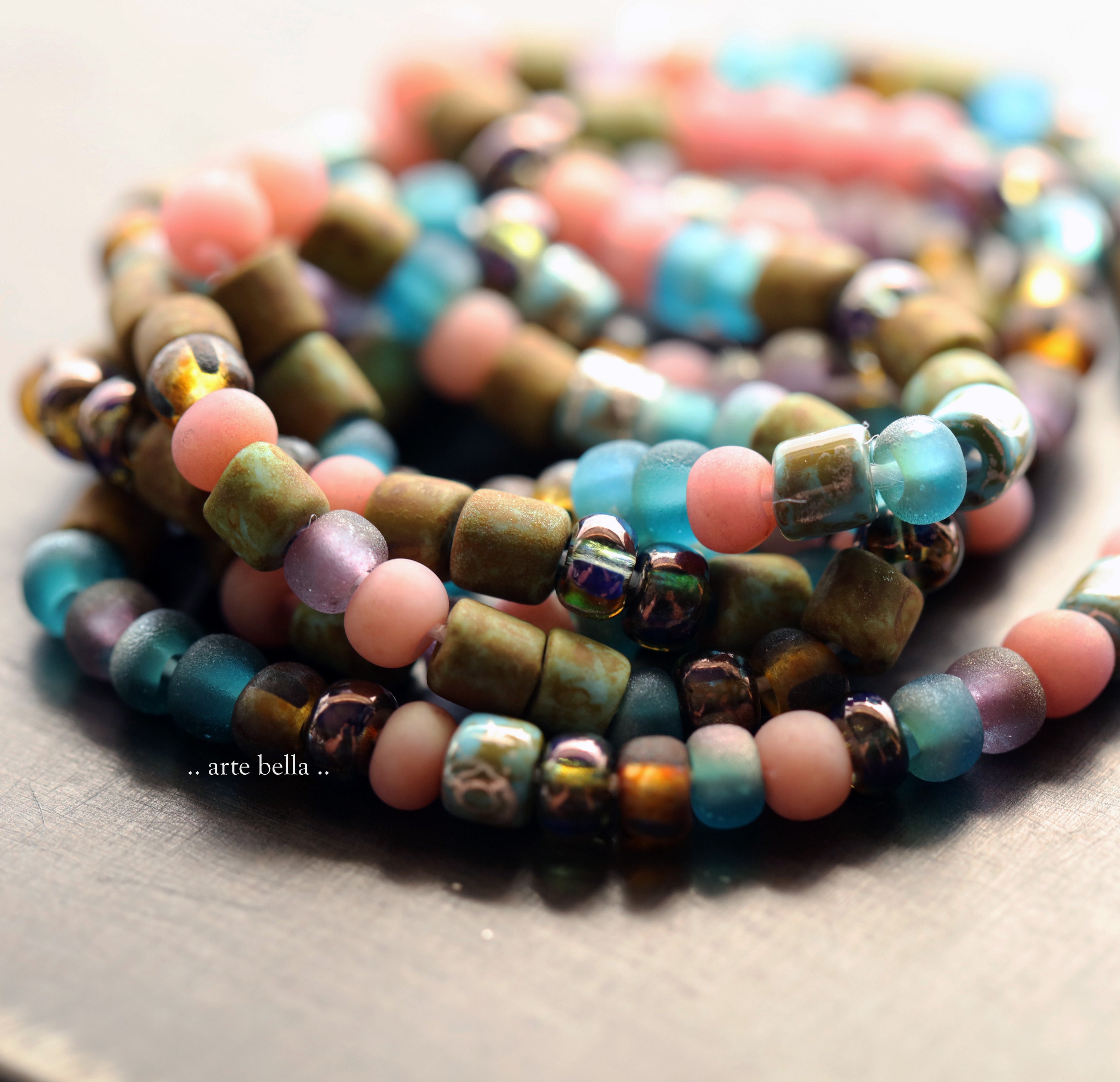 MATTE JUBILEE SEED Mix .. 20" Premium Picasso Czech Glass Aged Striped Seed Tube Bead Mix Size 6/0 (9029-st)