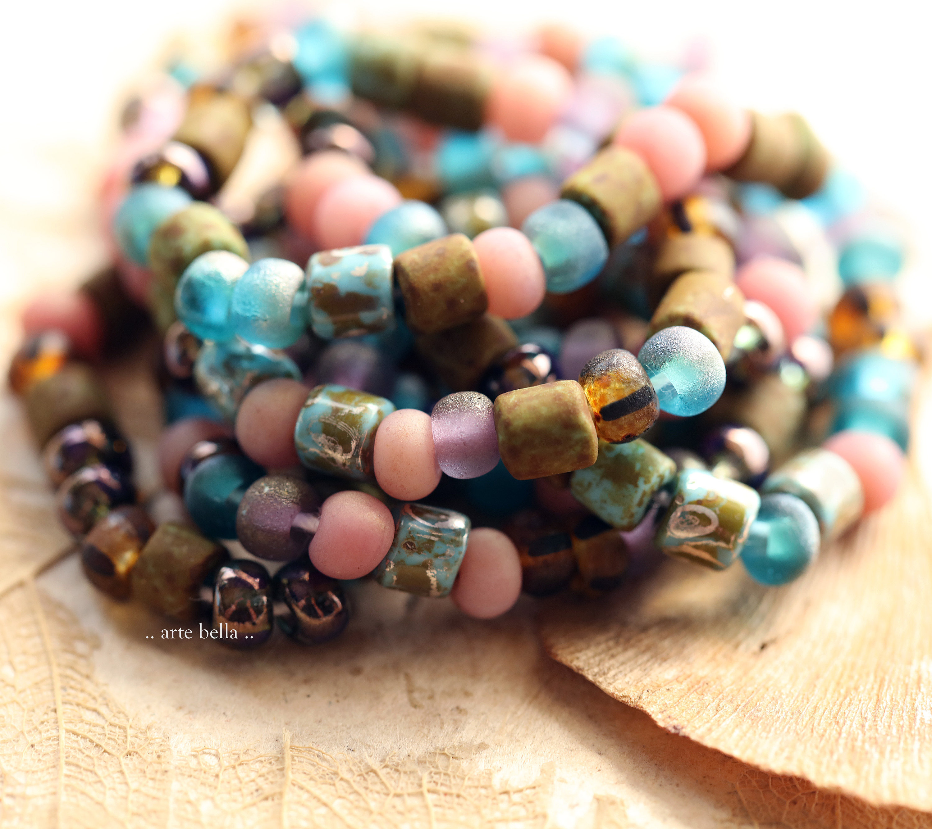 This is a fun, pretty, and interesting mix of beads in this 20" strand of Czech glass. This set is colorful and lively to the eye.