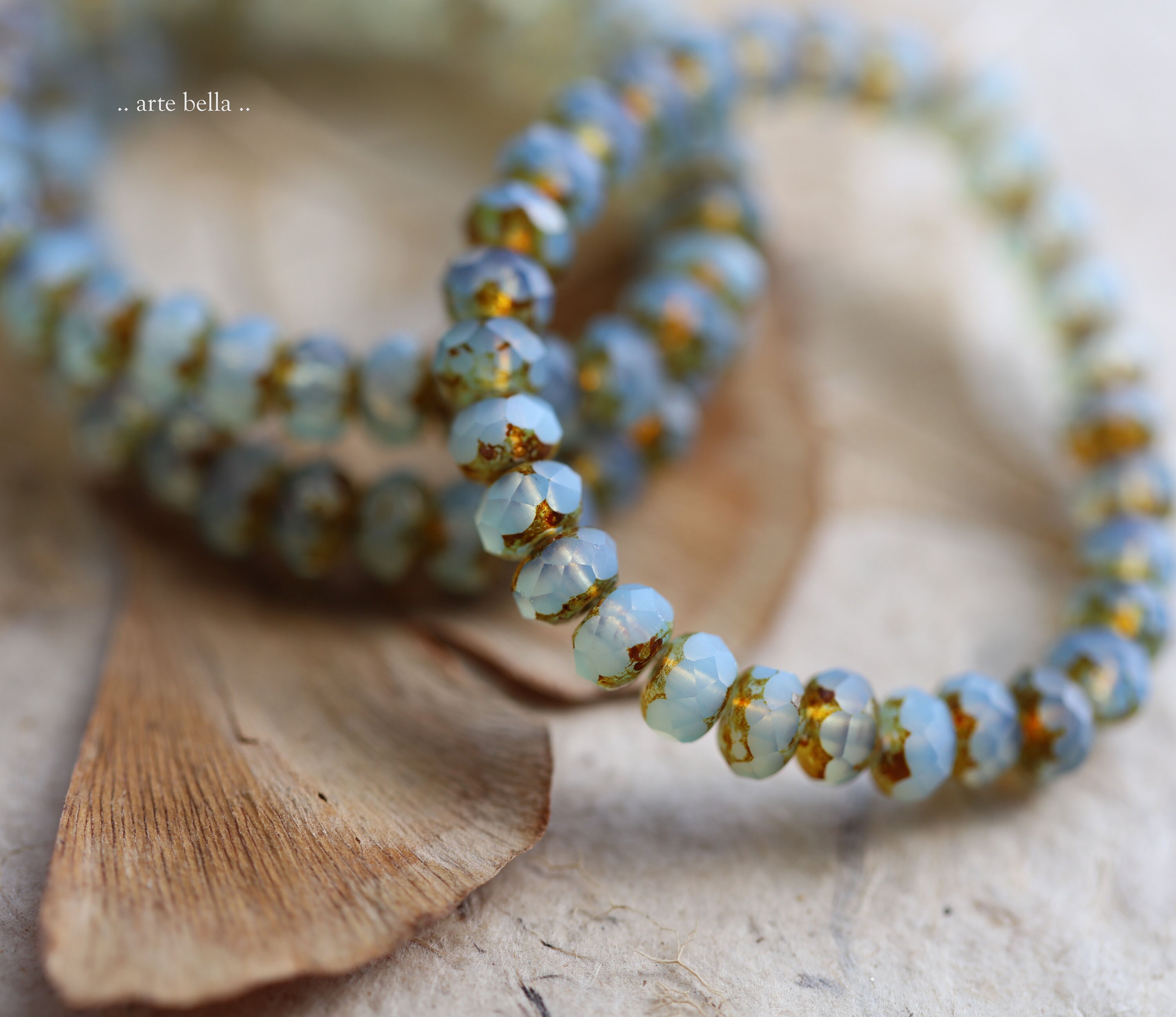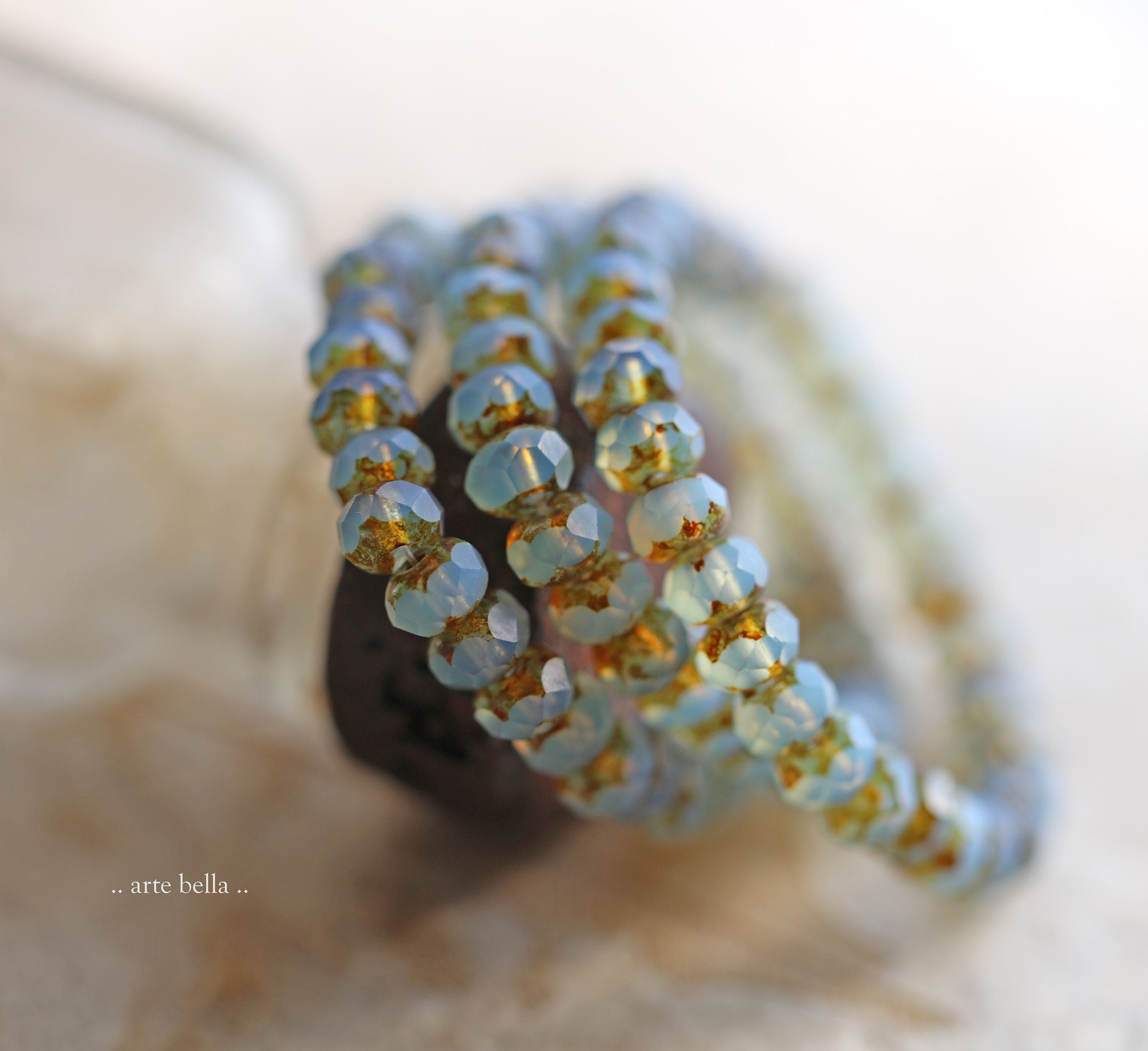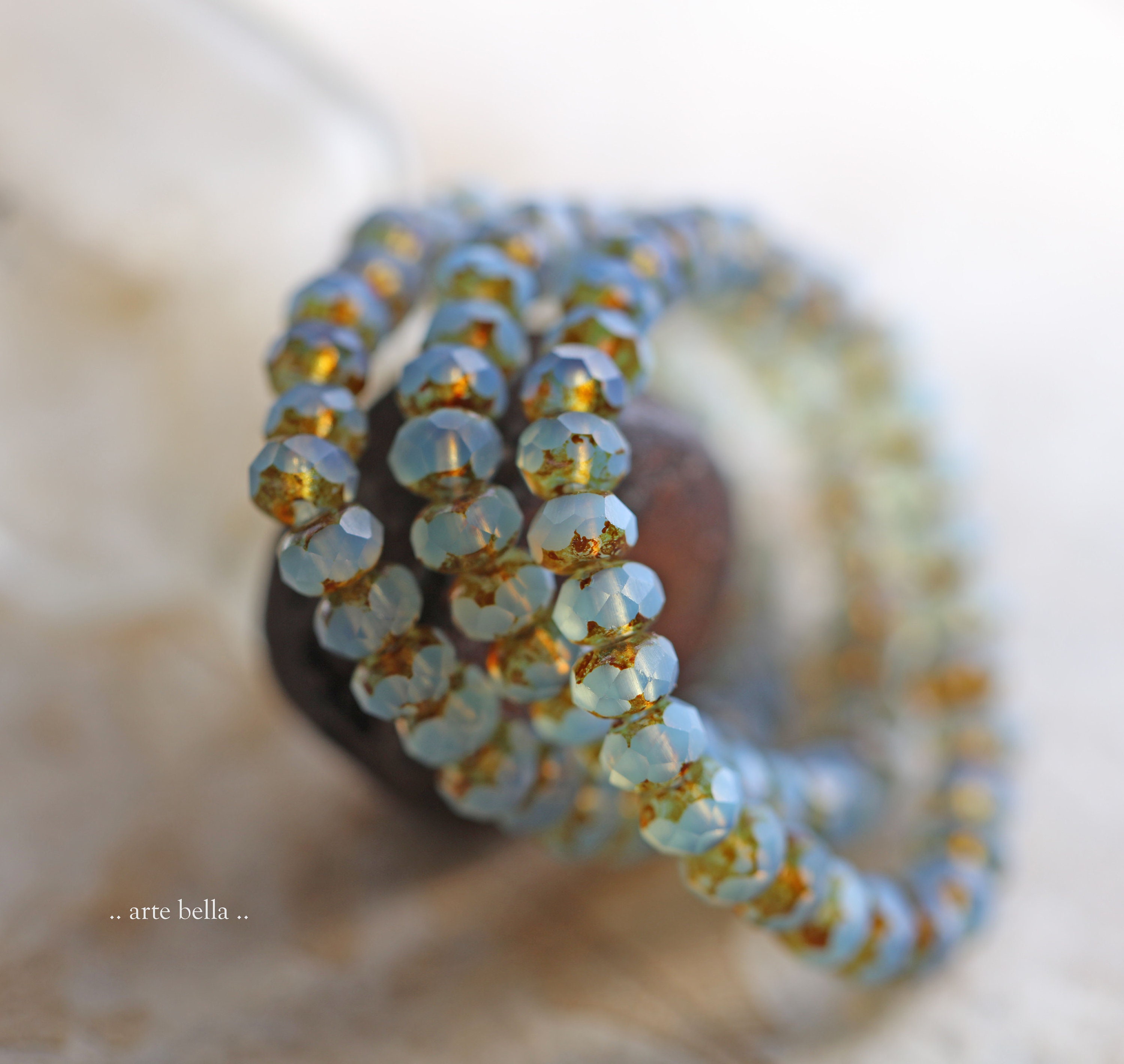 MATTE BLUE BABIES .. 30 Premium Matte Picasso Czech Glass Faceted Rondelle Beads 3x5mm (9231-st)