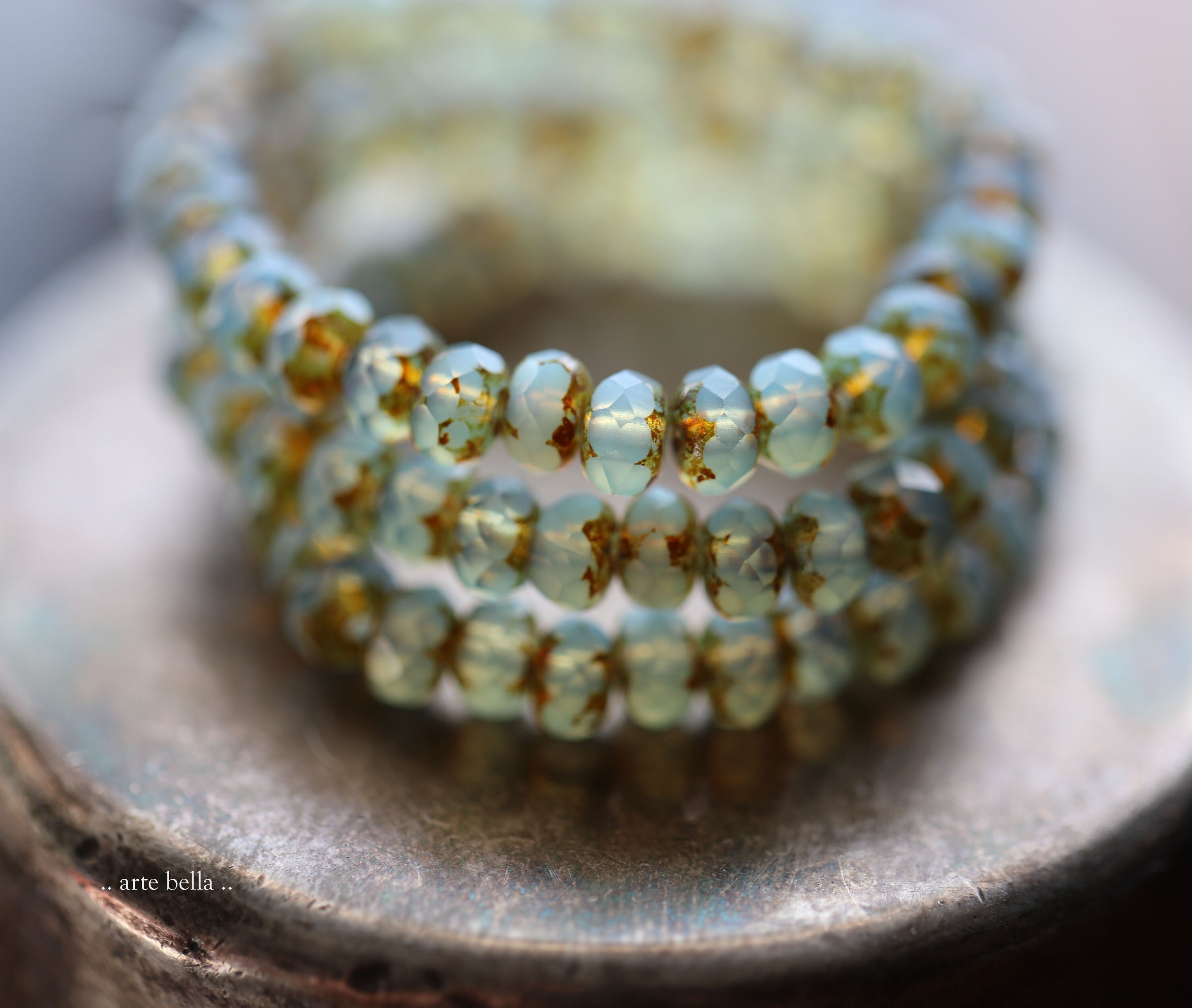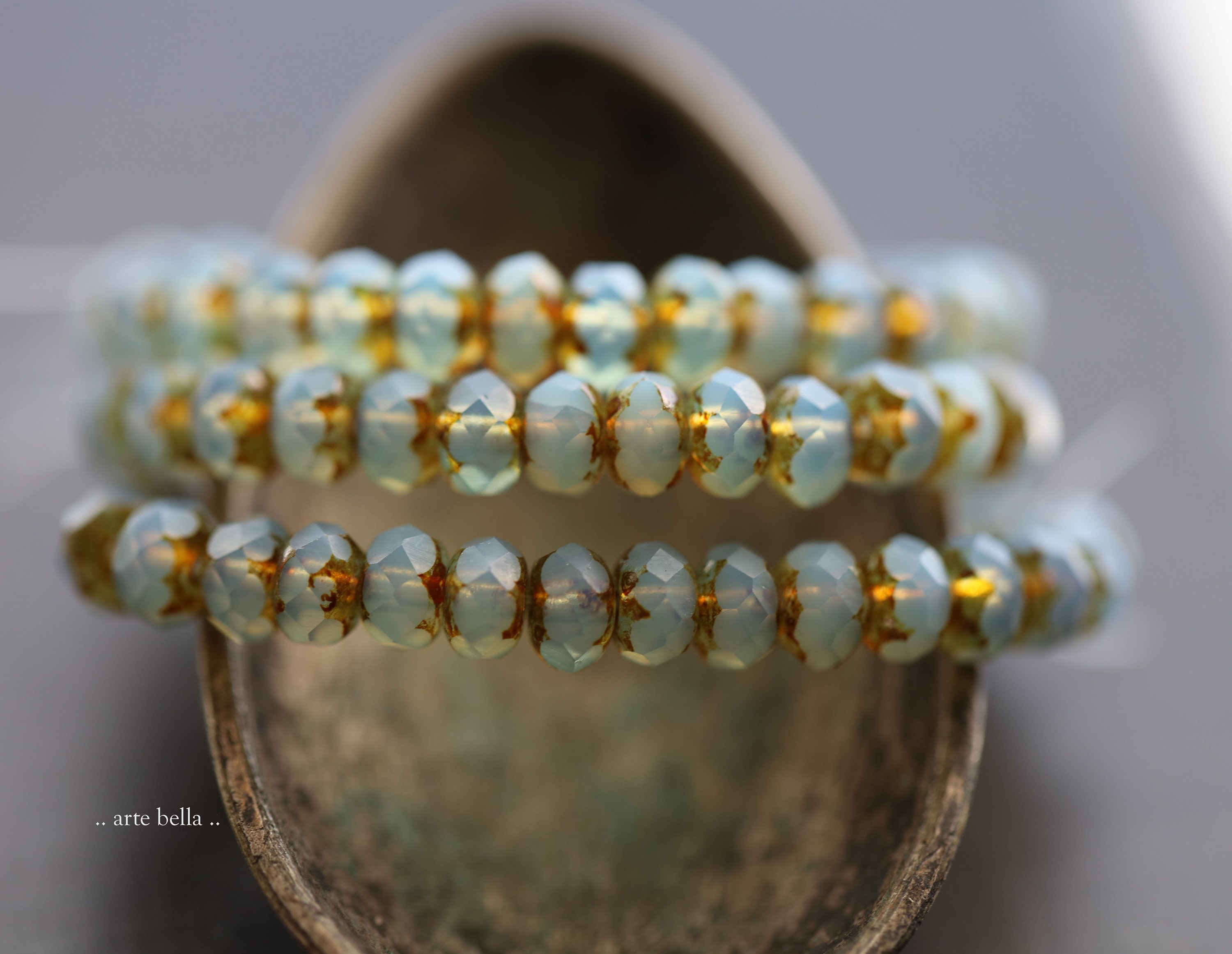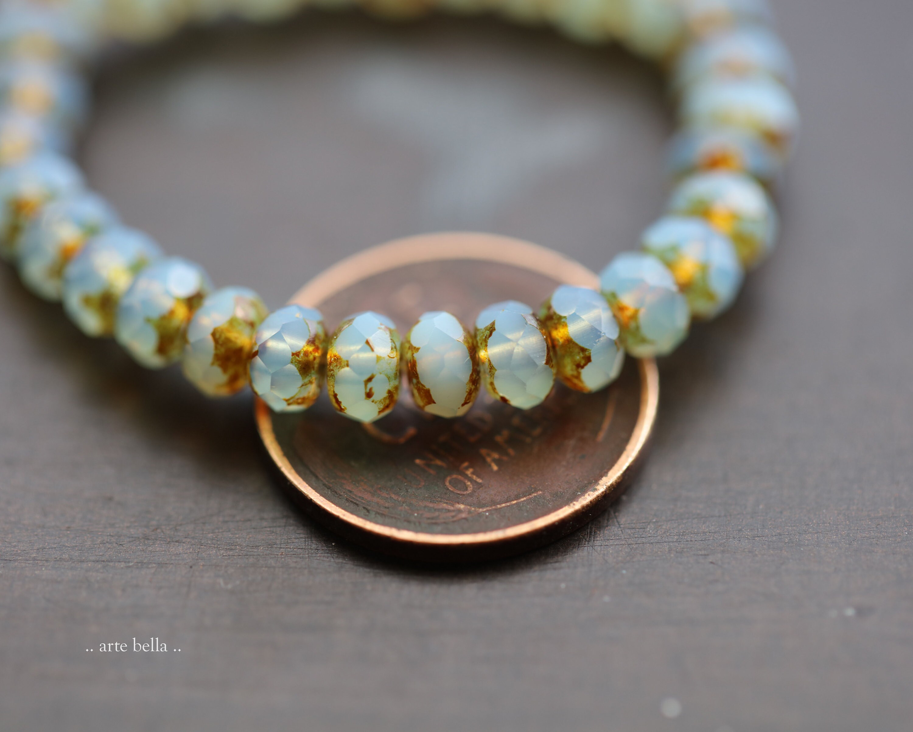 MATTE BLUE BABIES .. 30 Premium Matte Picasso Czech Glass Faceted Rondelle Beads 3x5mm (9231-st)
