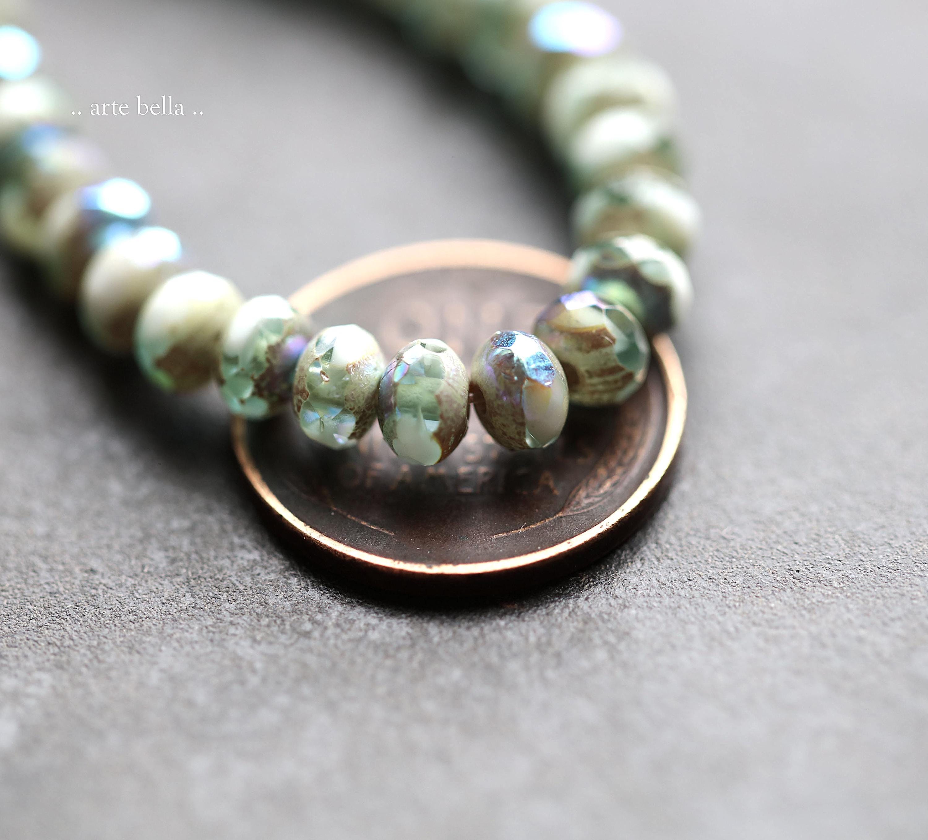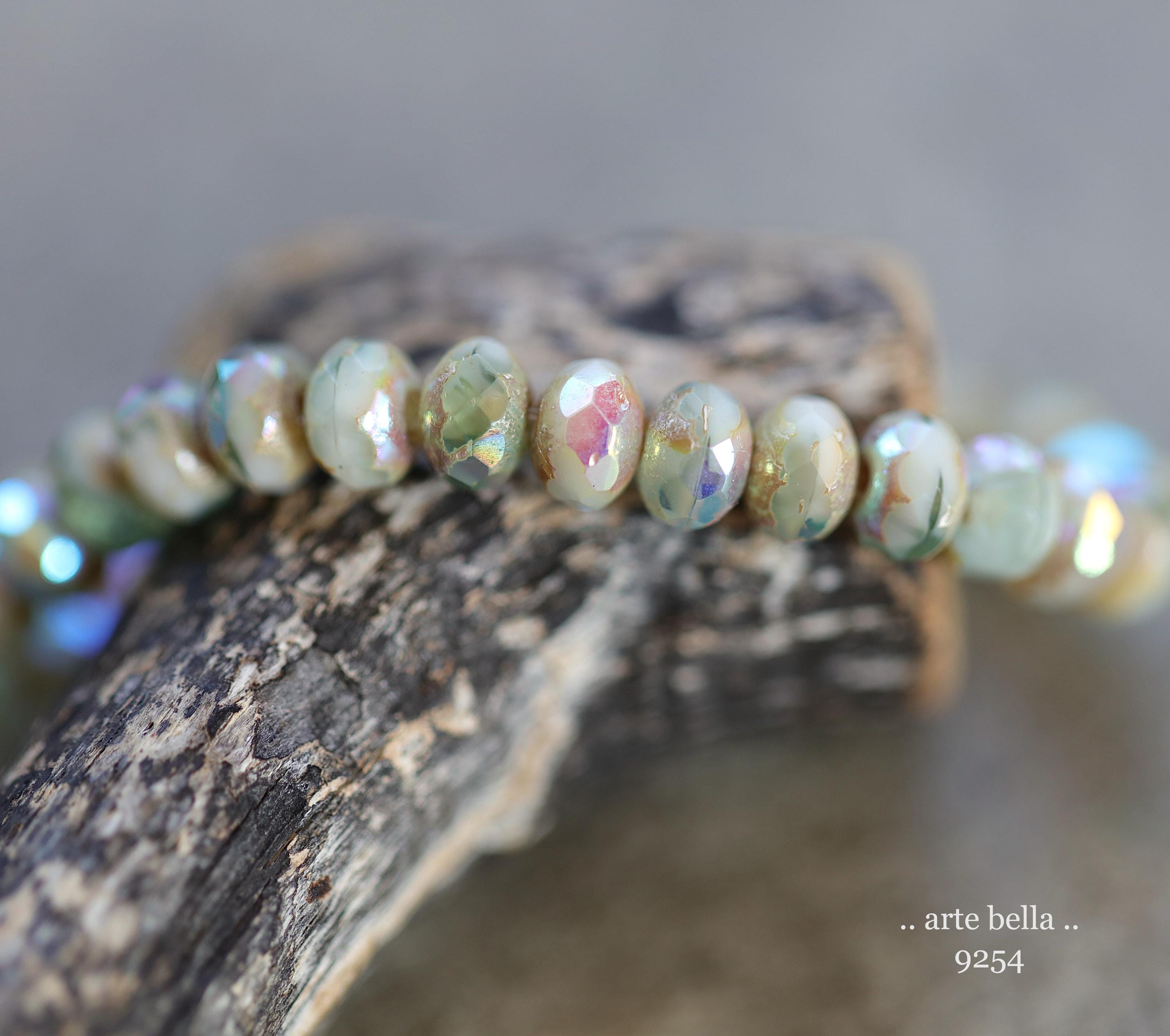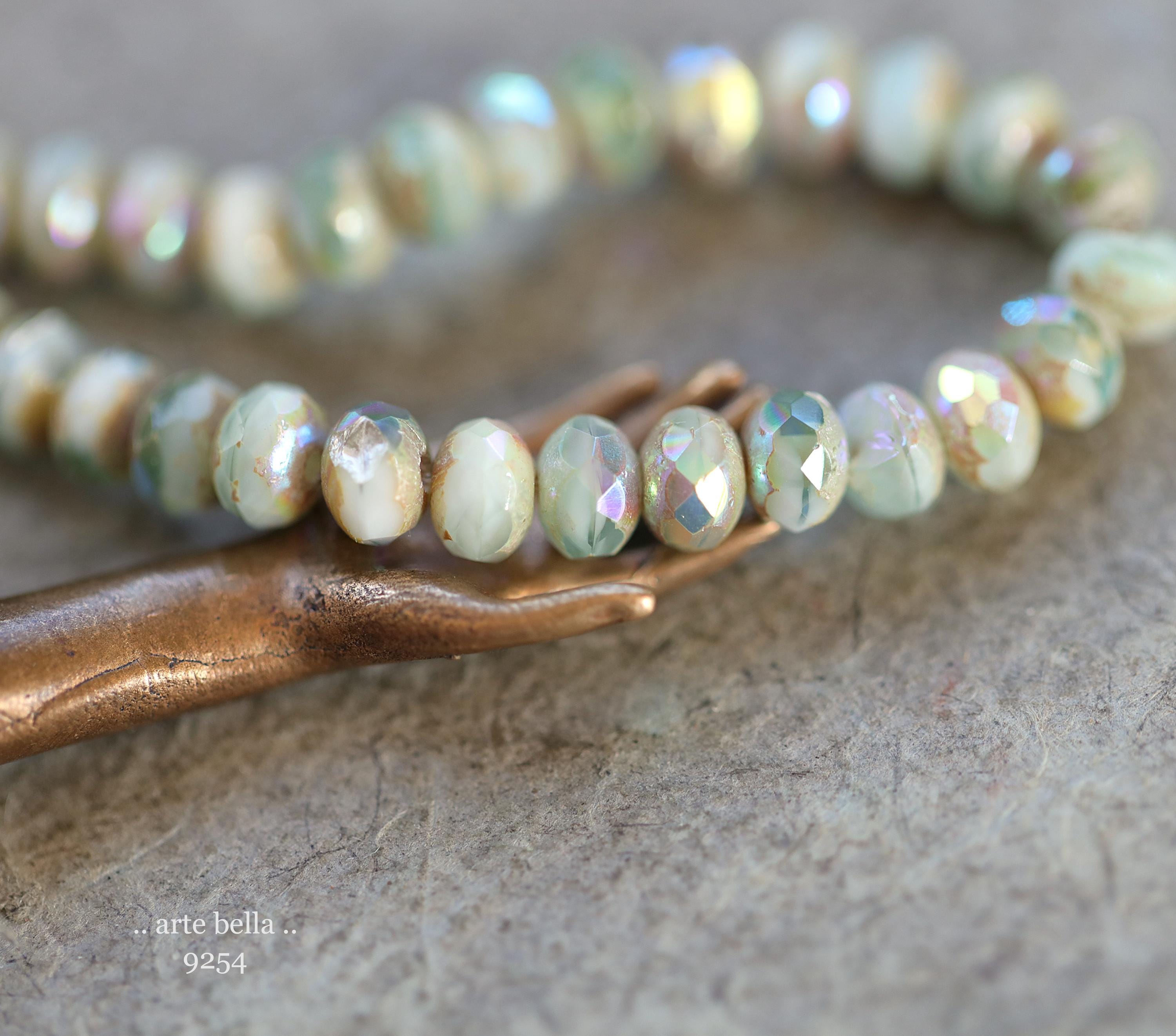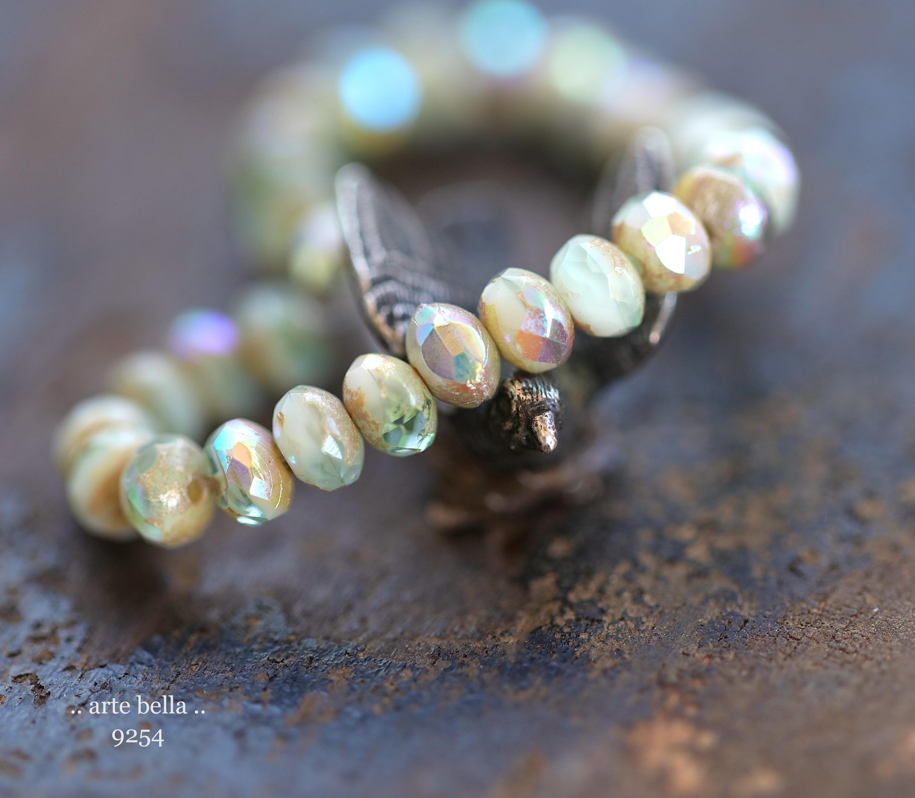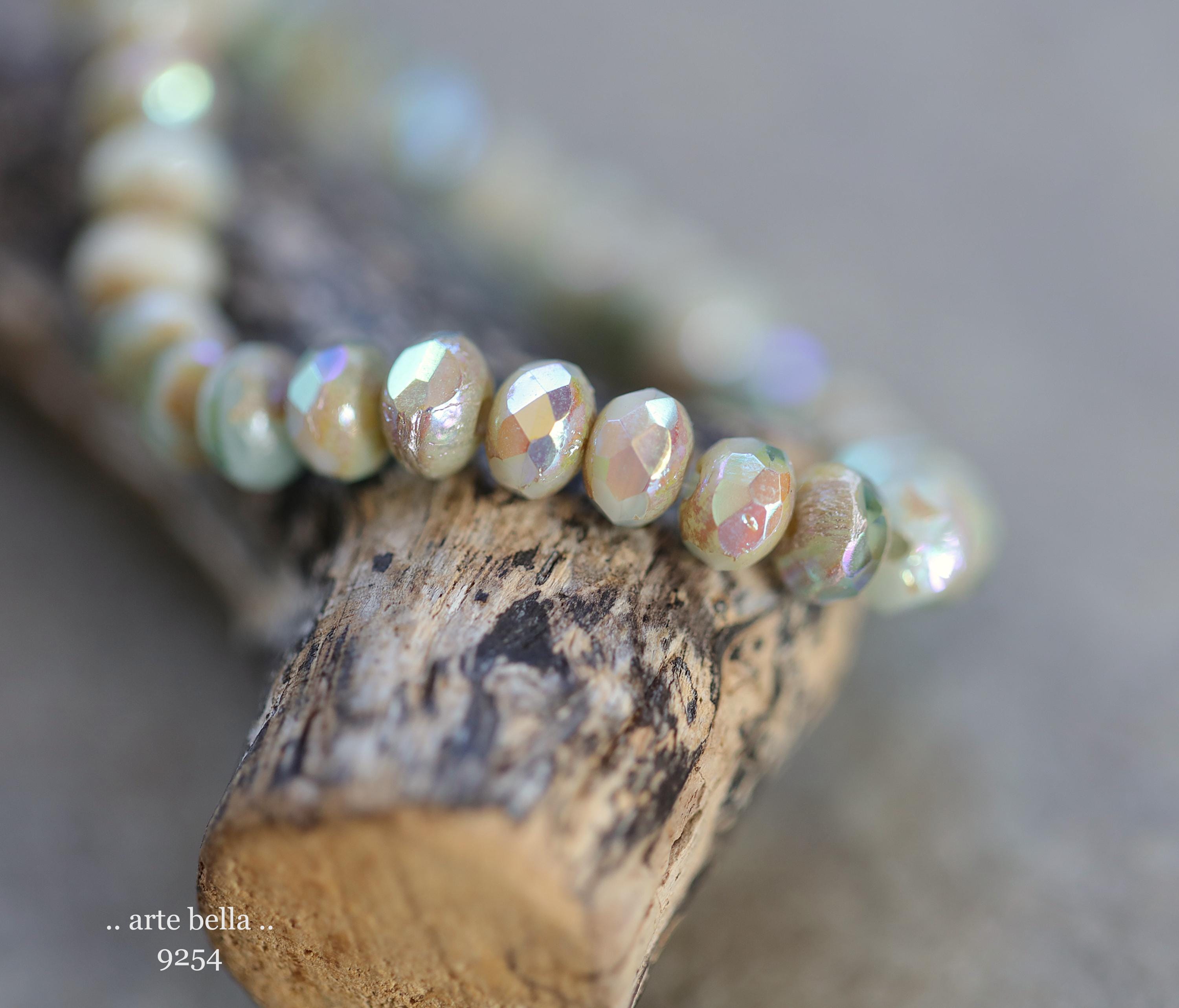 premium glass beads .. MYSTIC SAGE CREAM Babies .. 30 Czech Glass Faceted Rondelle Beads 3x5mm (9254-st) .. jewelry making supplies