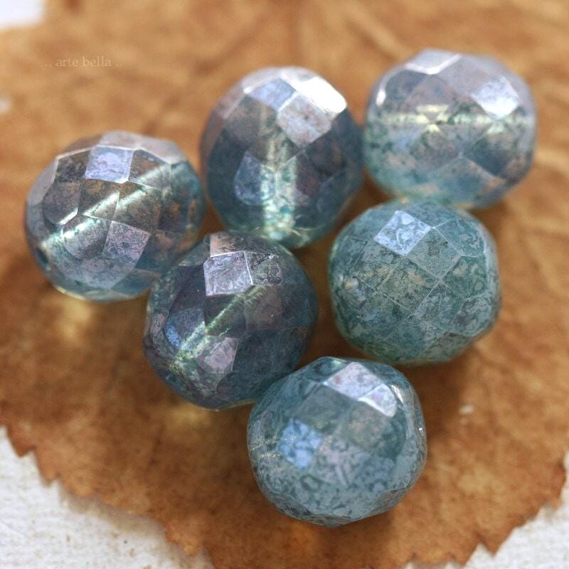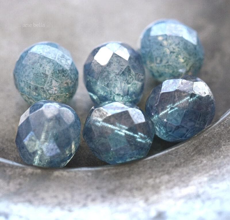 back in stock .. BLUE CASHMERE .. 6 Premium Luster Picasso Czech Glass Bead Mix 12mm (2901-6) .. jewelry supplies