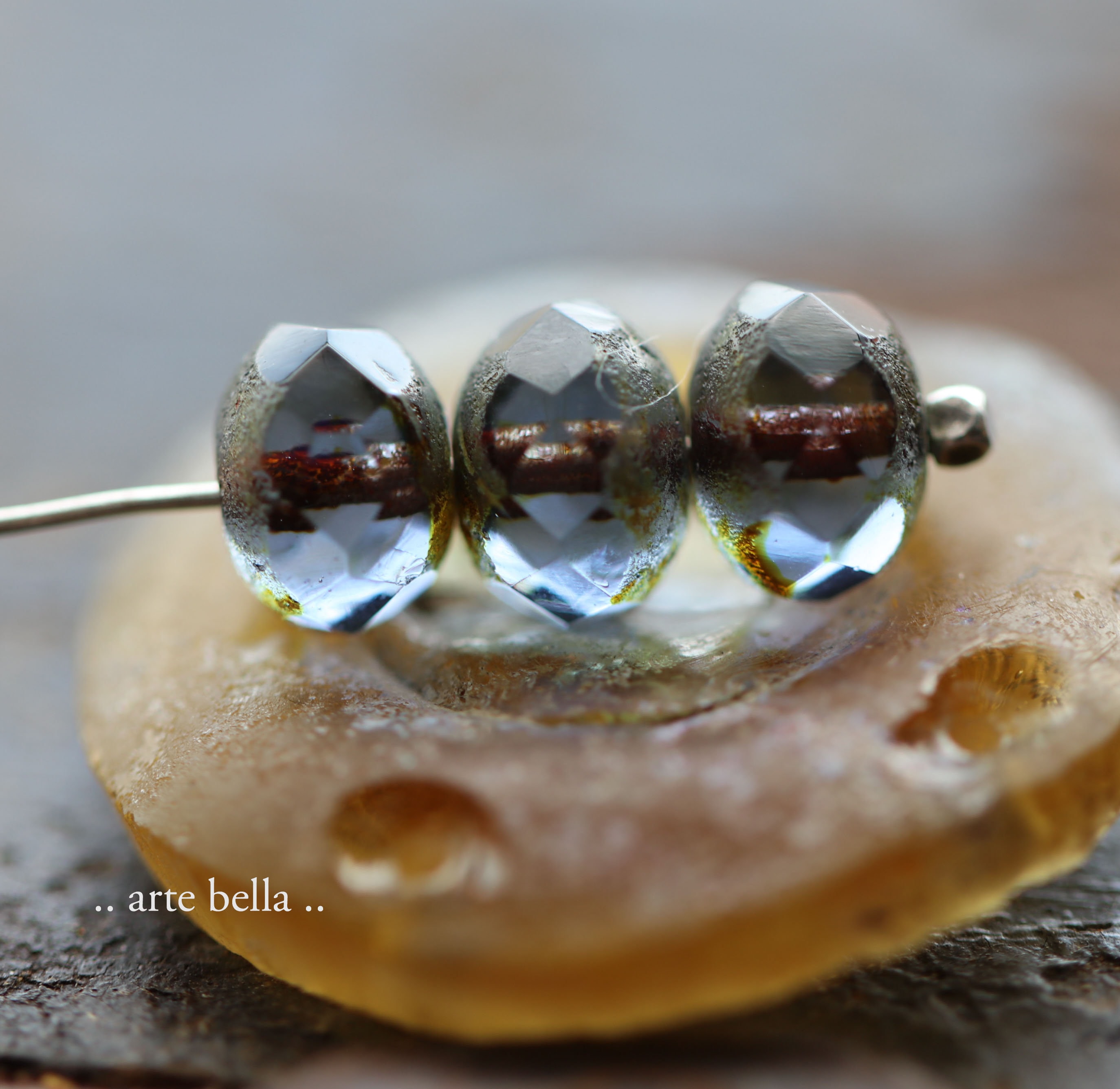 back in stock .. EARTHY MONTANA .. 25 Premium Matte Picasso Czech Glass Faceted Rondelle Beads 6x8mm (9375-st) .. jewelry supplies