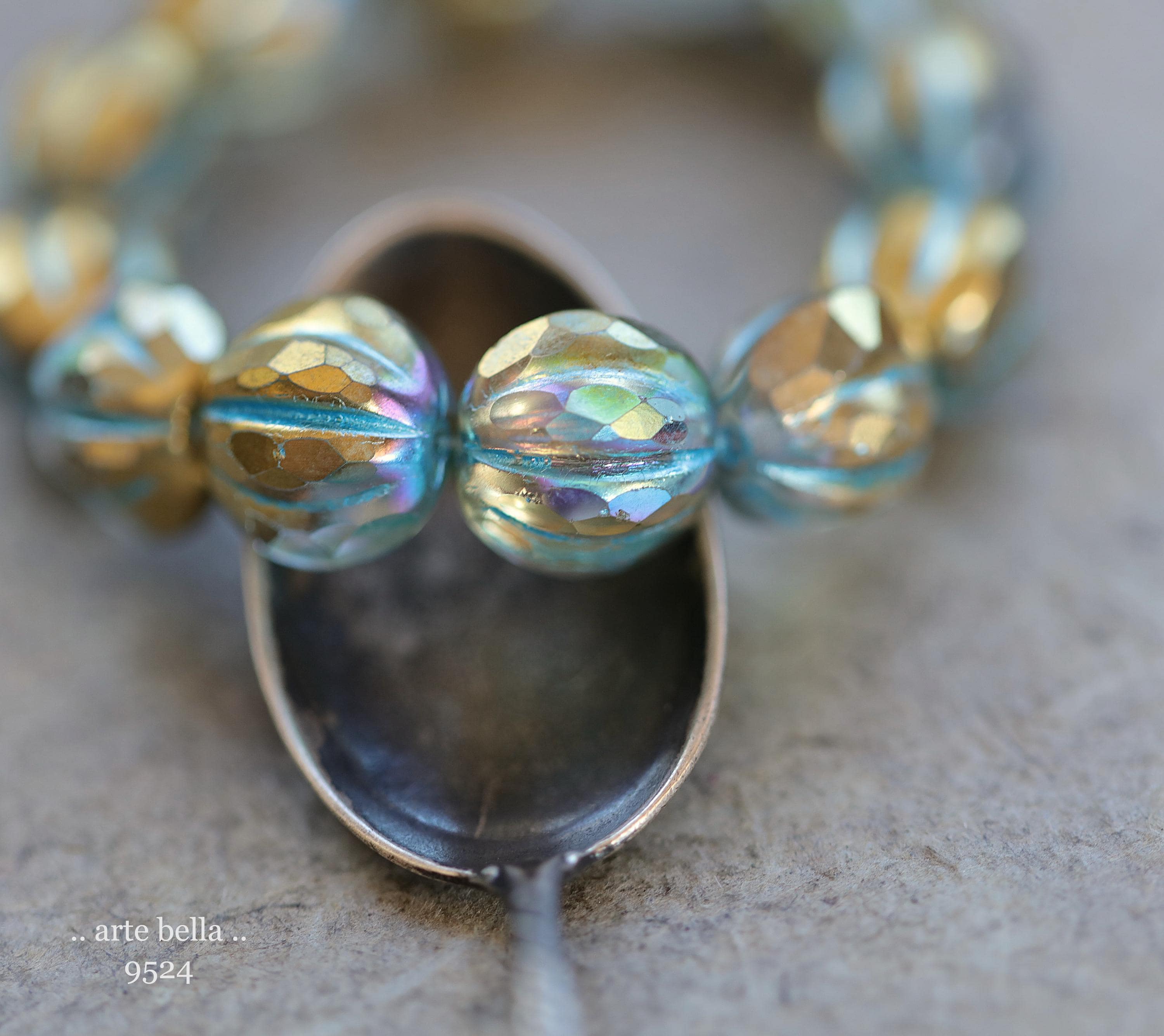 F i n i s h :: gold metallic luster, turquoise blue wash, Aurora Borealis