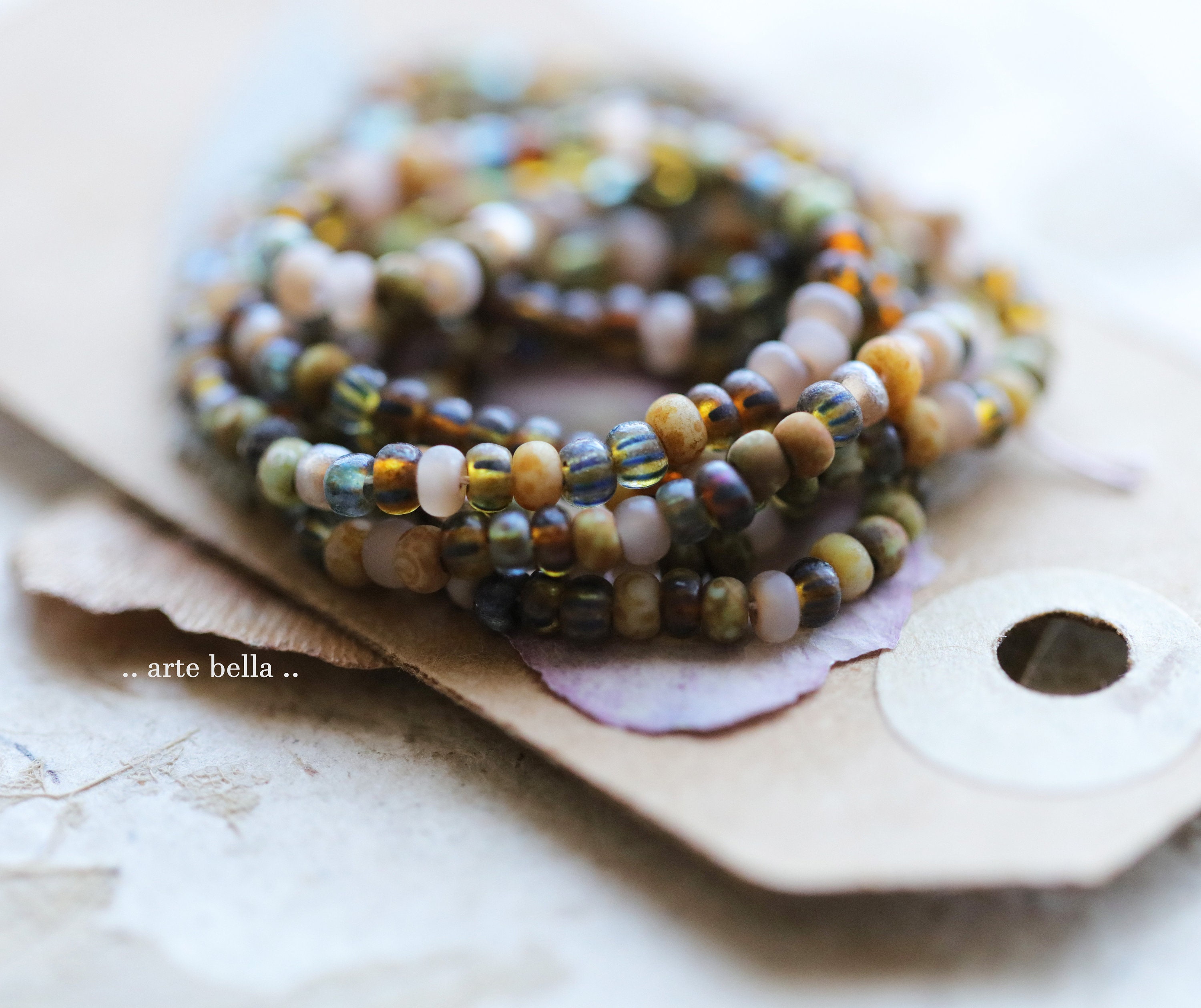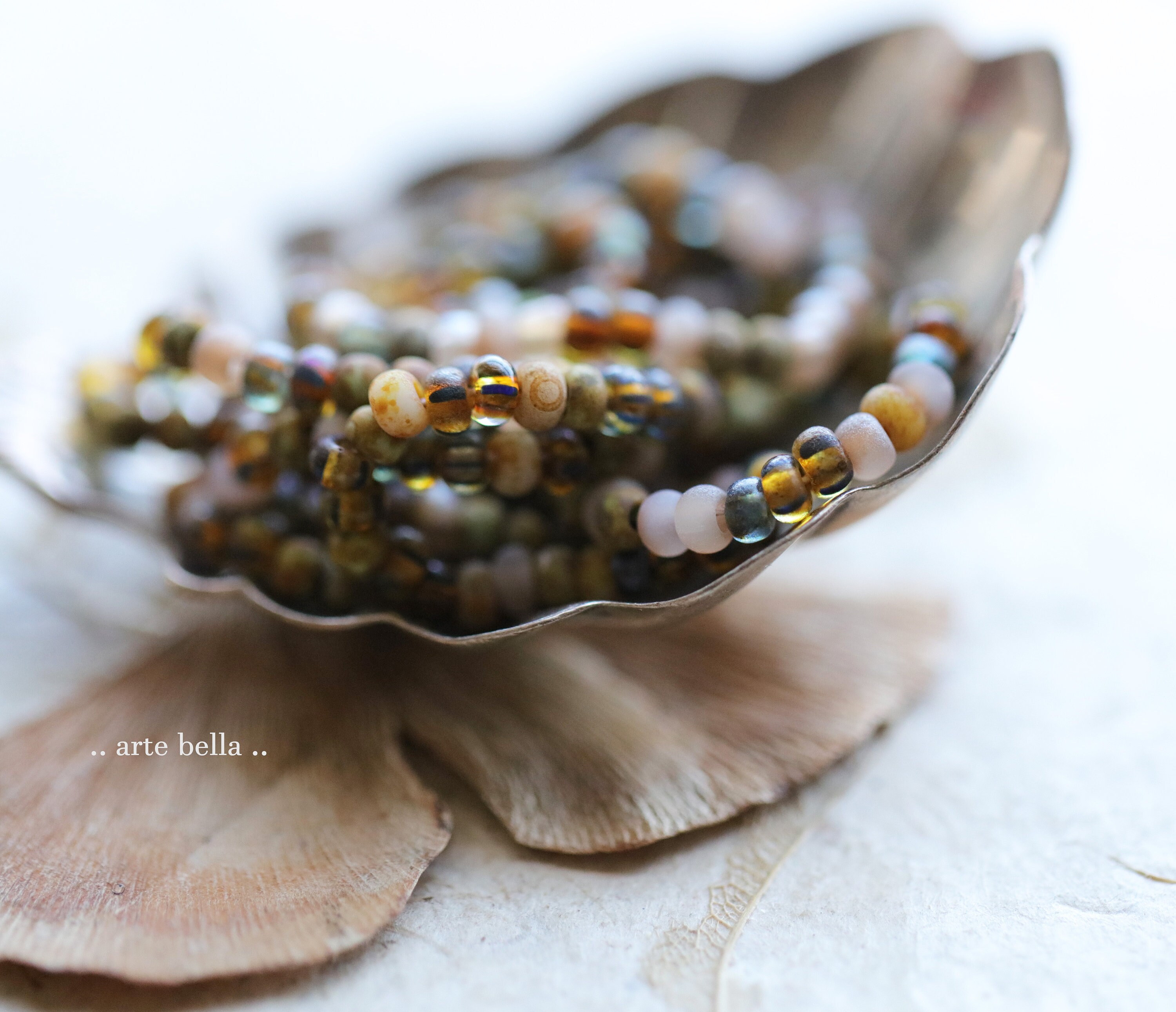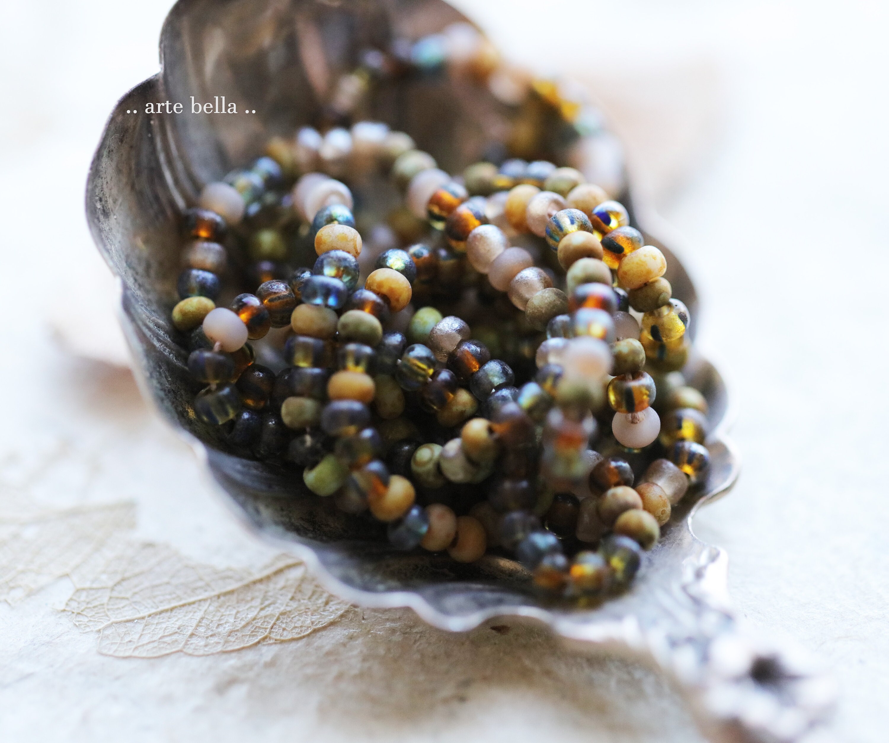 Matte SPRING BLOOM SEEDS No. 9516 .. 21" Premium Etched Picasso Czech Glass Aged Striped Seed Bead Mix Size 8/0 (9516-st)