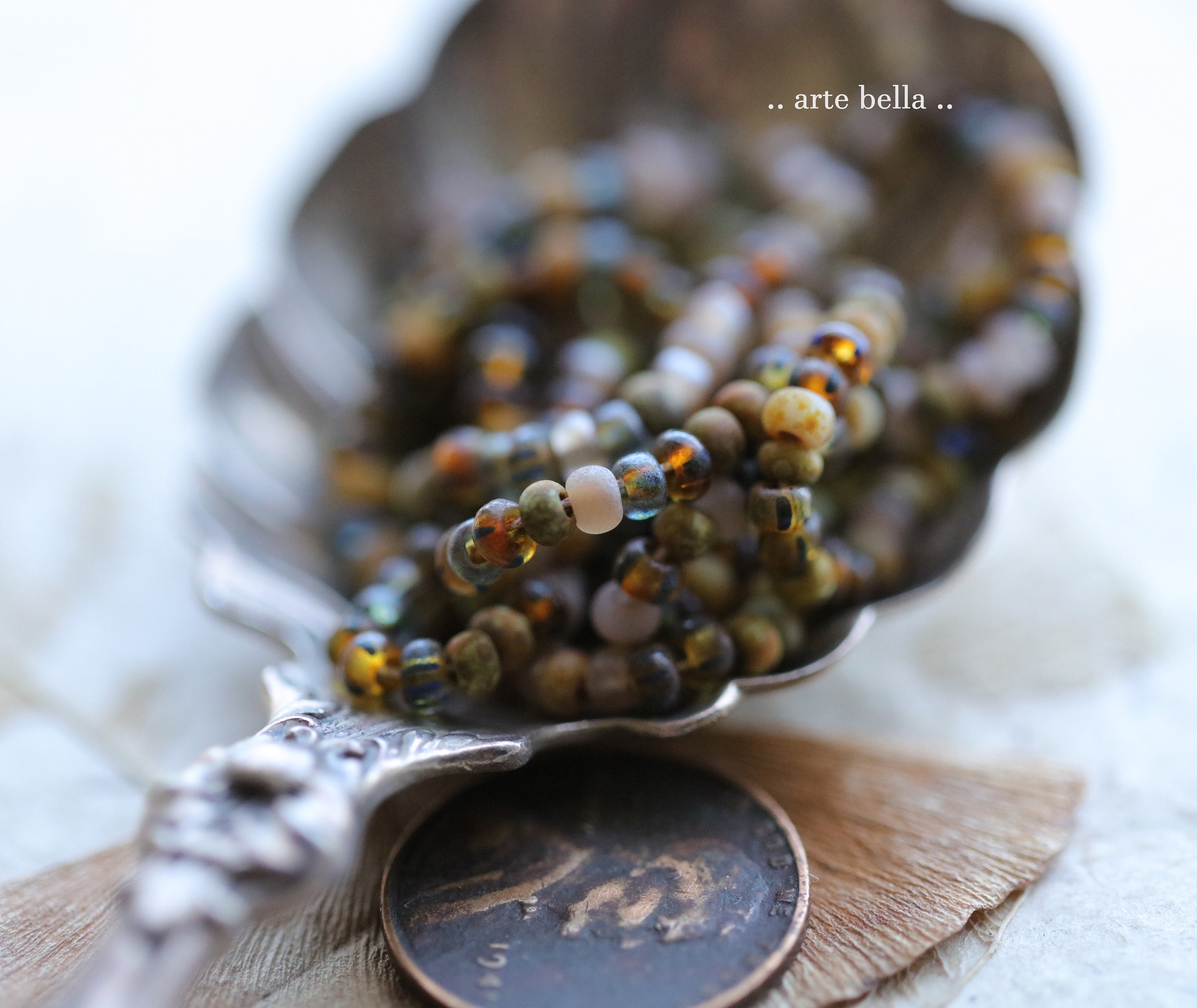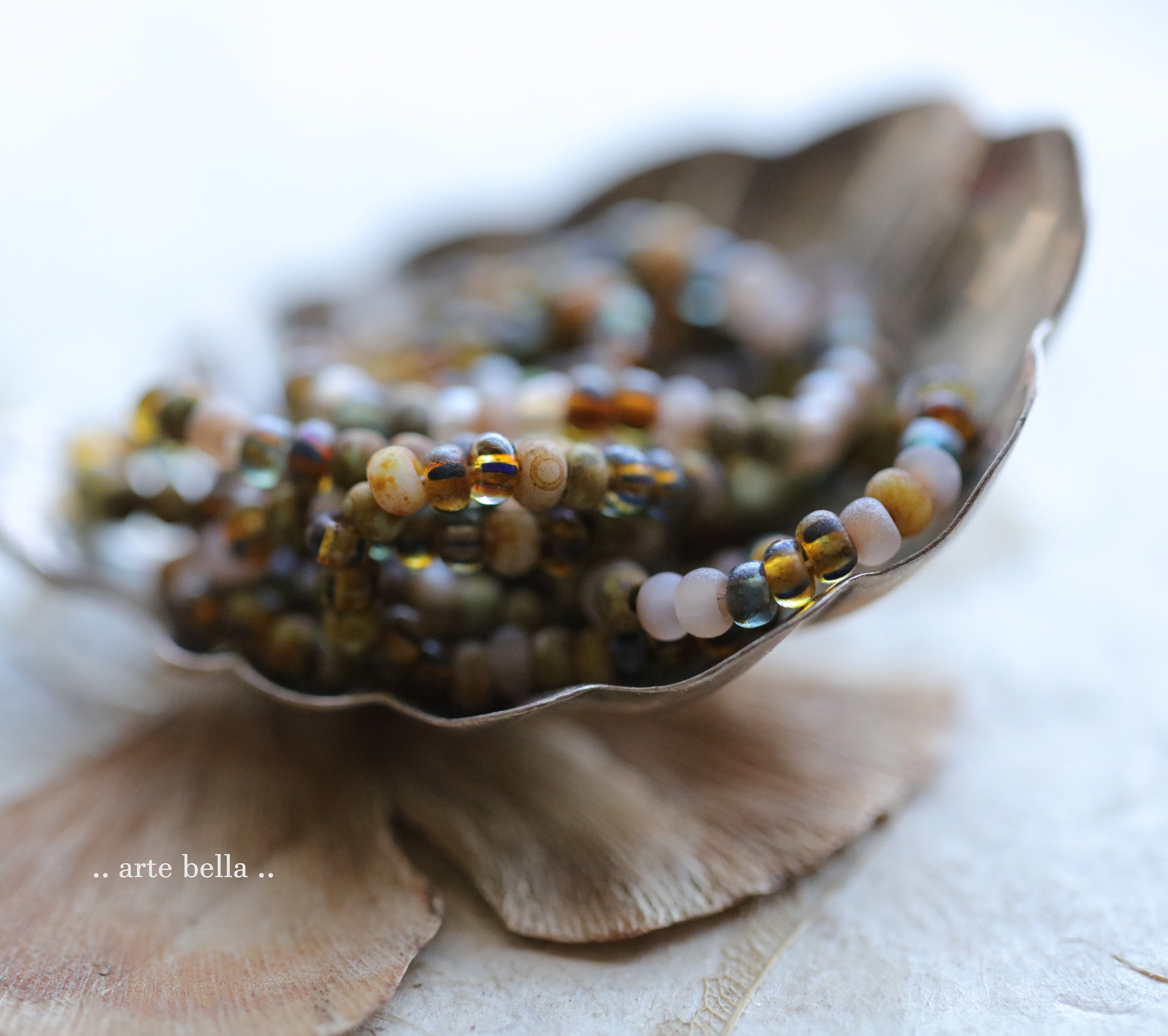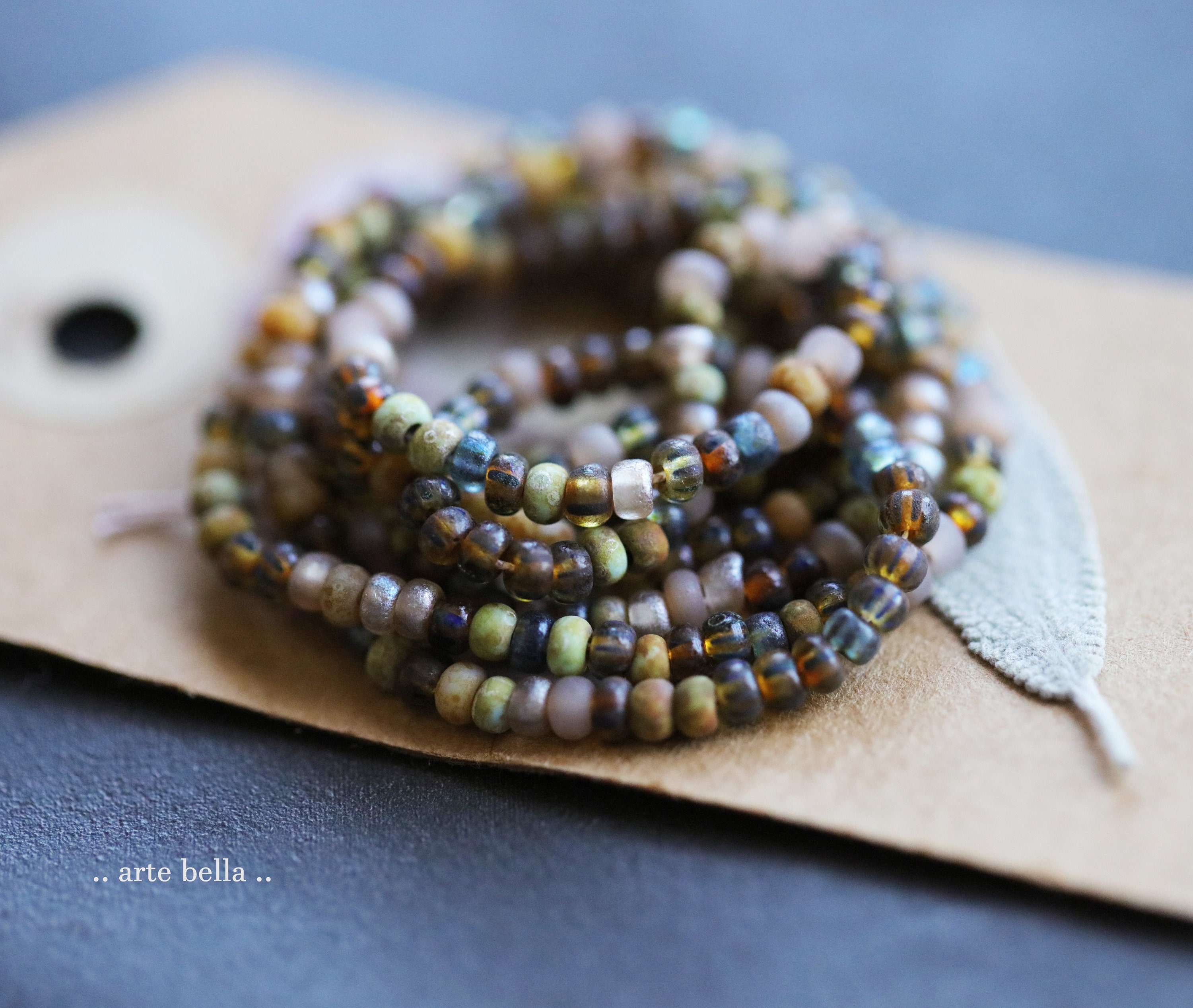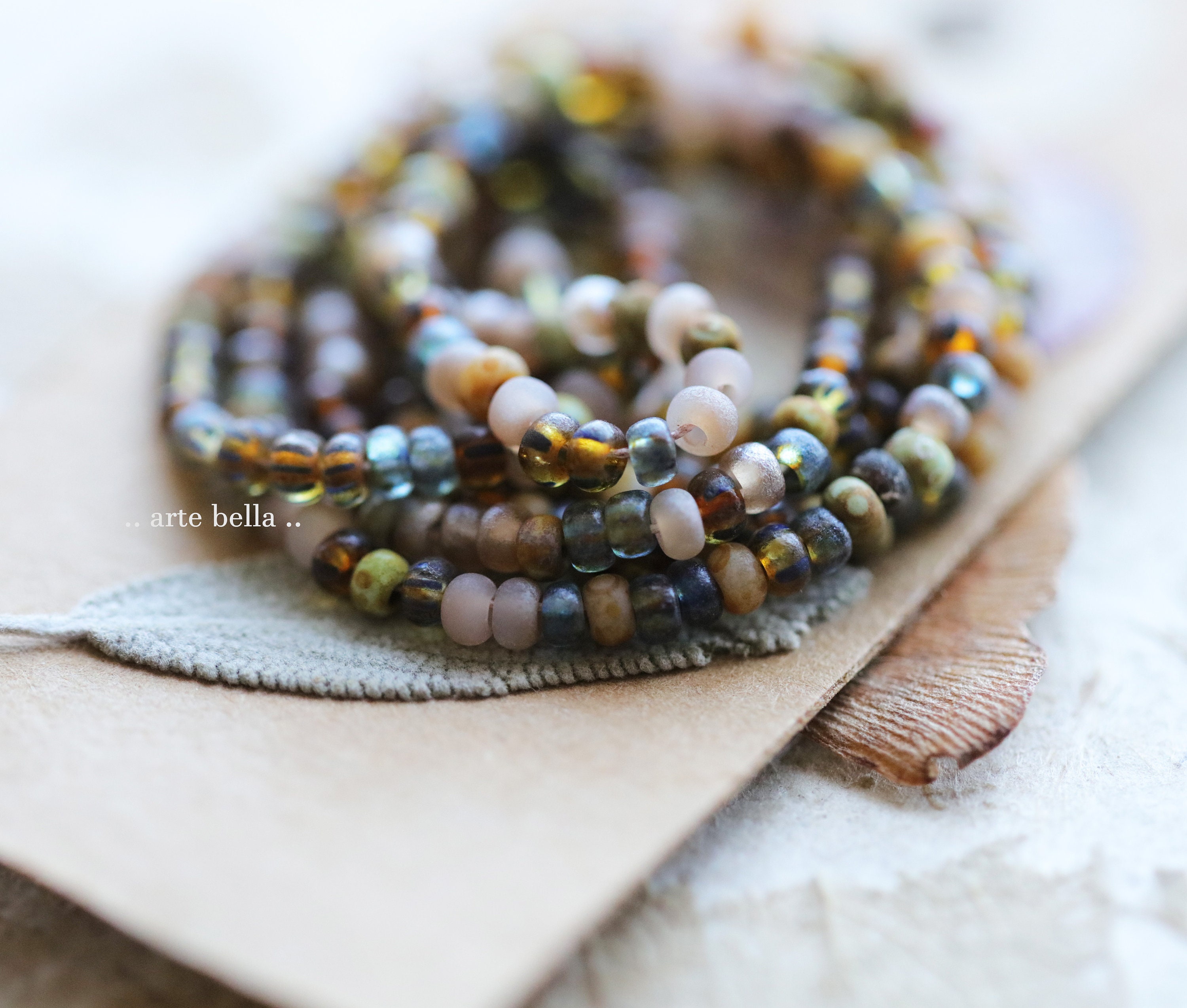 Matte SPRING BLOOM SEEDS No. 9516 .. 21" Premium Etched Picasso Czech Glass Aged Striped Seed Bead Mix Size 8/0 (9516-st)