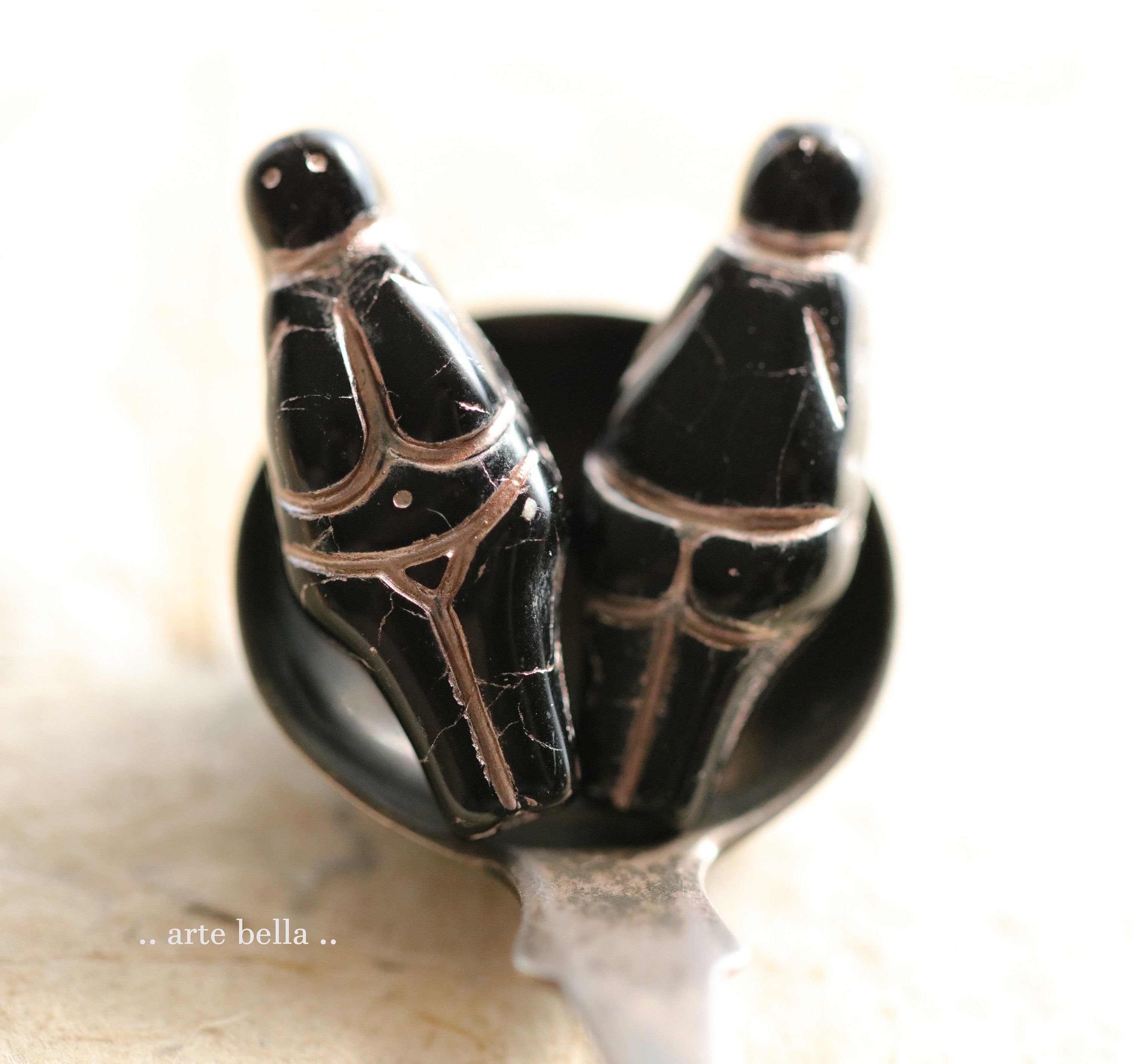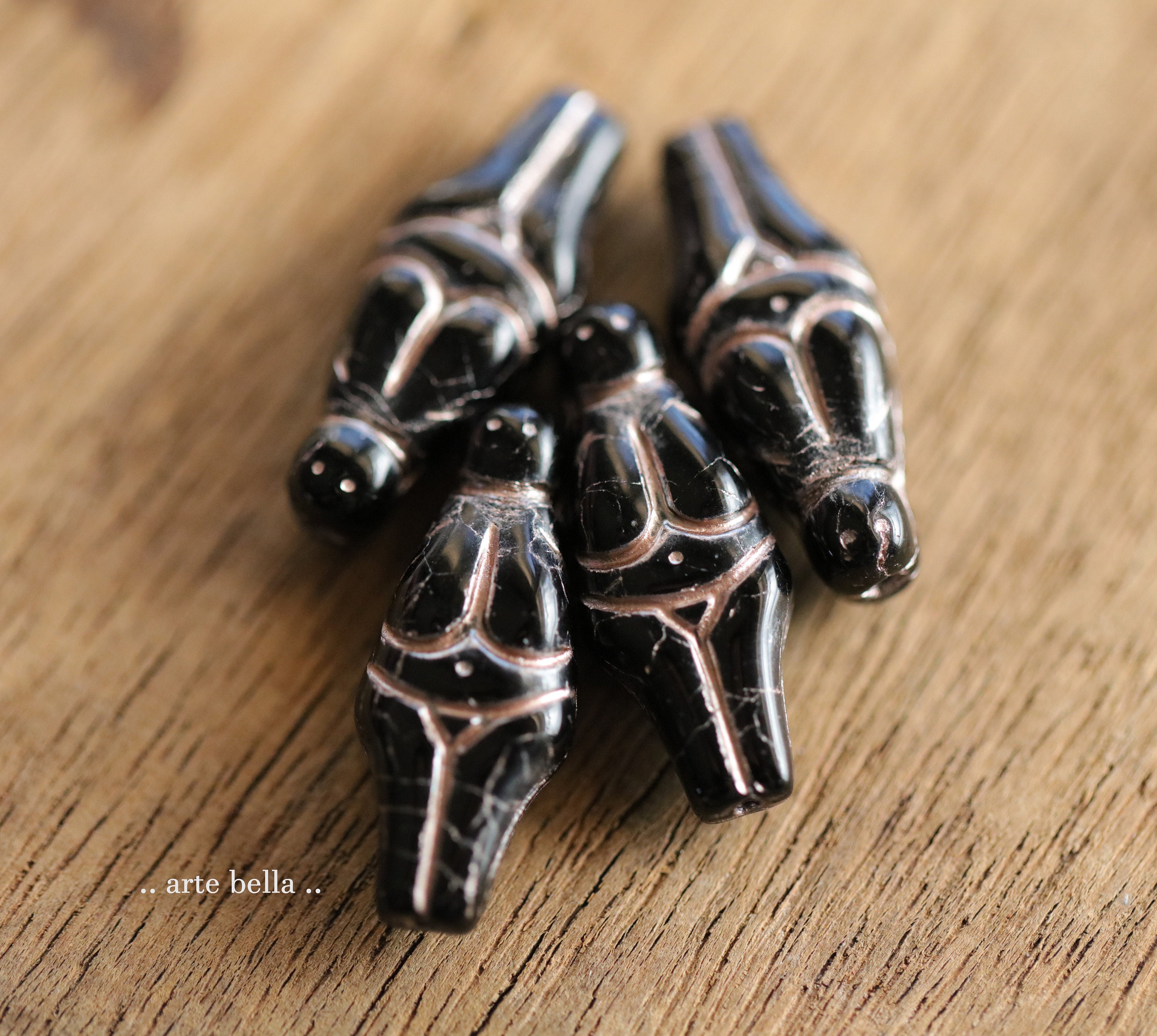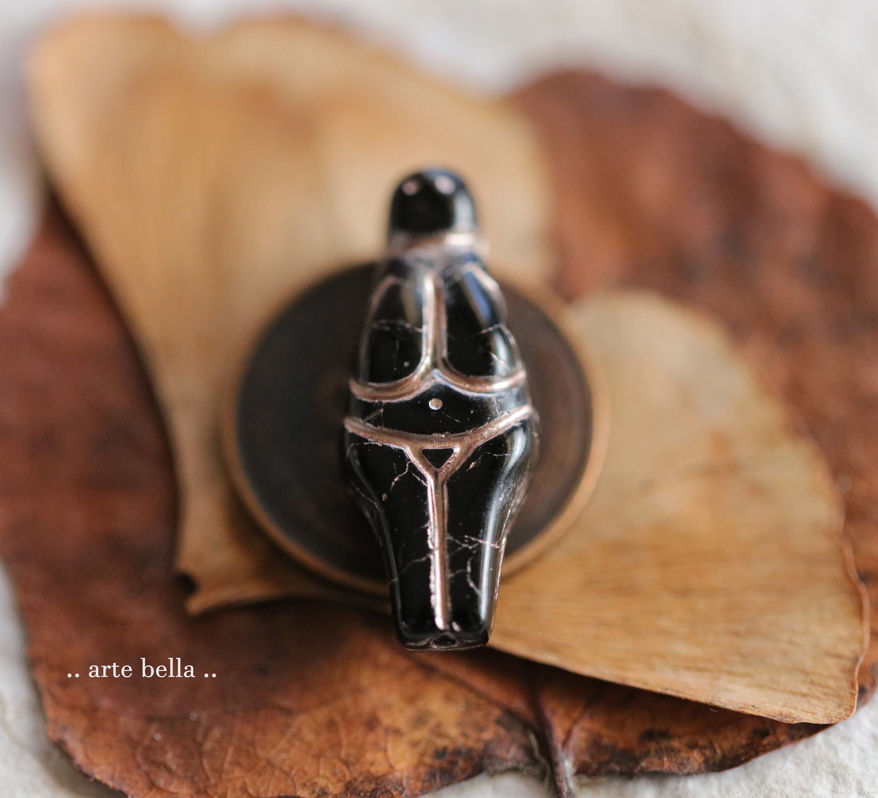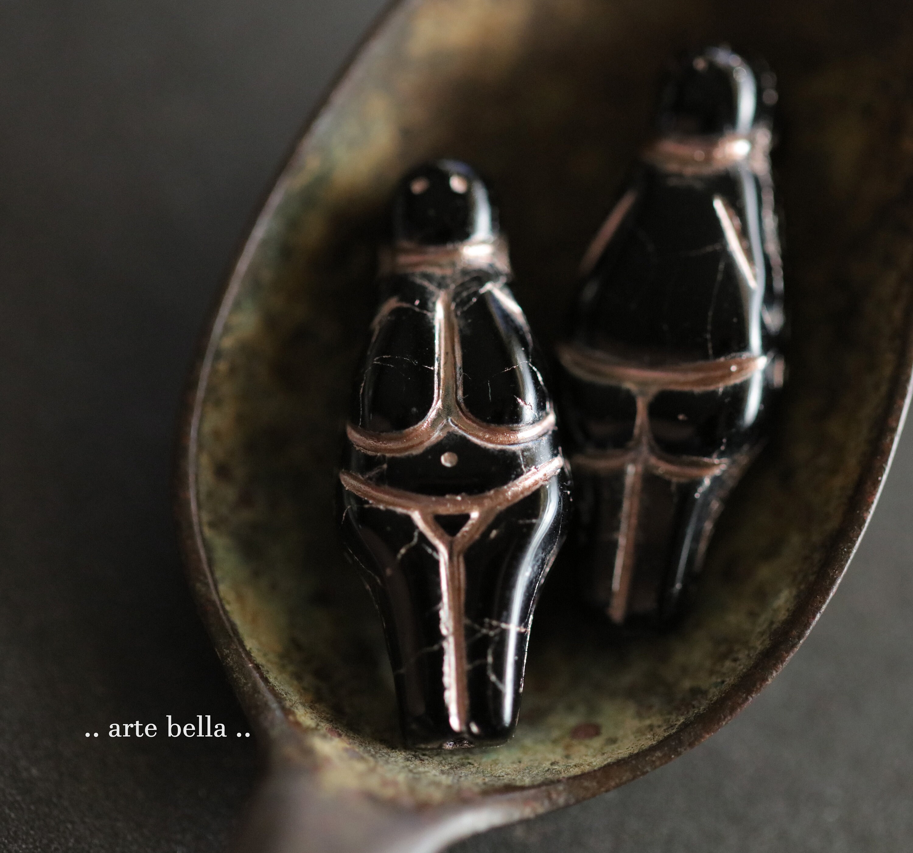 BLUSHING BLACK GODDESS .. 4 Premium Czech Glass Goddess Beads 25x10mm (9567-4) .. jewelry supplies