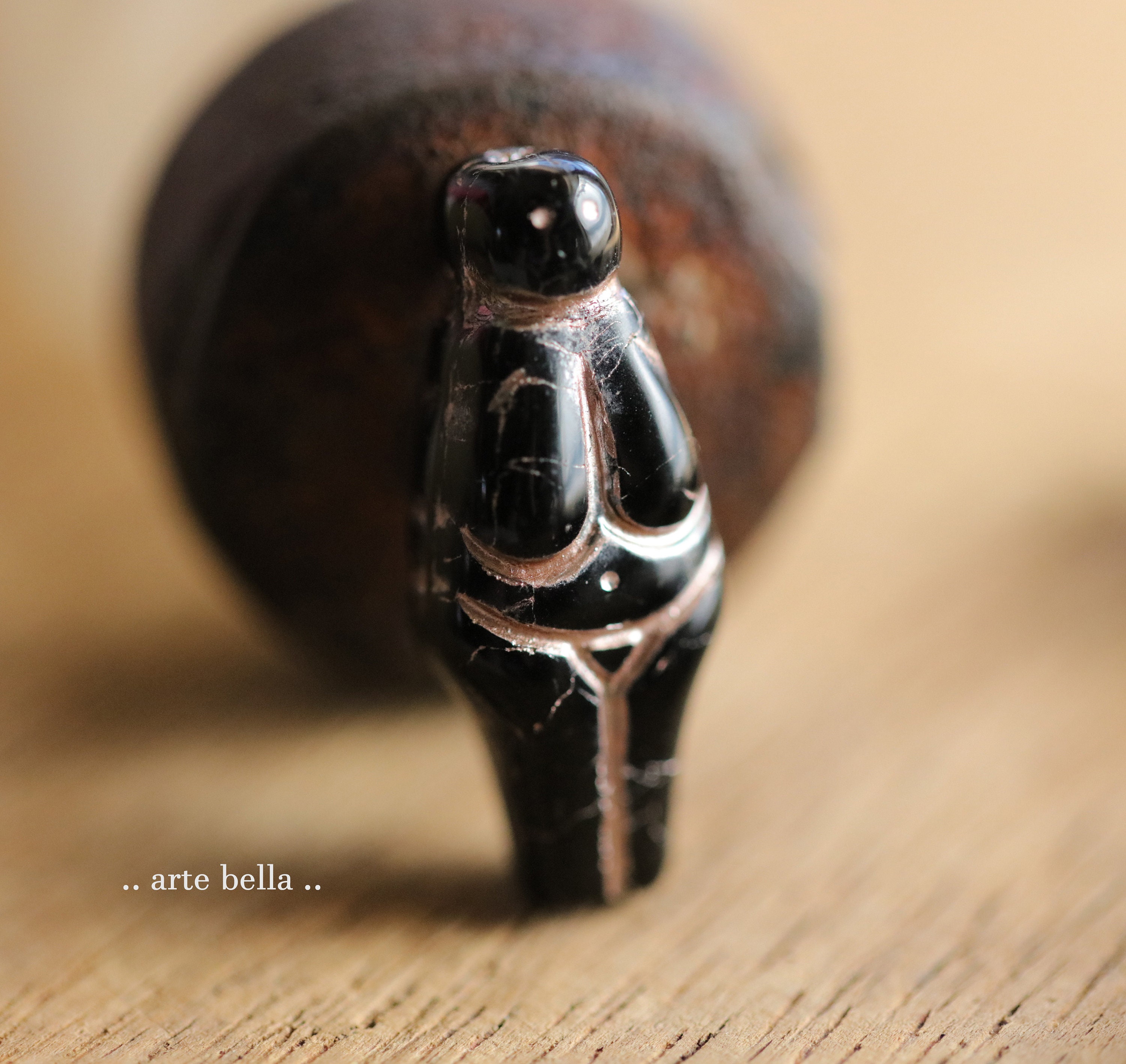 Great female goddess beads in opaque black base glass with a blush platinum pink metallic wash. **PLEASE NOTE: Beads are each unique and one of a kind as seen in my pictures.**