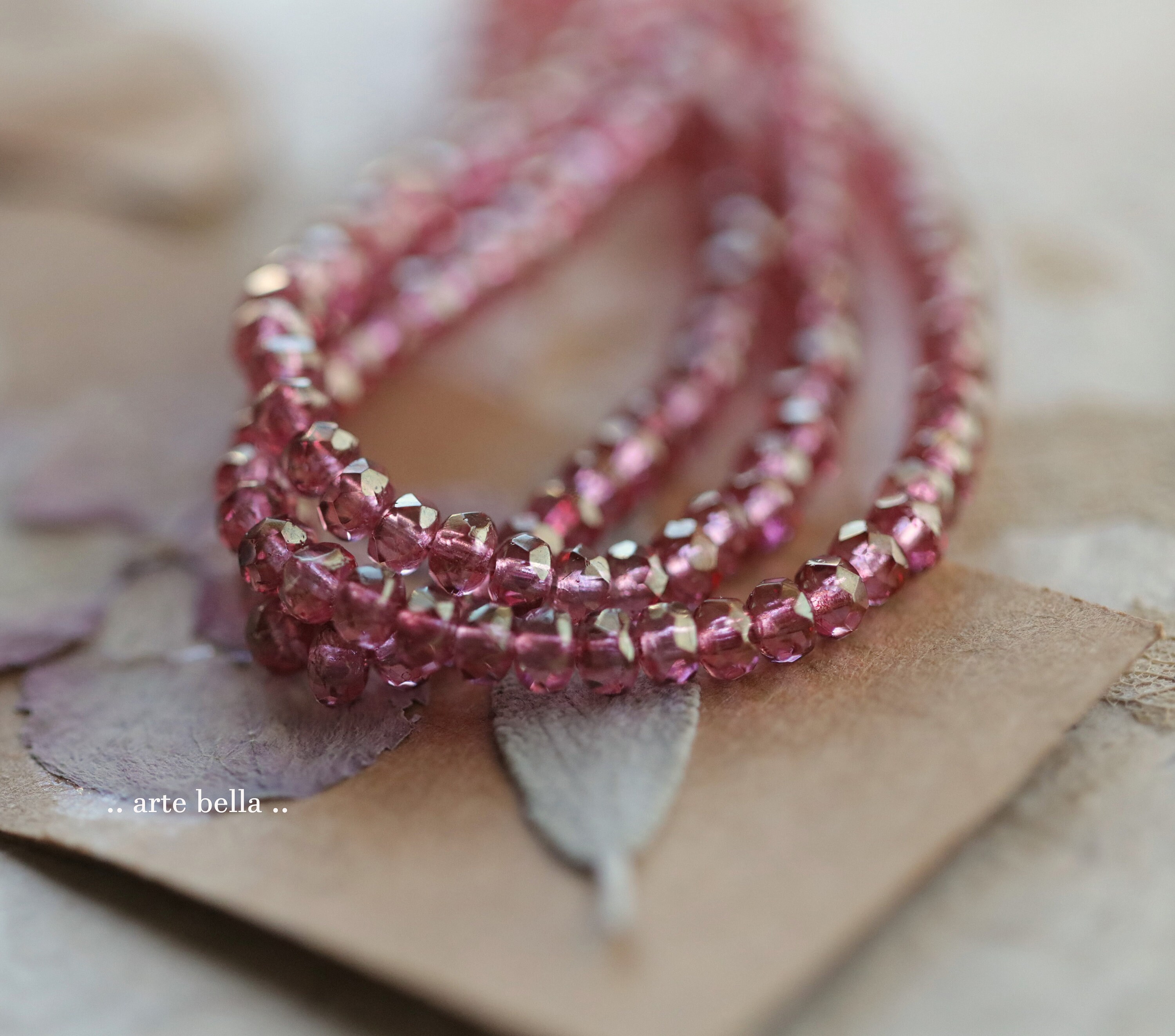 back in stock .. GOLDEN ROSE BITS .. 50 Premium Czech Glass Faceted Rondelle Beads 2.5x4mm (9641-st) .. jewelry supplies