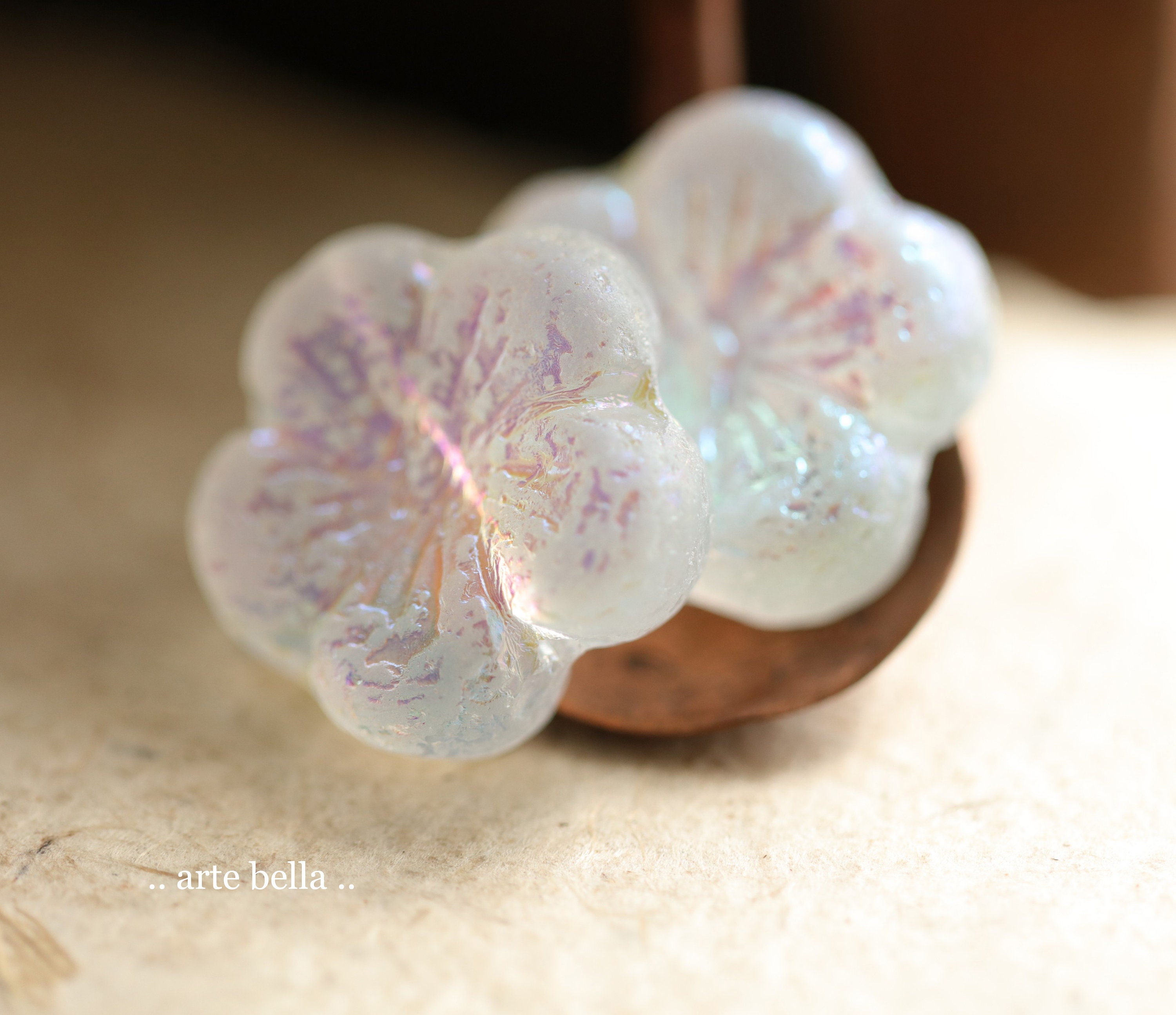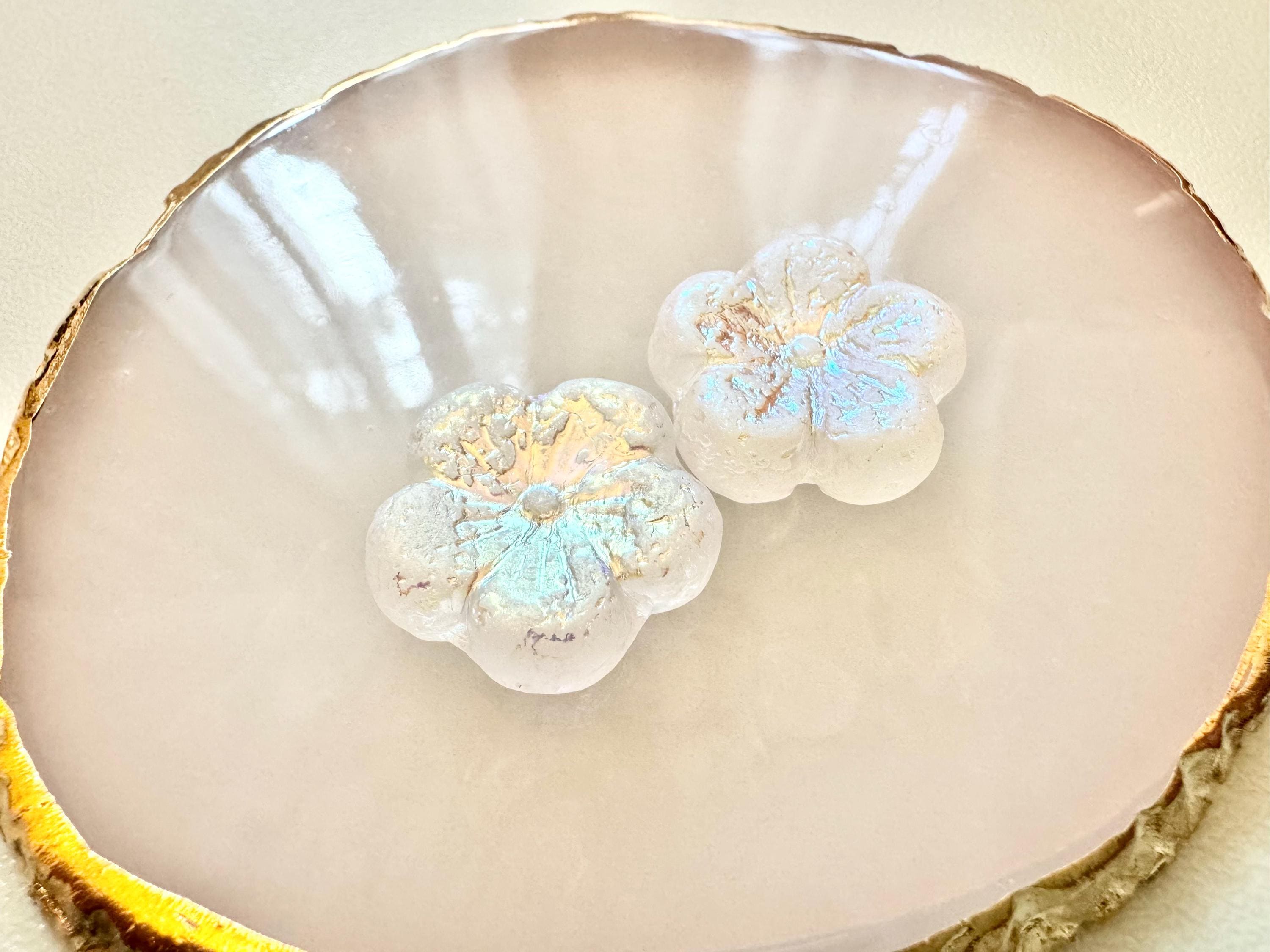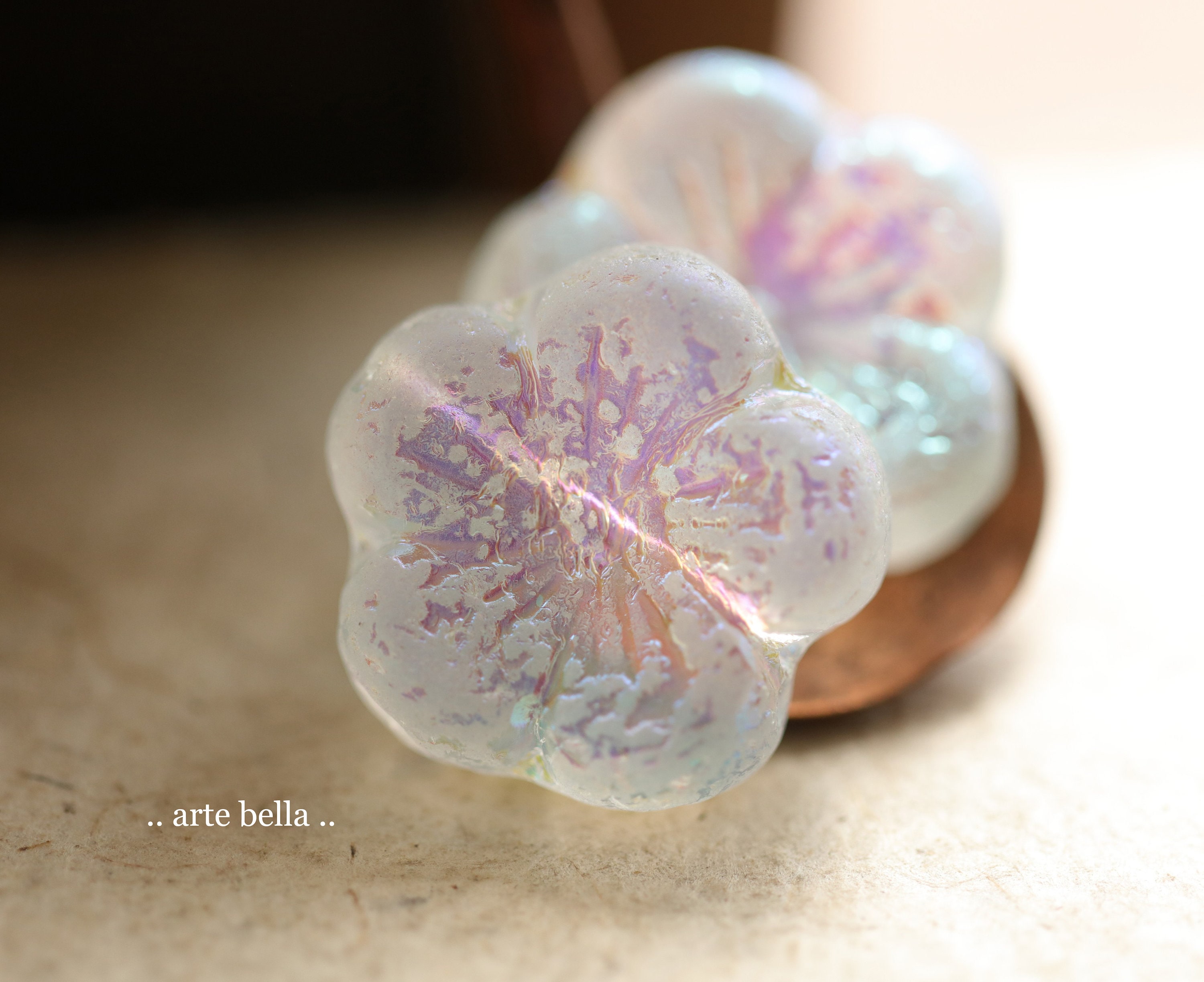 MYSTIC WINTER BLOOMS .. 2 Premium Etched Czech Glass Hibiscus Flower Bead 22mm (9953-2) .. jewelry supplies