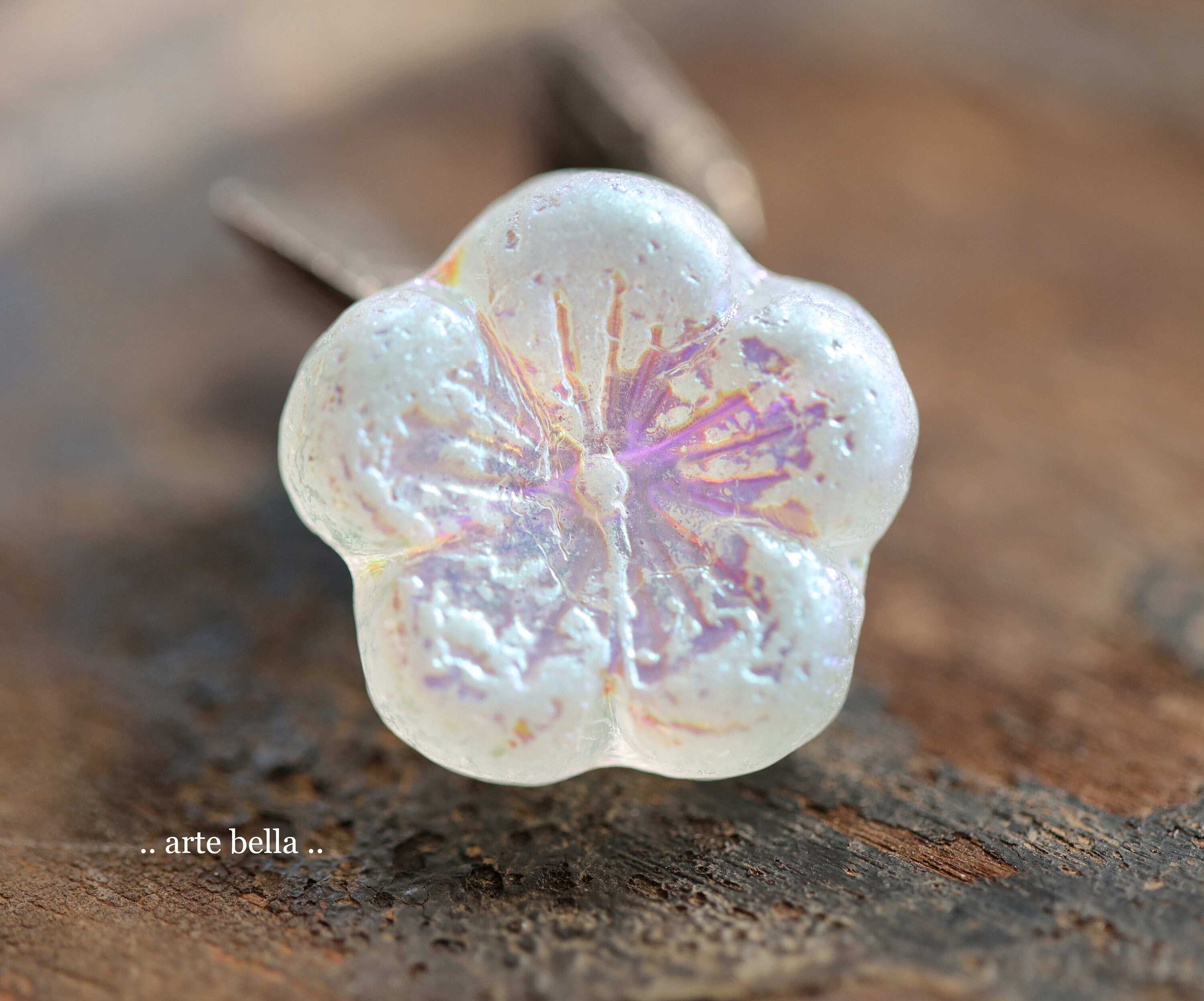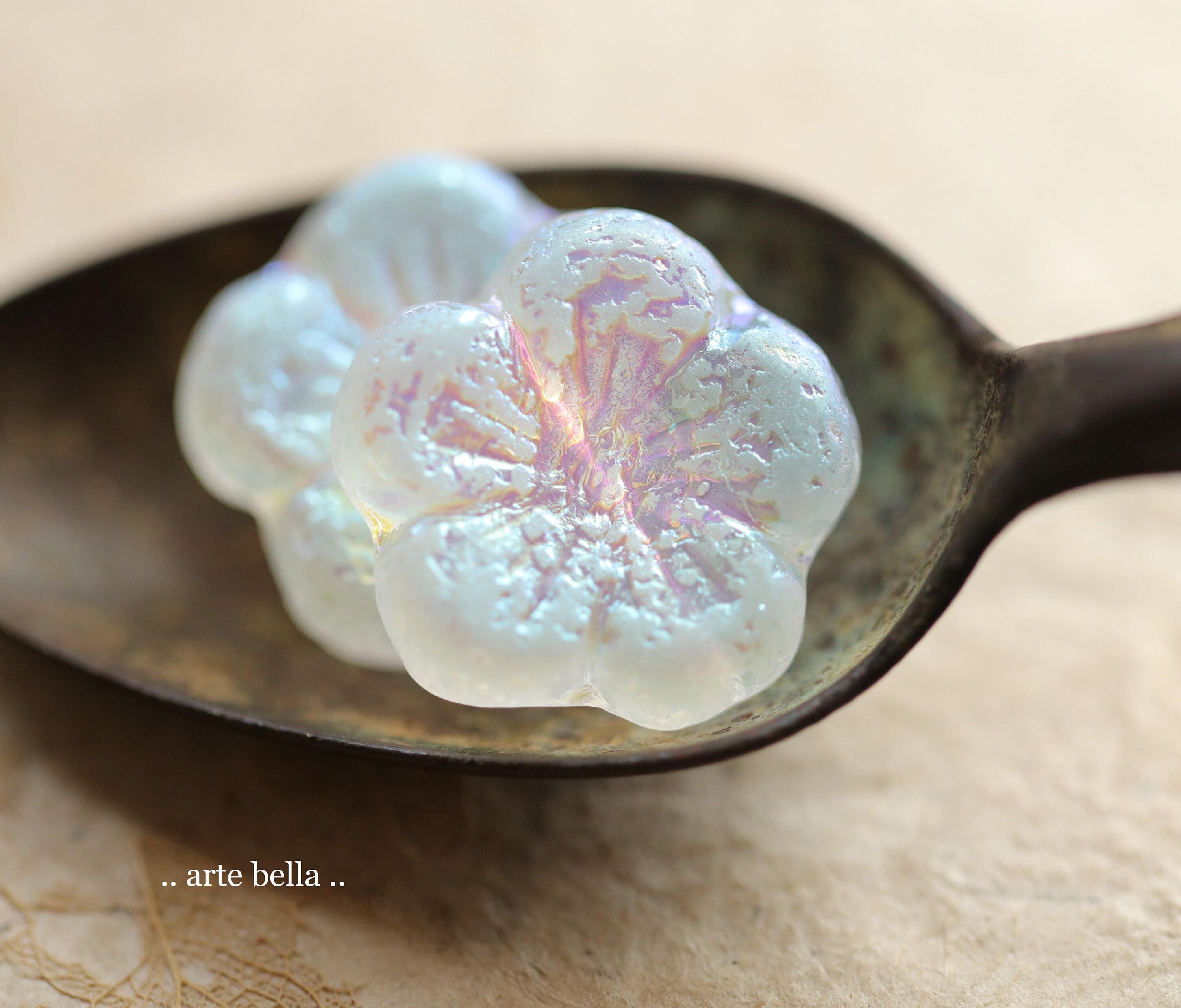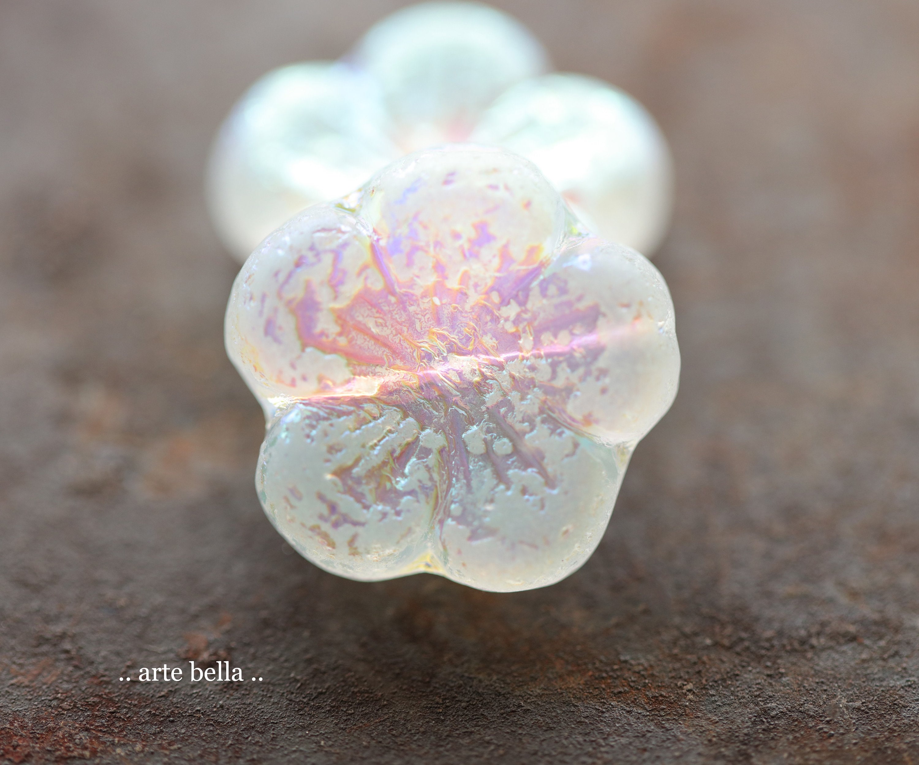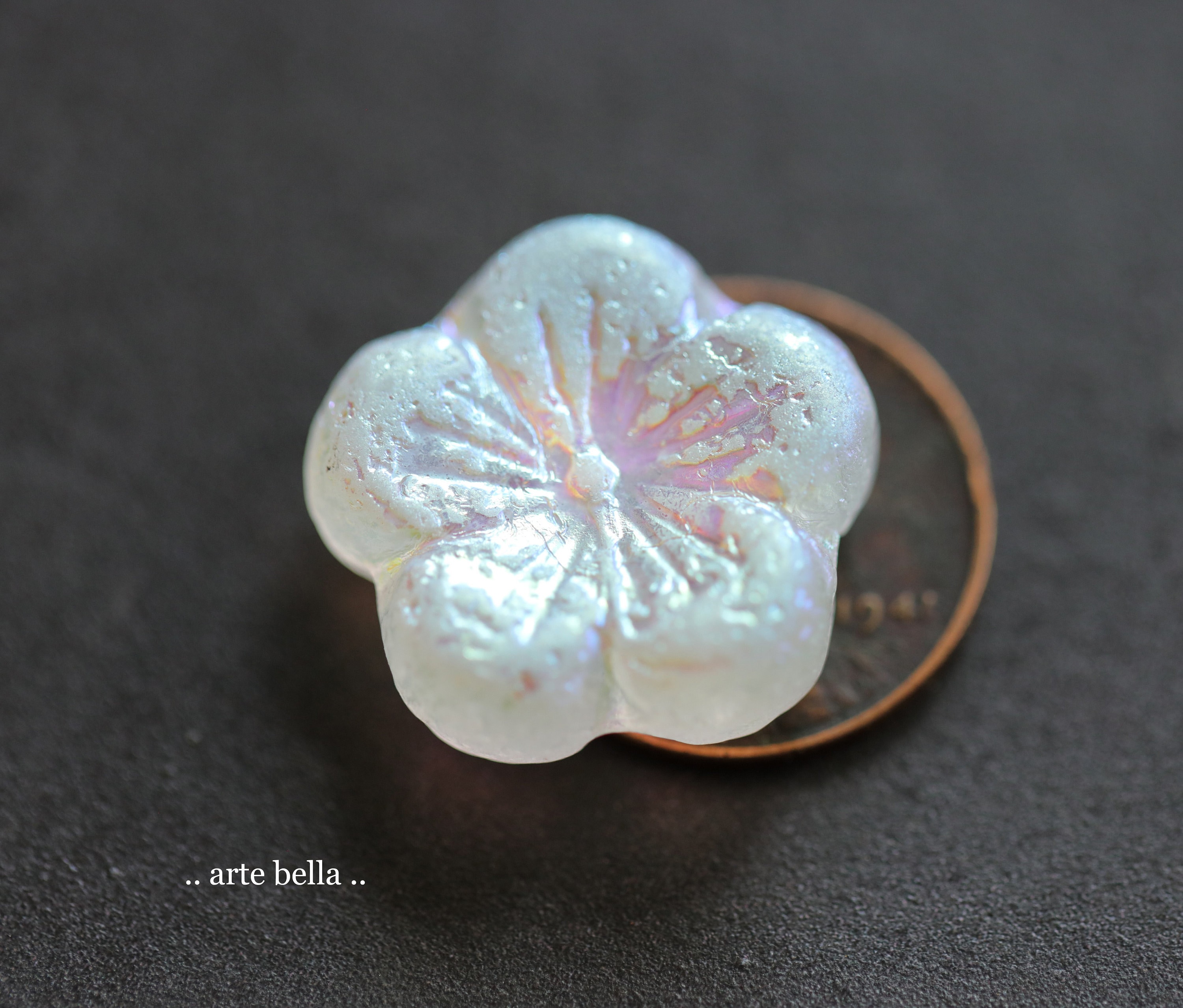 MYSTIC WINTER BLOOMS .. 2 Premium Etched Czech Glass Hibiscus Flower Bead 22mm (9953-2) .. jewelry supplies