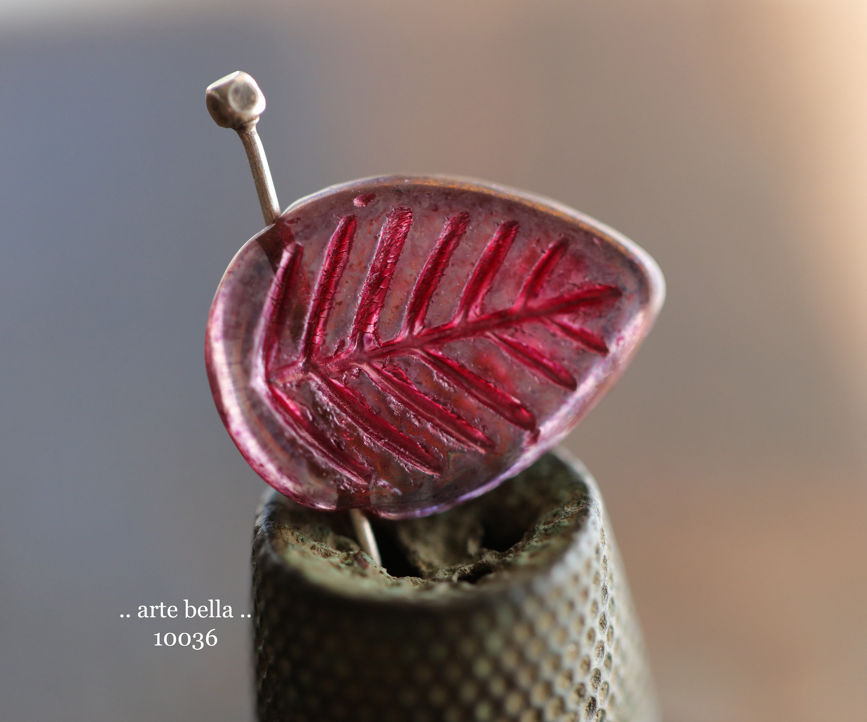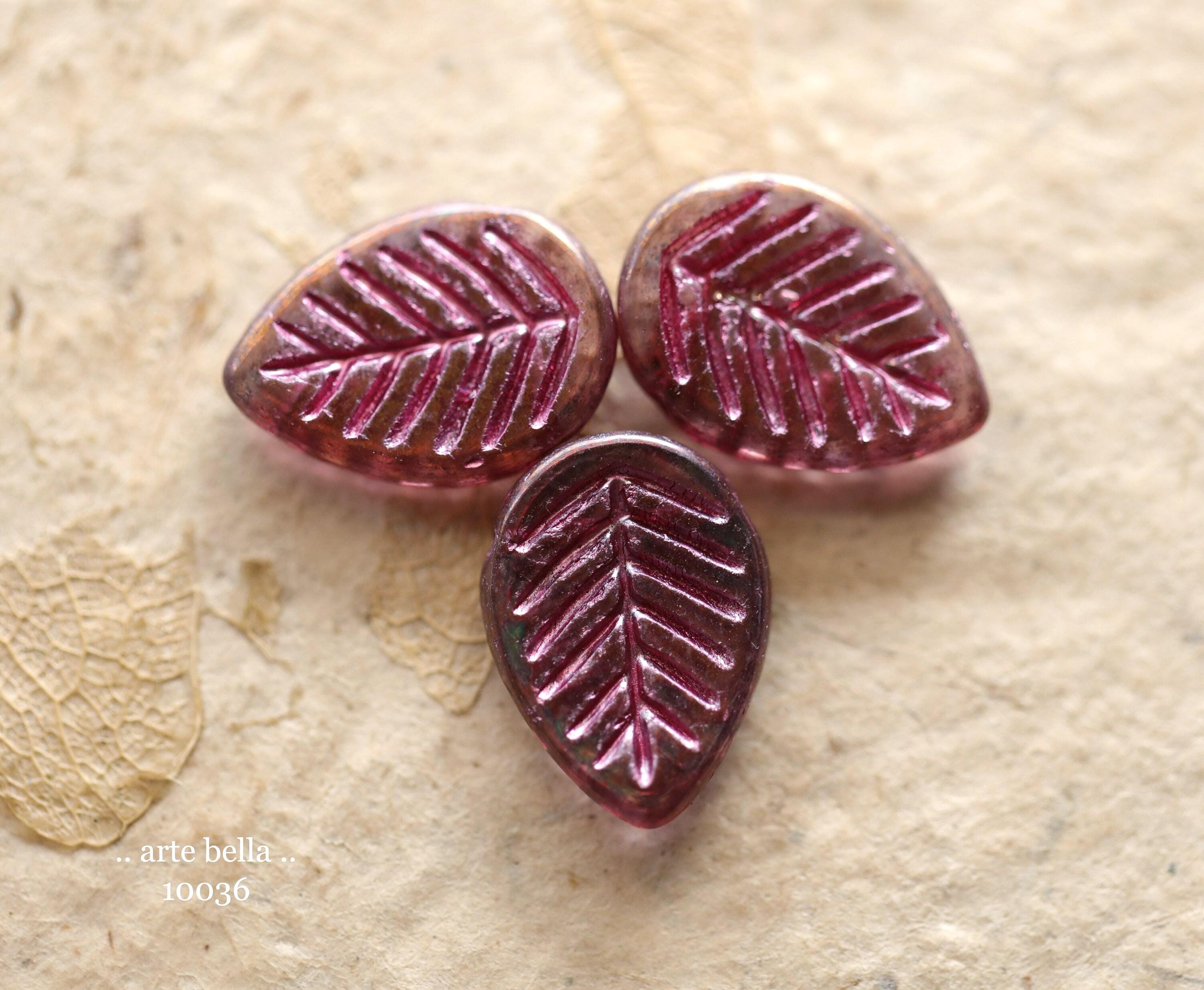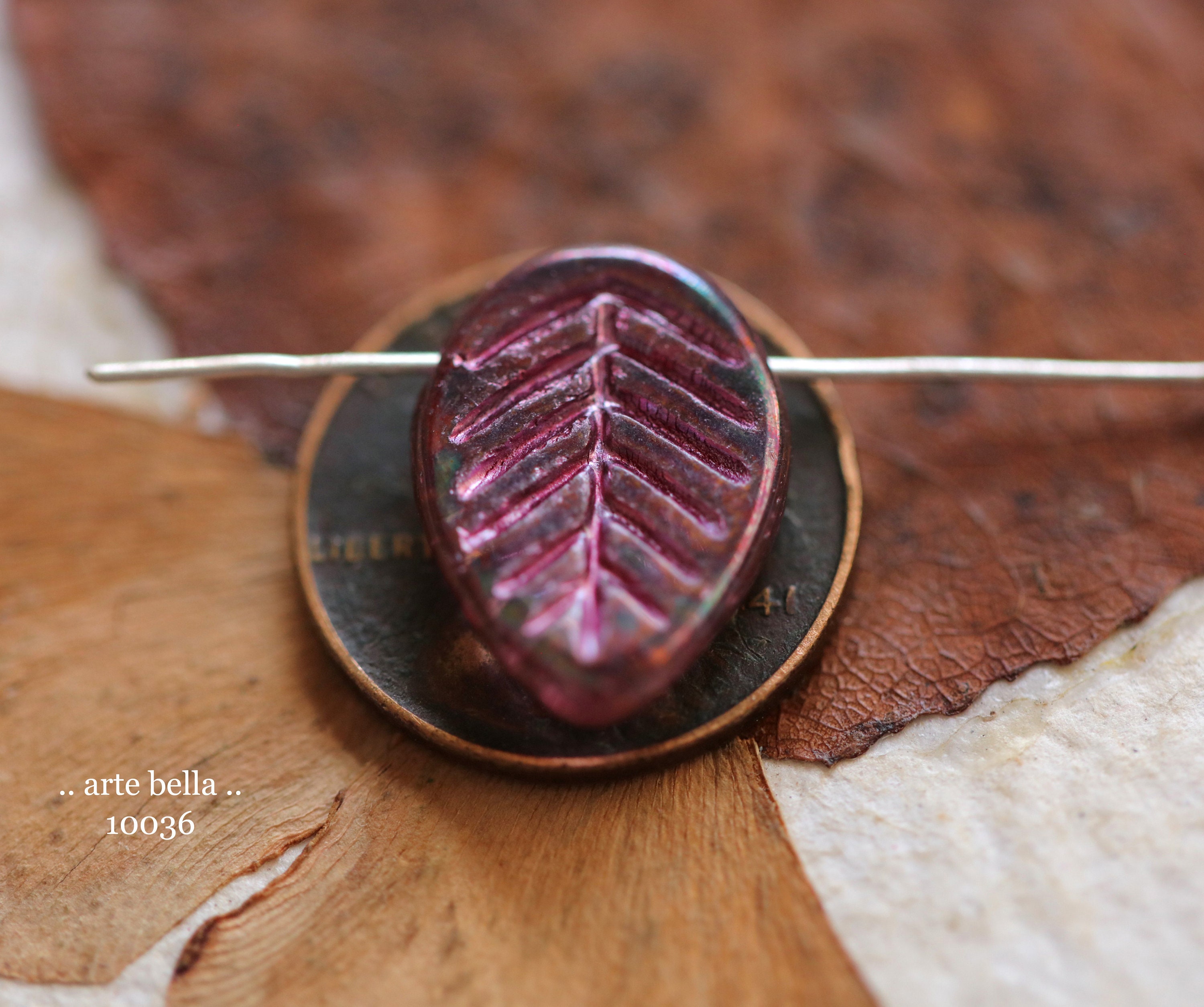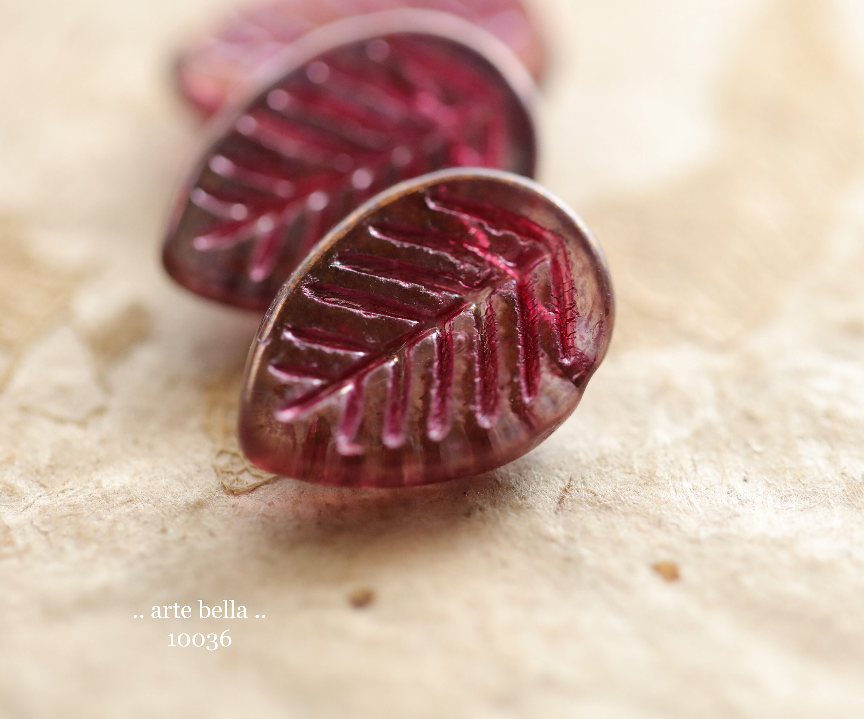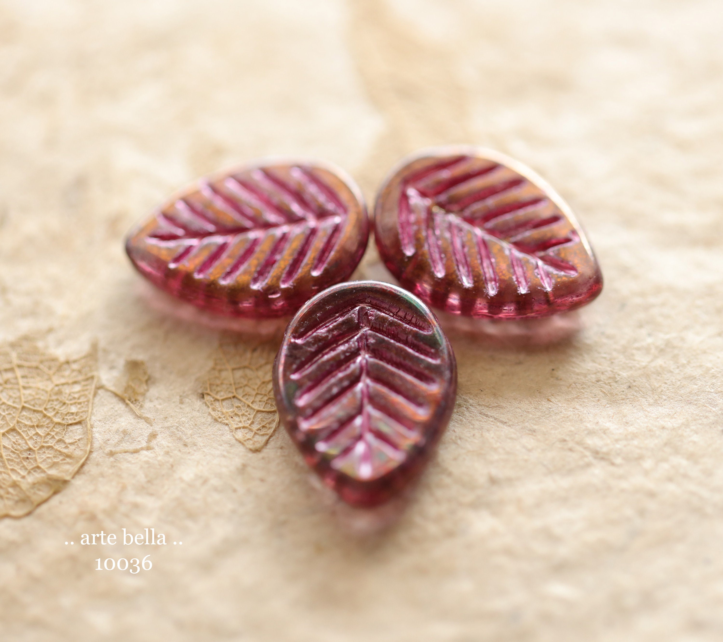 back in stock .. BRONZED MULBERRY LEAVES .. 8 Premium Czech Glass Dogwood Leaf Beads 12x16mmmm (10036-8) .. jewelry supplies