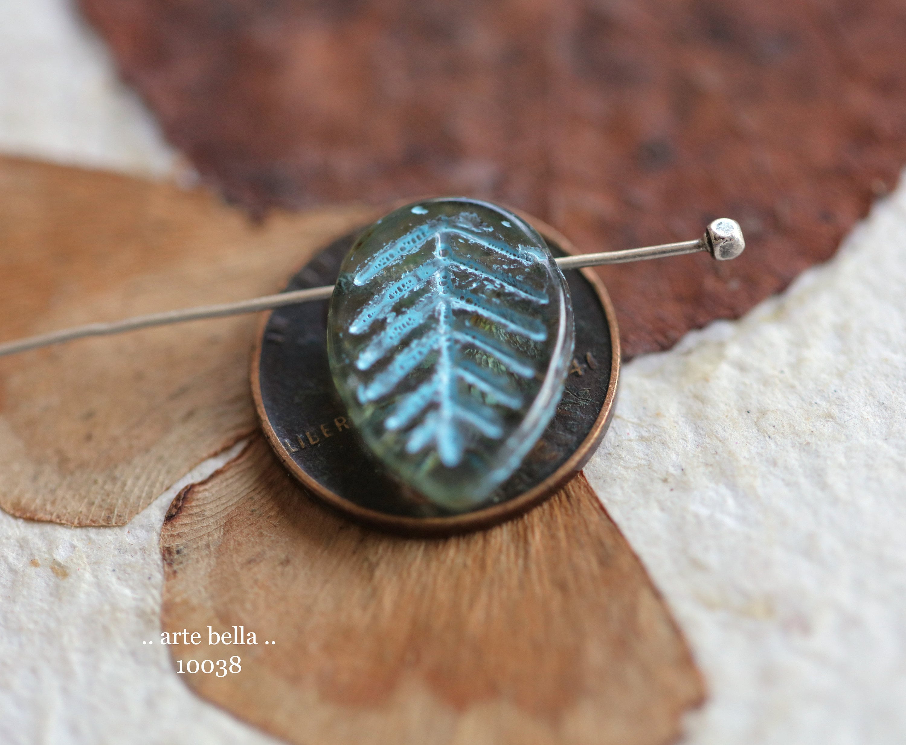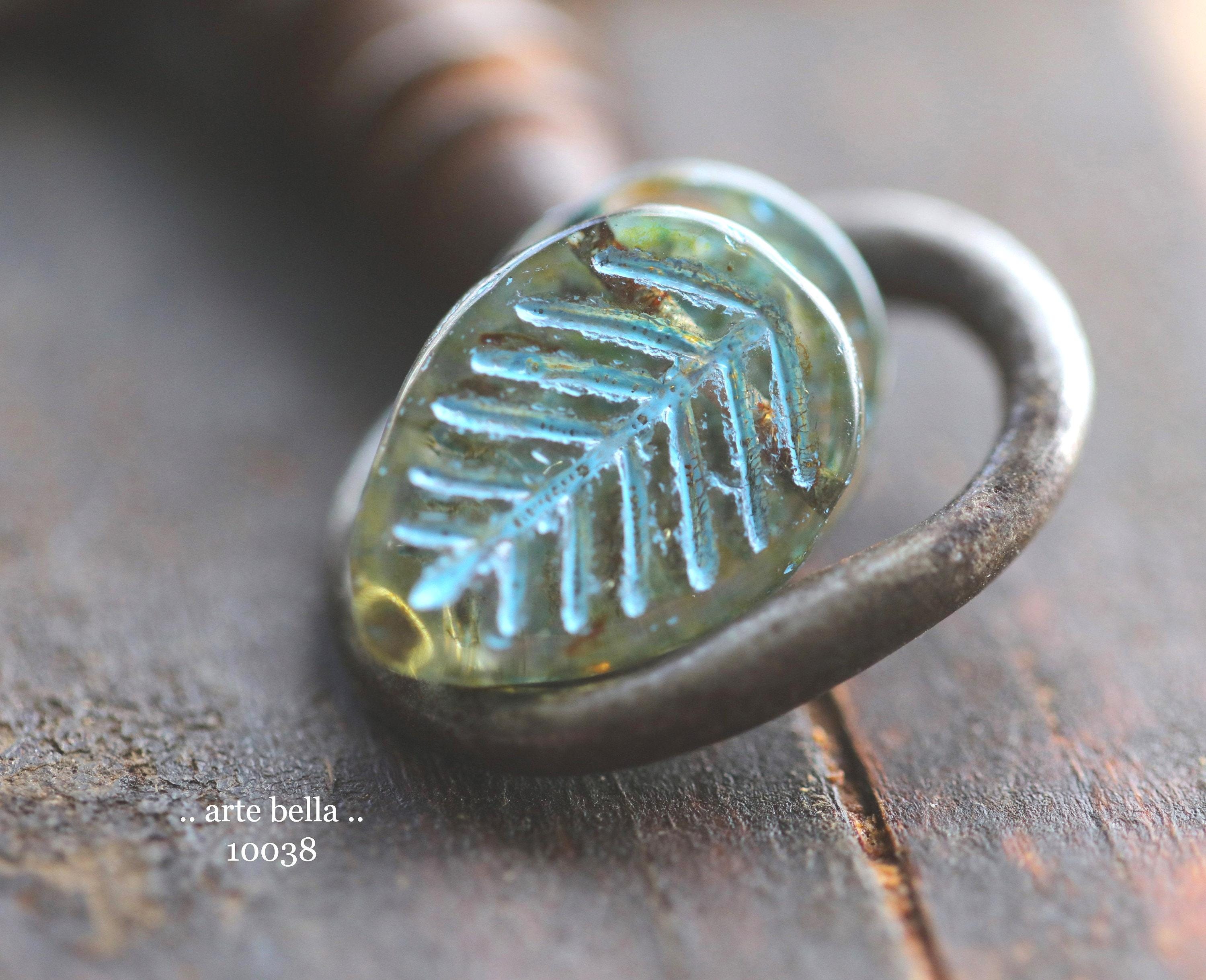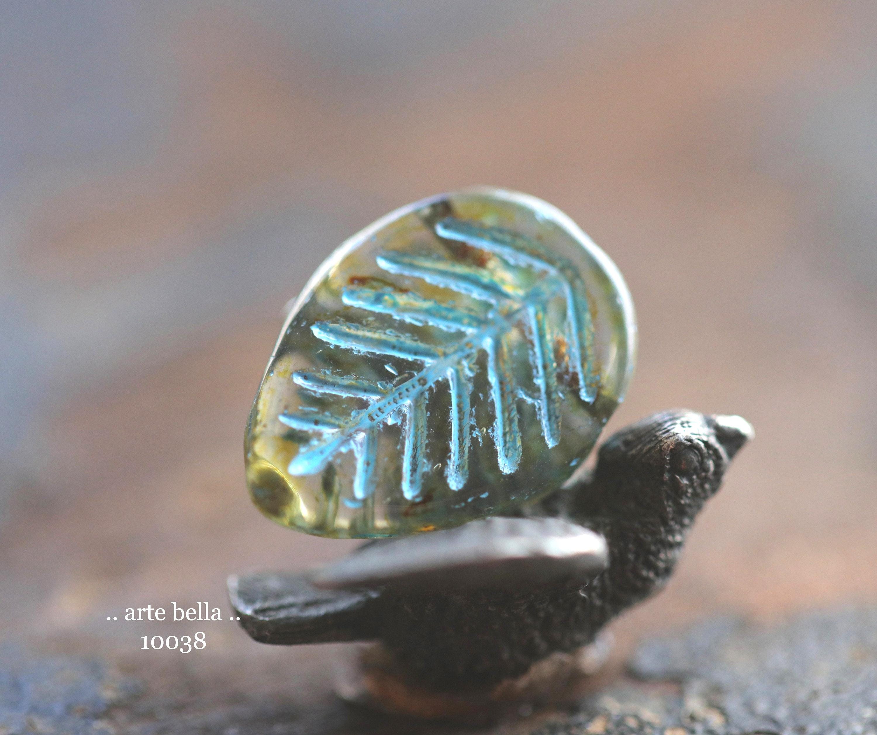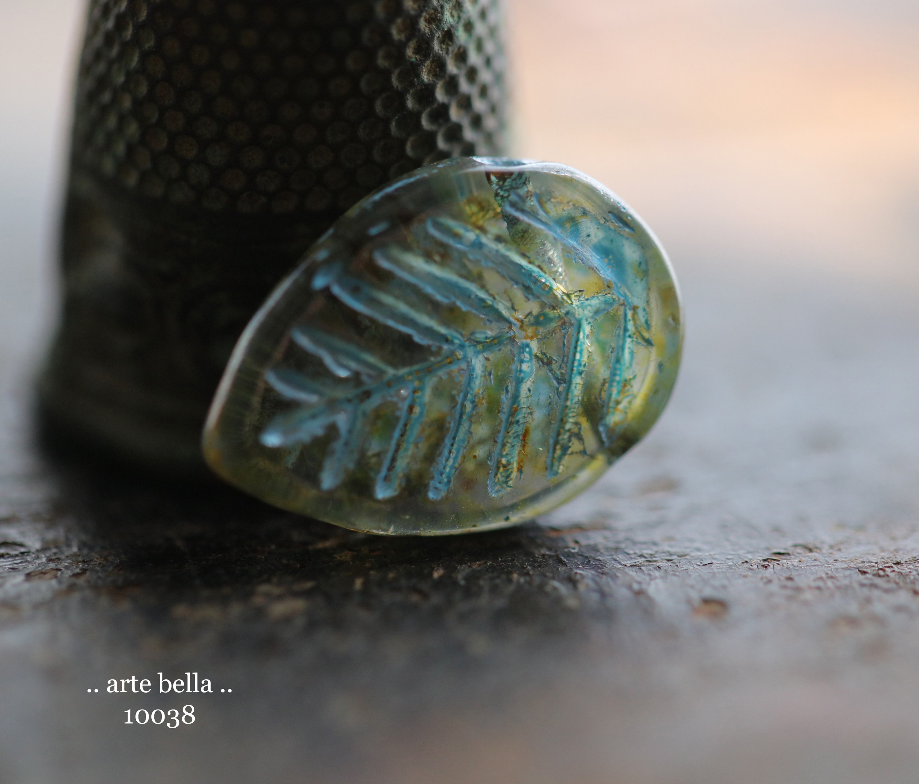back in stock .. BLUE HONEY LEAVES .. 8 Premium Picasso Czech Glass Dogwood Leaf Beads 12x16mm (10038-8) .. jewelry supplies