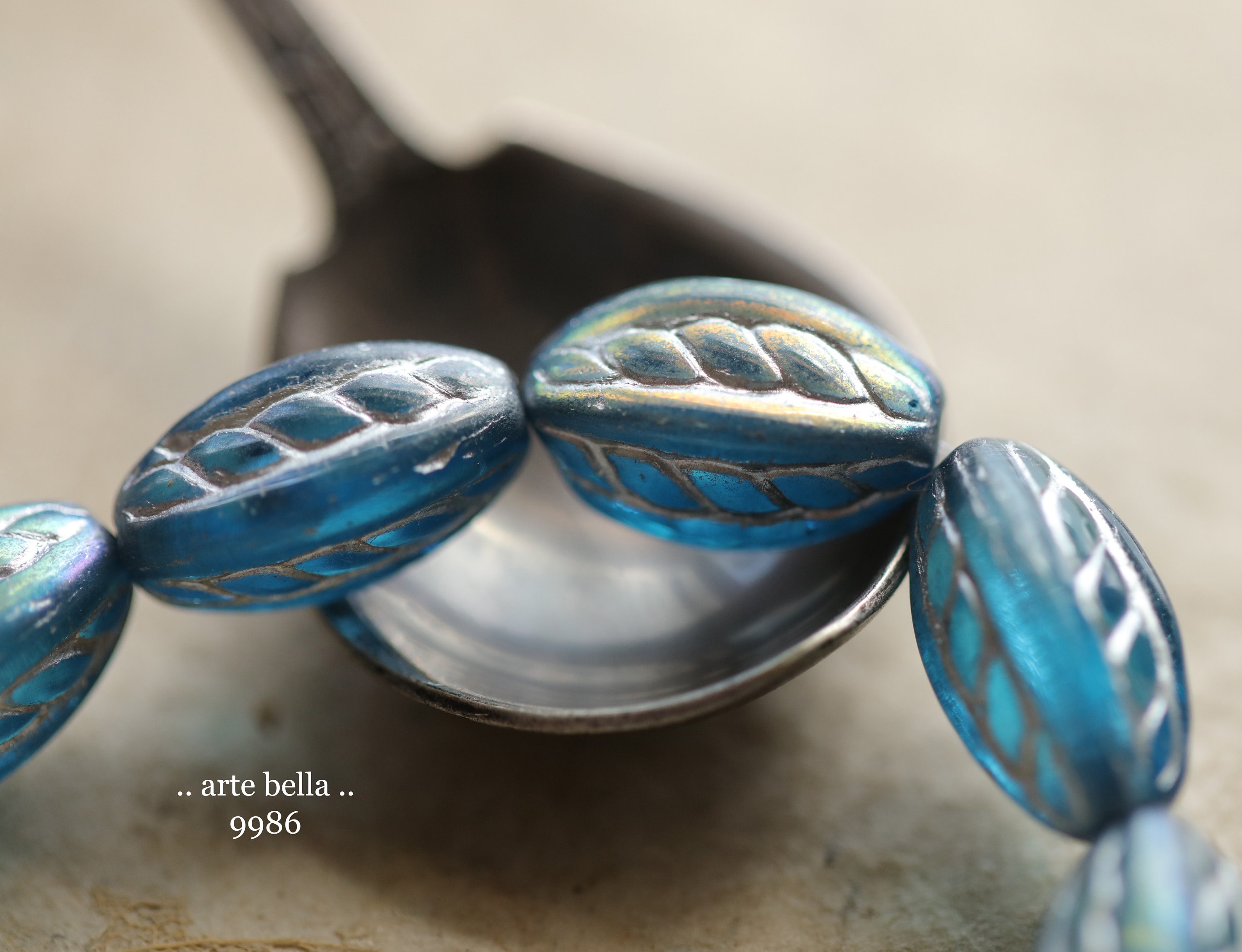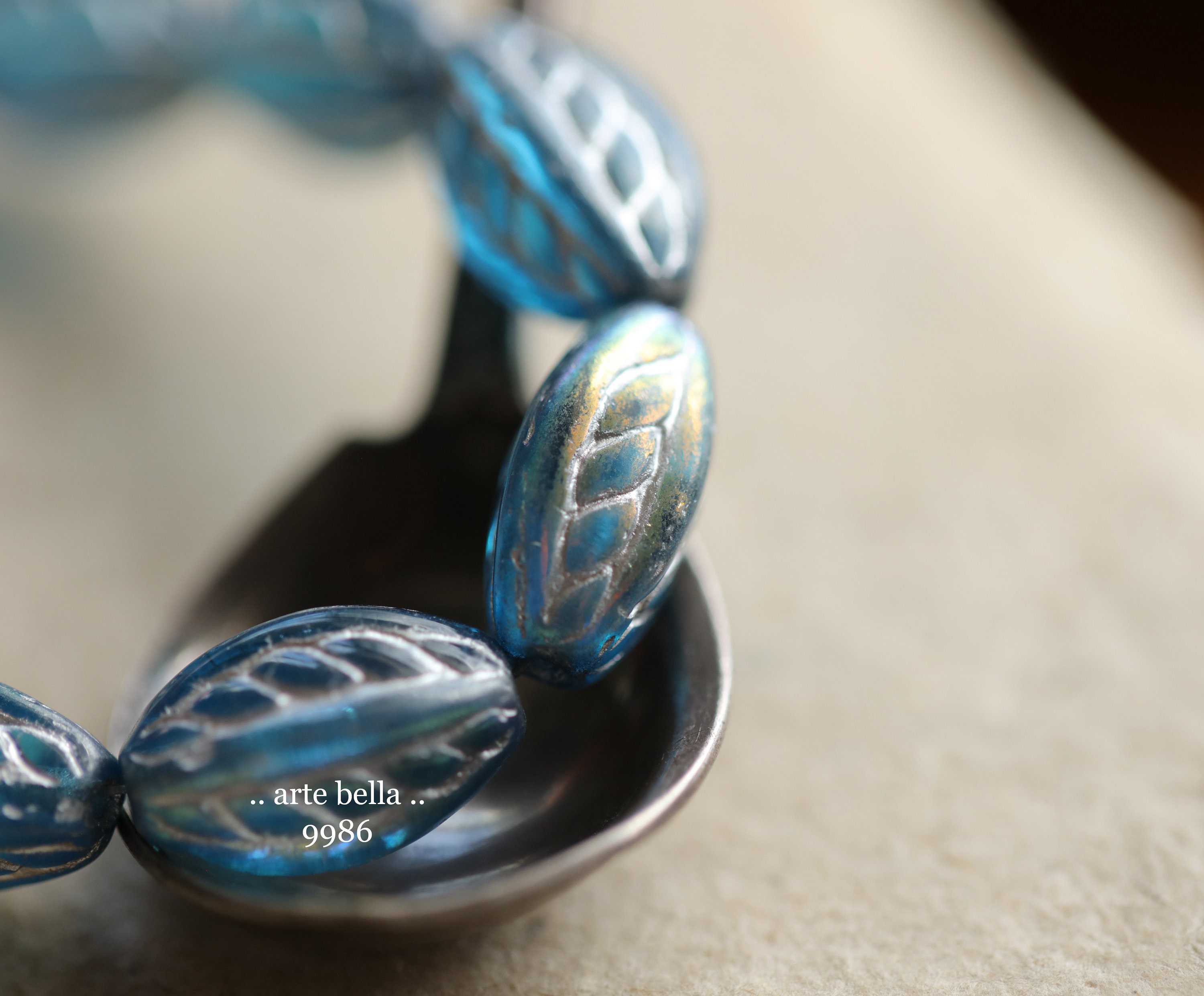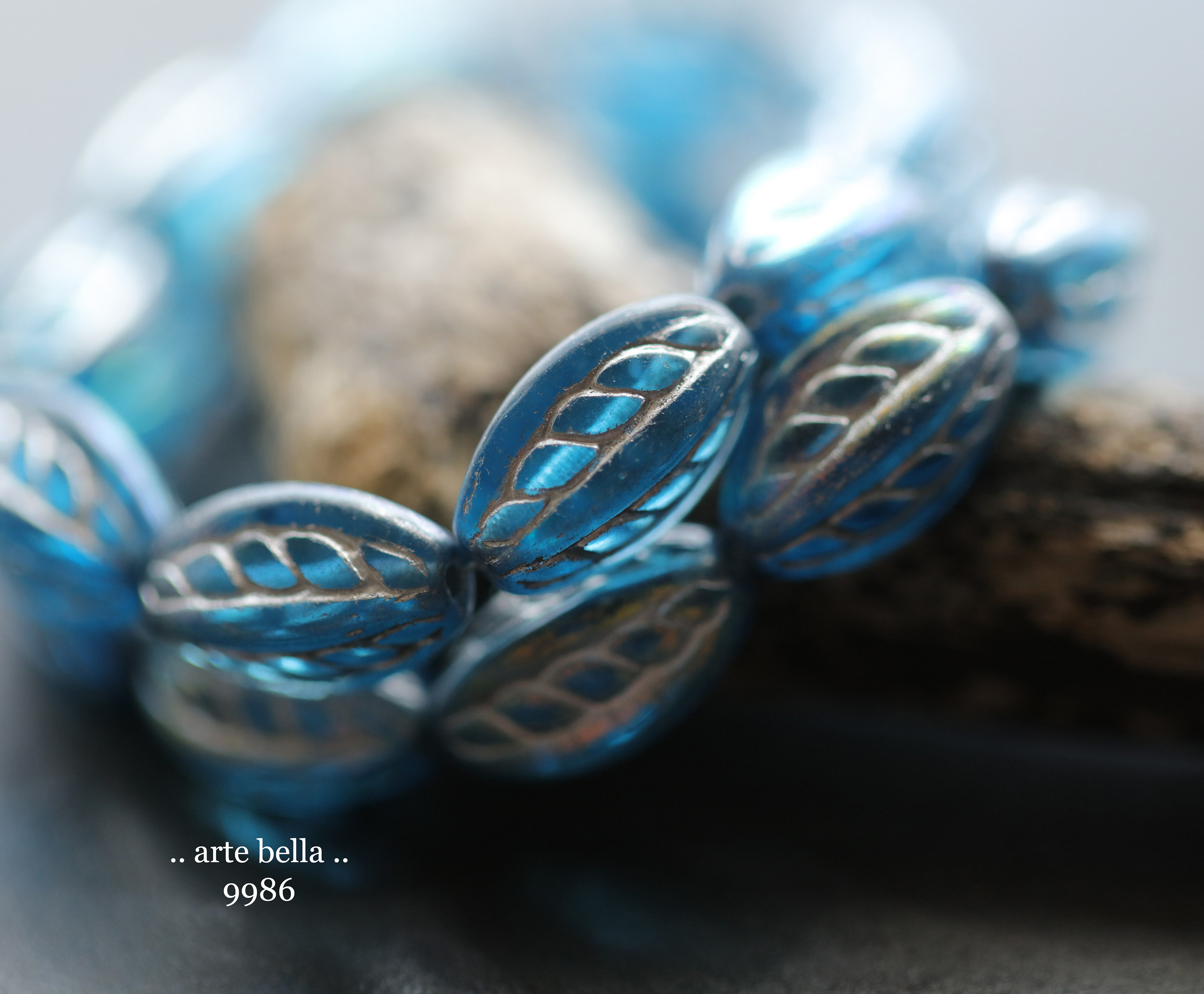 Such pretty beads, love this new shape .. sky blue base glass with a silver wash and Aurora Borealis rainbow metallic finish .. gorgeous!!