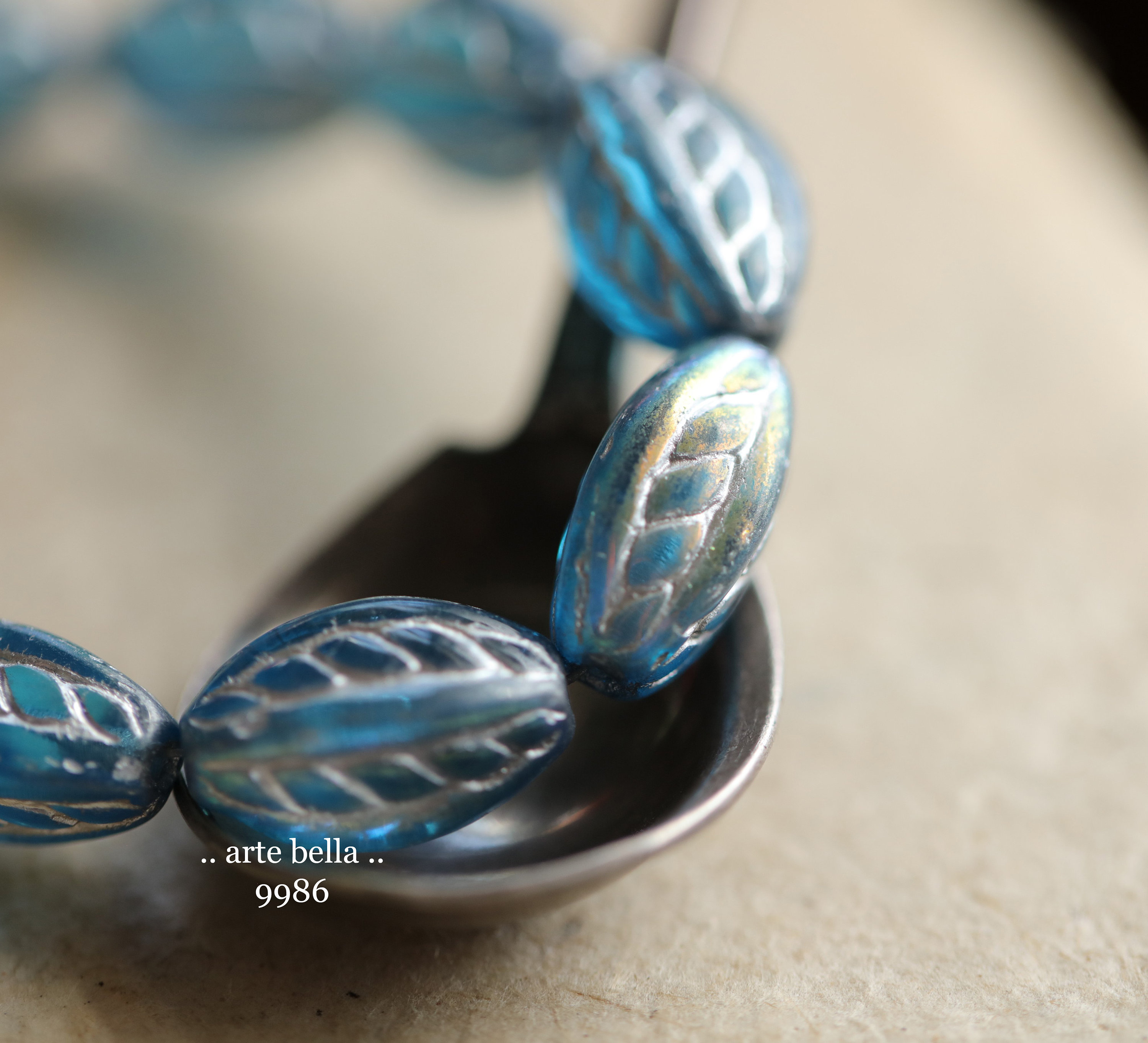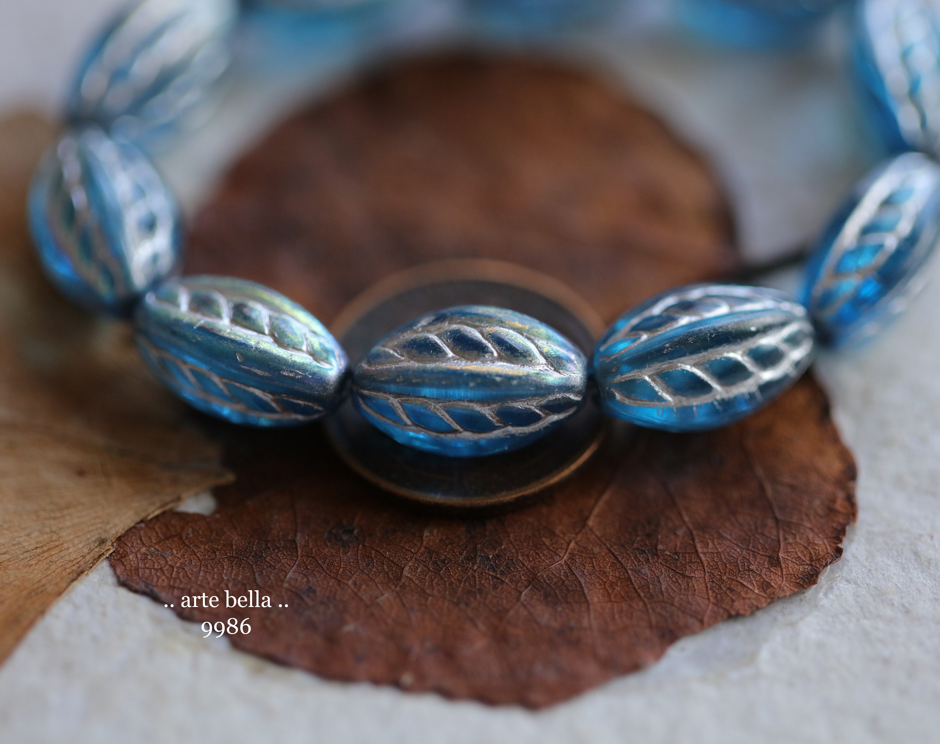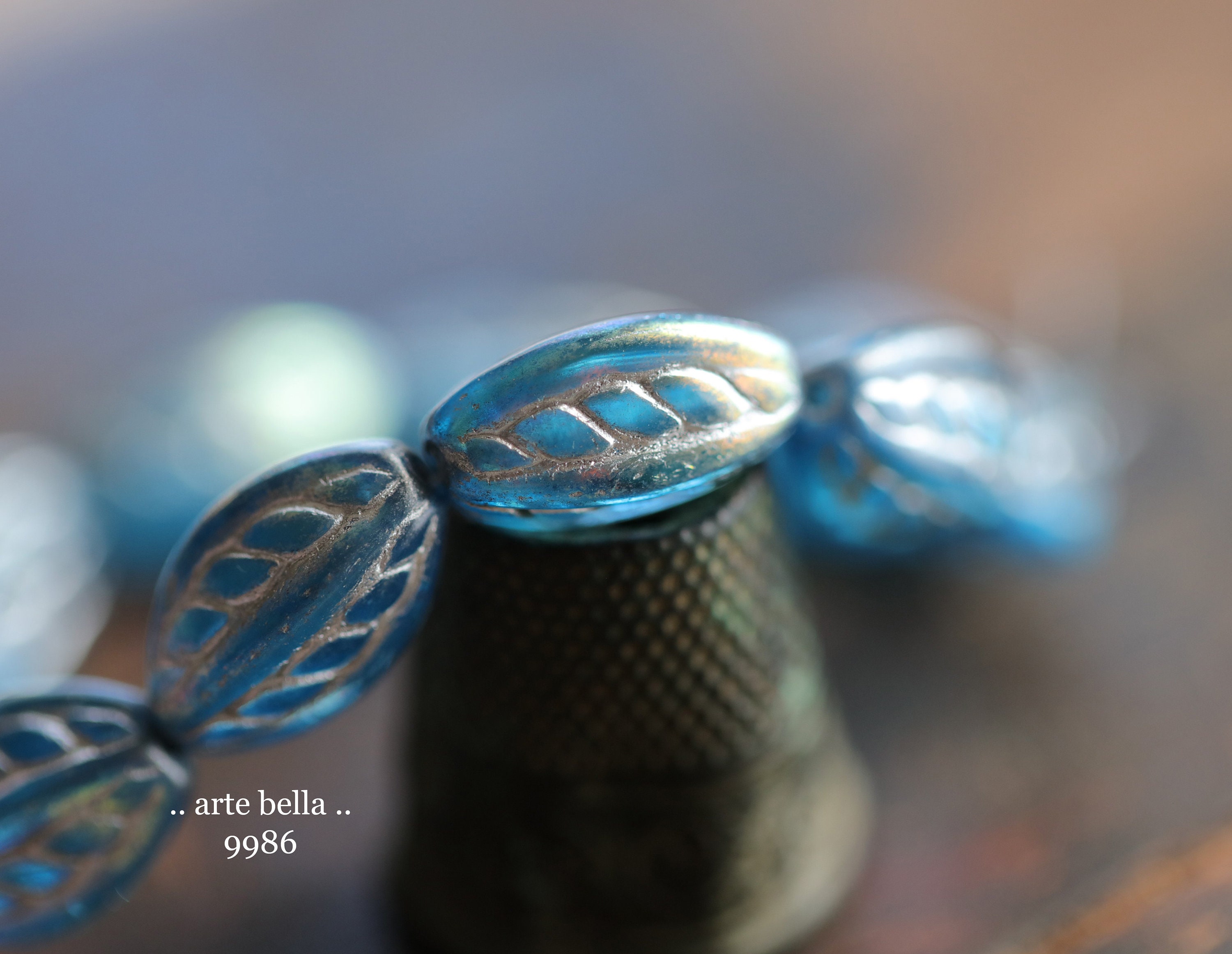 Such pretty beads, love this new shape .. sky blue base glass with a silver wash and Aurora Borealis rainbow metallic finish .. gorgeous!!