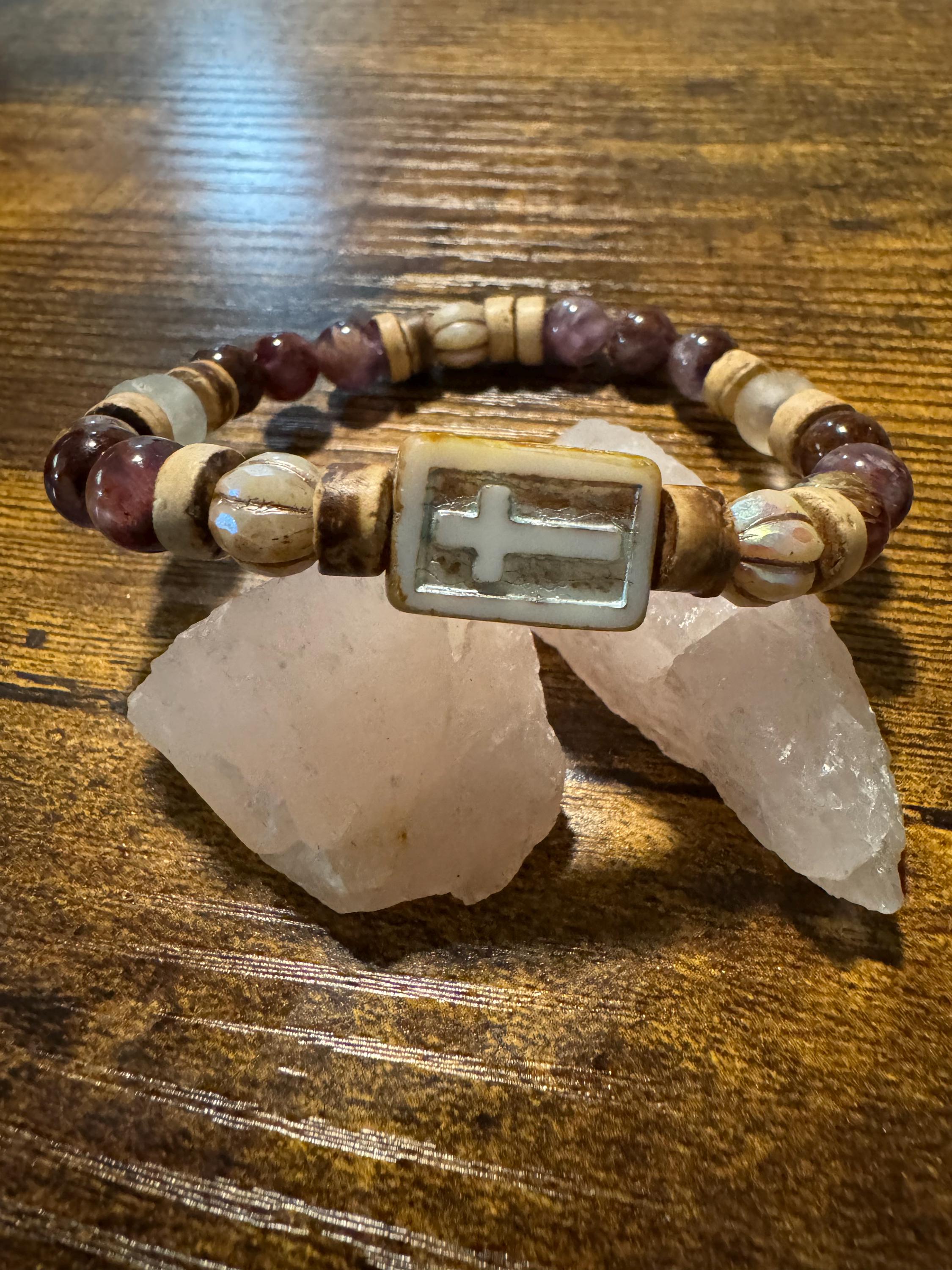 PEARLY WHITE CROSSES .. 6 Picasso Czech Glass Rectangle Cross Bead Mix 17x12mm (10156-6) .. rosary supplies