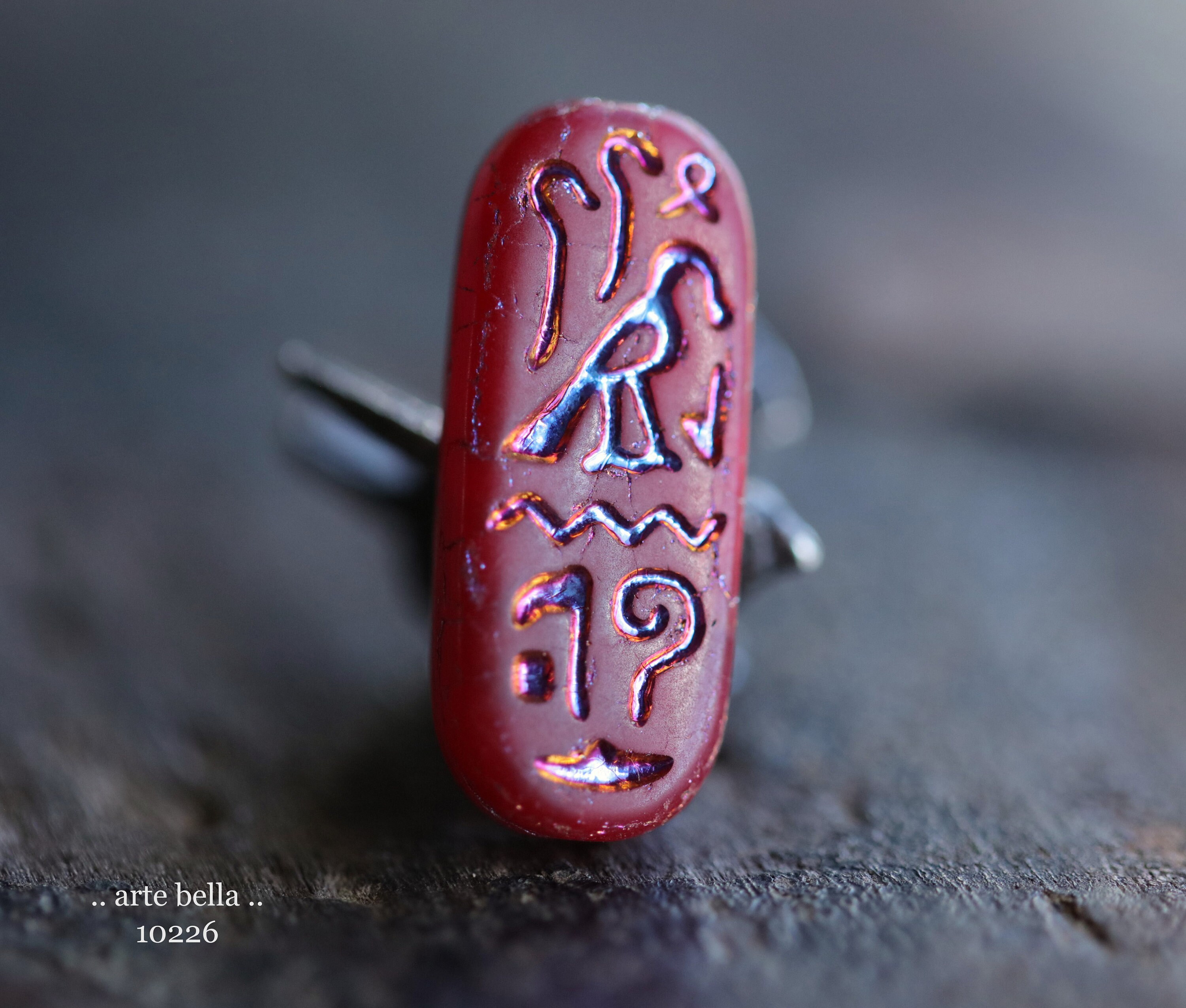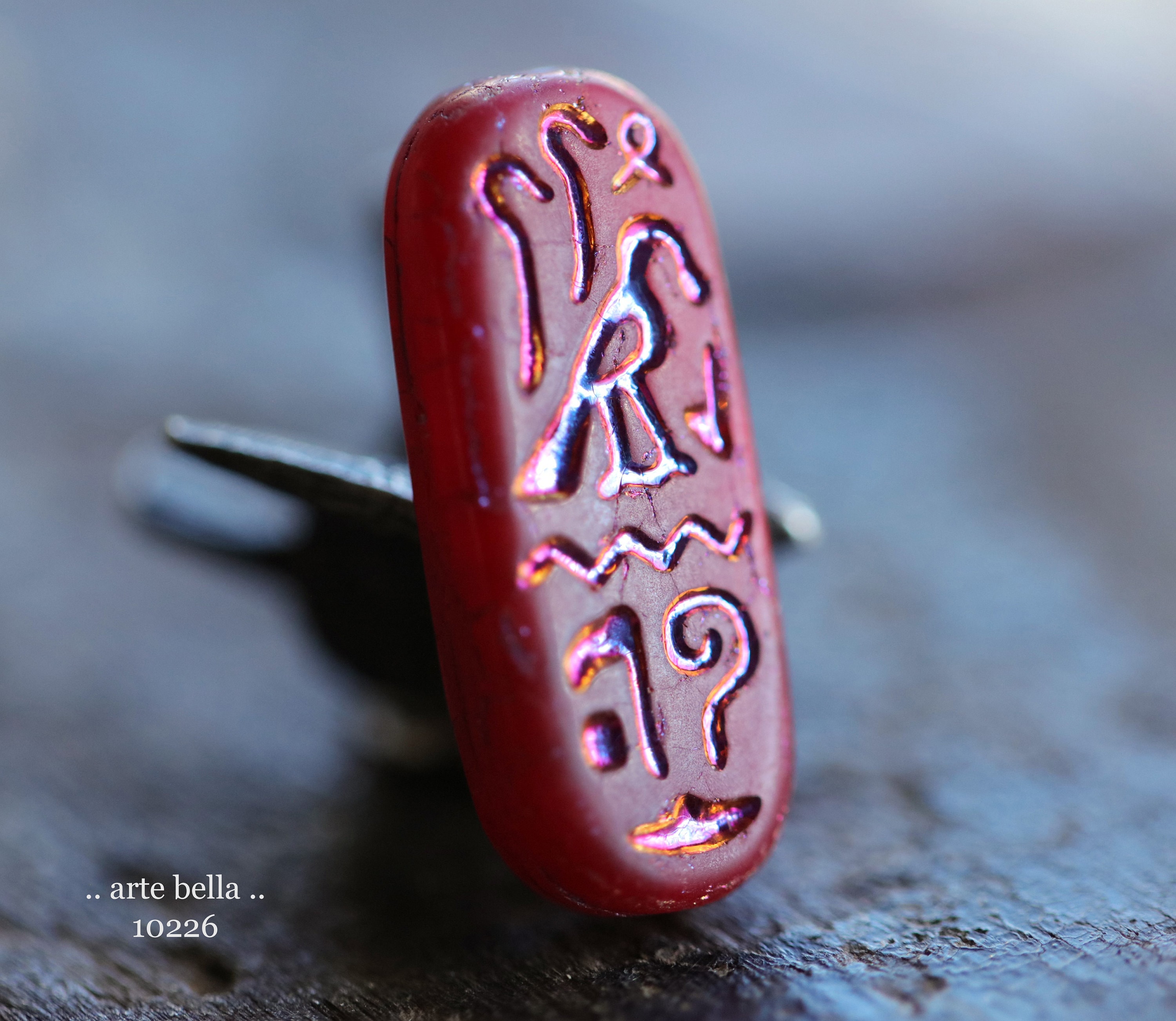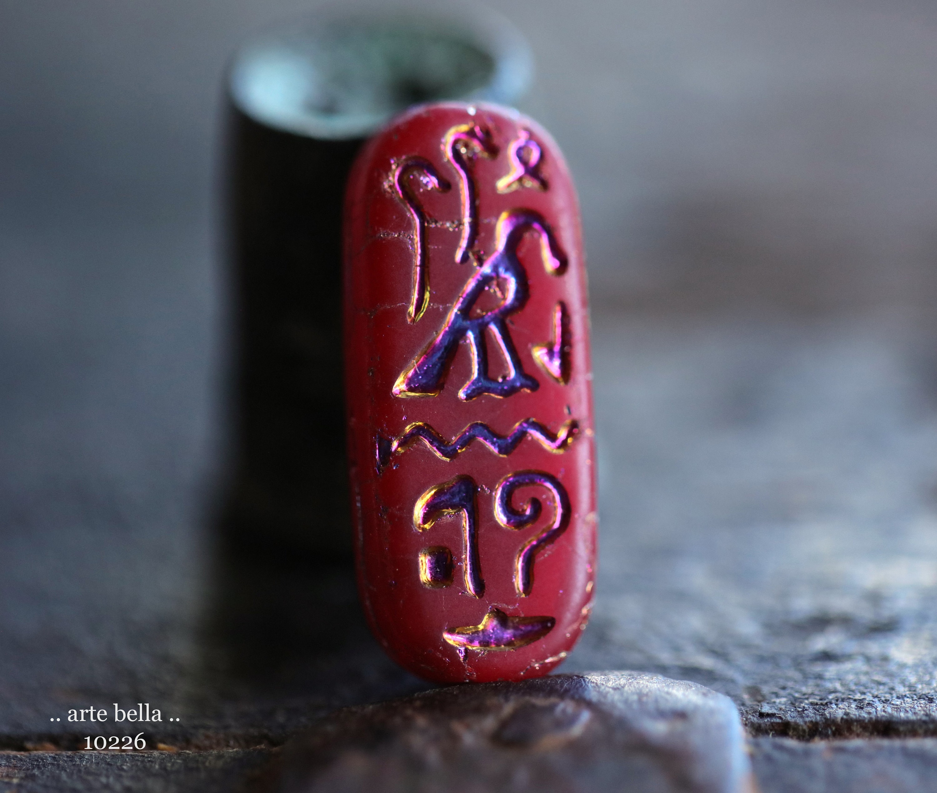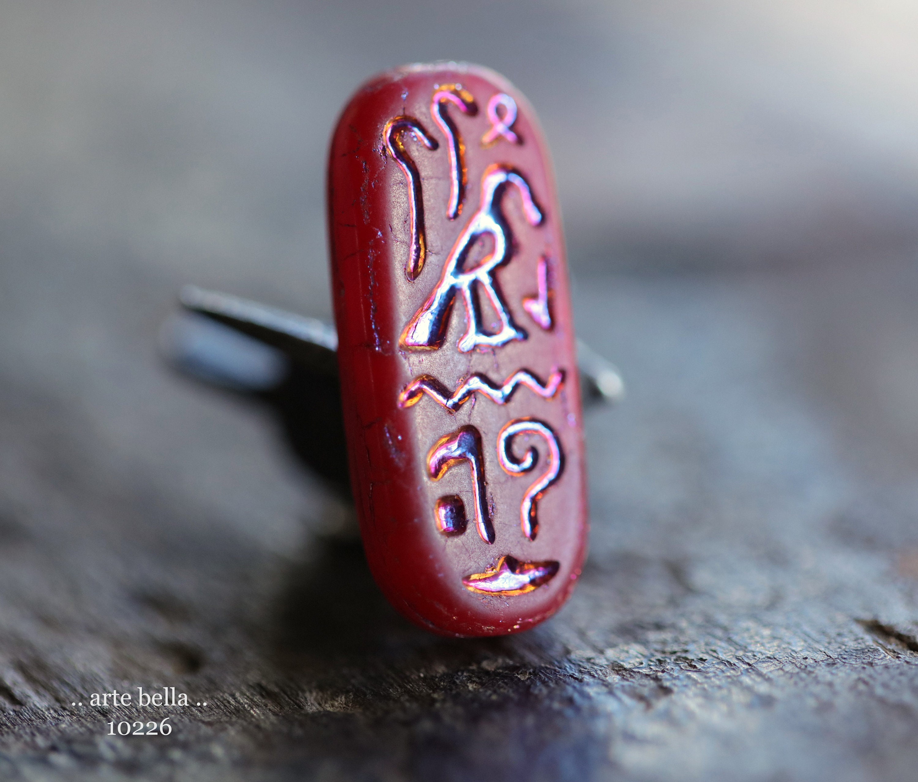 MYSTIC RED EGYPTIAN Cartouche .. 6 Premium Matte Czech Glass Tablet Beads 25x10mm (10226-st) .. jewelry supplies