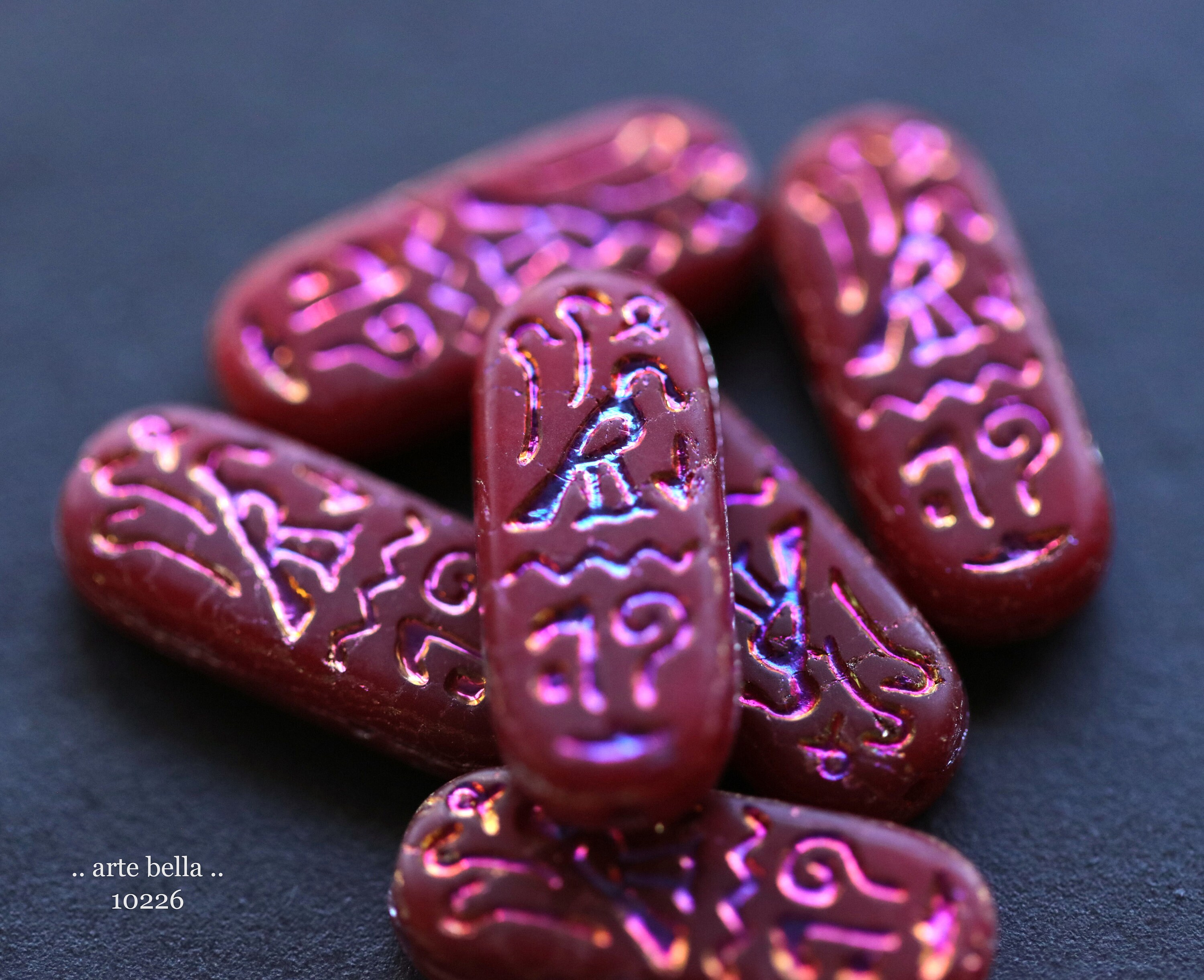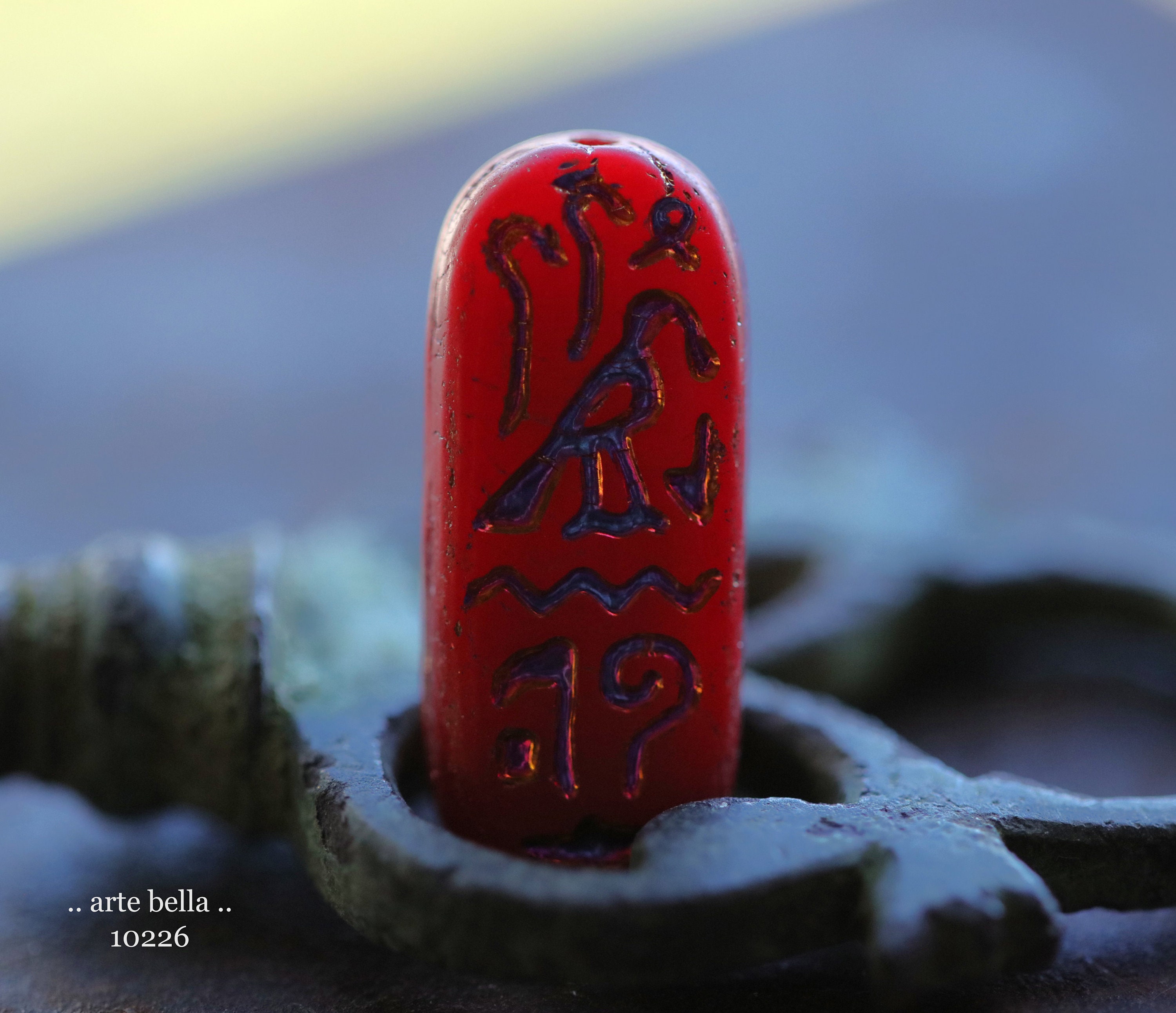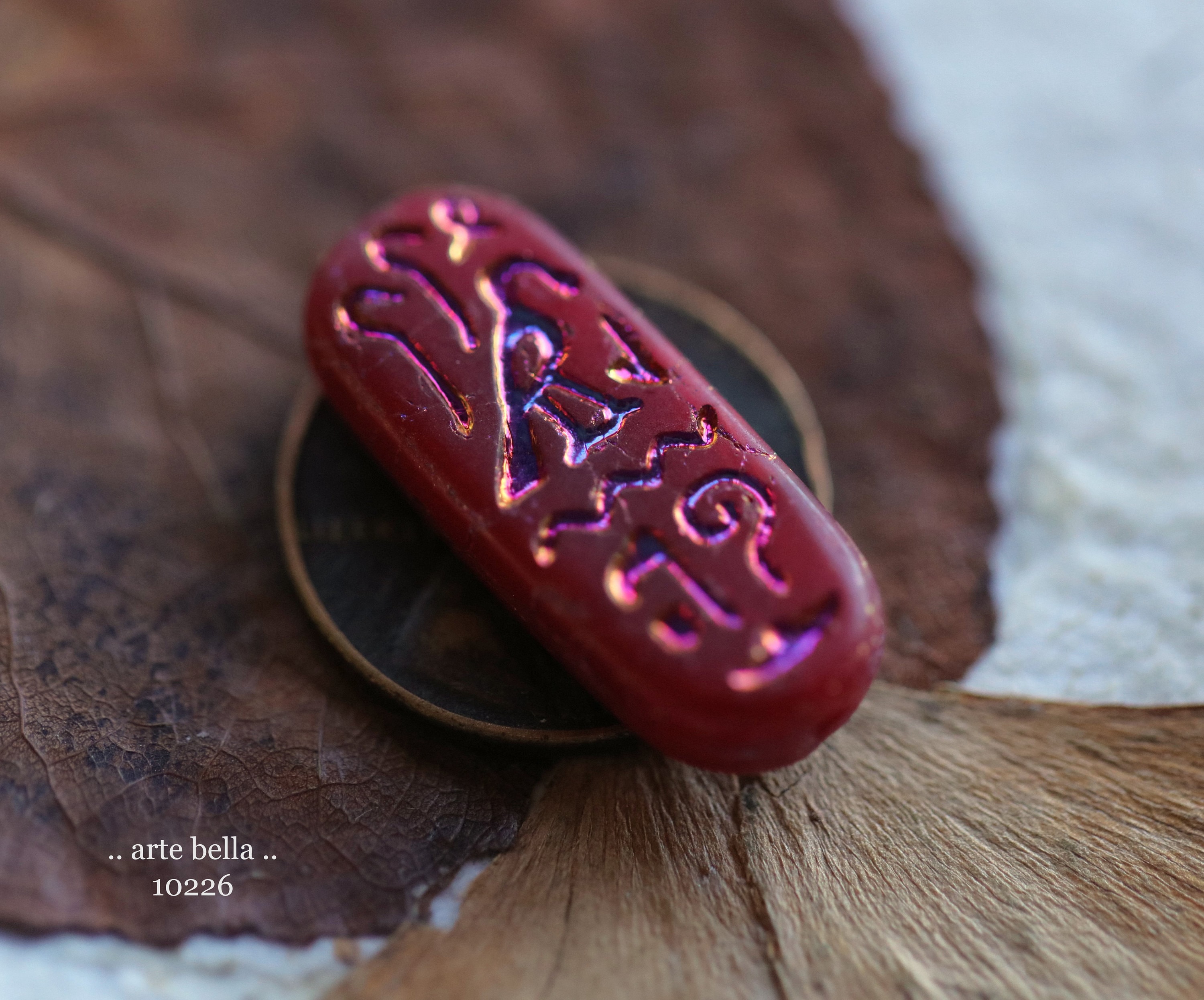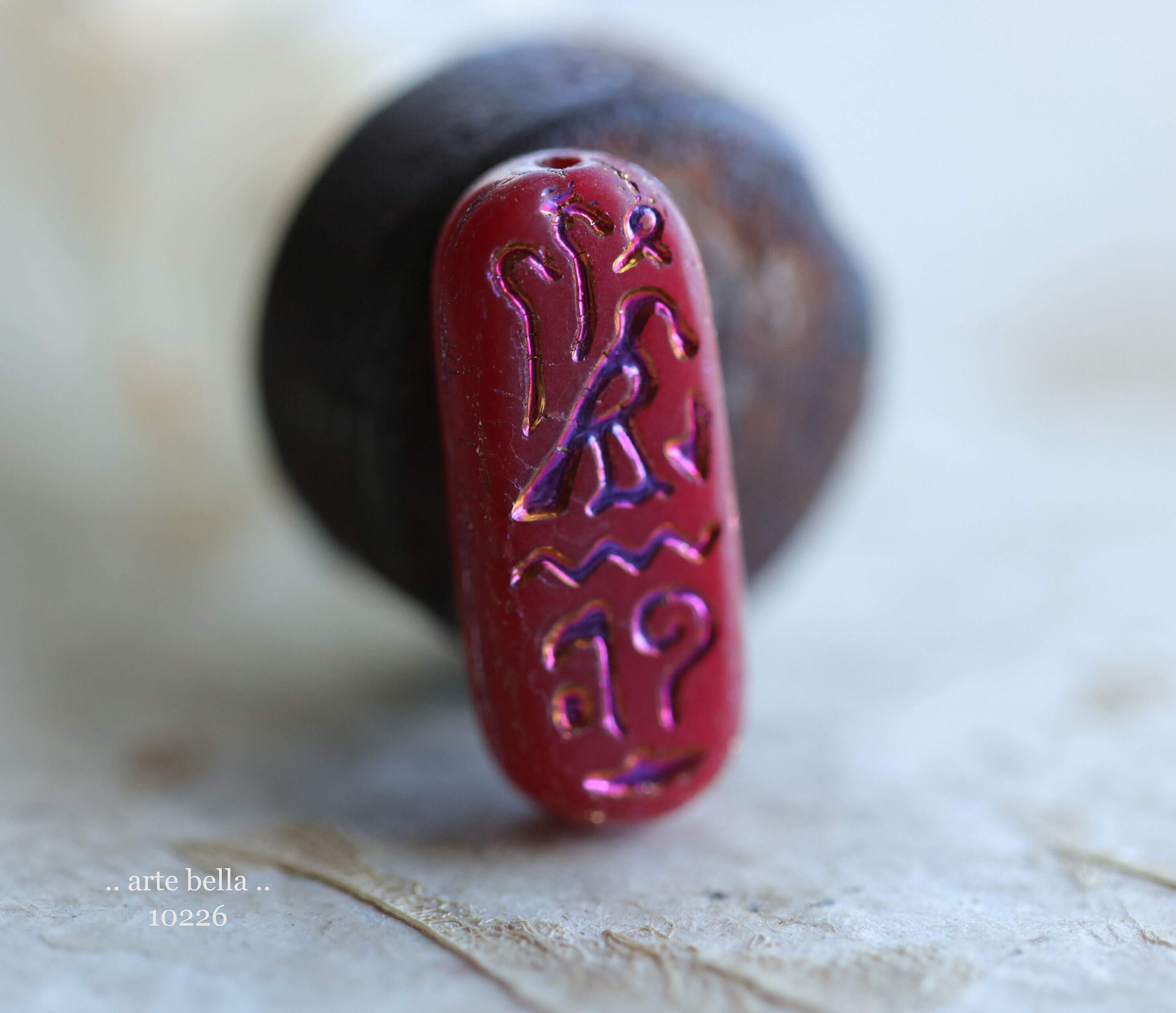MYSTIC RED EGYPTIAN Cartouche .. 6 Premium Matte Czech Glass Tablet Beads 25x10mm (10226-st) .. jewelry supplies