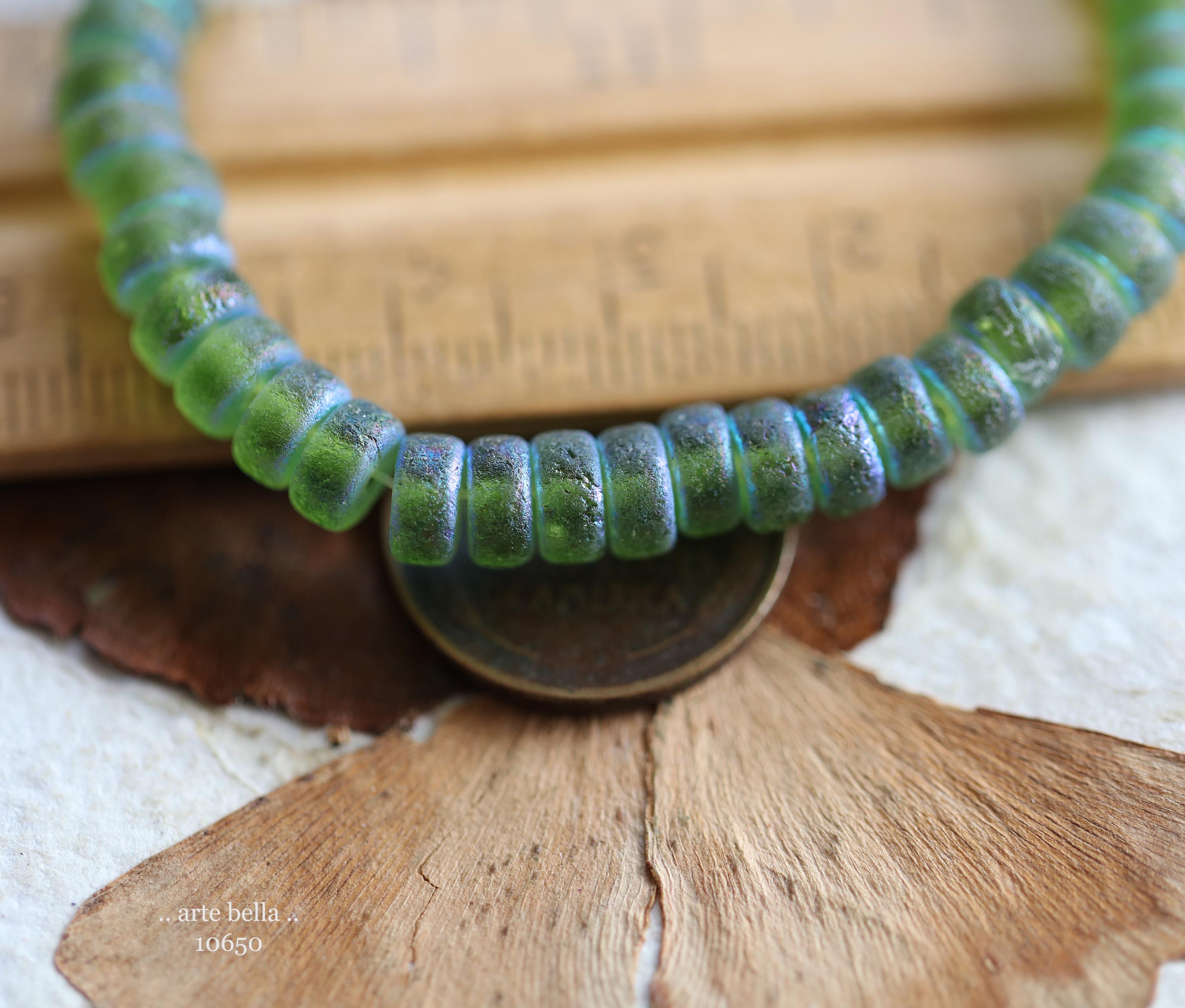MYSTIC PERIDOT WHEELS .. 50 Premium Etched Czech Glass Heishi Rondelle Beads 3x6mm (10650-st) .. jewelry supplies