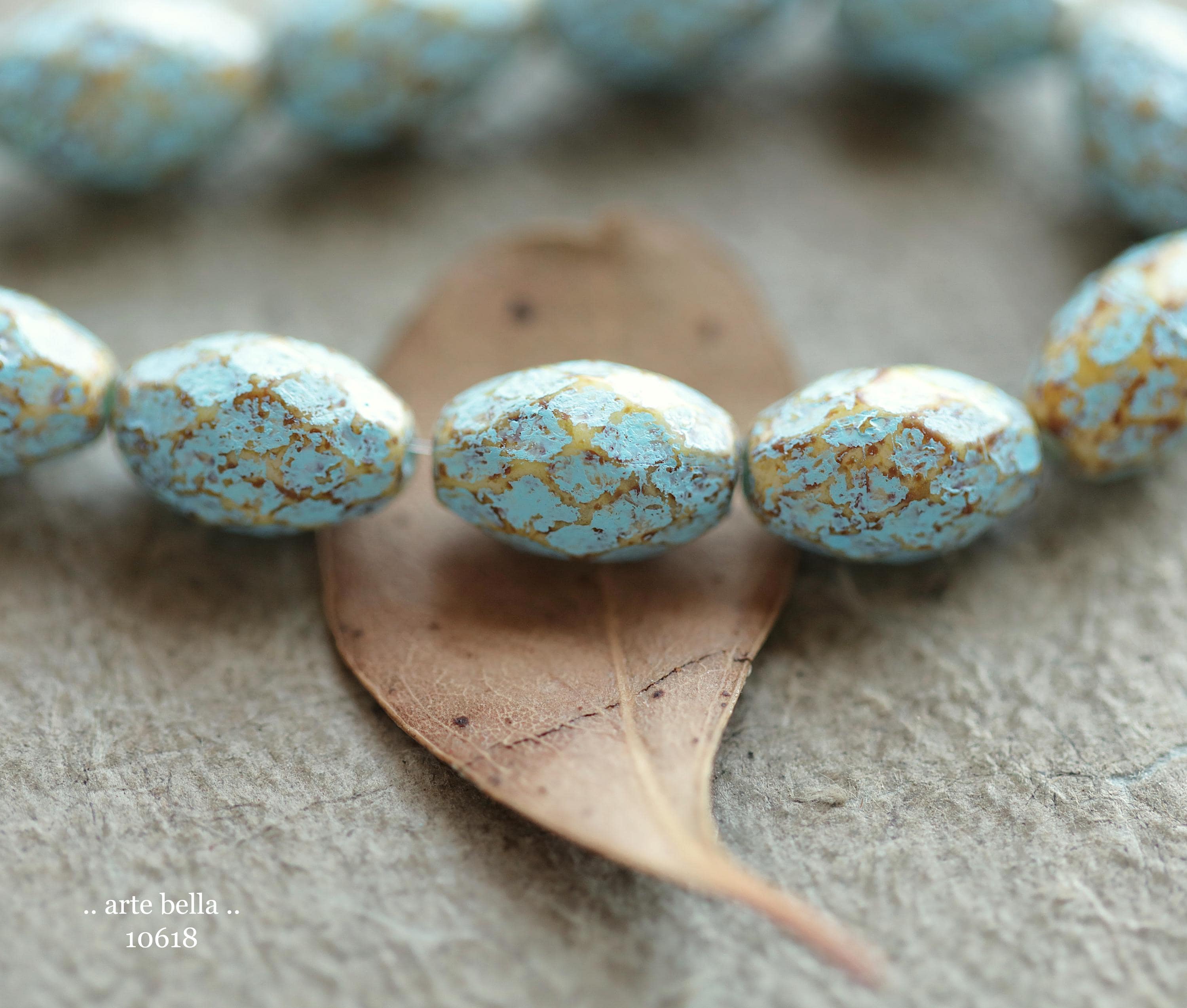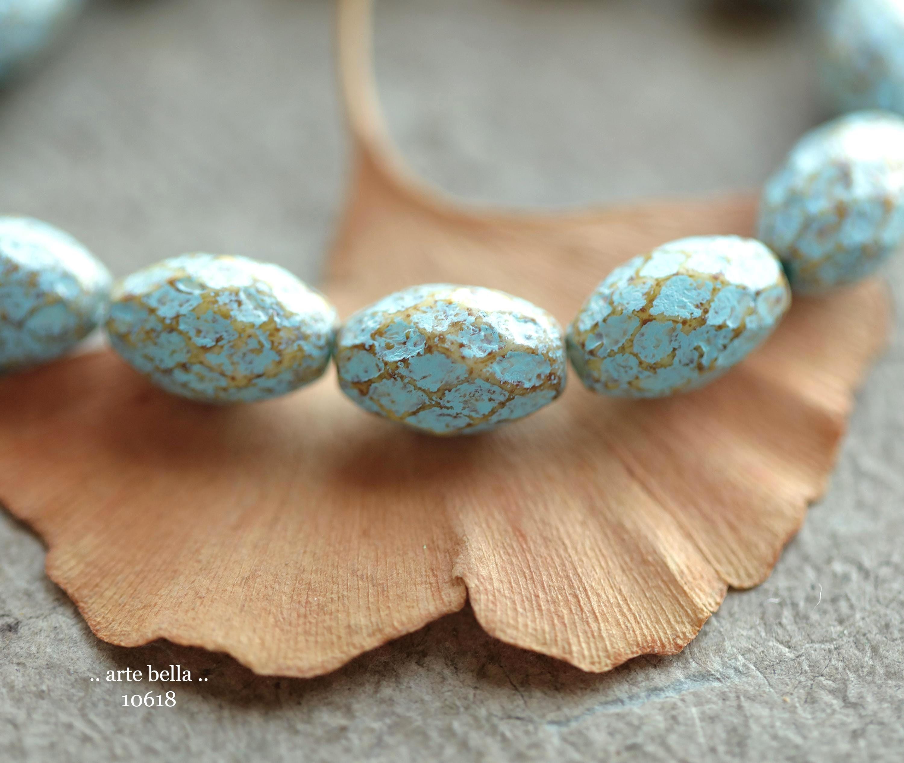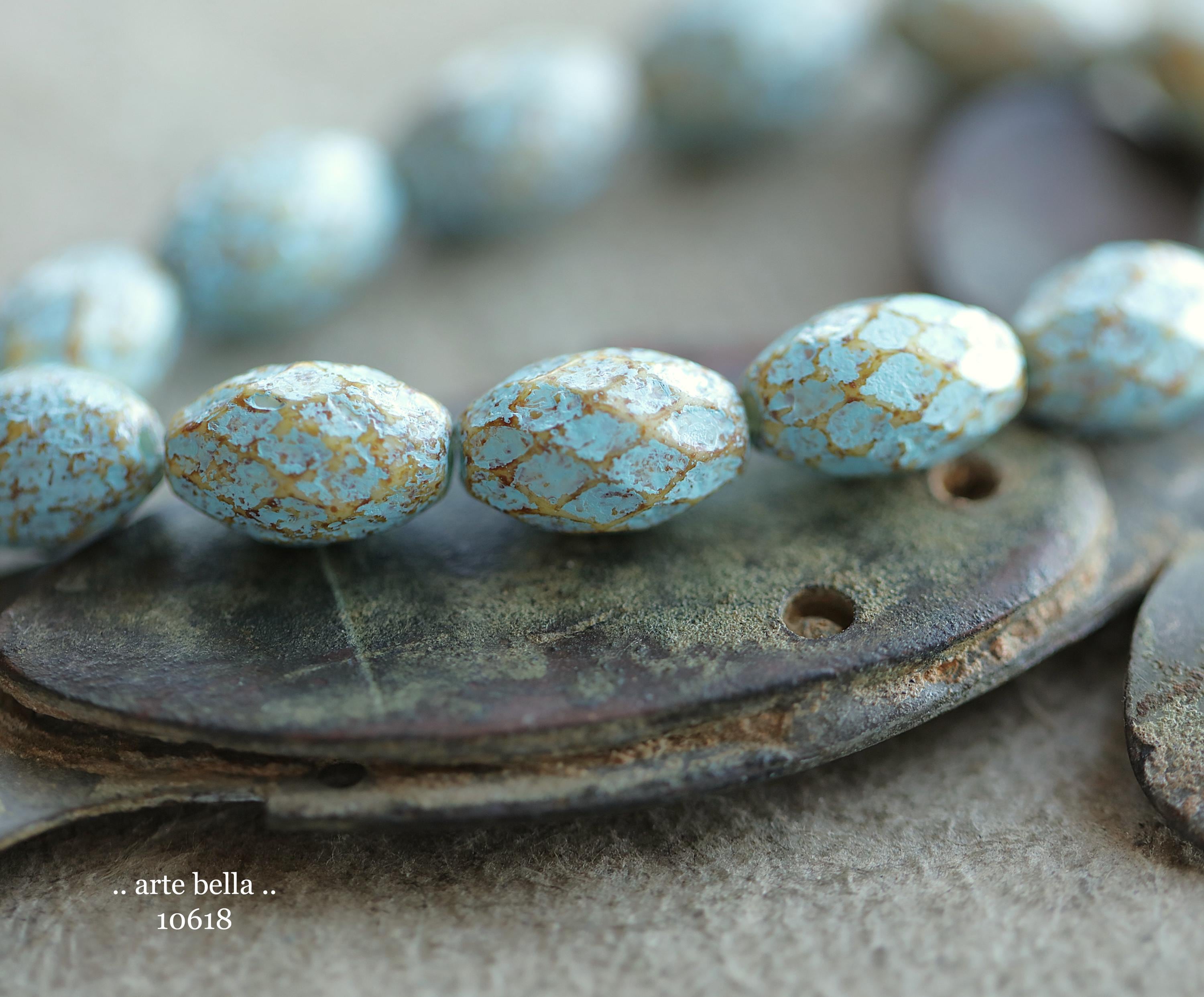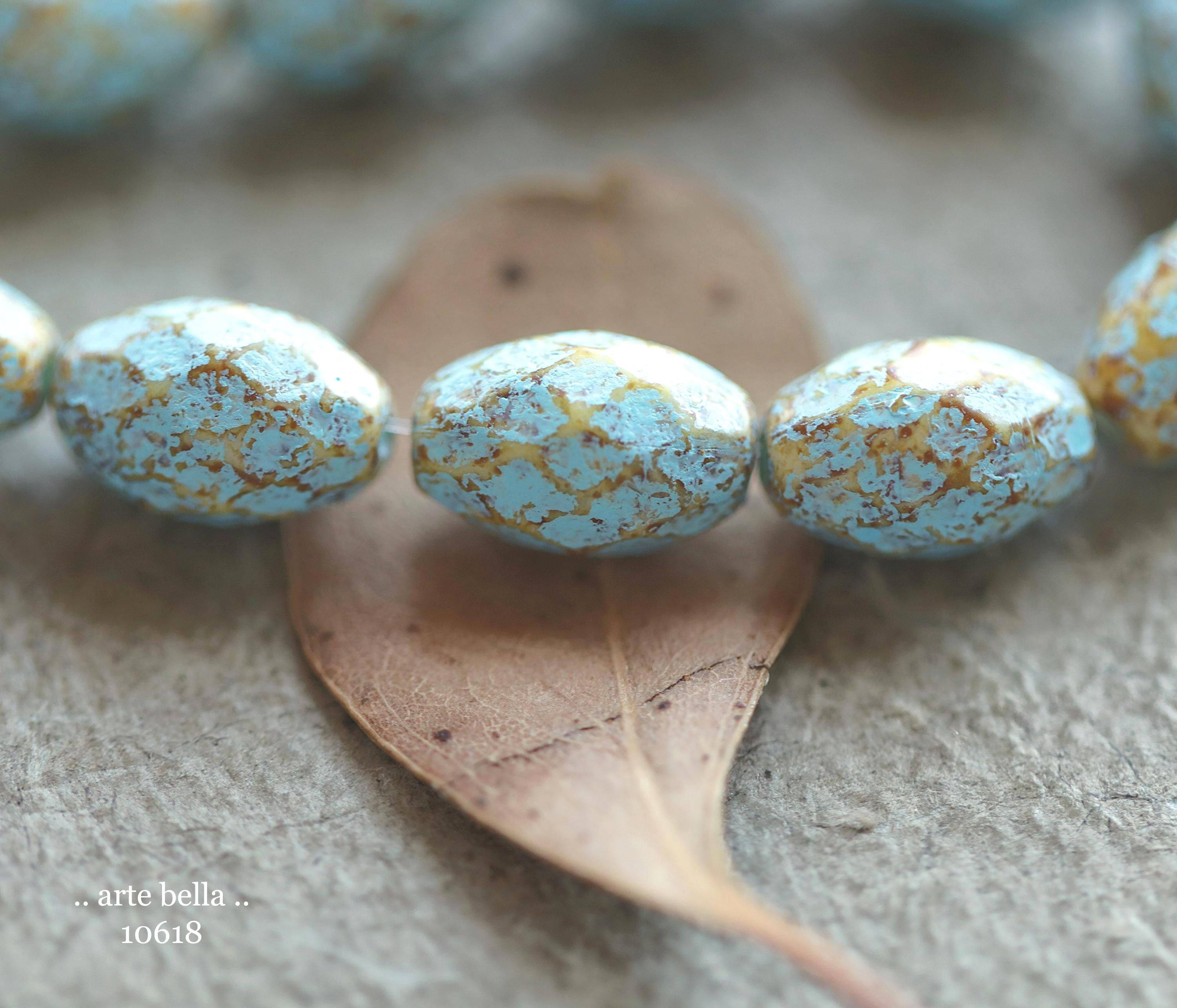back in stock .. BLUE AMBER OLIVES .. Premium Picasso Czech Etched Glass Faceted Oval Beads 12x8mm (10618-st) .. jewelry supplies