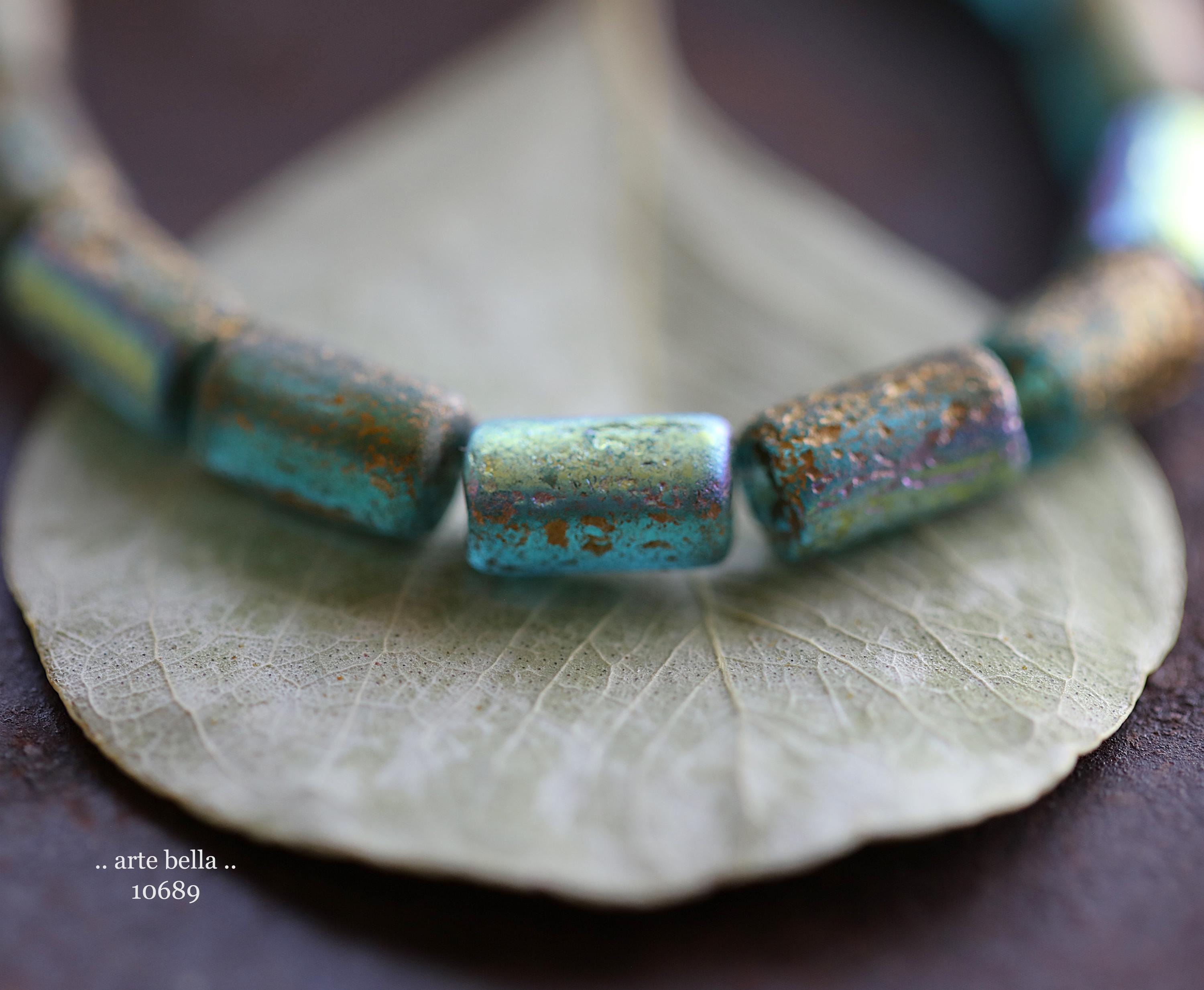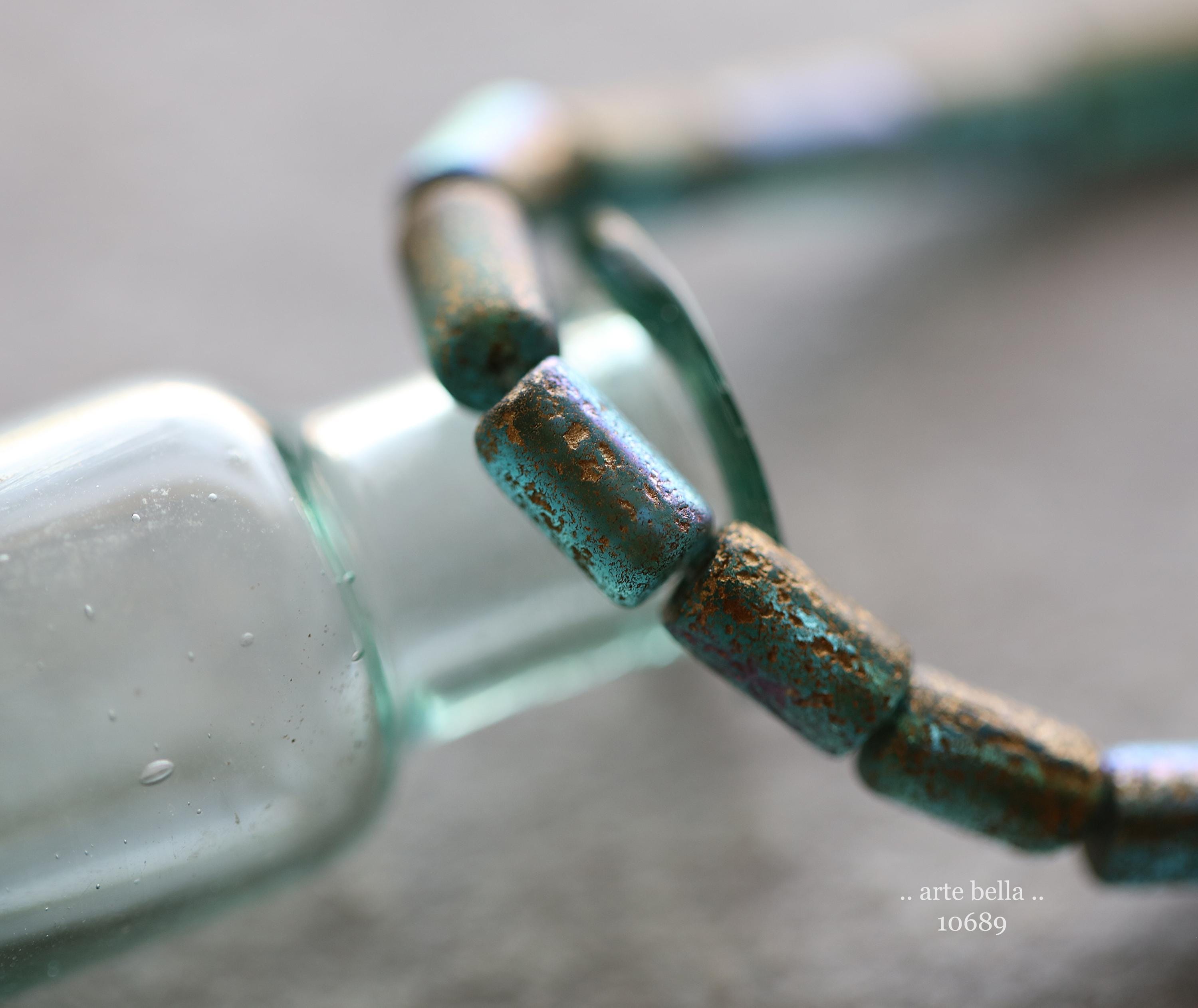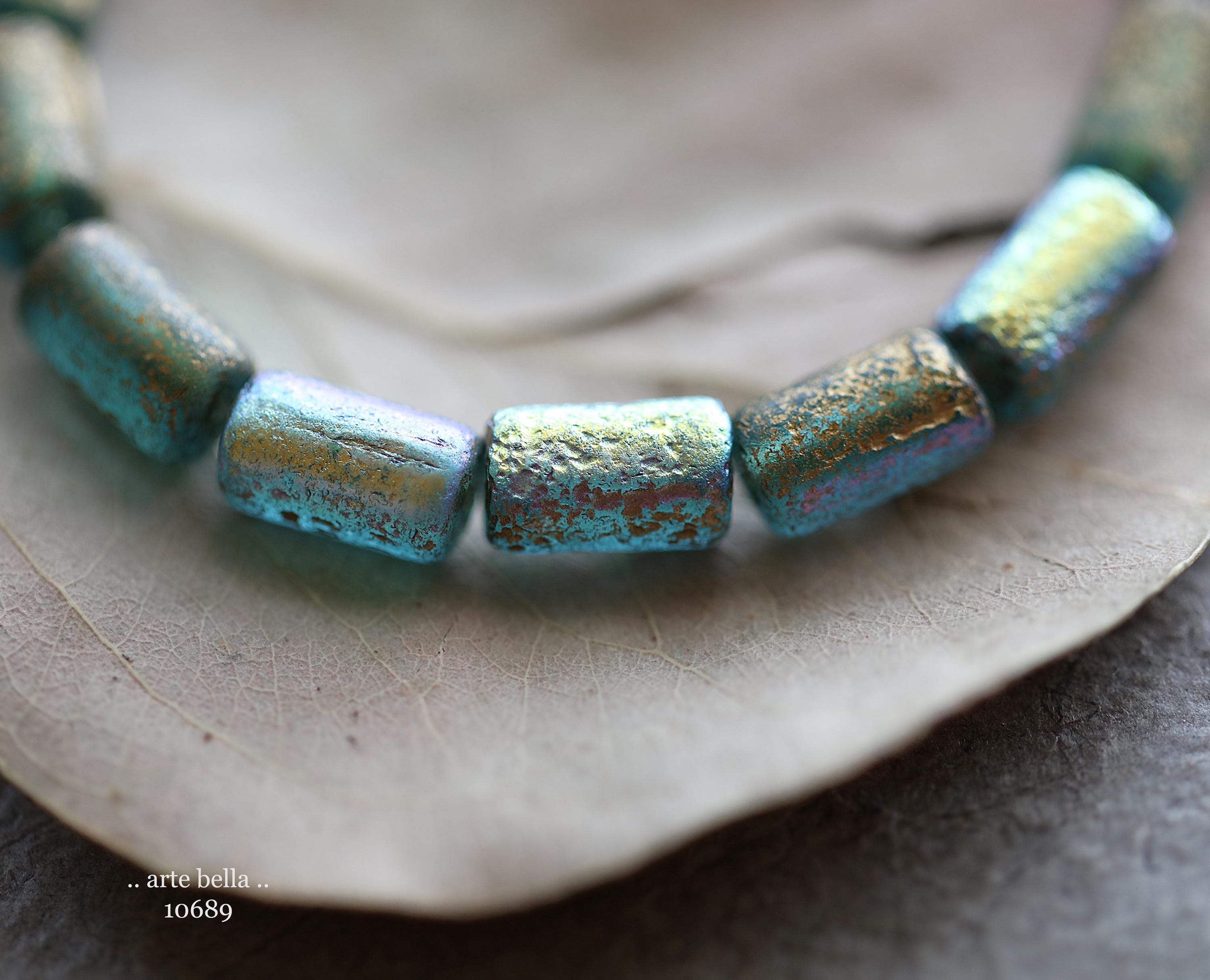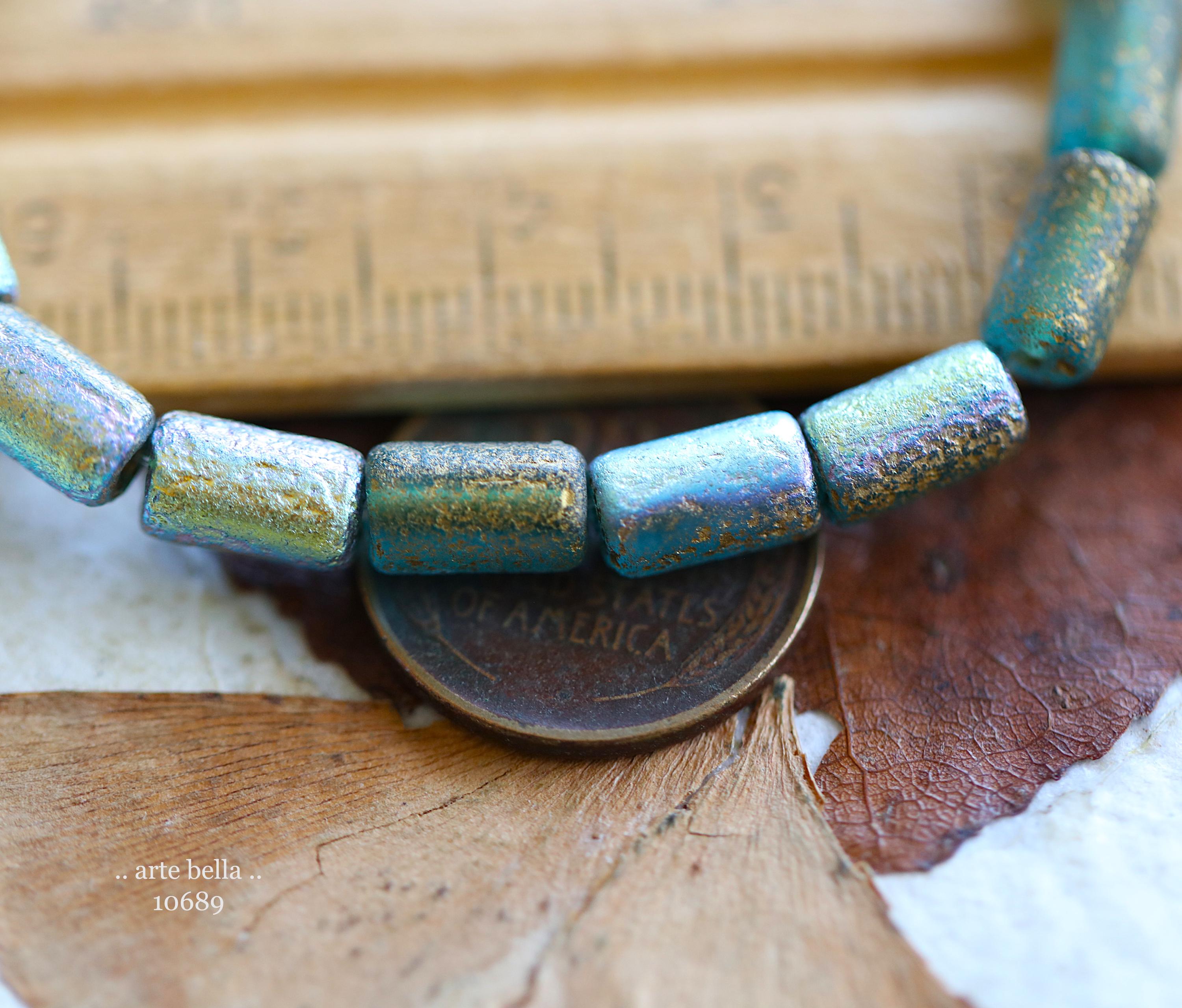 premium glass beads .. GOLDEN MYSTIC SKY Bebe Tubes .. 16 Czech Etched Glass Tube Beads 9x5mm (10689-st) .. jewelry supplies