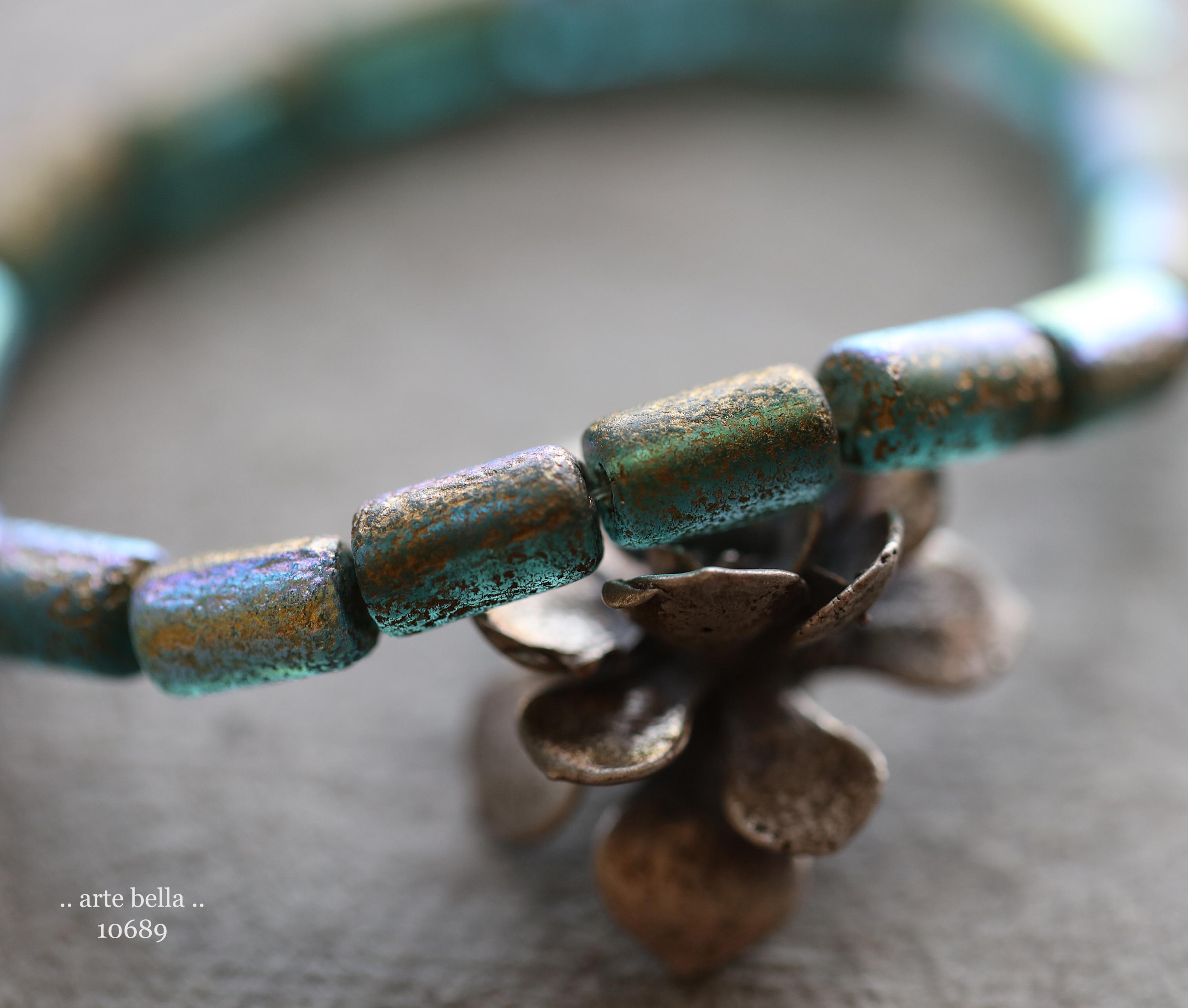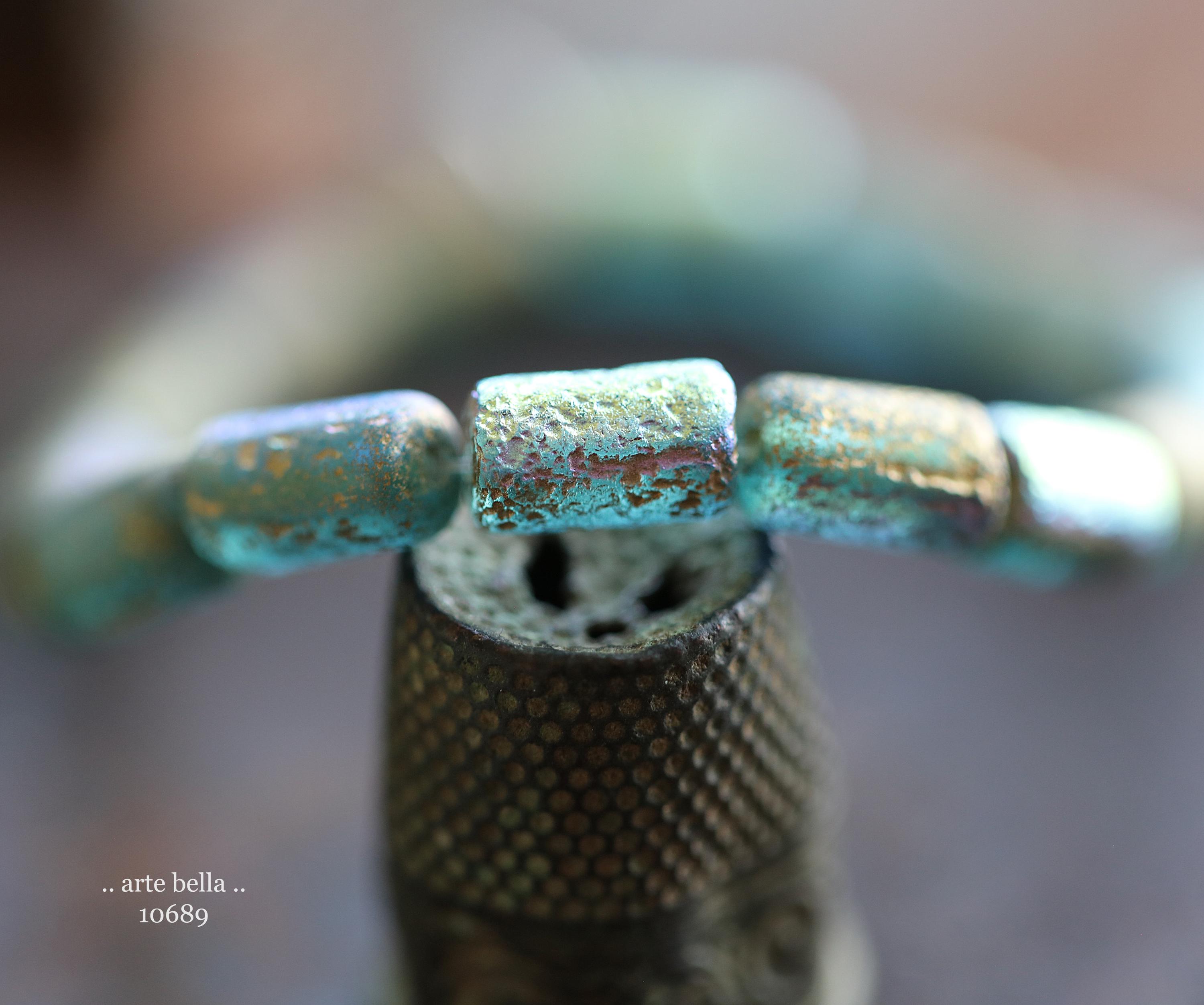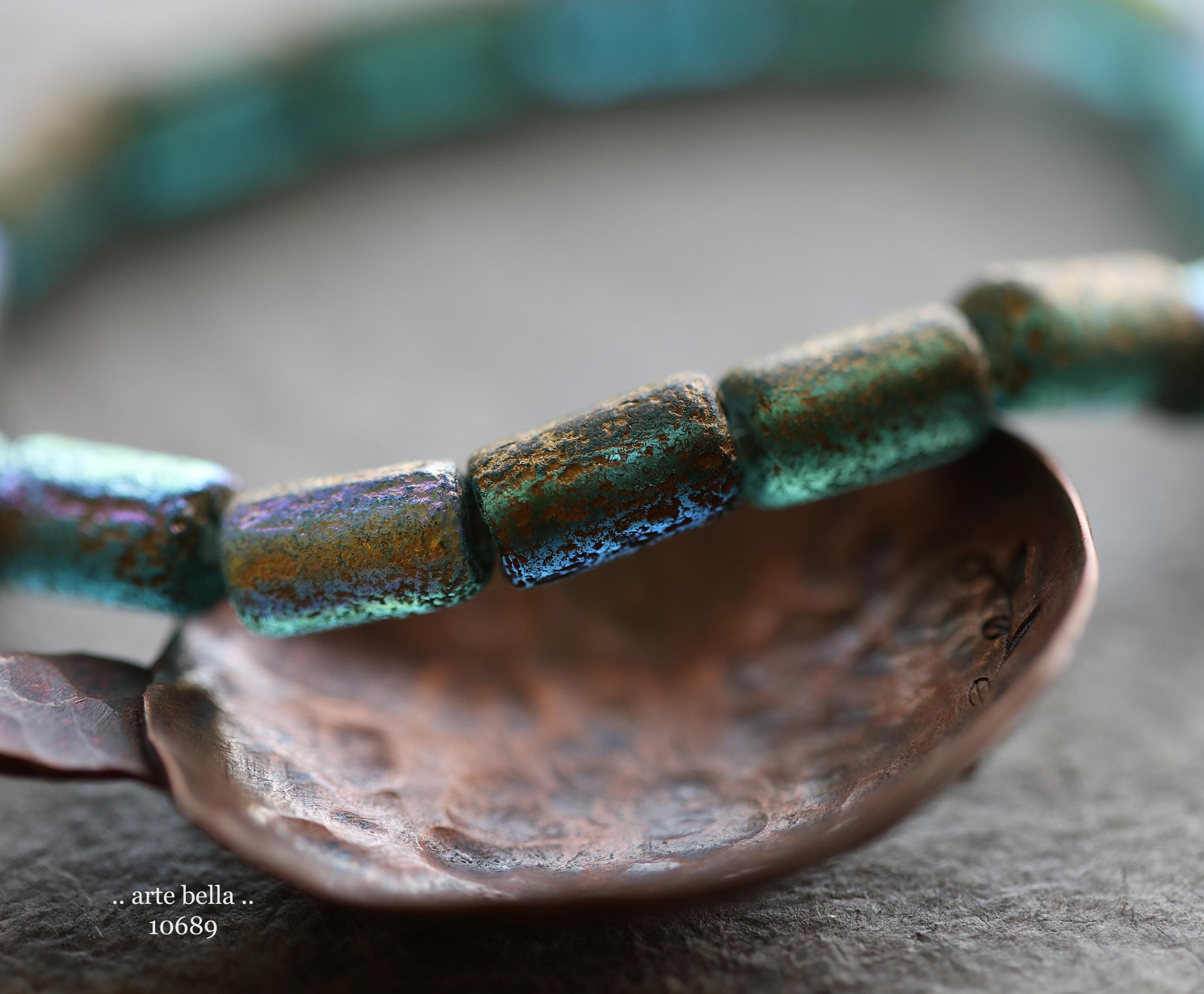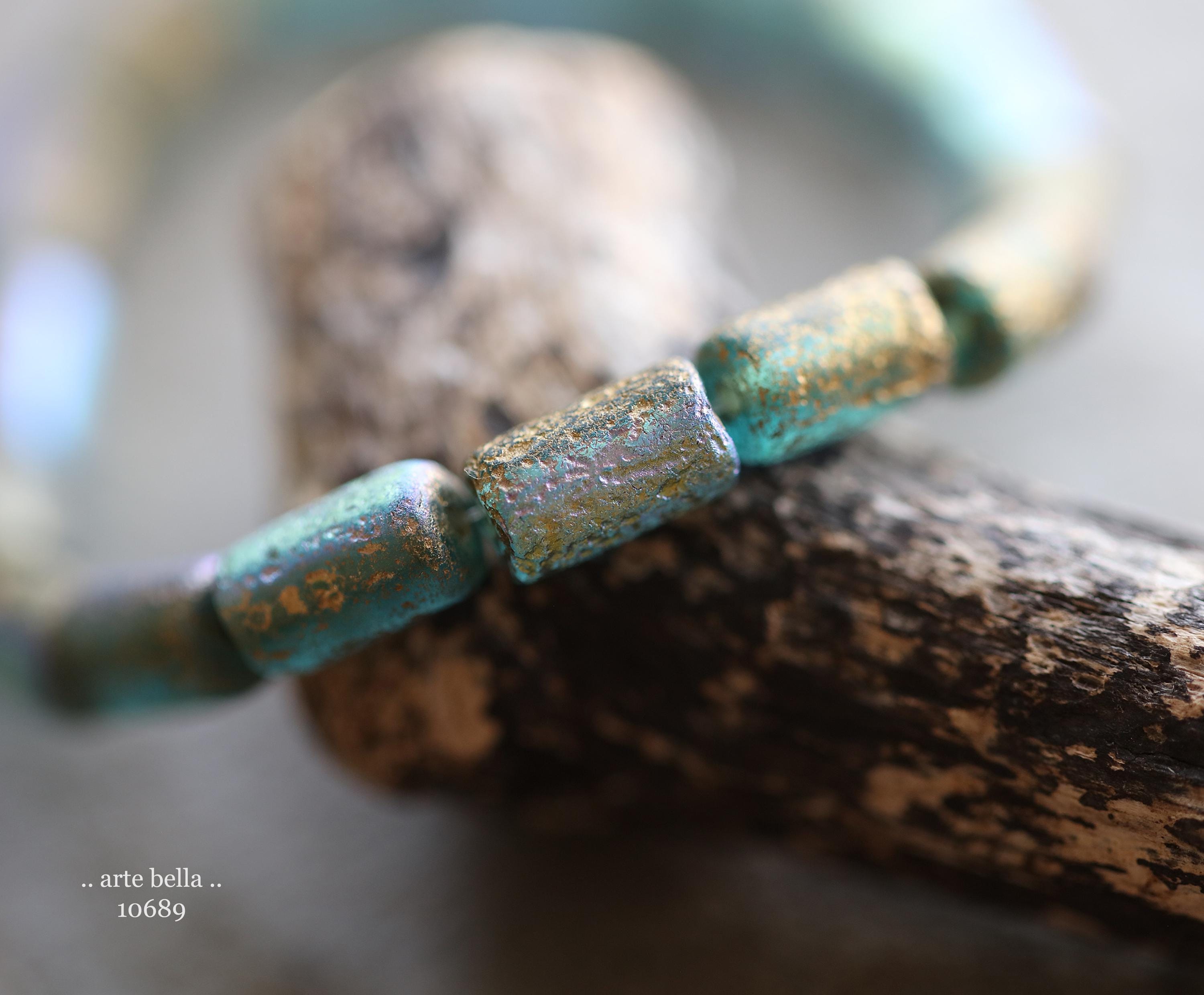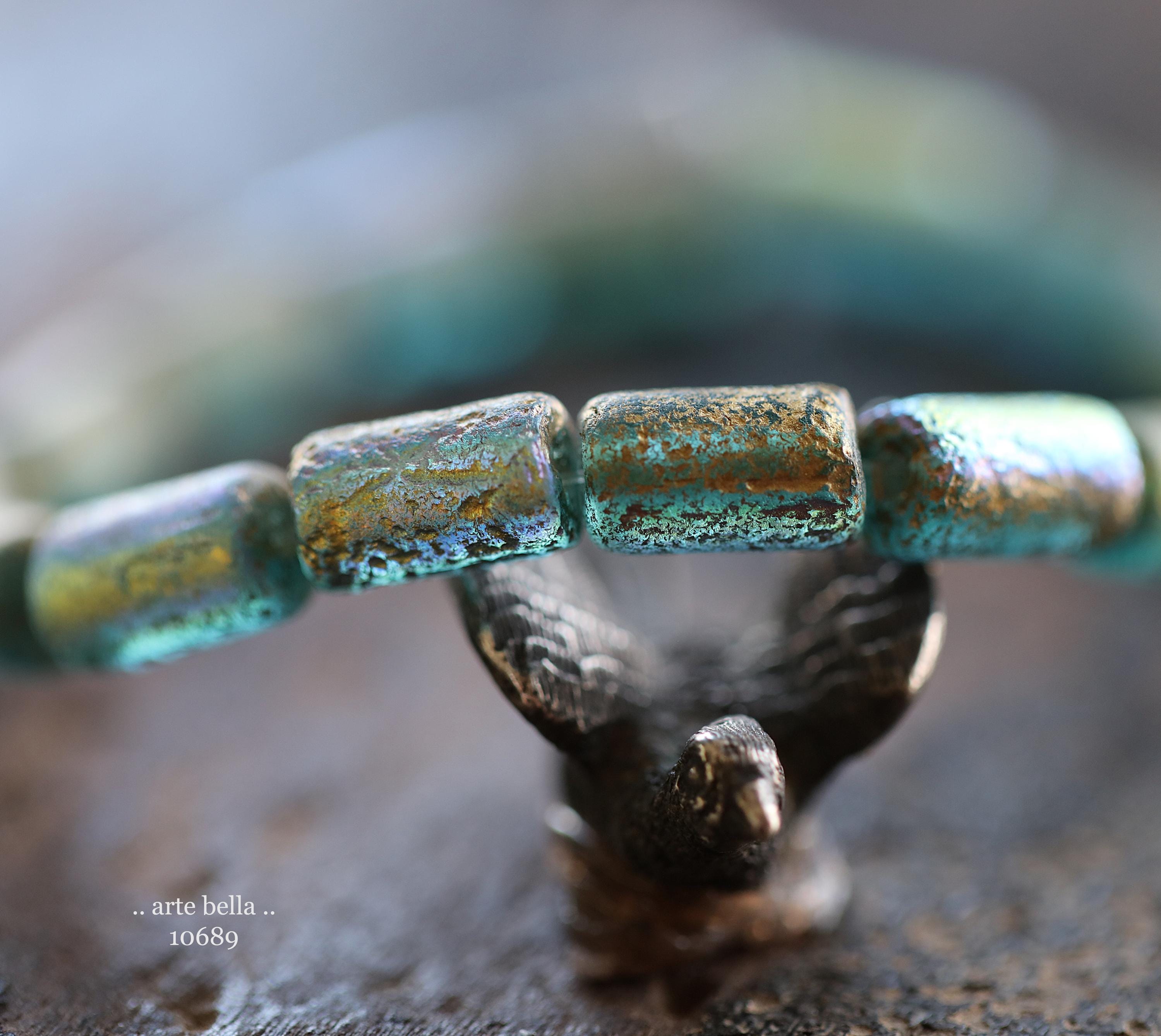 premium glass beads .. GOLDEN MYSTIC SKY Bebe Tubes .. 16 Czech Etched Glass Tube Beads 9x5mm (10689-st) .. jewelry supplies