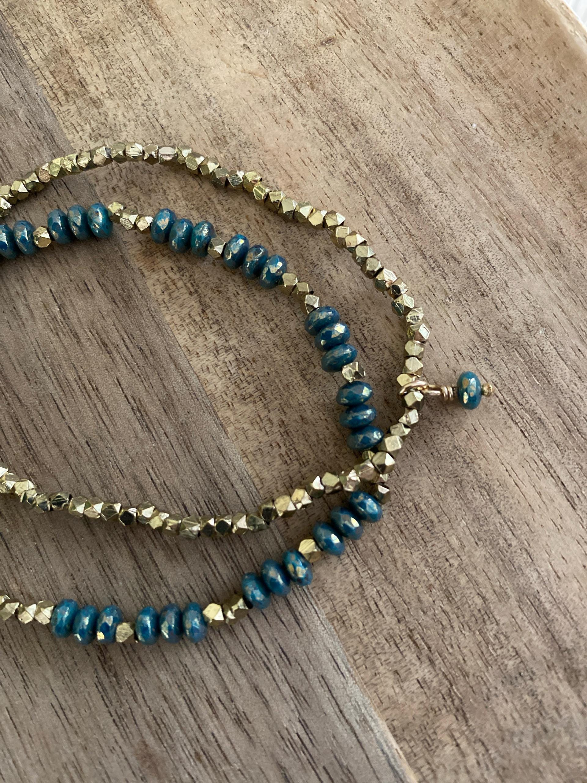 These beautiful forest green beads paired well with the shimmery vintage gold heshi beads I had. The green shimmers and looks just lovely in the light!