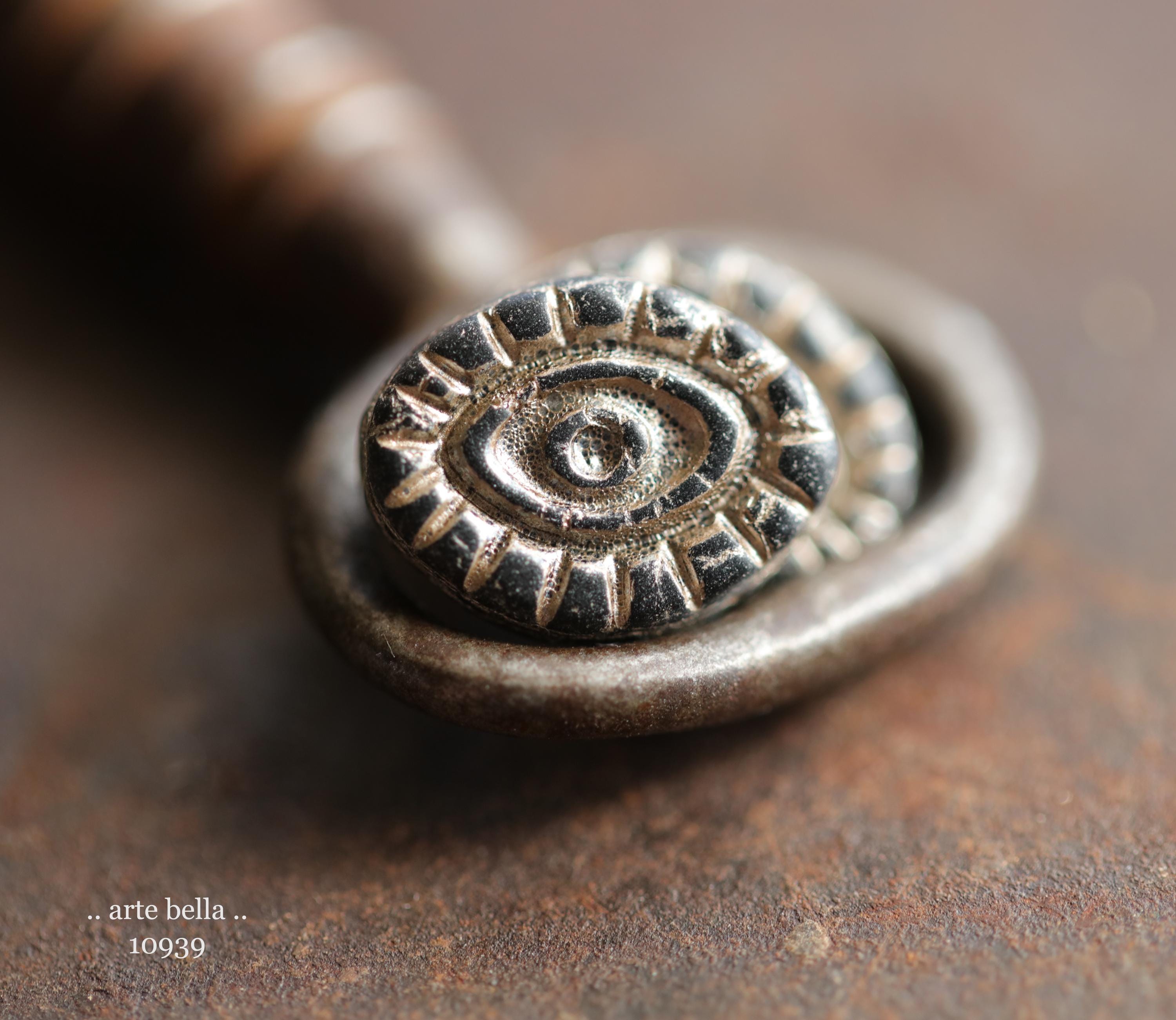 premium glass beads .. BEIGE and BLACK PEEPERS .. 6 Matte Czech Glass Mystic Eye Beads 14x11mm (10939-6) .. jewelry supplies