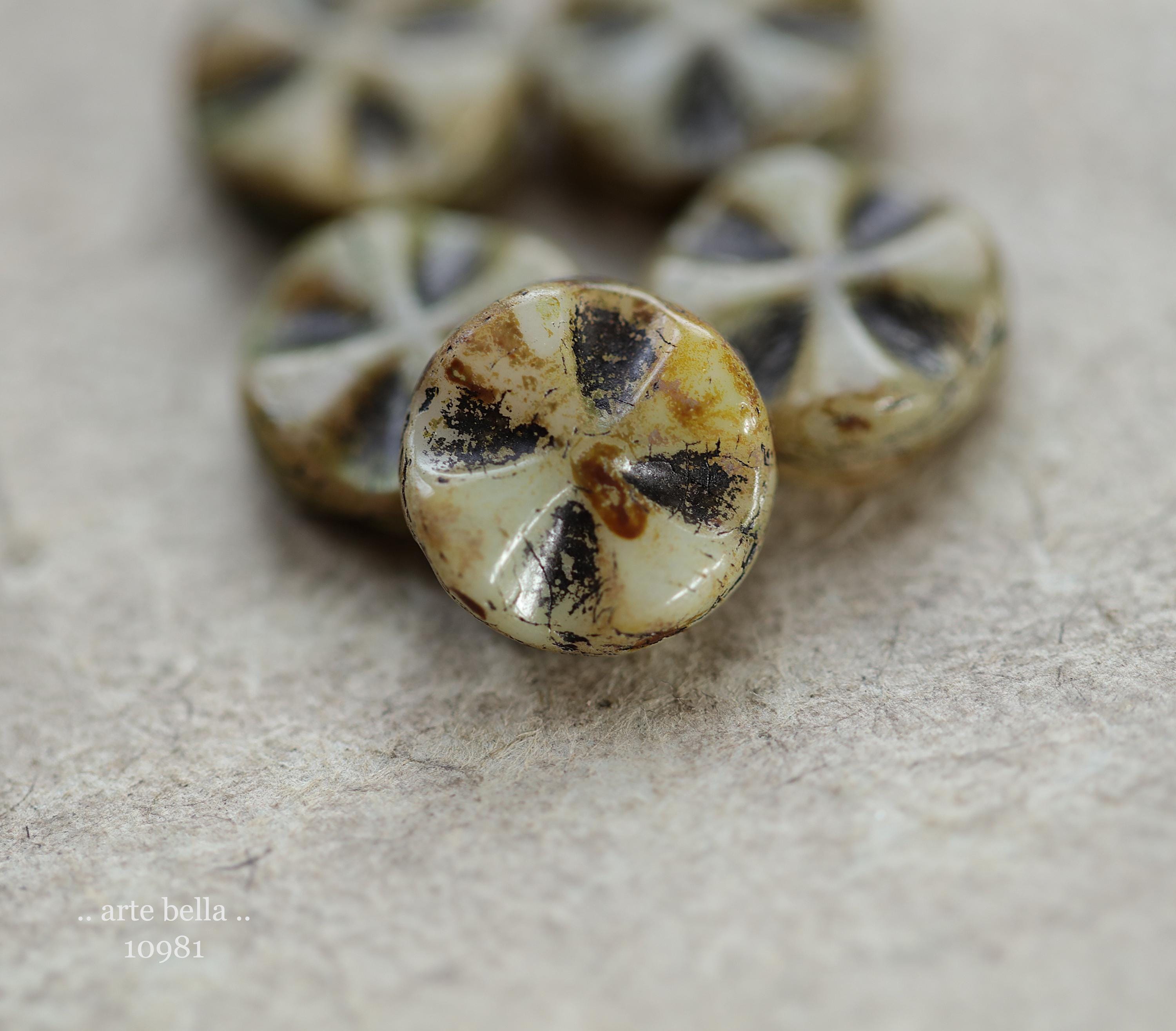 BLACK BONE RELICS .. New 6 Premium Picasso Czech Glass Maltese Cross Bead Mix 14x5mm (10981-6) .. rosary supplies