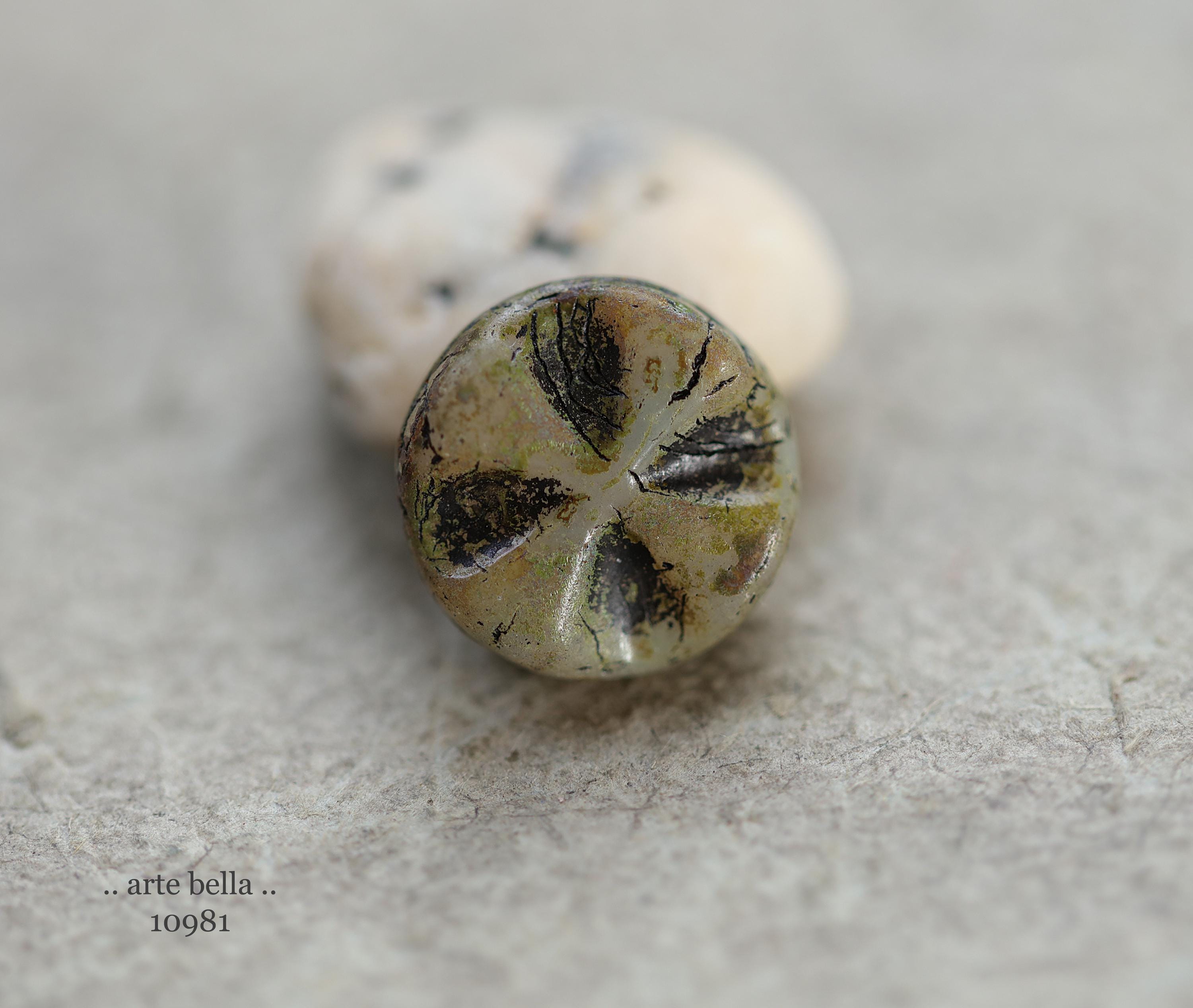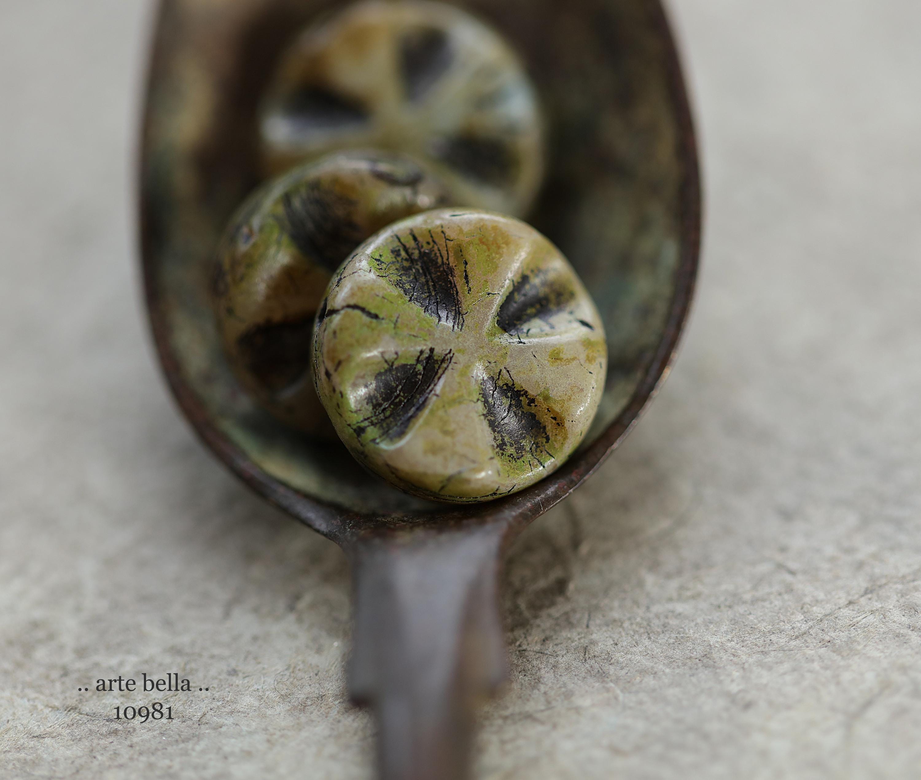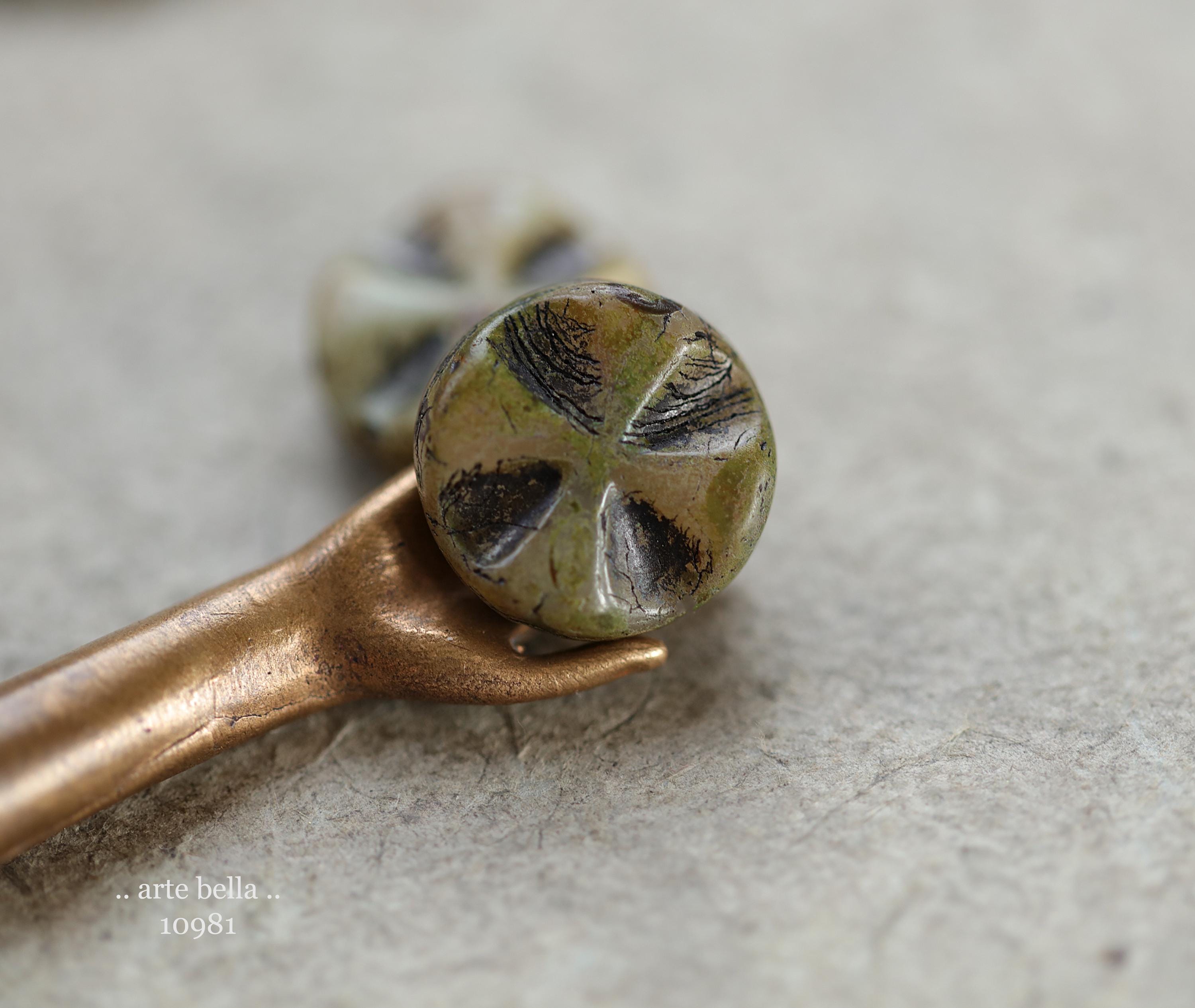 Semi translucent dark beige glass with an earthy Picasso finish and matte black wash. **PLEASE NOTE: Beads vary as seen in my pictures, you will receive 6 random beads.**