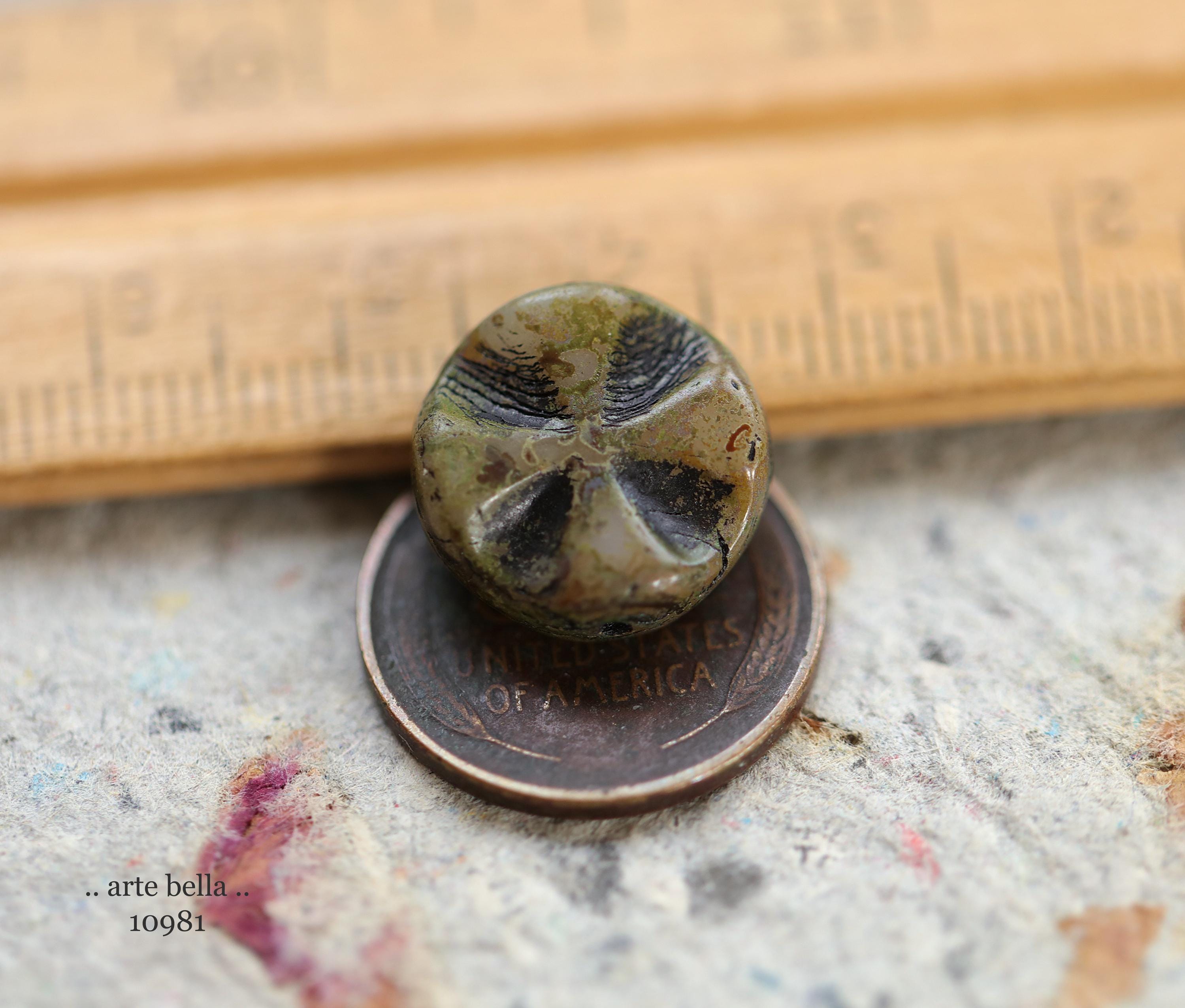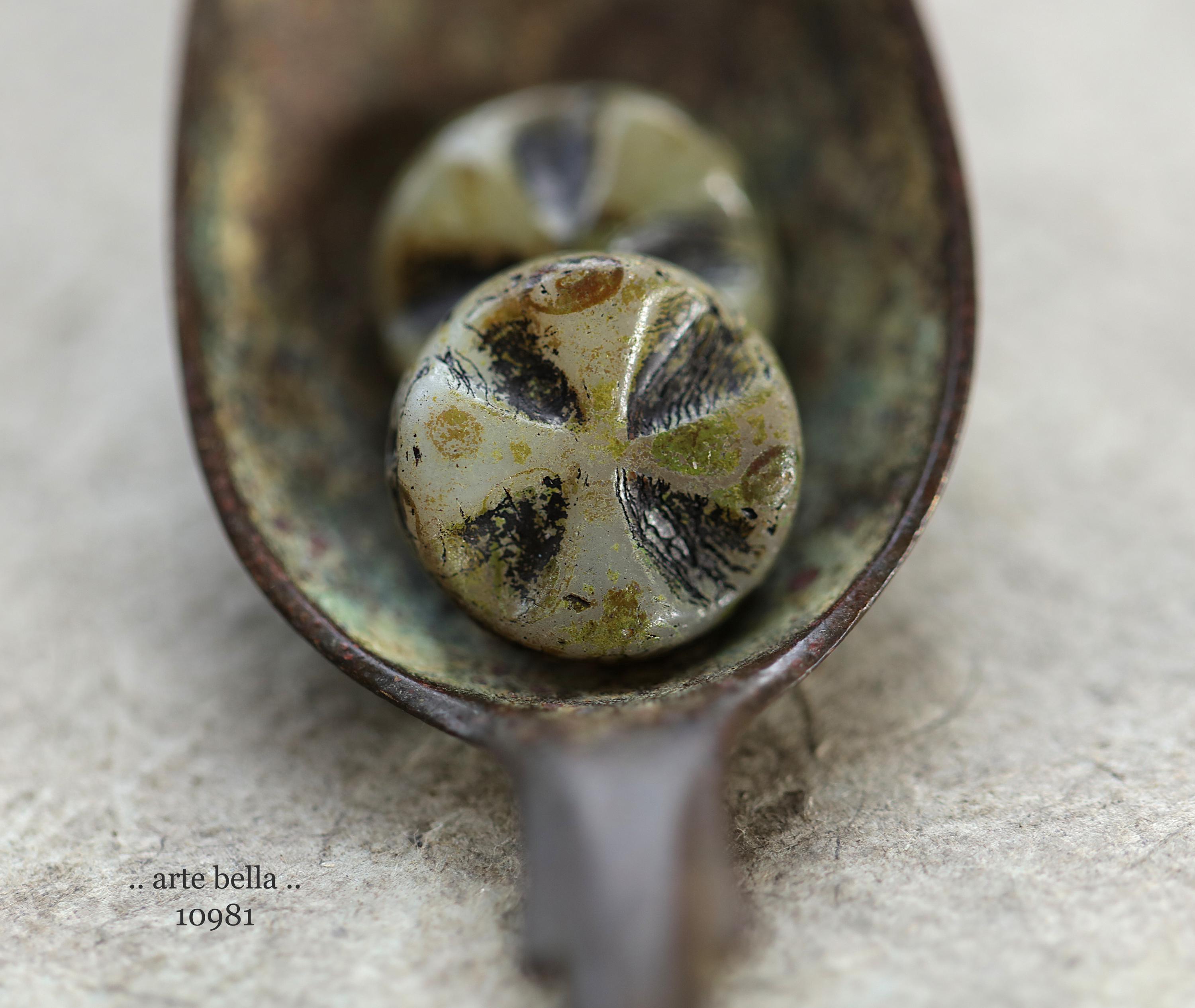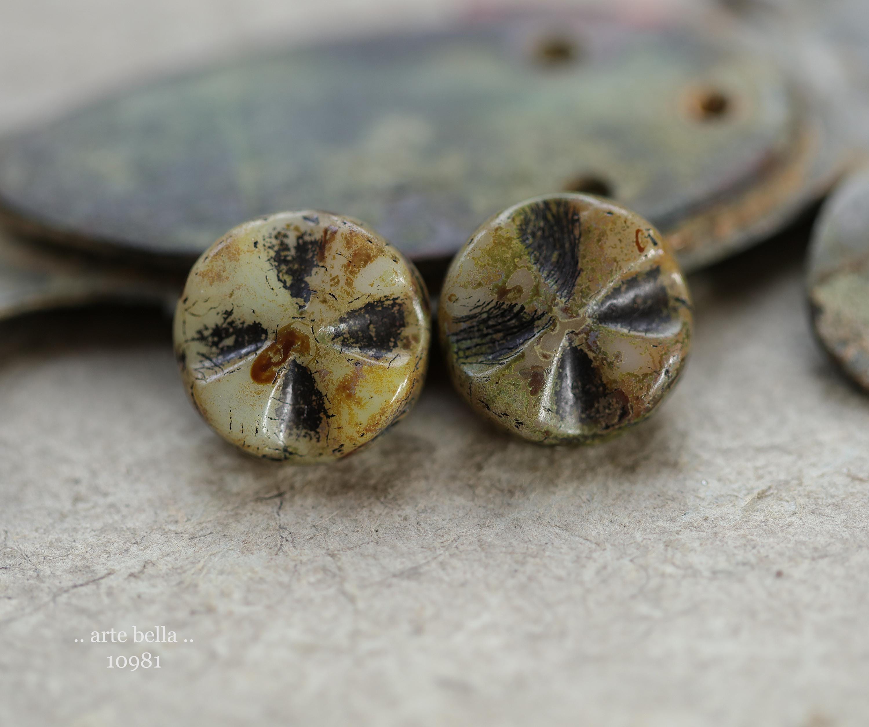 Semi translucent dark beige glass with an earthy Picasso finish and matte black wash. **PLEASE NOTE: Beads vary as seen in my pictures, you will receive 6 random beads.**