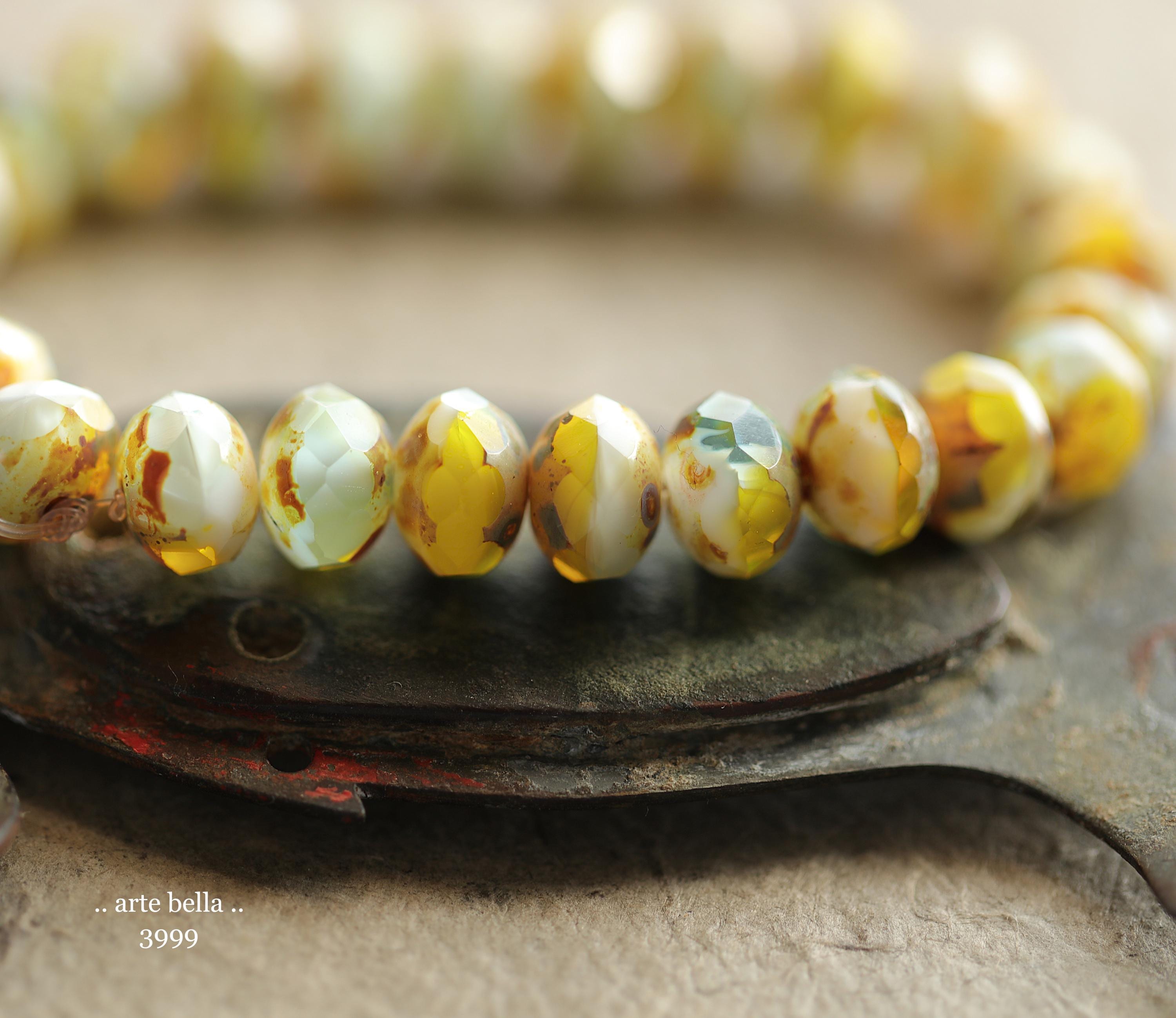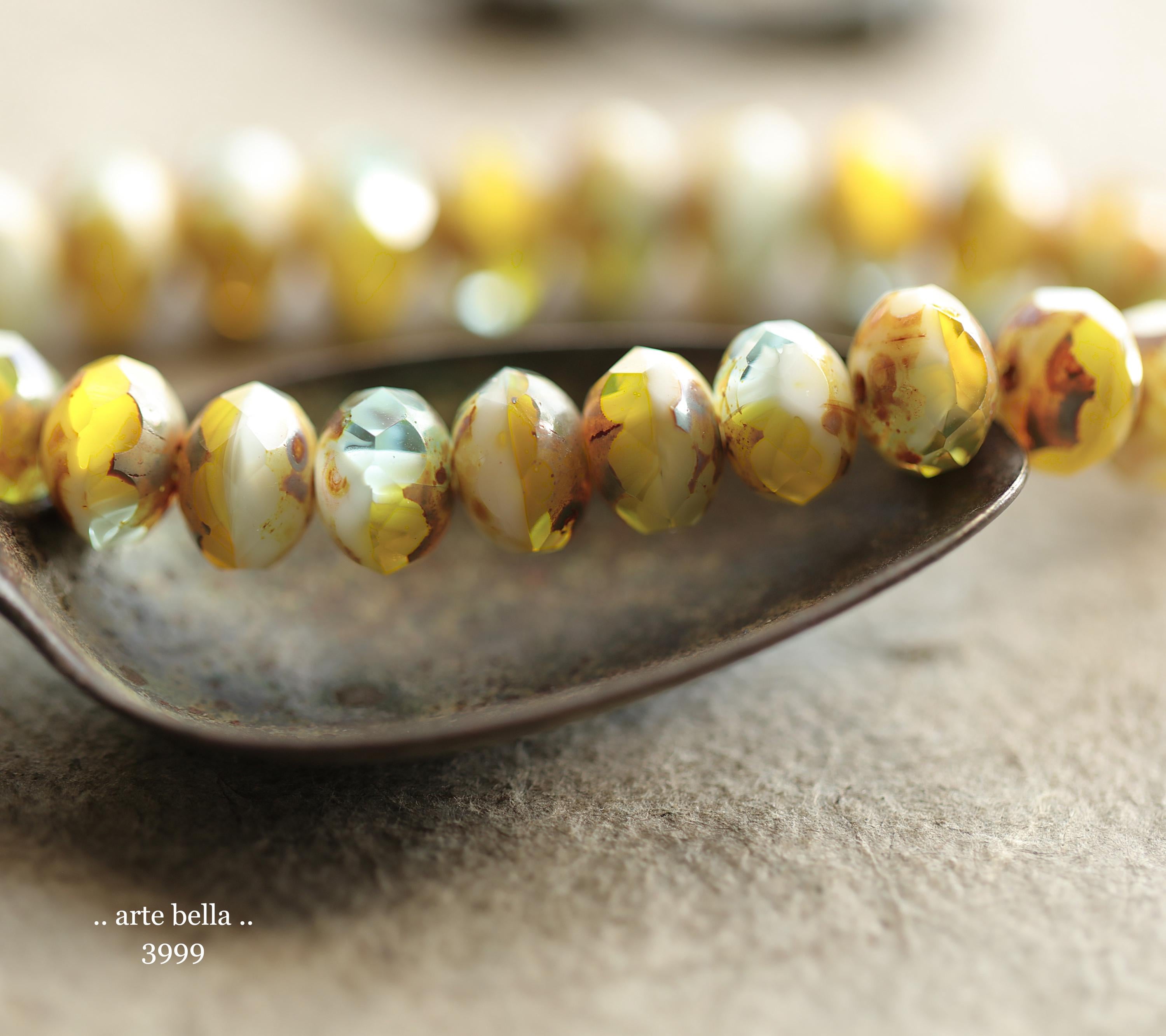 back in stock .. CANARY ISLAND .. 25 Picasso Czech Glass Faceted Rondelle Beads 6x8mm (3999-st) .. jewelry supplies