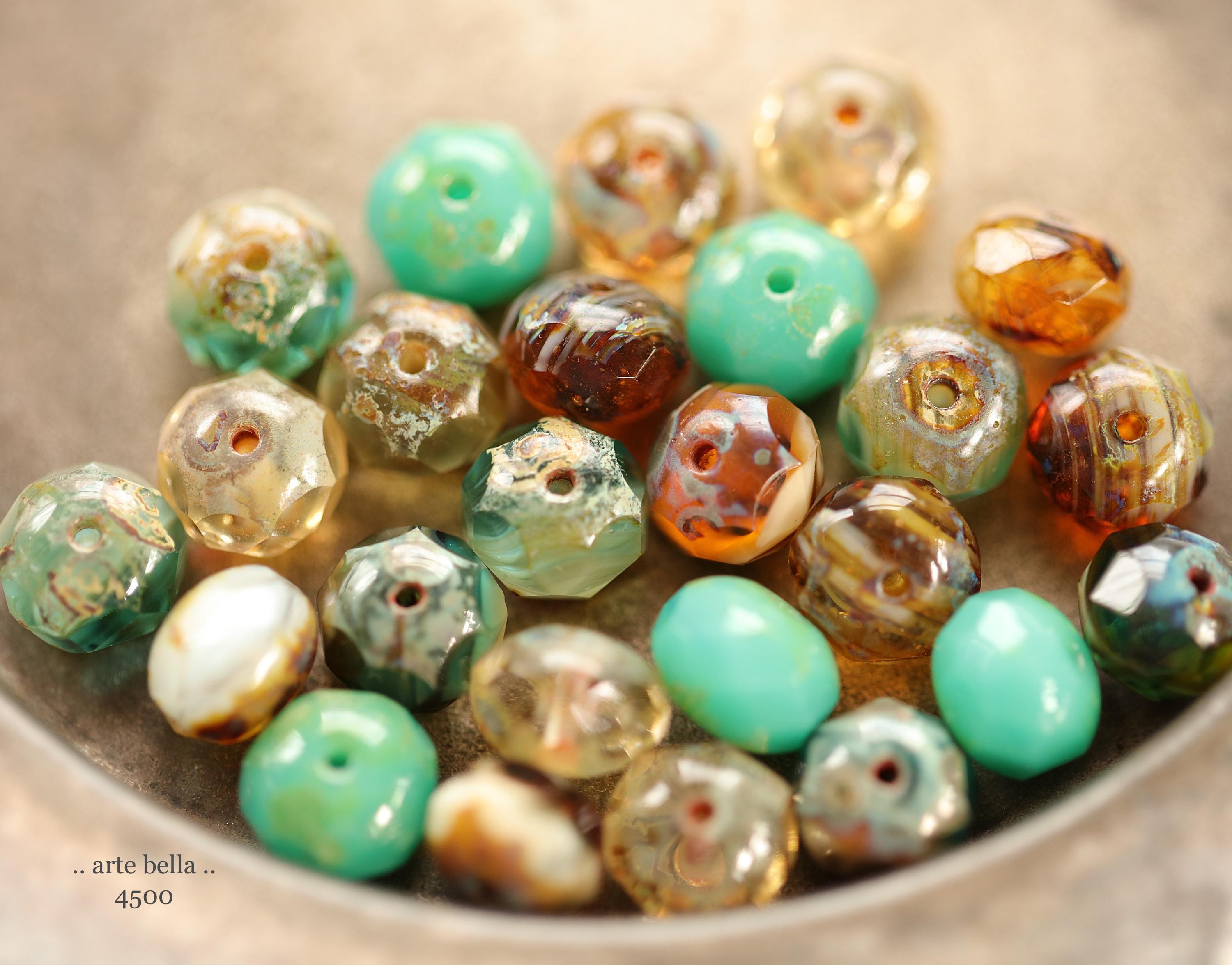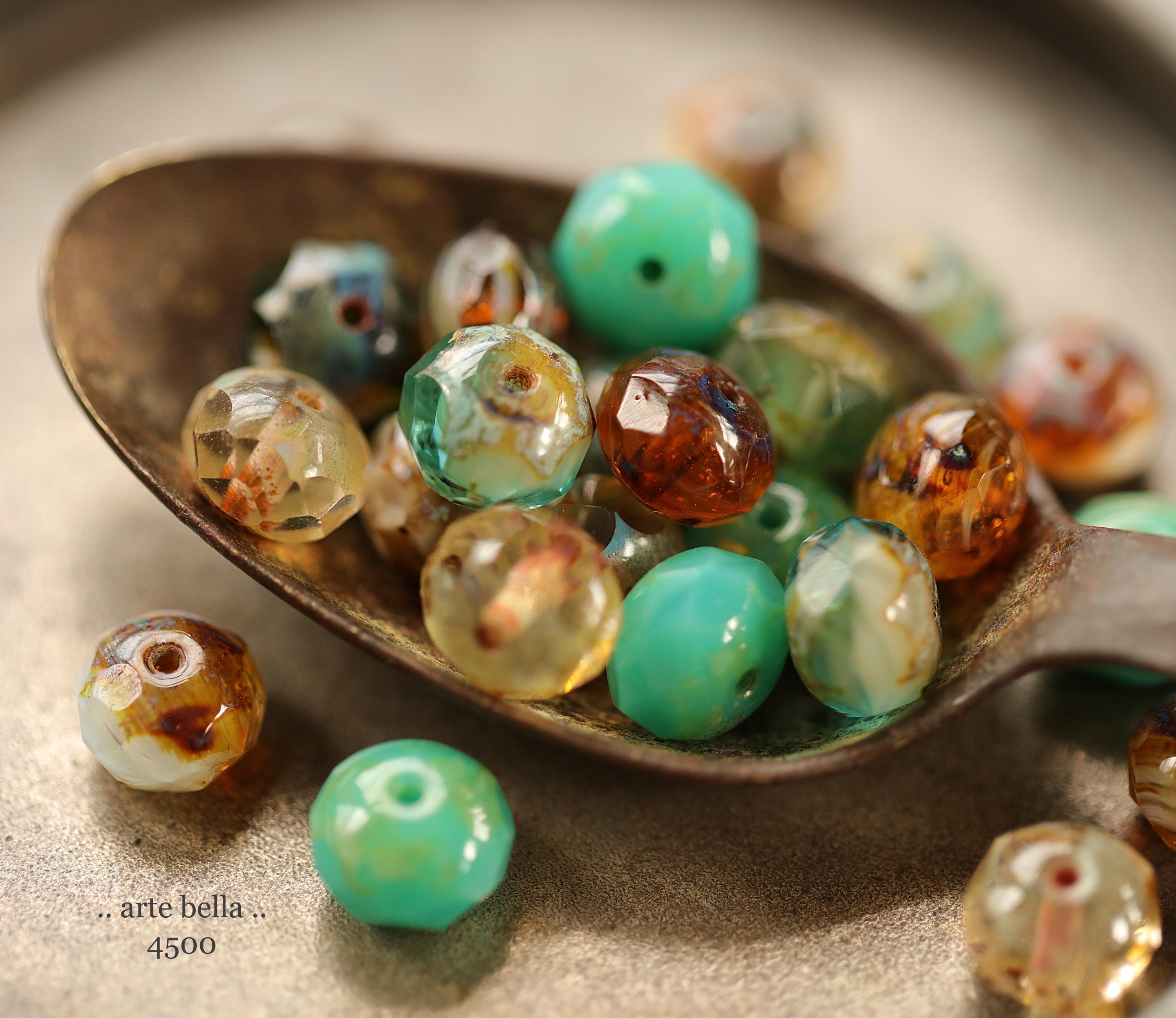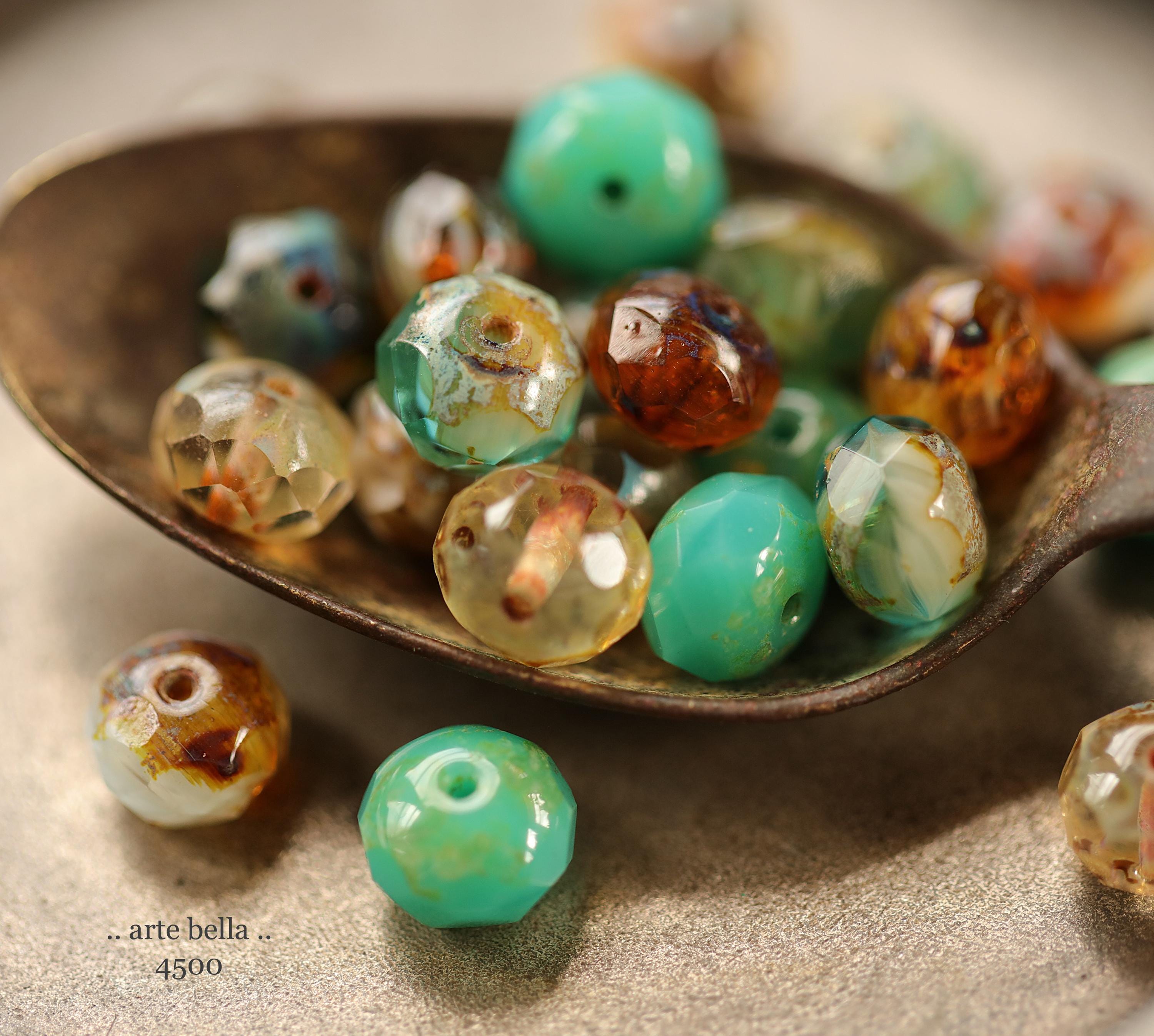 premium glass beads .. OCEANSIDE .. 25 Picasso Czech Glass Faceted Rondelle Bead Mix 6x8-9mm (4500-st) .. jewelry supplies