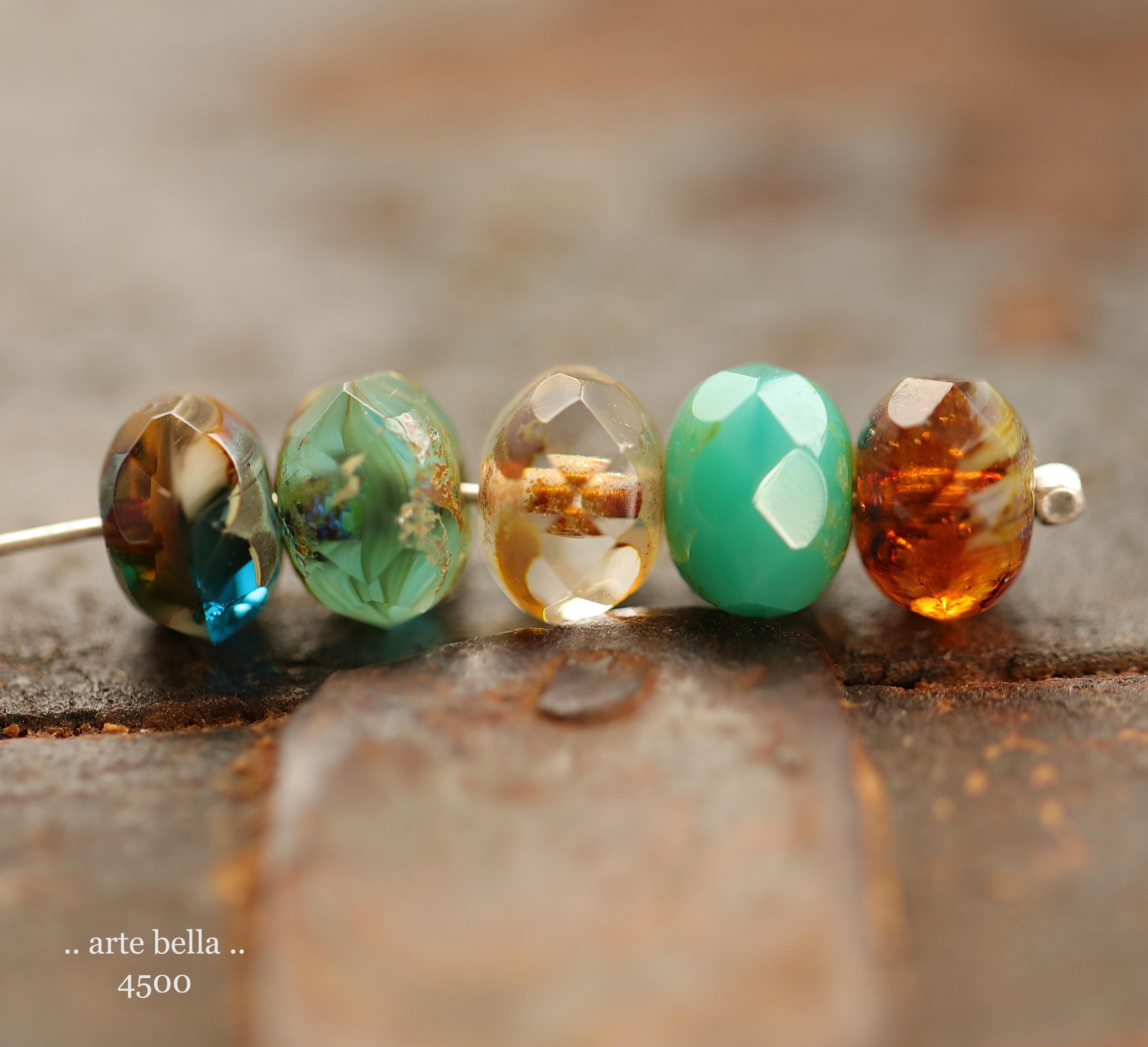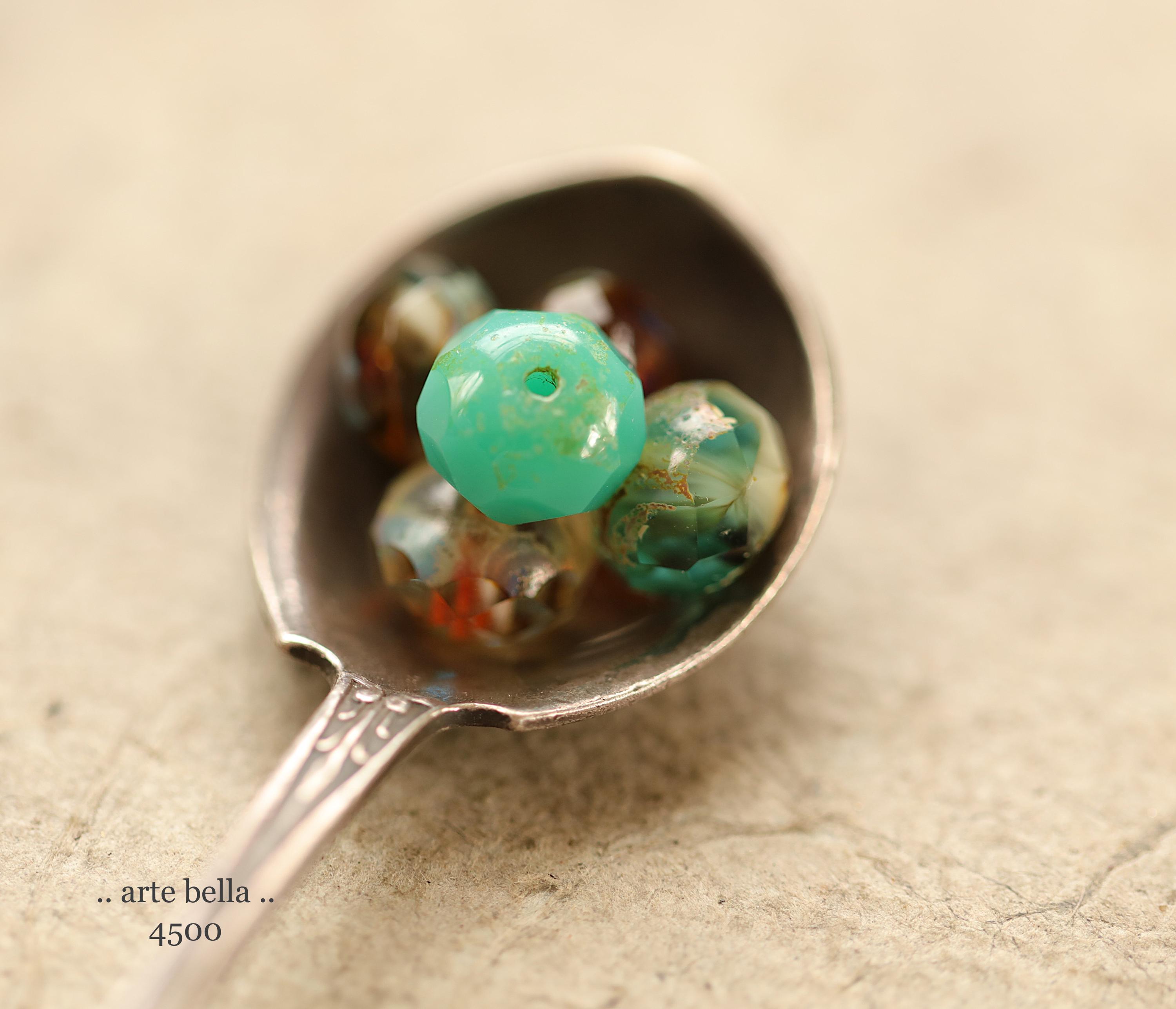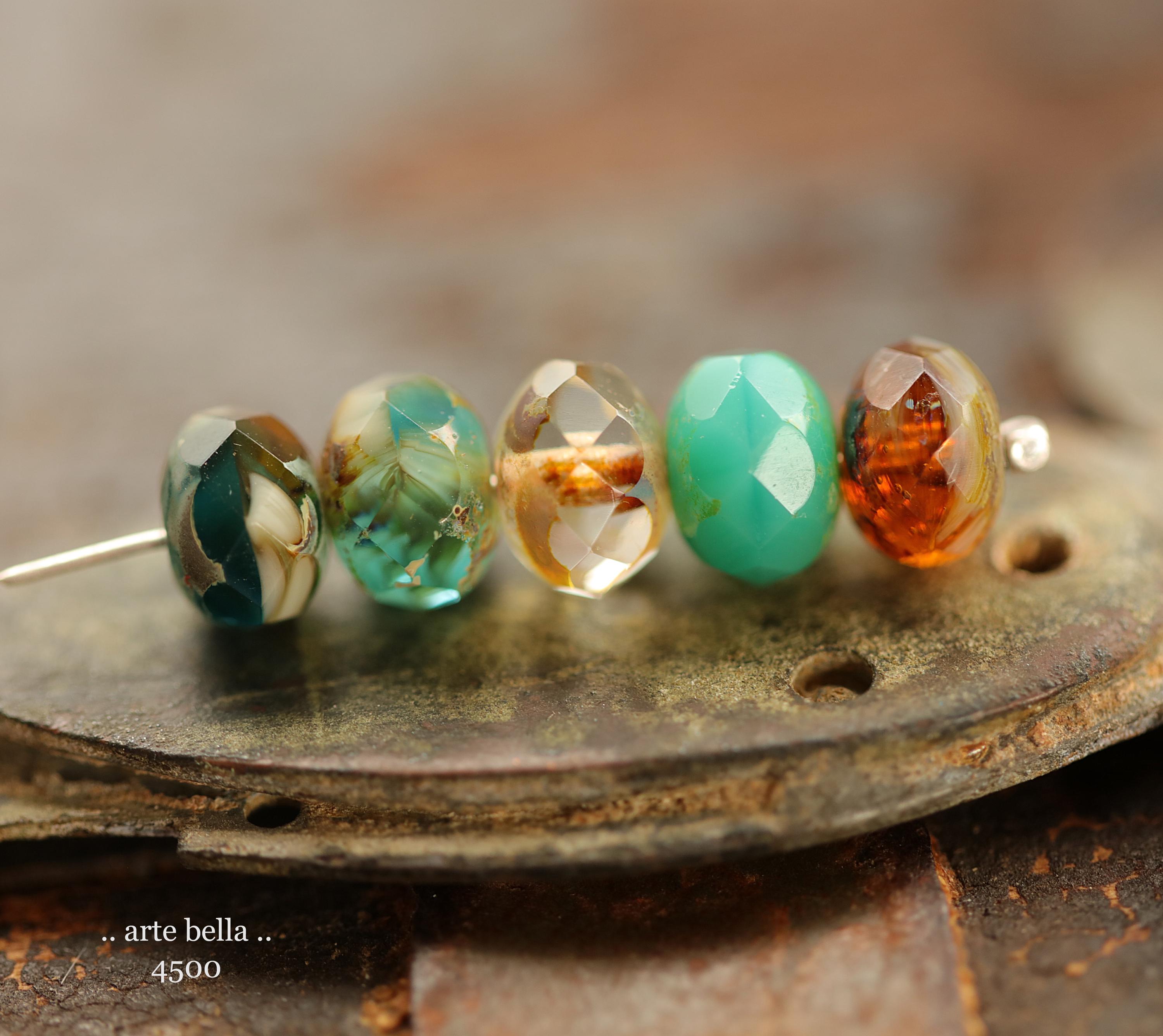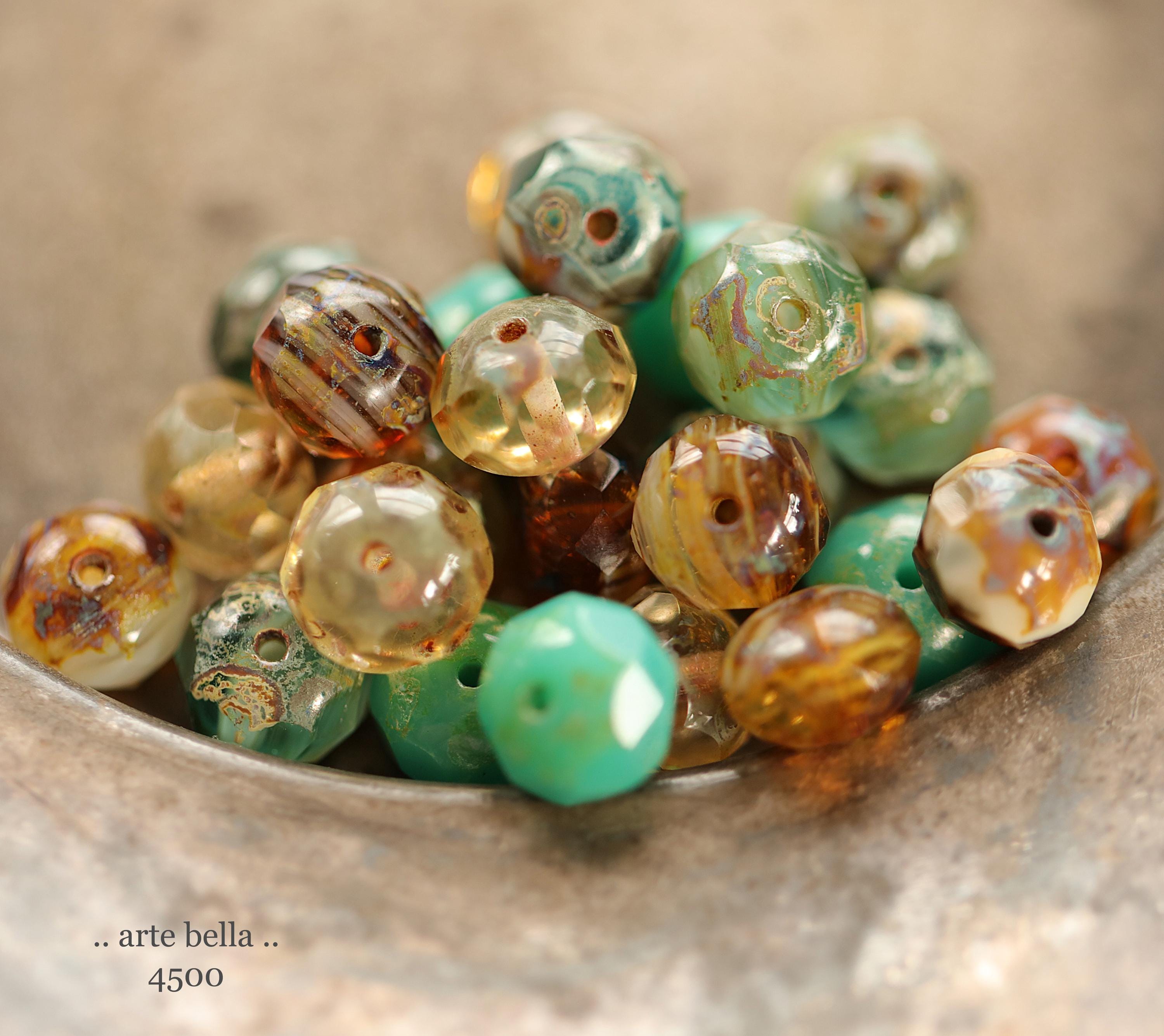 premium glass beads .. OCEANSIDE .. 25 Picasso Czech Glass Faceted Rondelle Bead Mix 6x8-9mm (4500-st) .. jewelry supplies