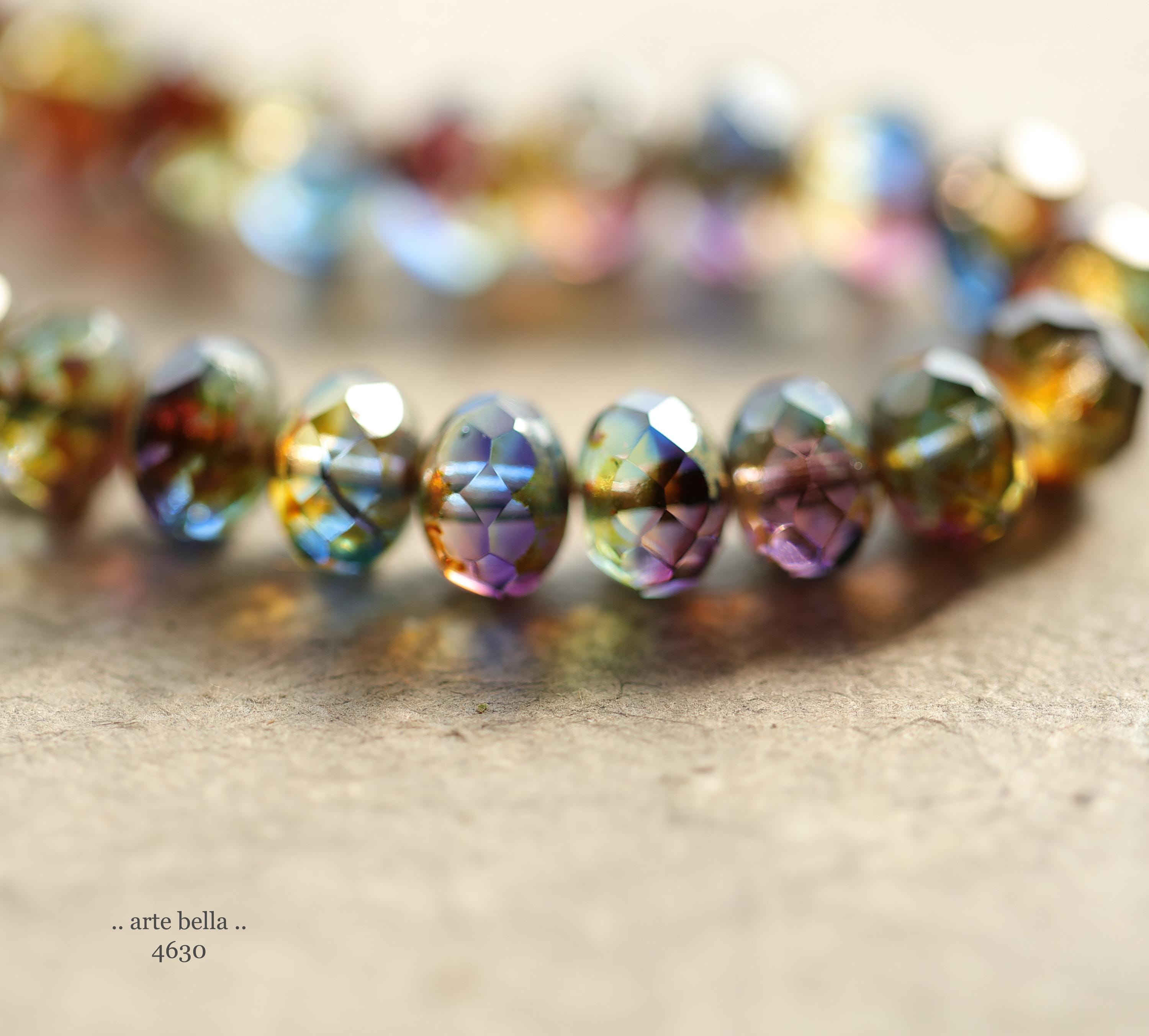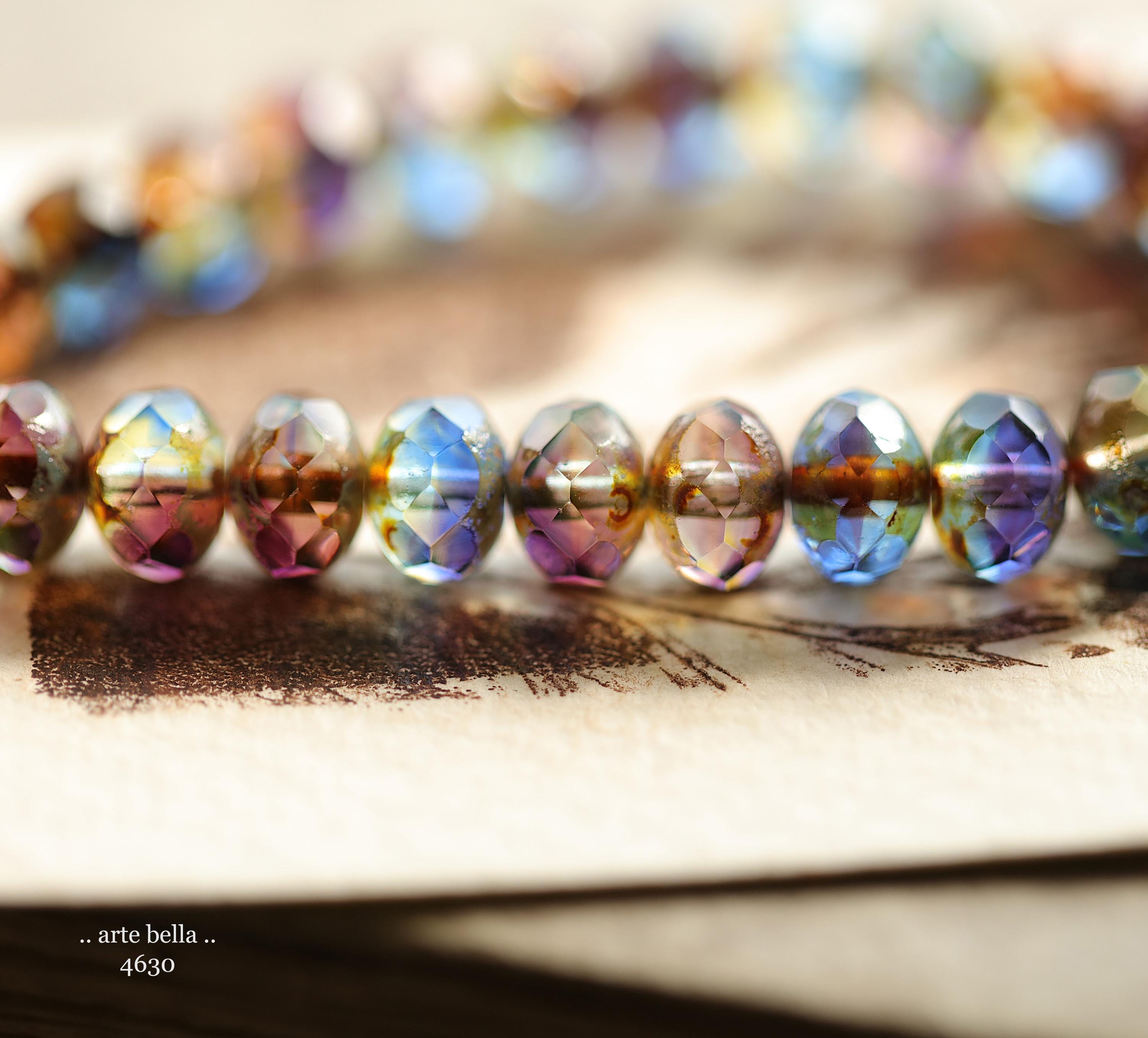 back in stock .. ROYALTY .. 25 Premium Picasso Czech Glass Faceted Rondelle Beads 6x8mm (4630-st) .. jewelry making supplies