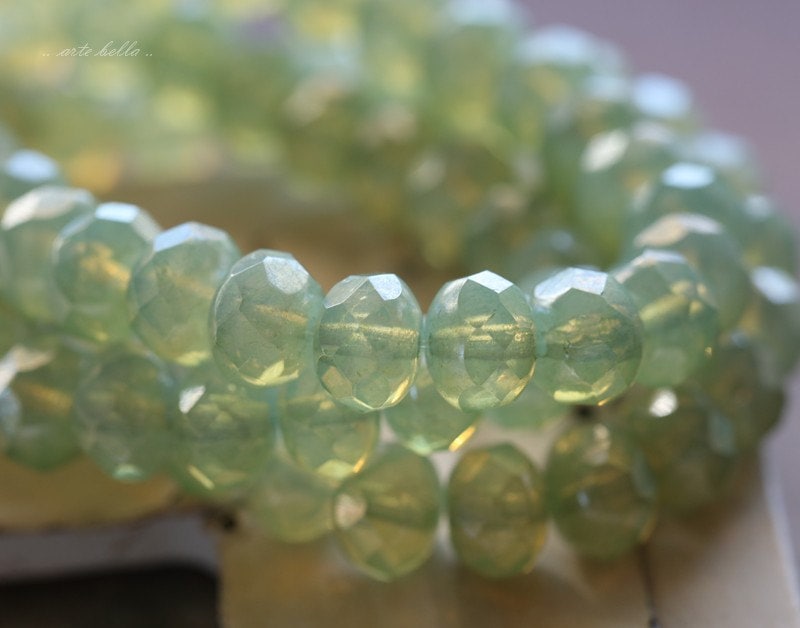 back in stock .. GREEN CASHMERE .. 25 Premium Czech Glass Faceted Rondelle Beads 6x8mm (4880-st) .. jewelry supplies