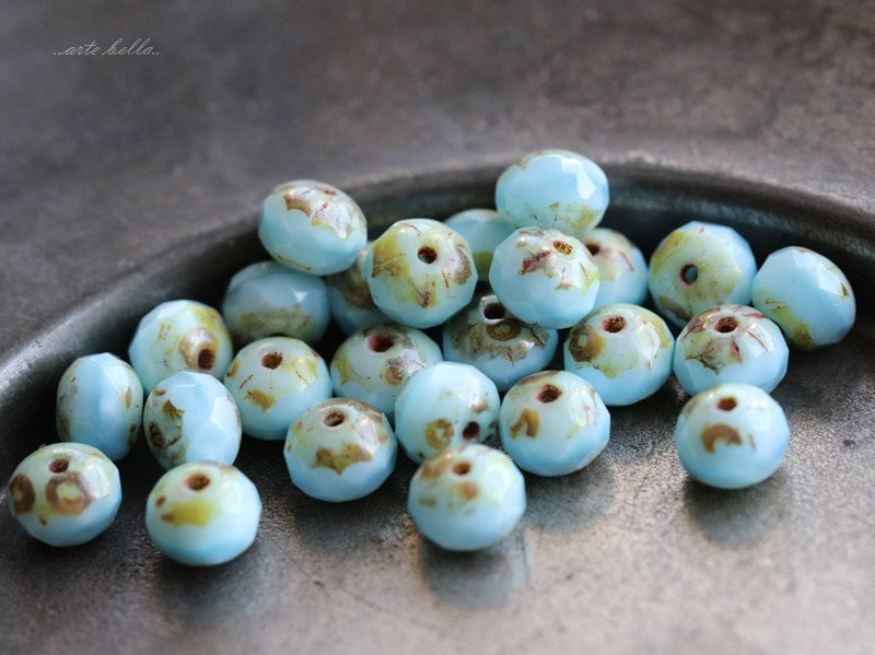 back in stock .. COTTON CANDY PEBBLES .. 25 Picasso Czech Glass Faceted Rondelle Beads 5x7mm (4866-st) .. jewelry supplies