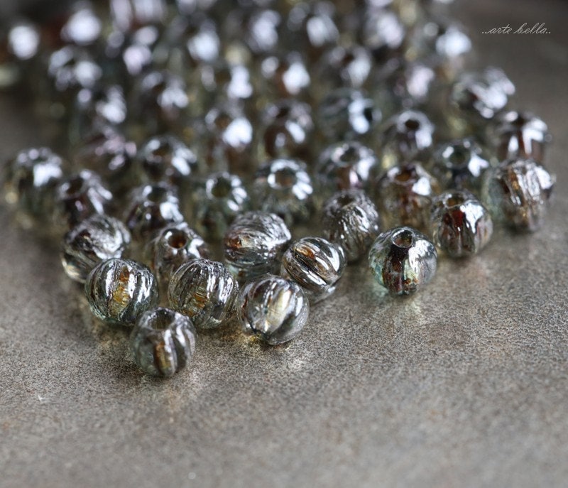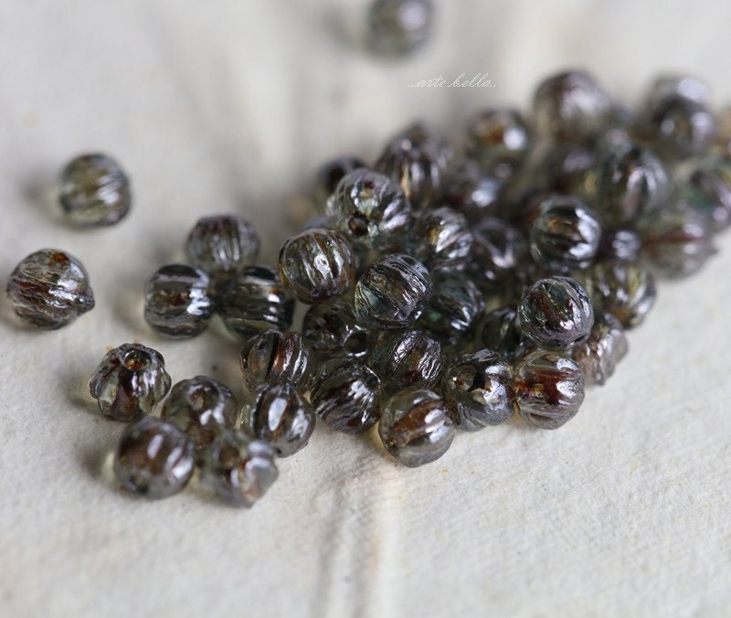 back in stock .. PINE MINI MELONS .. 100 Premium Luster Picasso Czech Melon Beads 3mm (5057-st) .. jewelry supplies