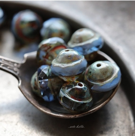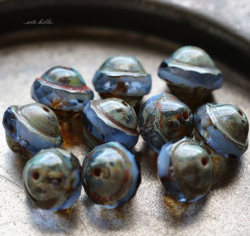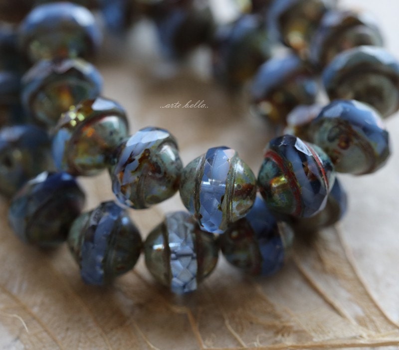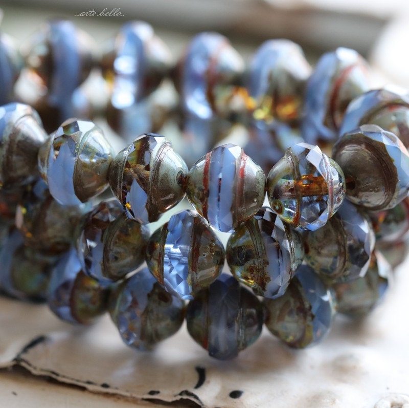 back in stock .. CORNFLOWER BLISS .. 15 Premium Picasso Czech Glass Saturn Beads 8x10mm (5157-st) .. jewelry supplies