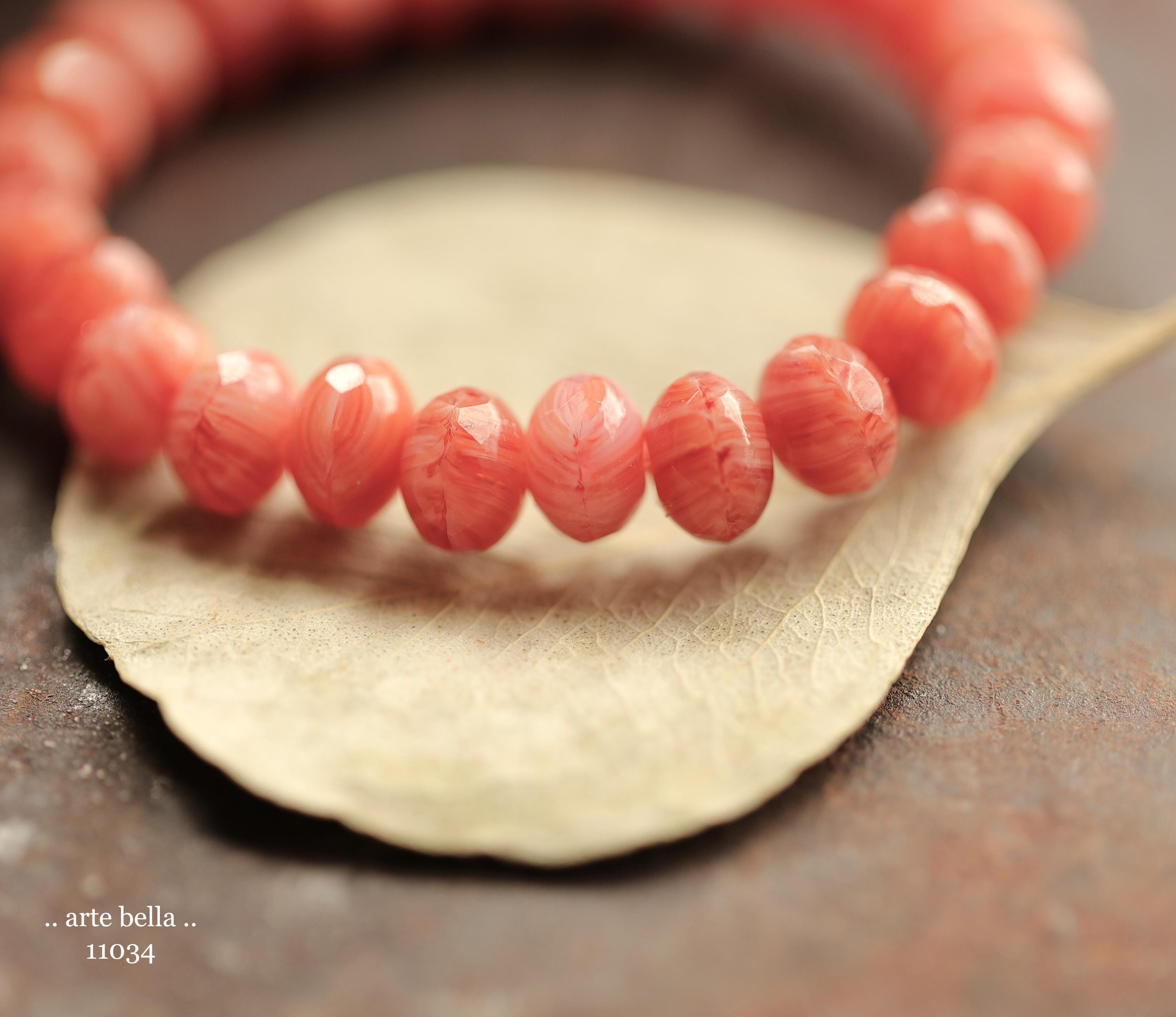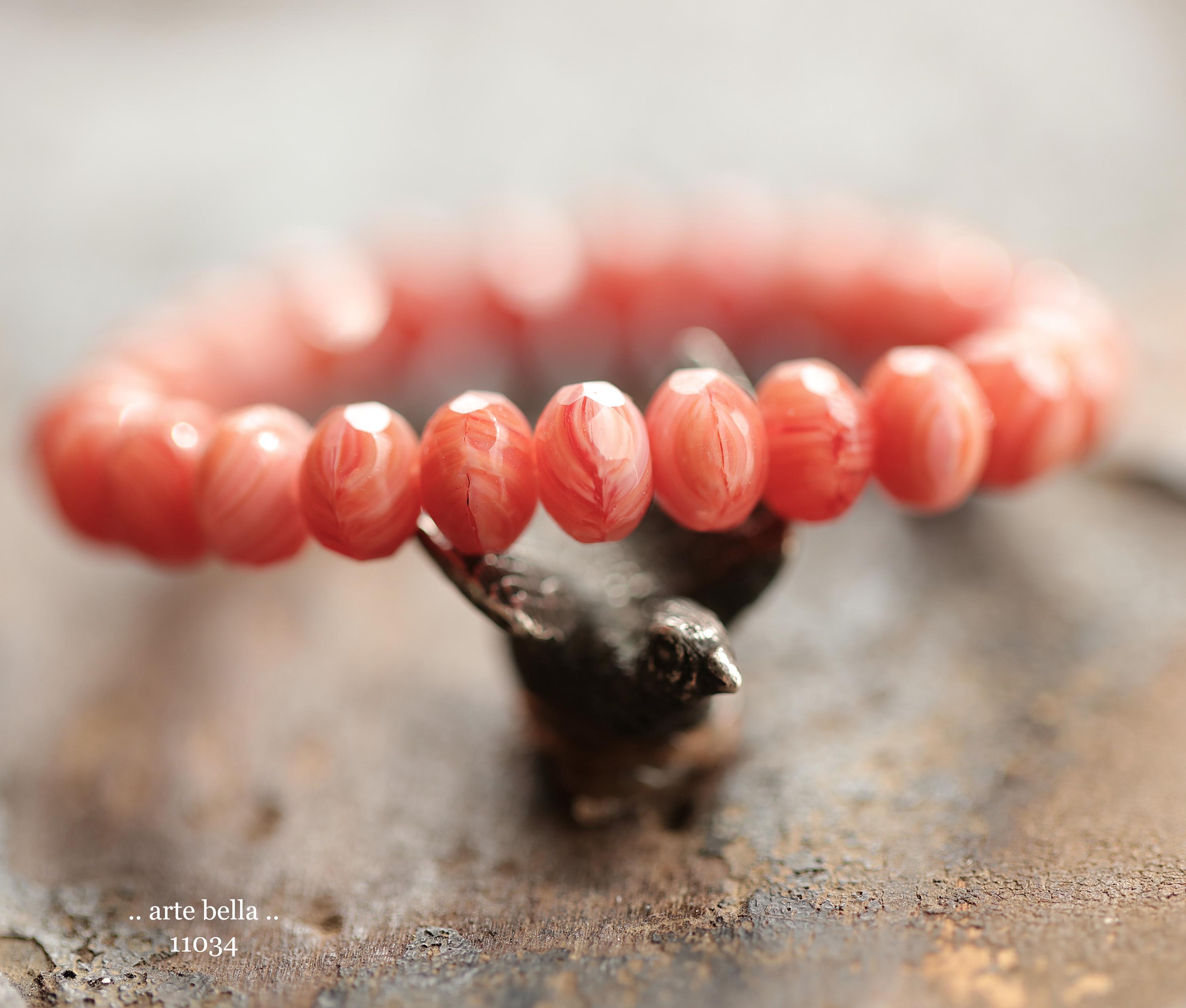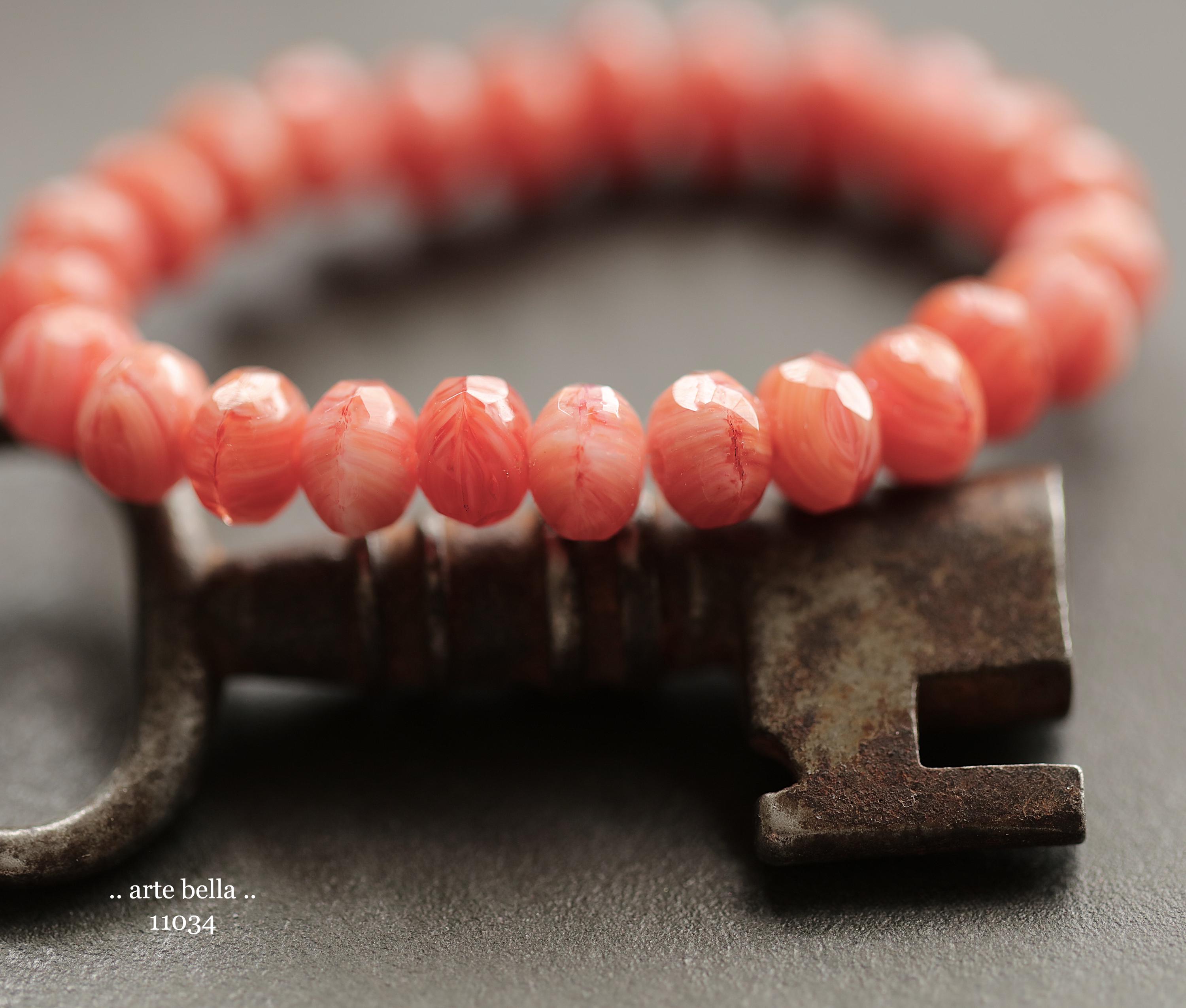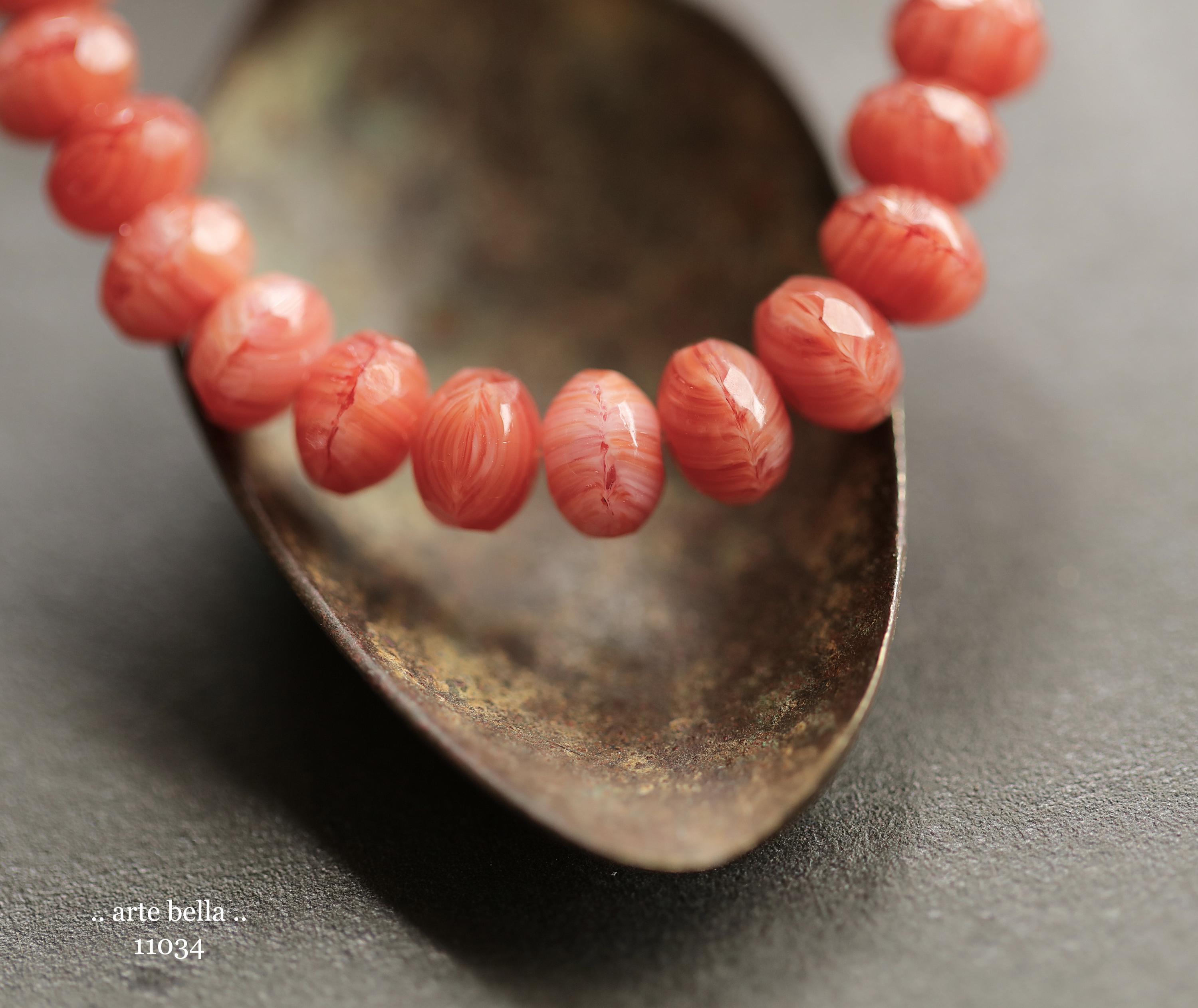 STRIPED CORAL PEBBLES .. New 25 Premium Czech Glass Faceted Rondelle Beads 5x7mm (11034-st) .. jewelry supplies
