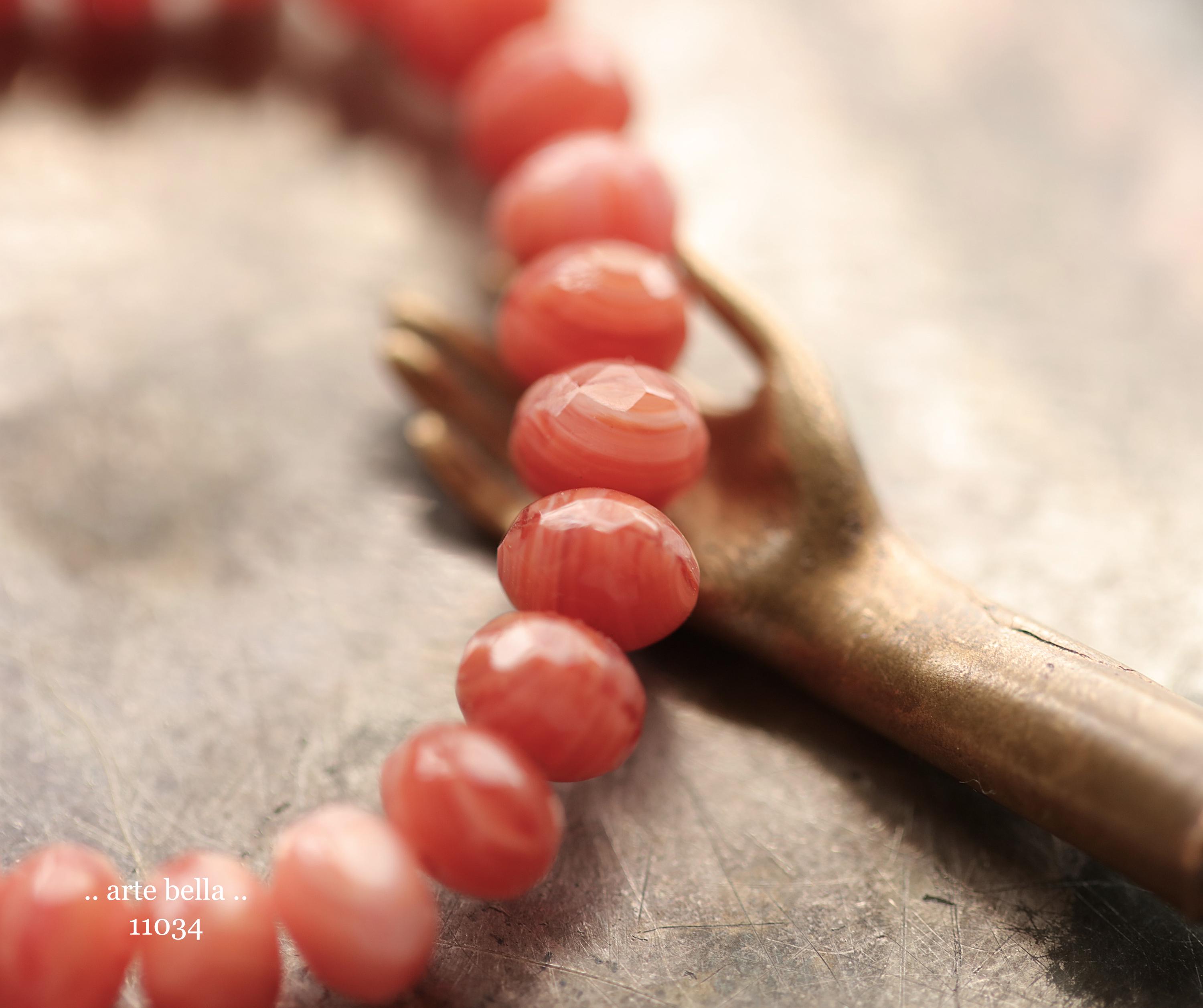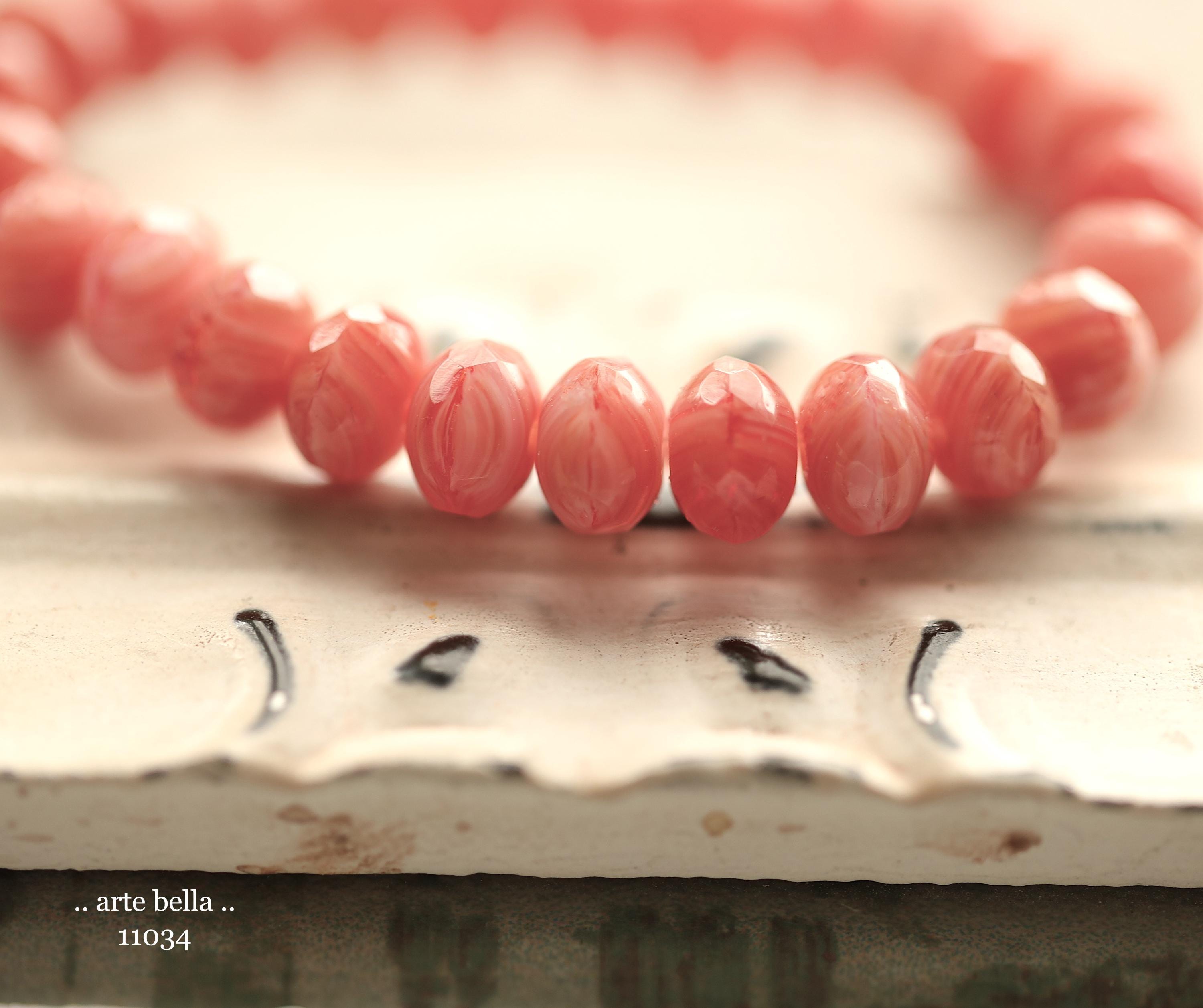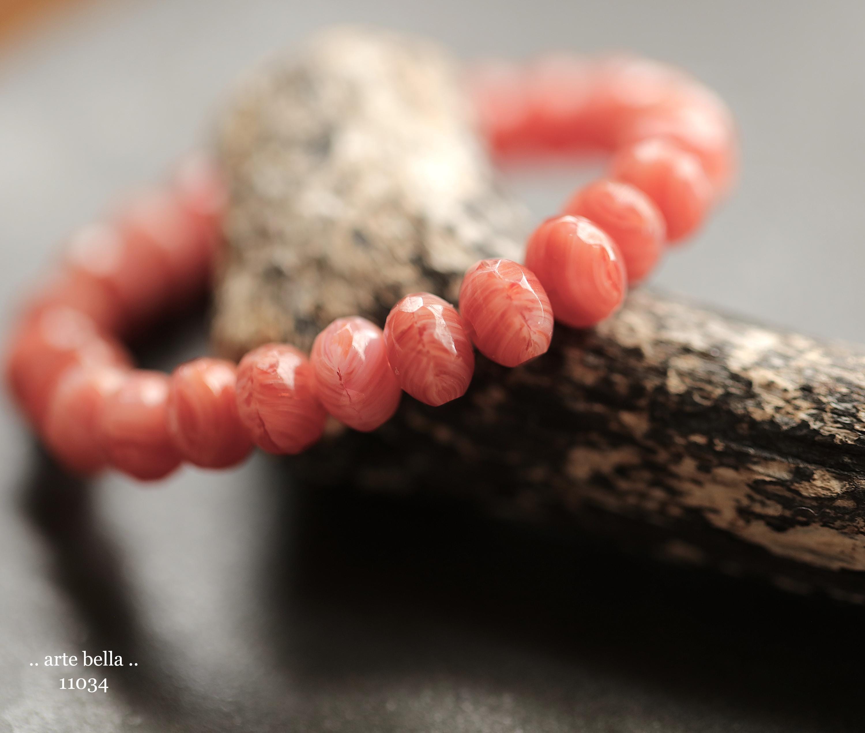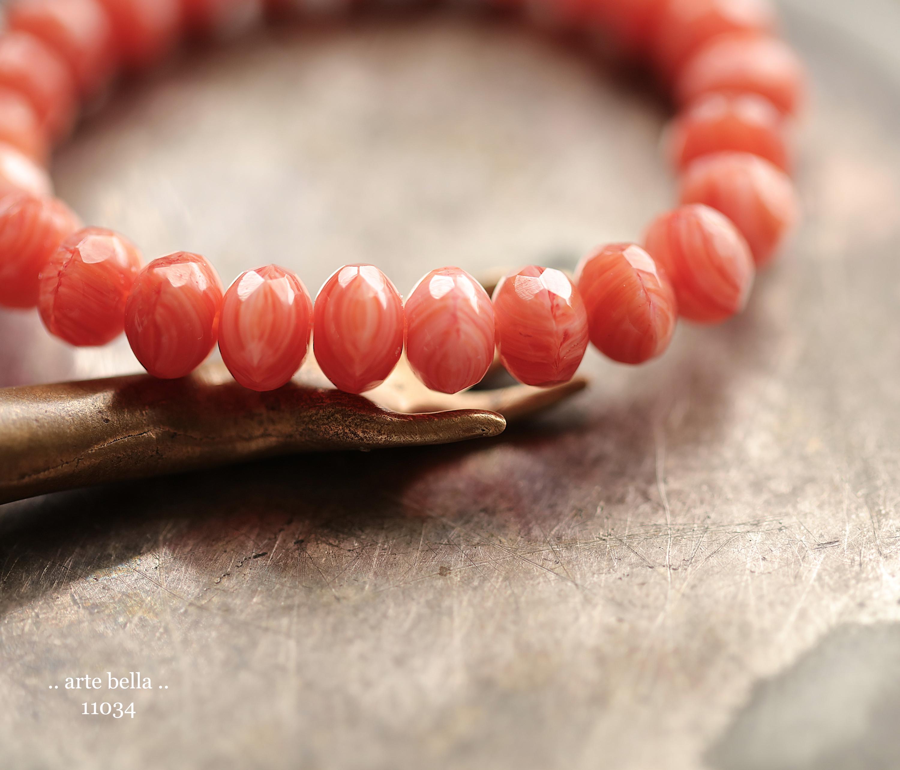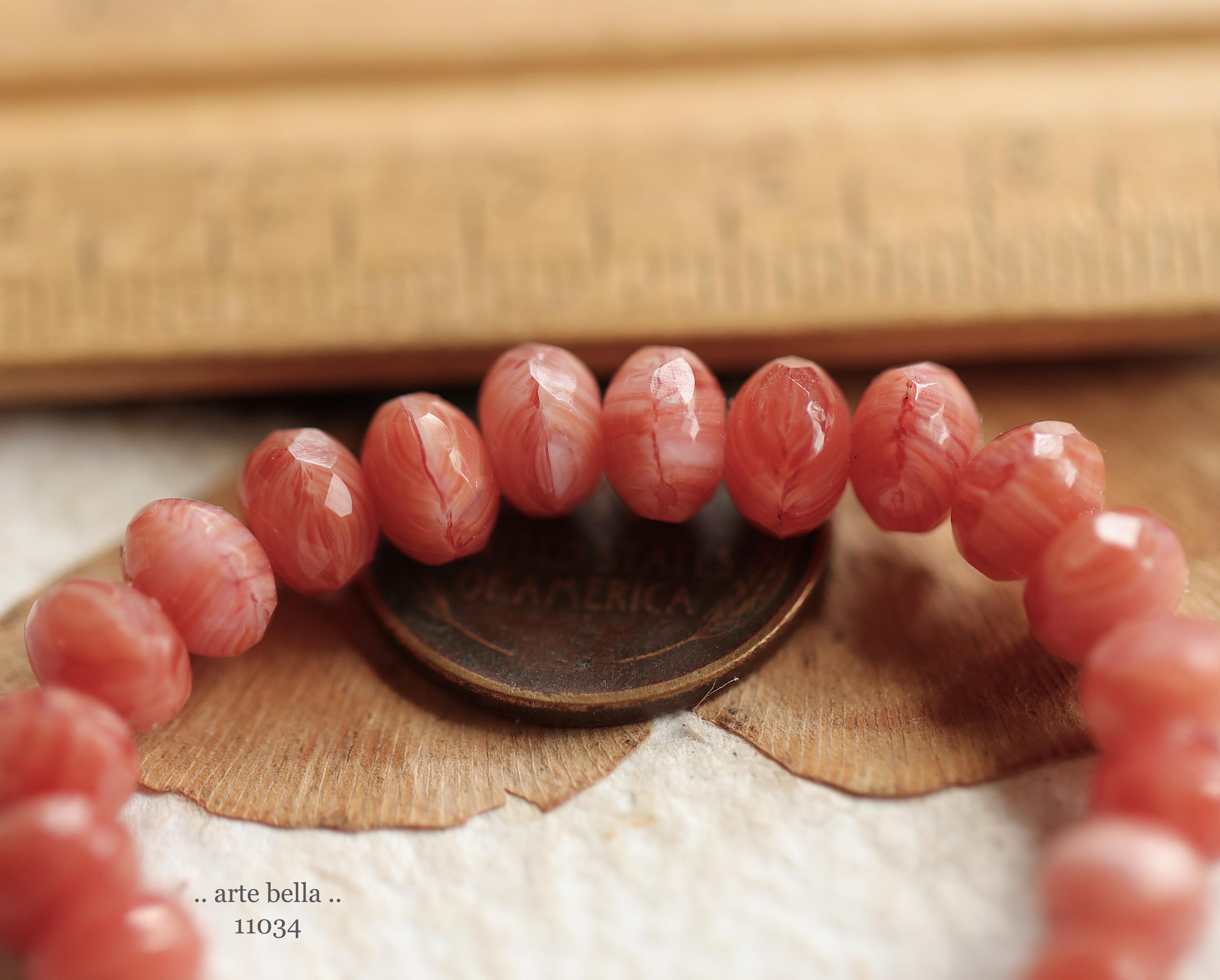 STRIPED CORAL PEBBLES .. New 25 Premium Czech Glass Faceted Rondelle Beads 5x7mm (11034-st) .. jewelry supplies