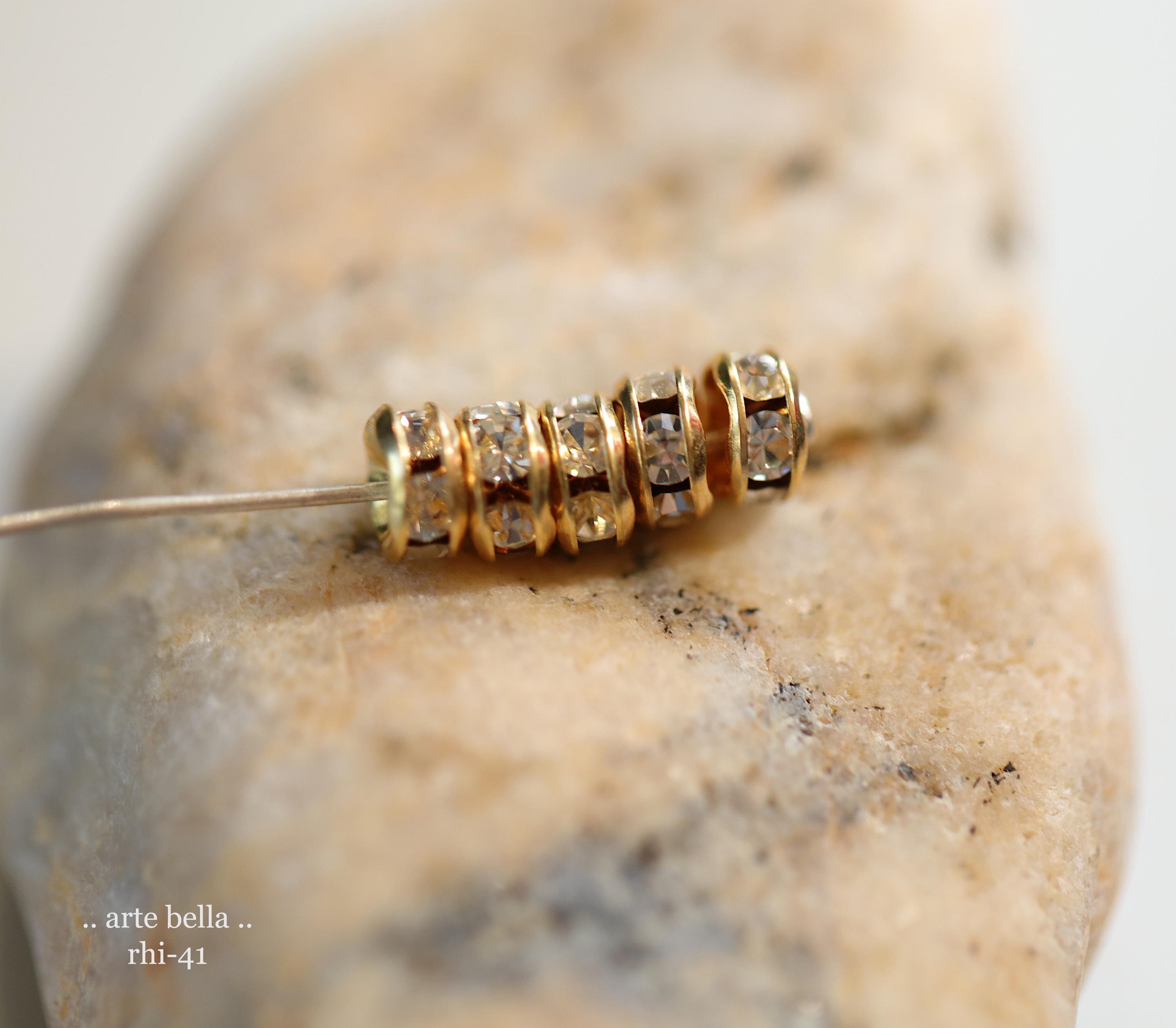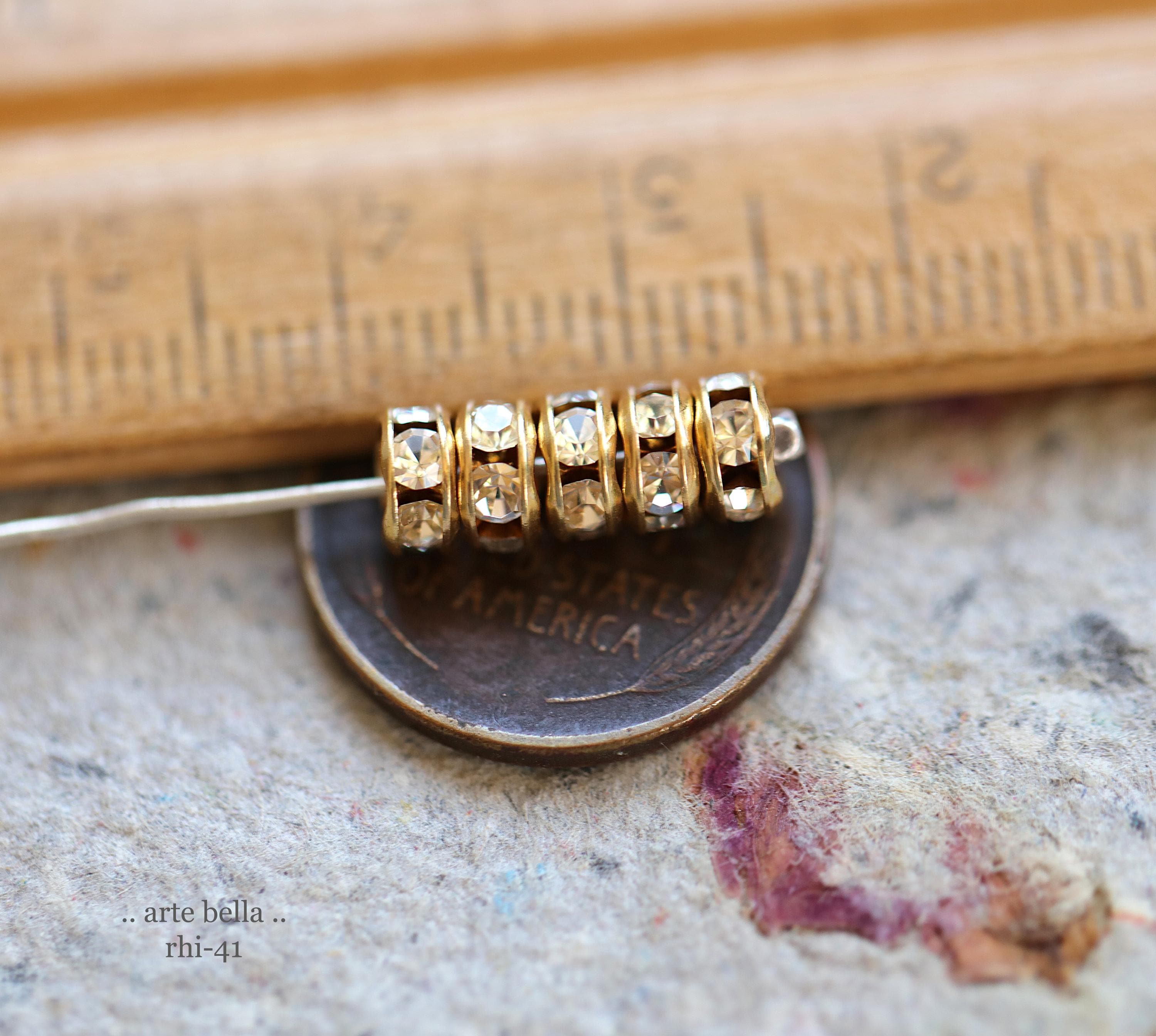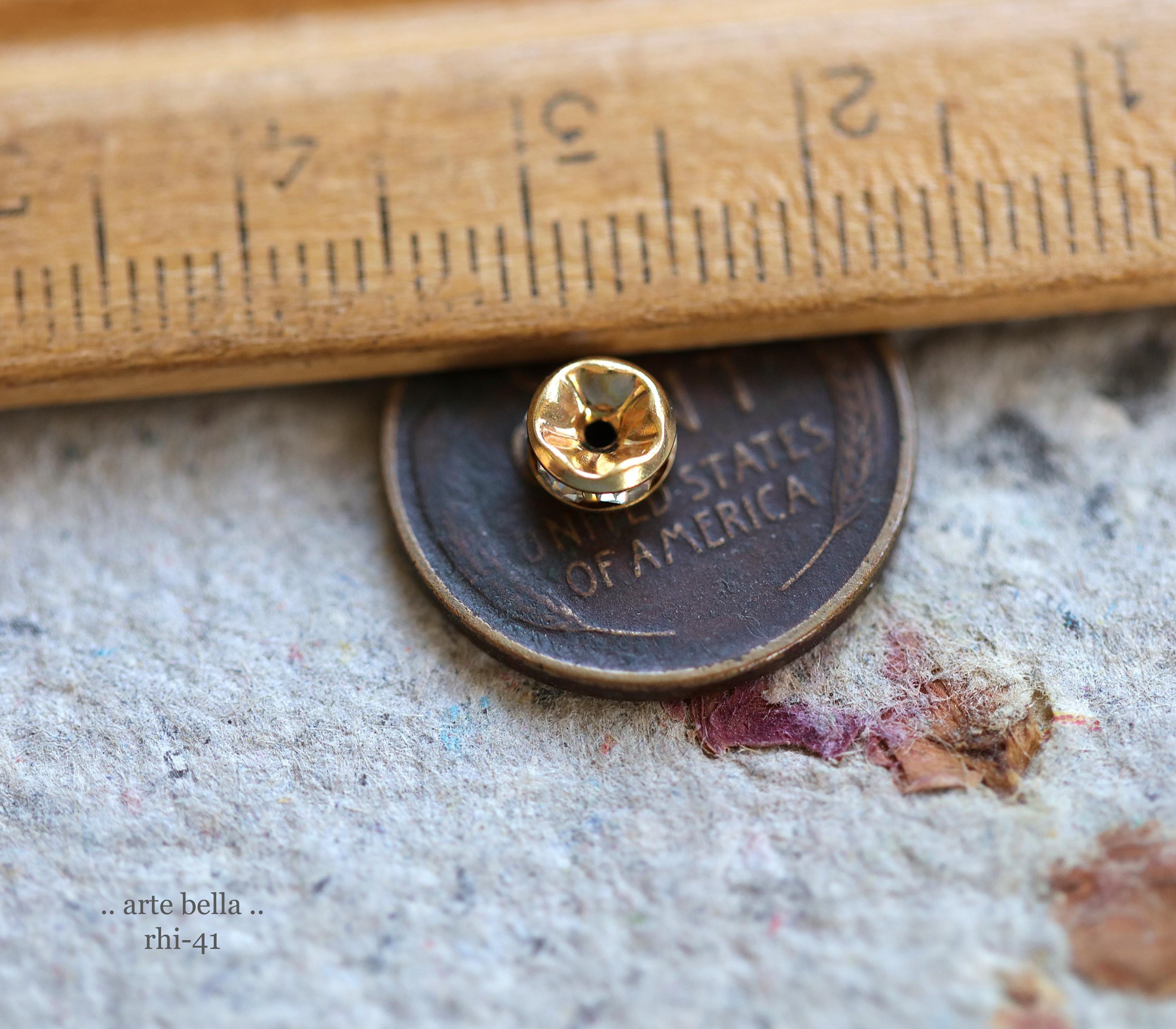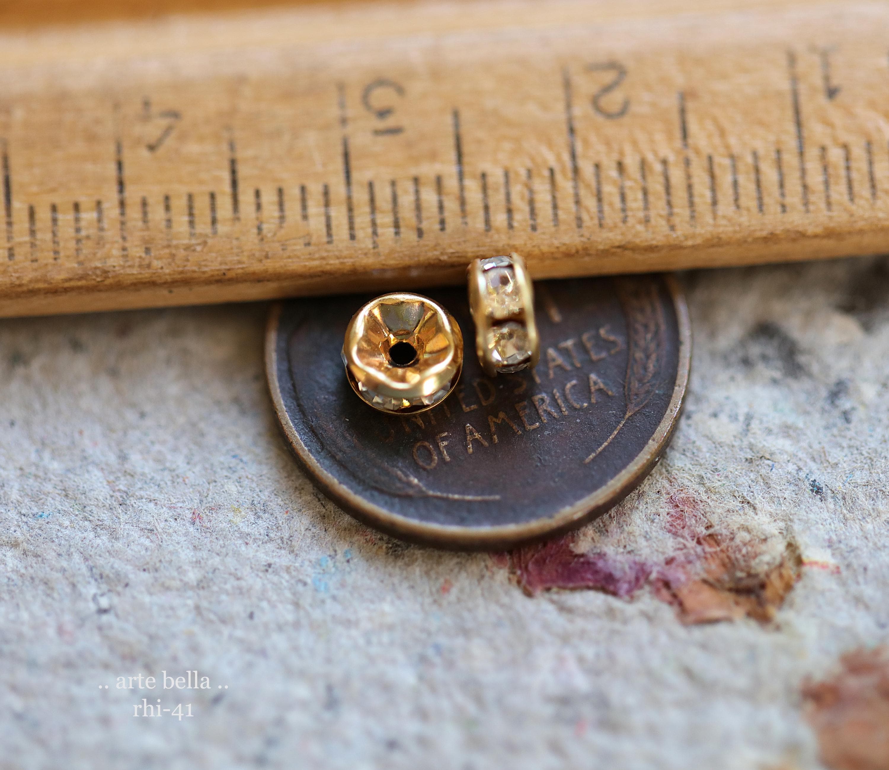 NEW .. 10 Premium Czech 5mm Gold Metal Clear Crystal Rhinestone Rondelles (rhi-41/10) .. jewelry making supplies