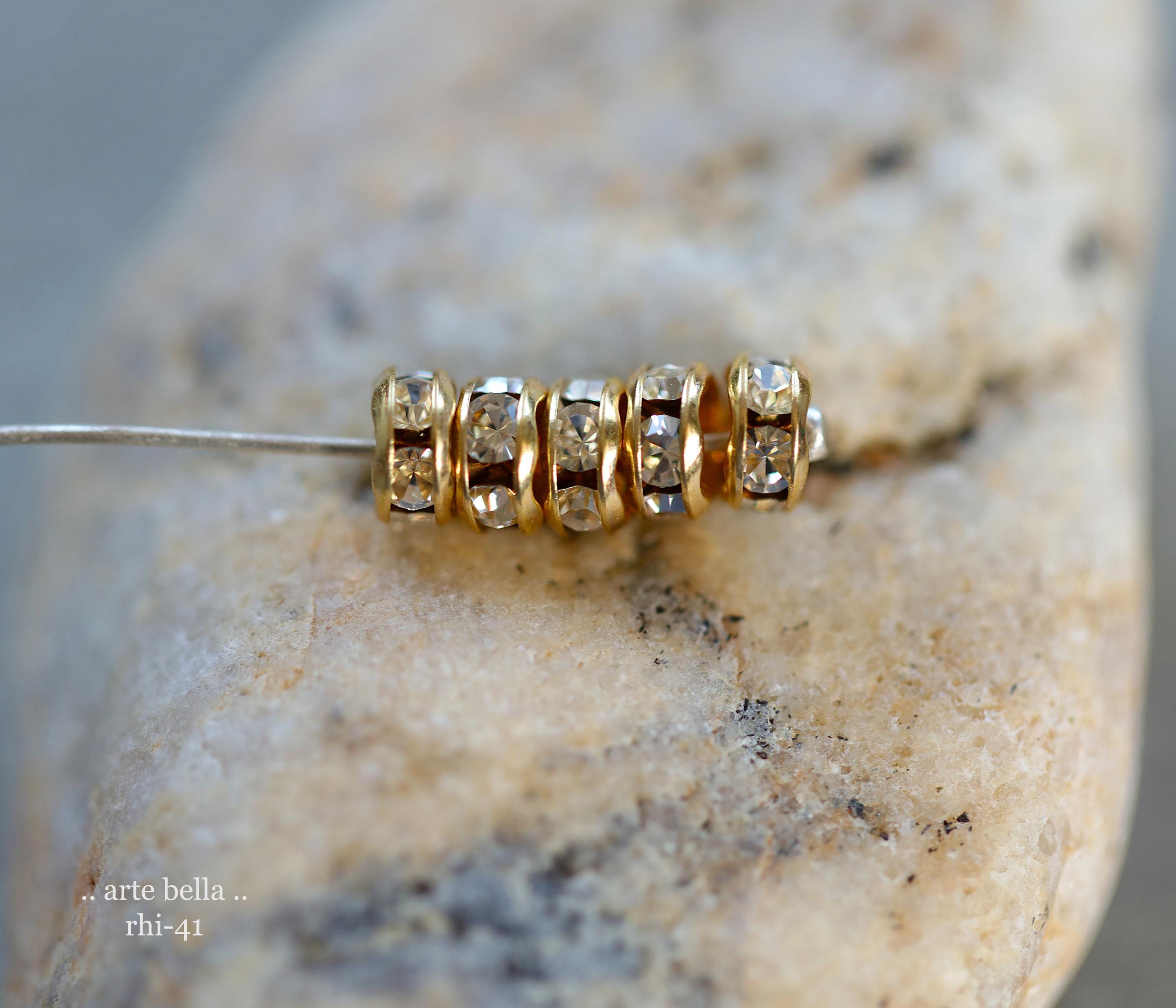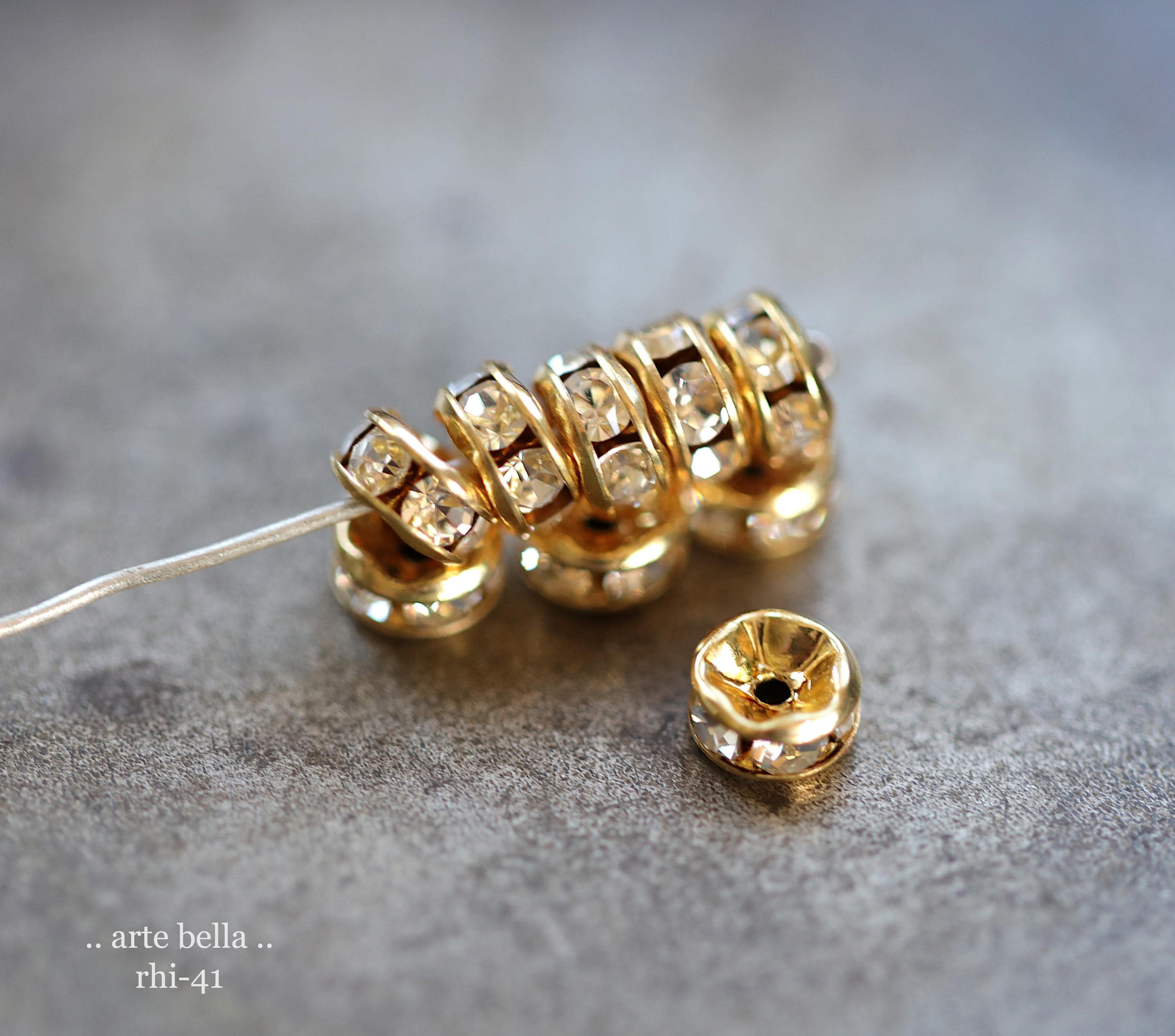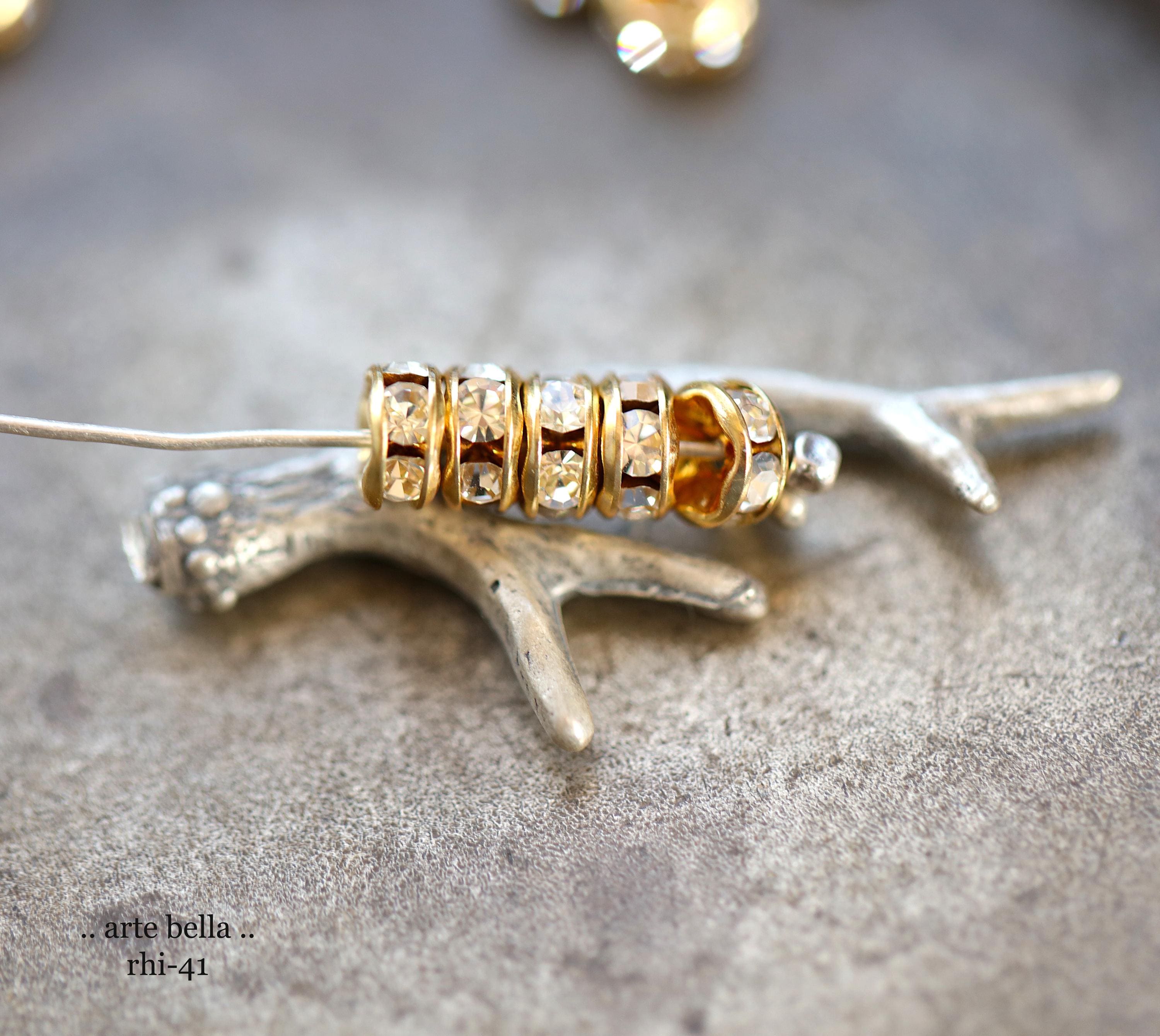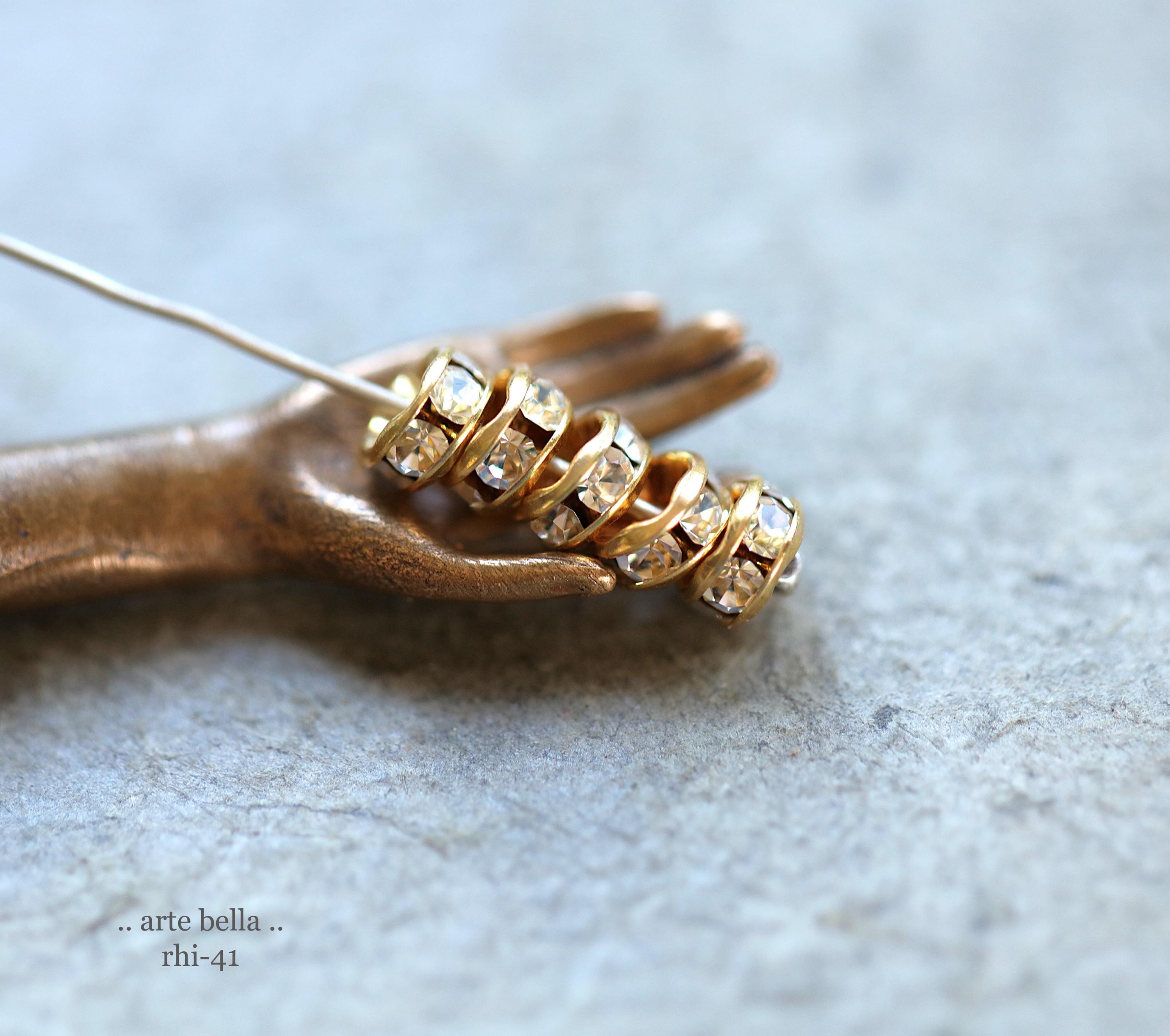 NEW .. 10 Premium Czech 5mm Gold Metal Clear Crystal Rhinestone Rondelles (rhi-41/10) .. jewelry making supplies