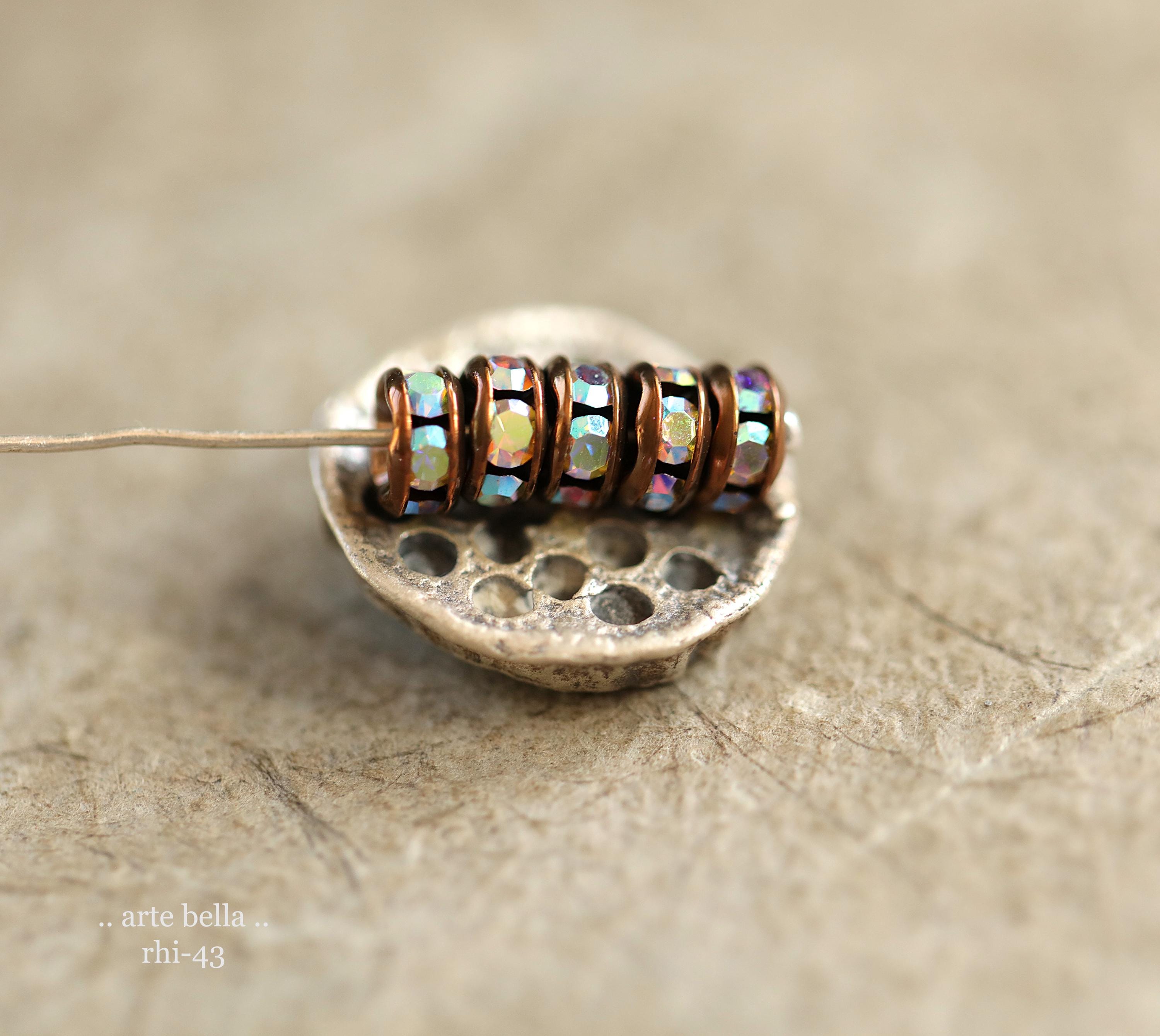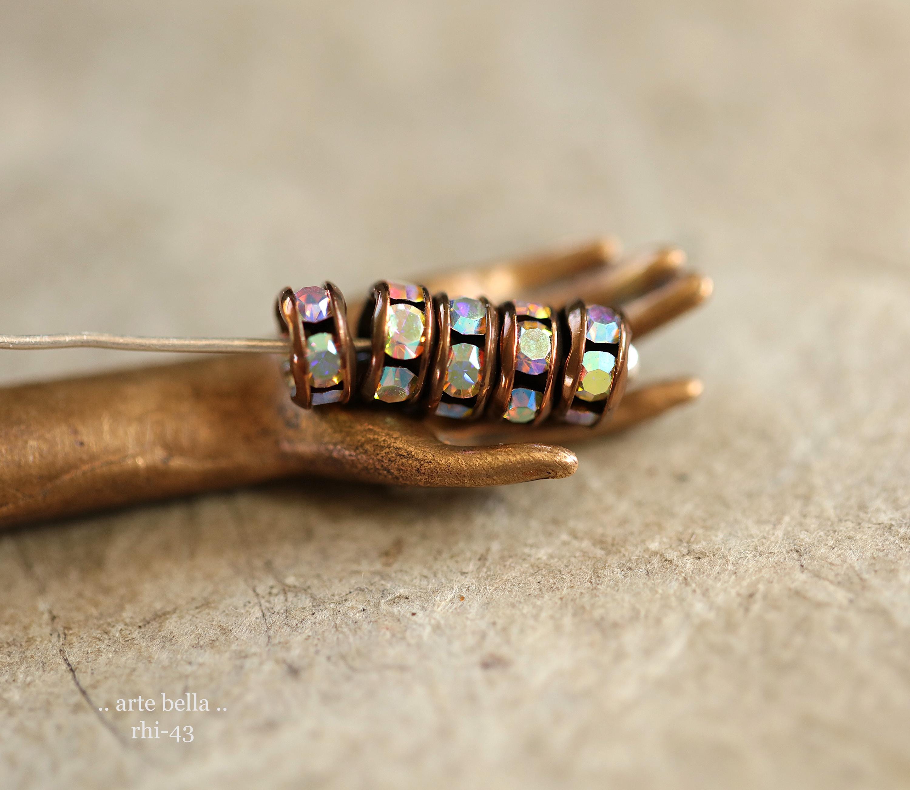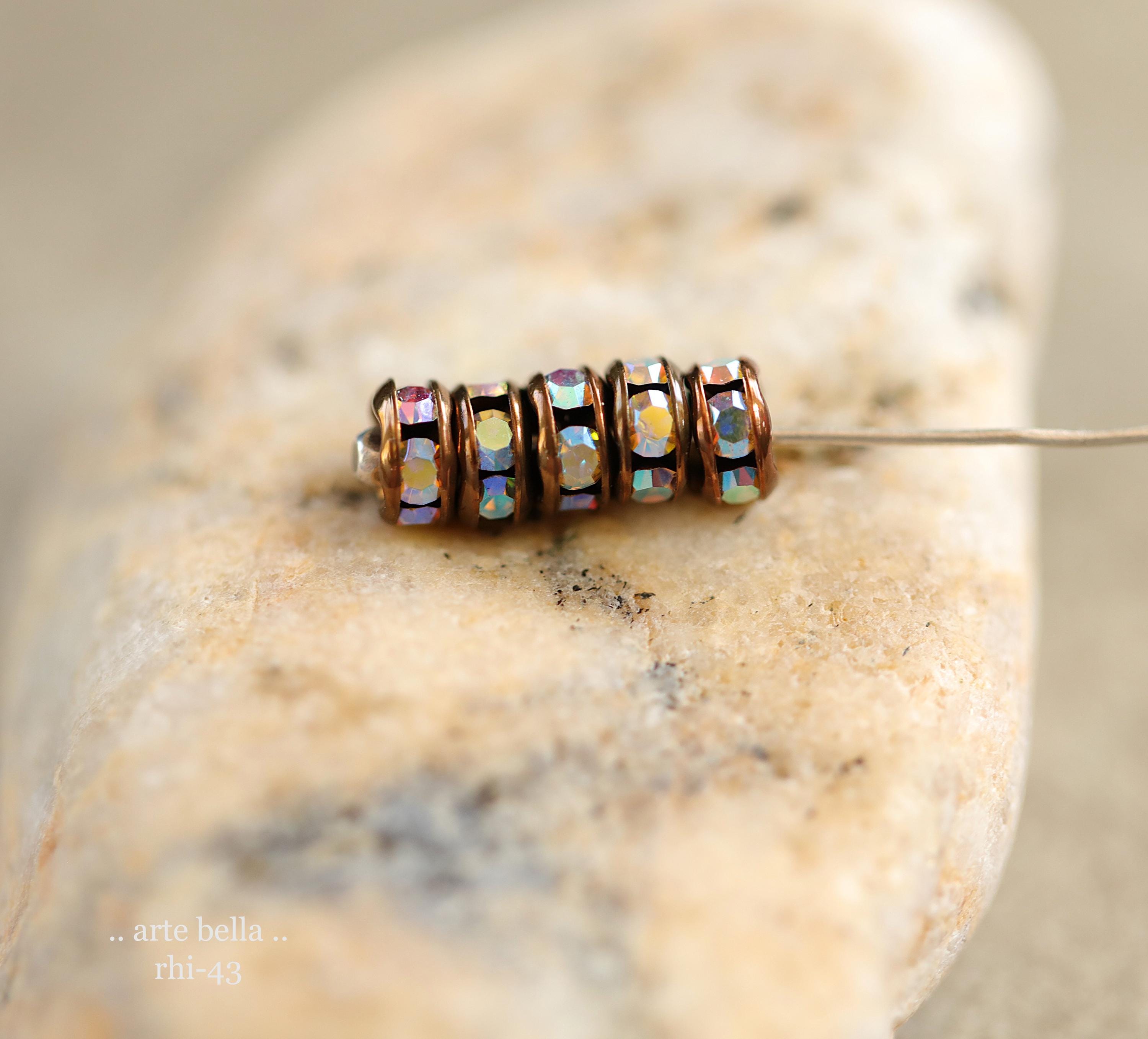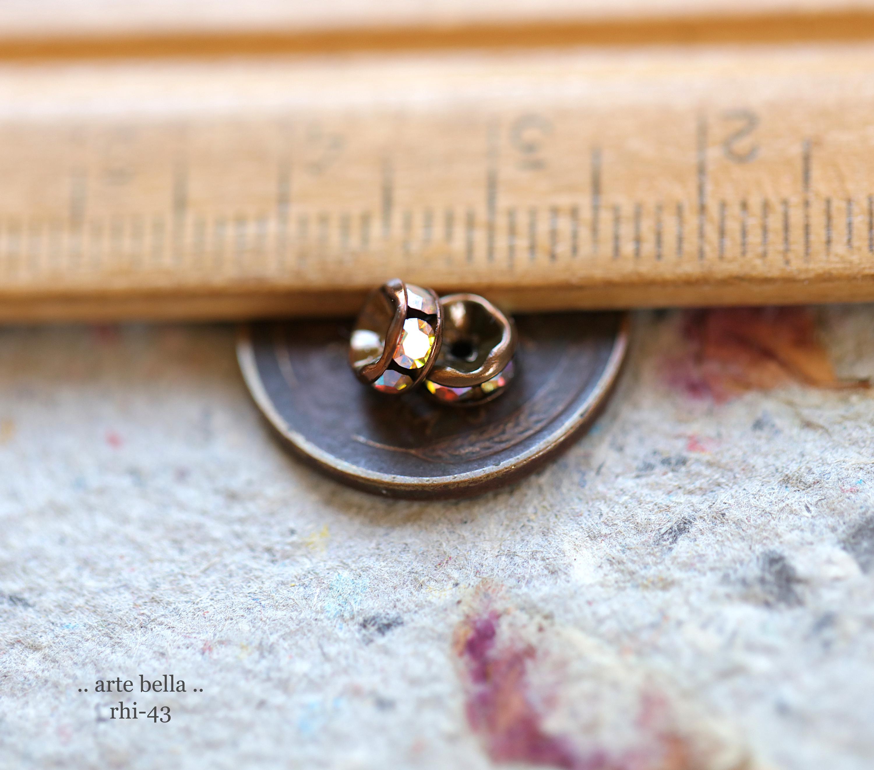 NEW .. 12 Premium Czech 5mm Antique Copper Metal AB Crystal Rhinestone Rondelles (rhi-43/12) .. jewelry making supplies