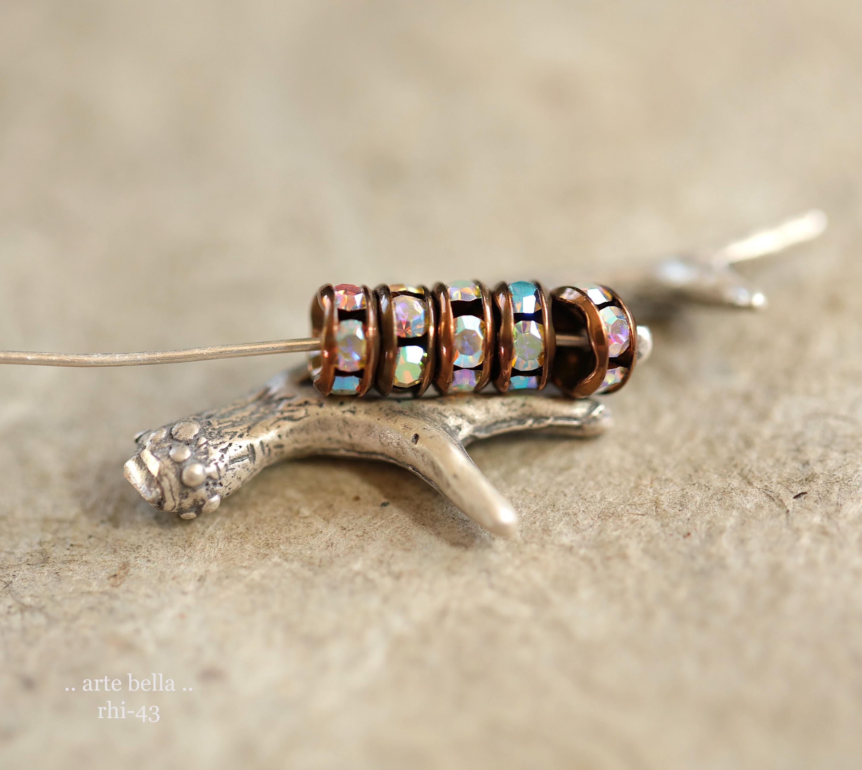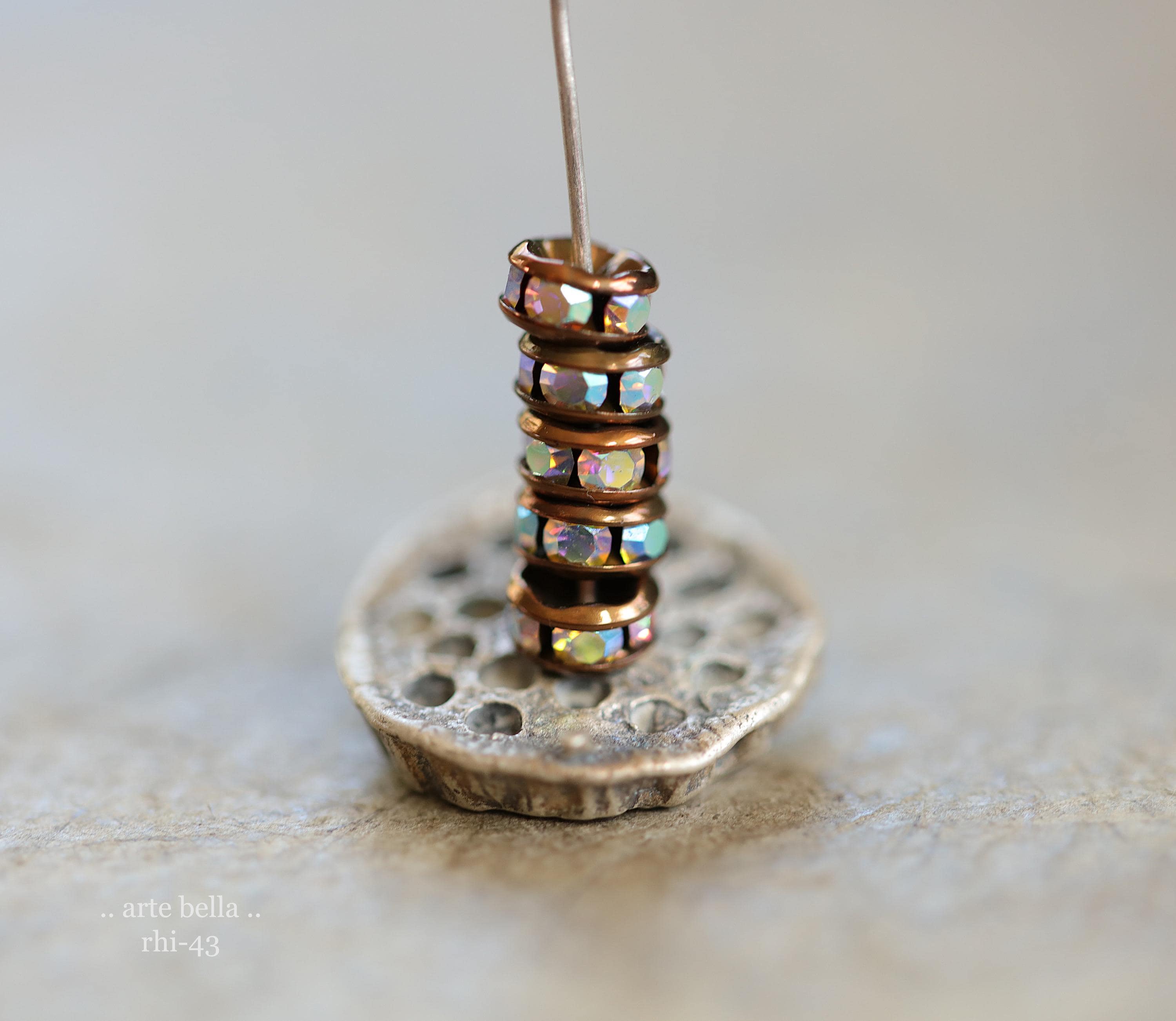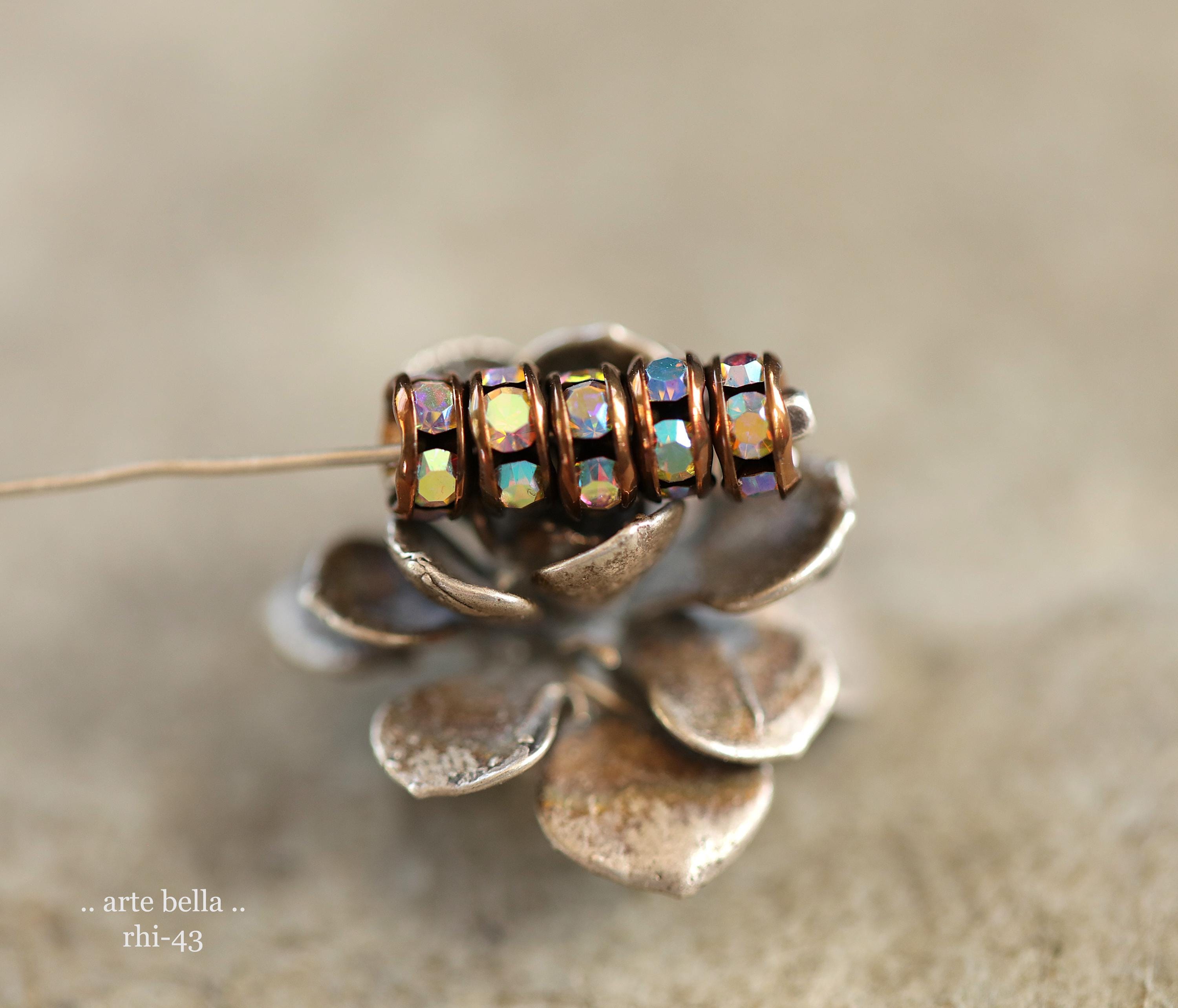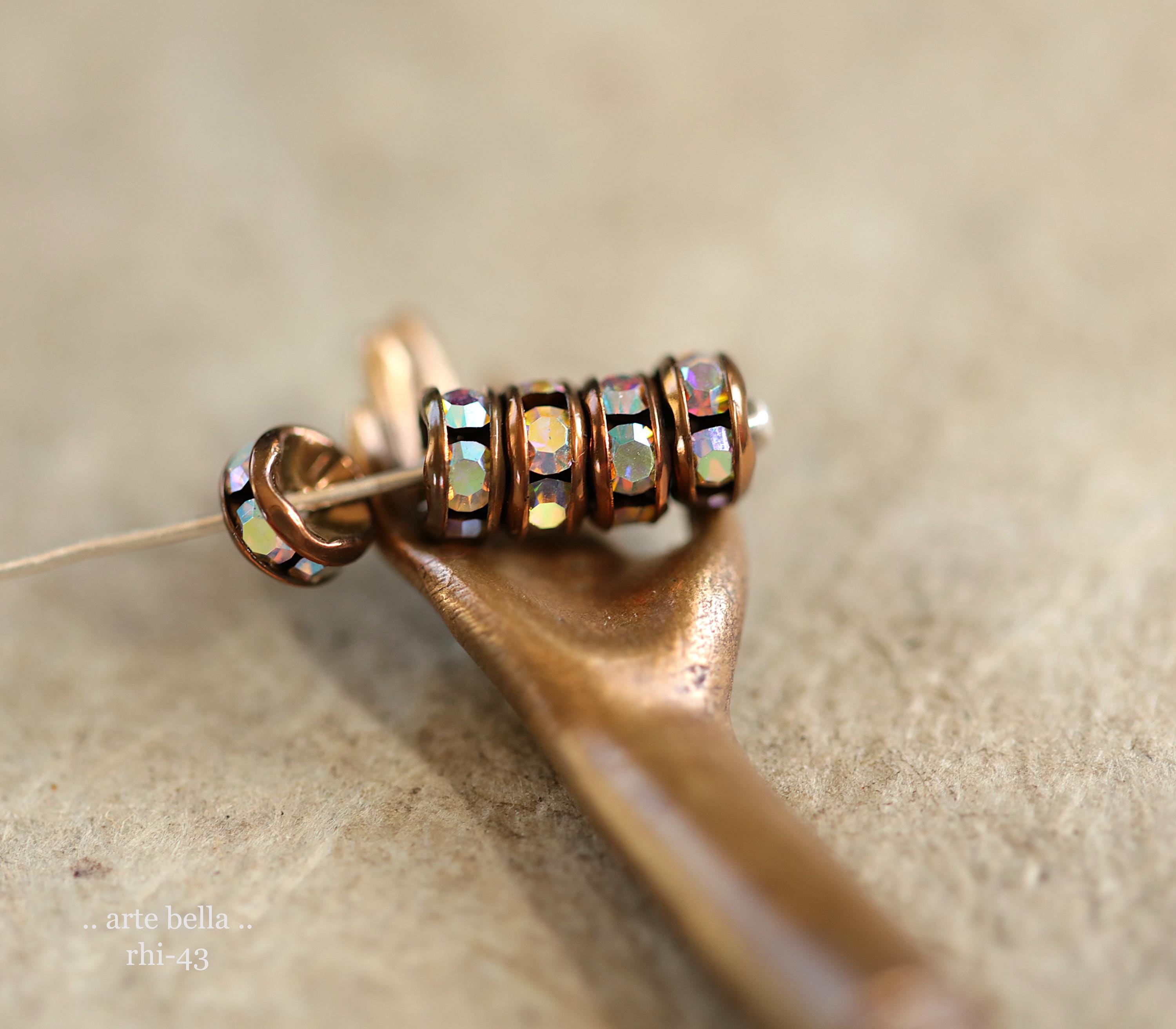 NEW .. 12 Premium Czech 5mm Antique Copper Metal AB Crystal Rhinestone Rondelles (rhi-43/12) .. jewelry making supplies