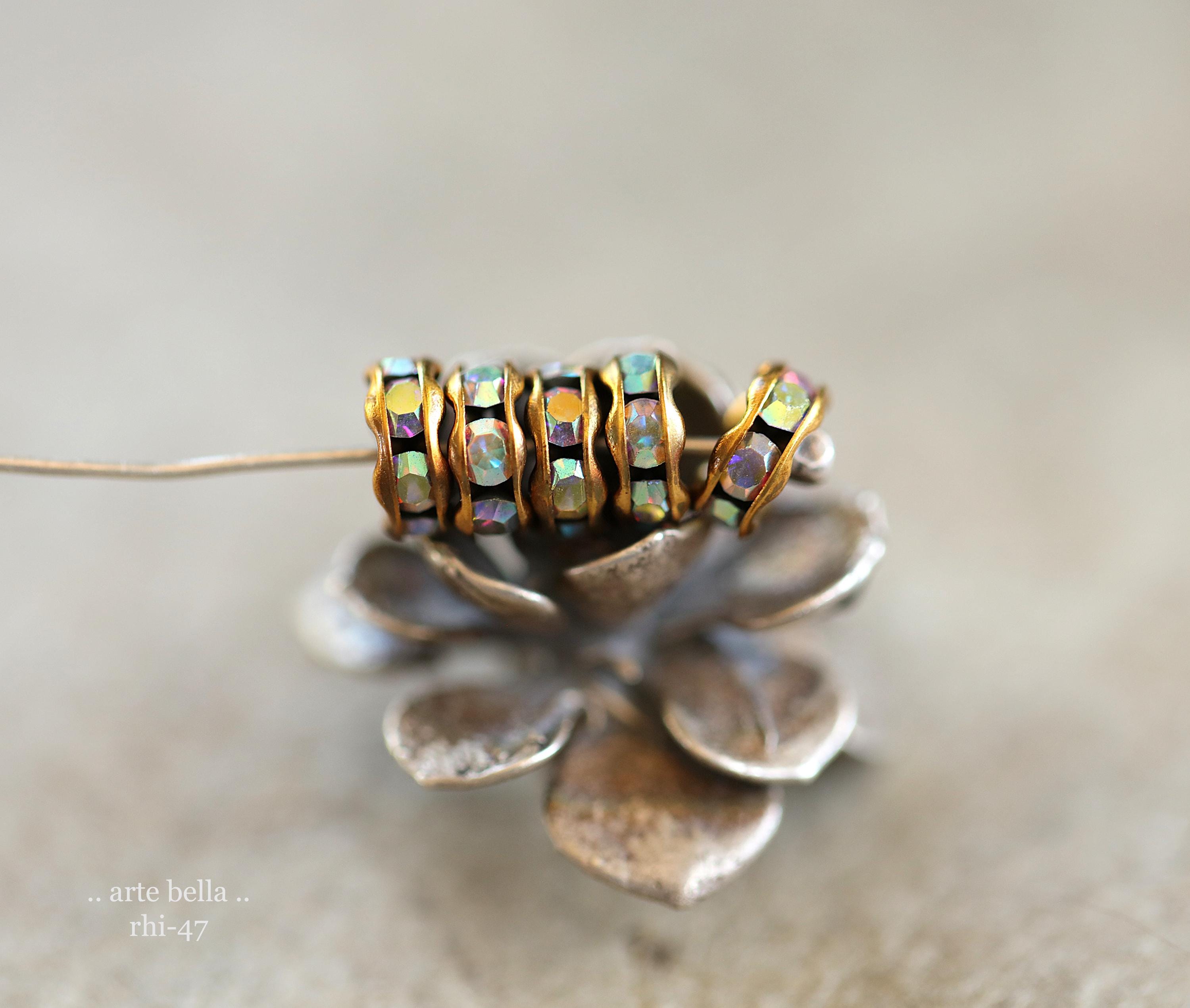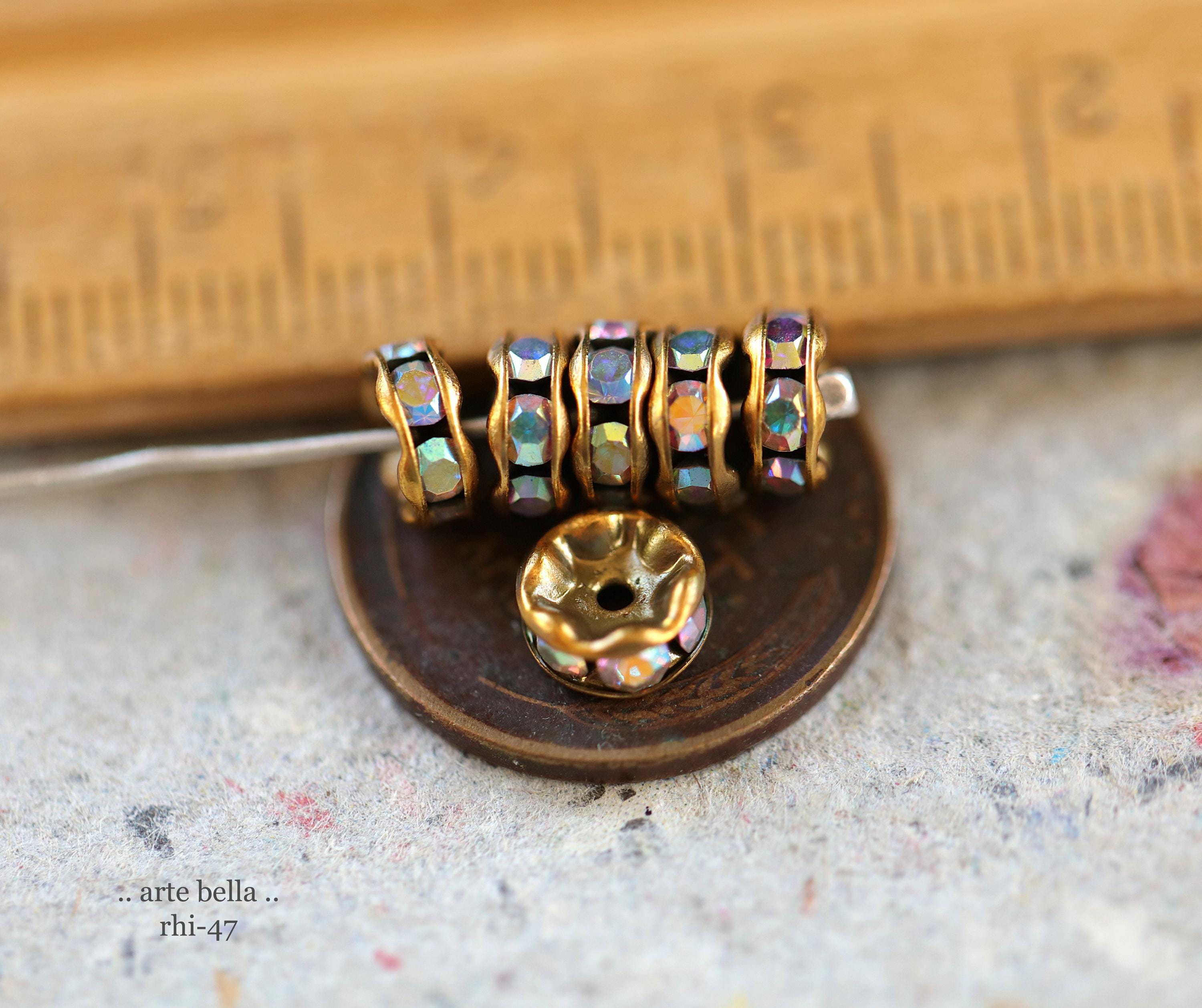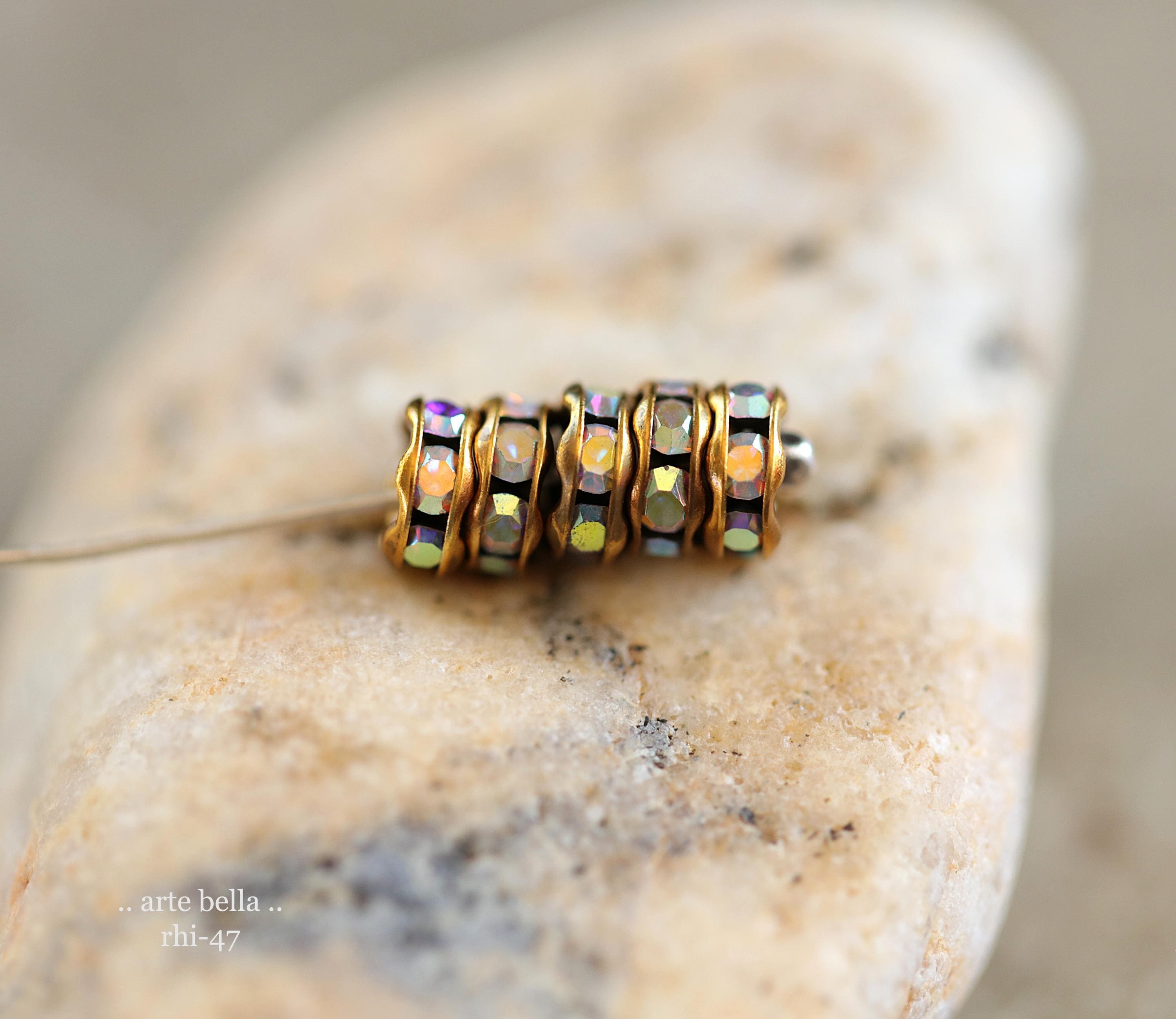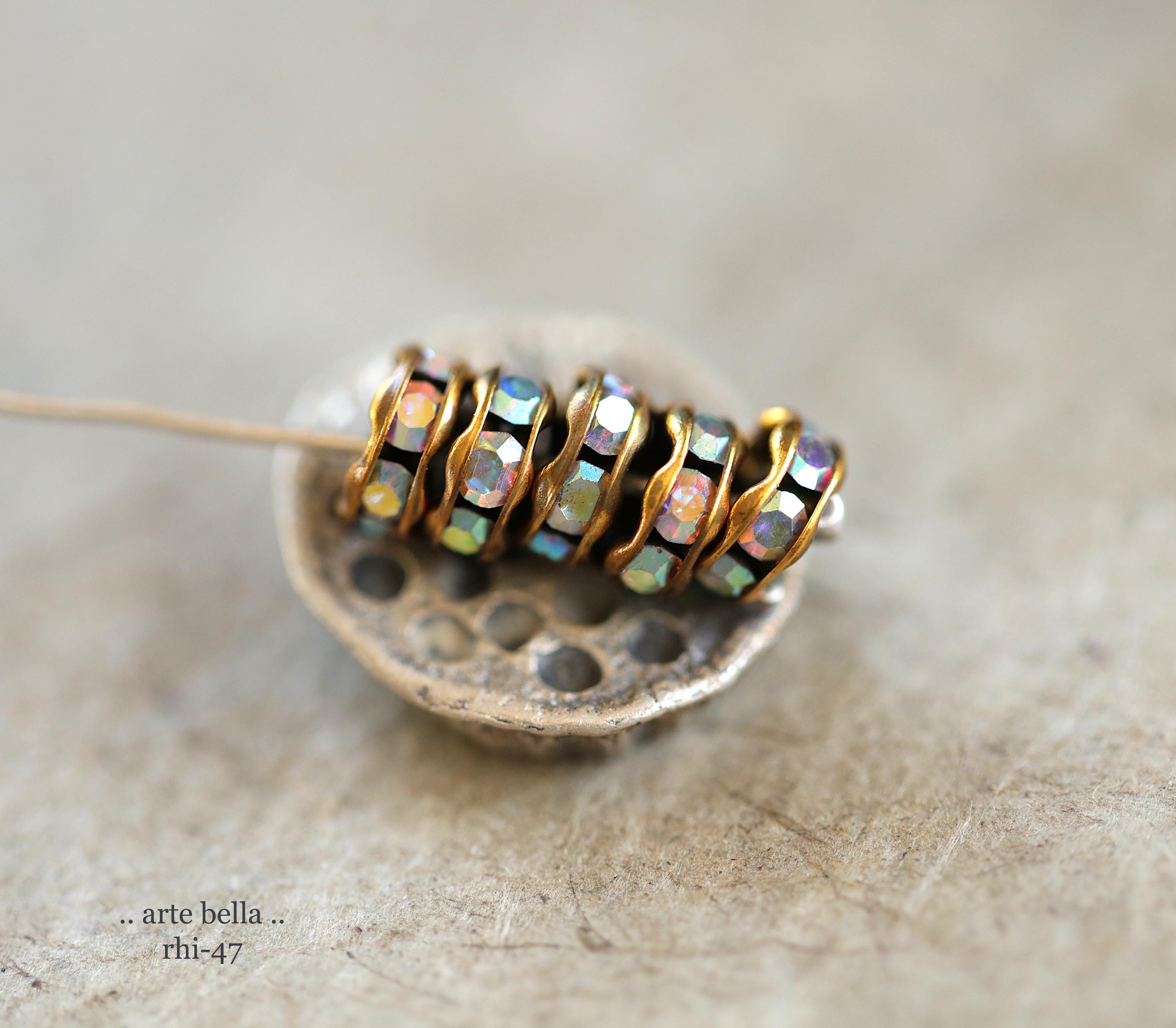 NEW .. 12 Premium Czech 6mm Antique Brass Metal AB Crystal Rhinestone Rondelles (rhi-47/12) .. jewelry making supplies