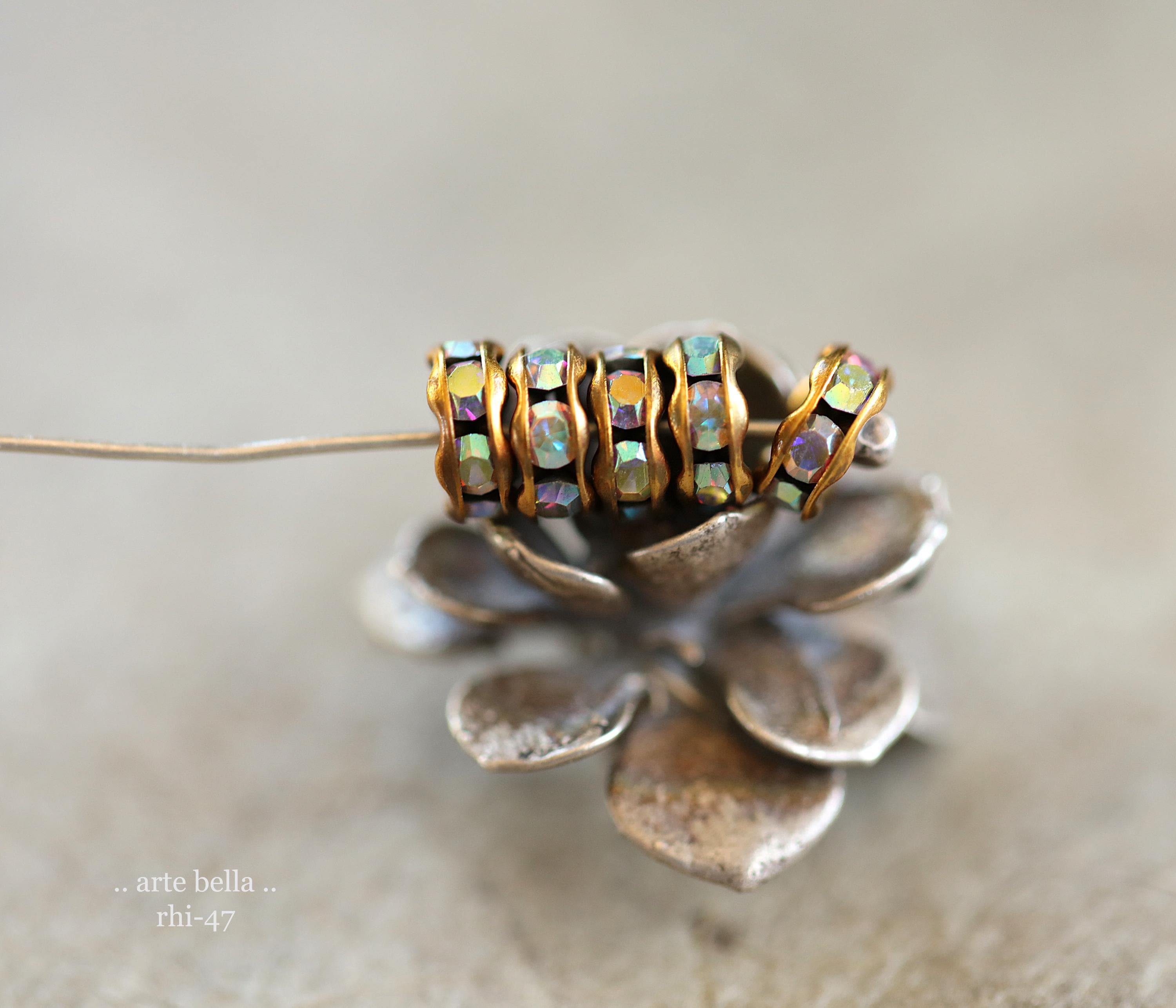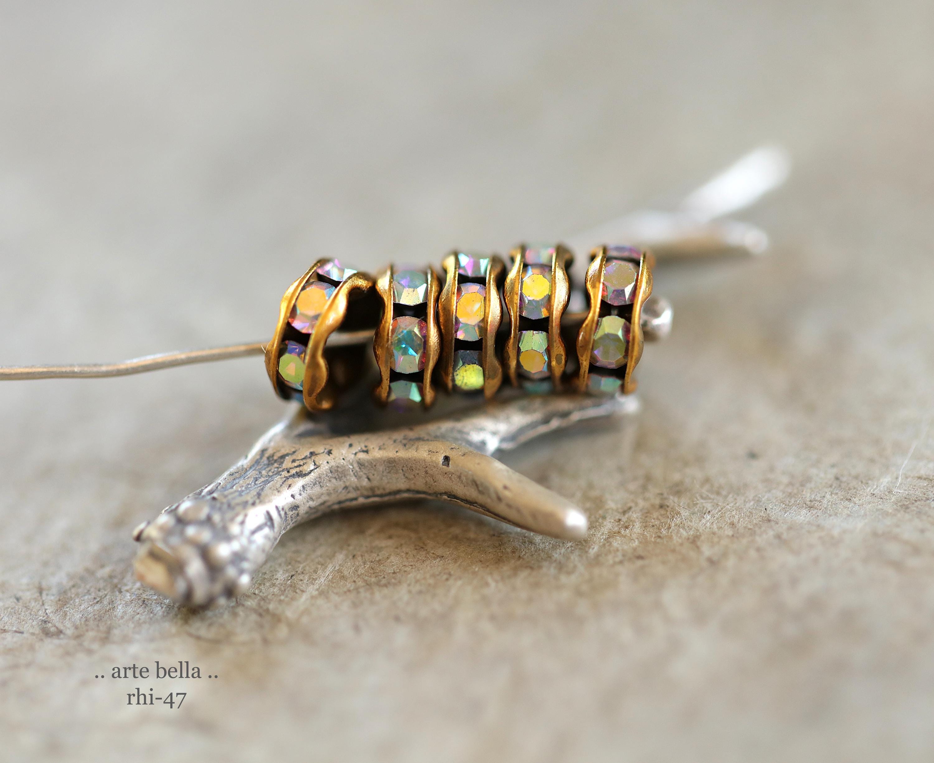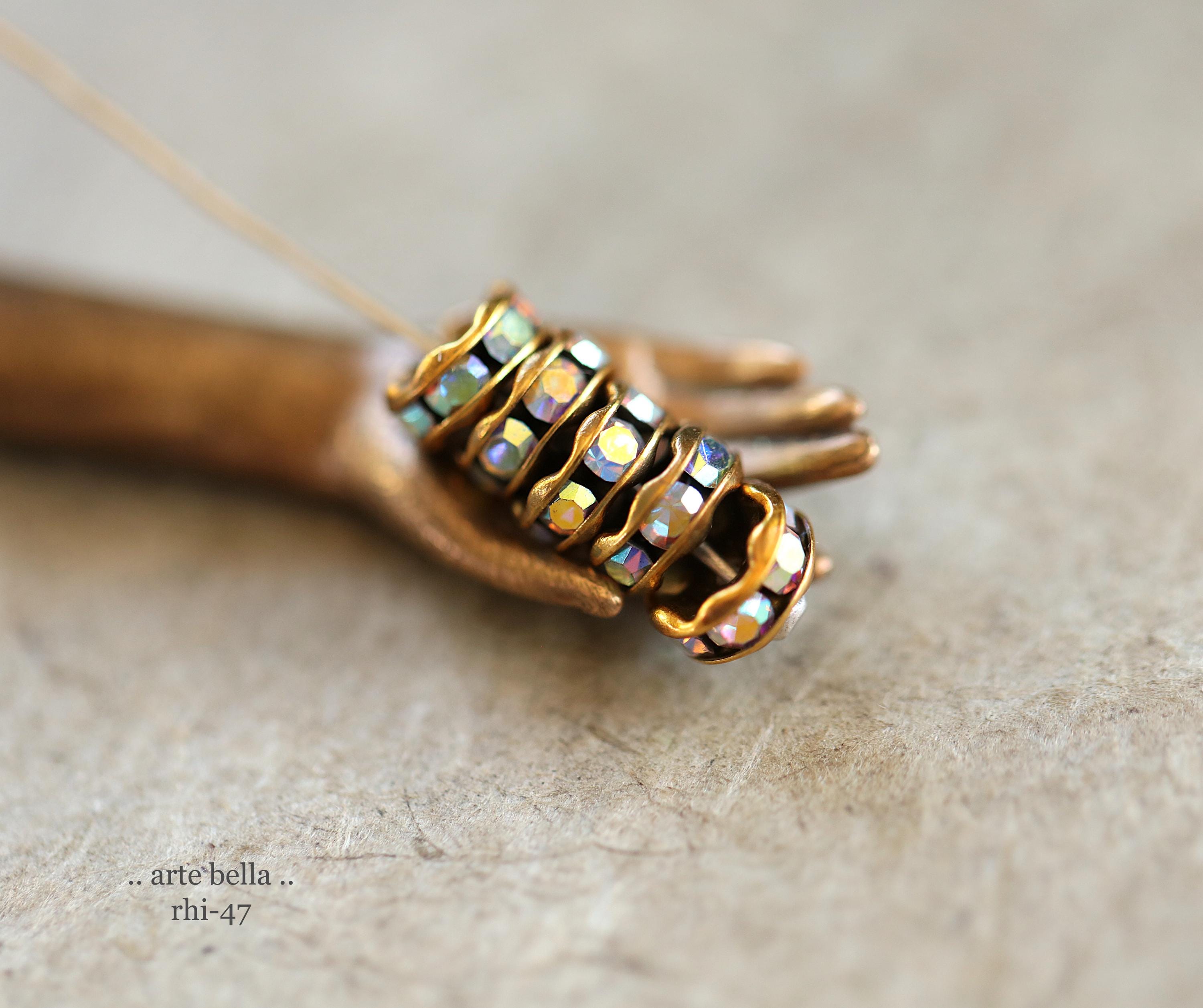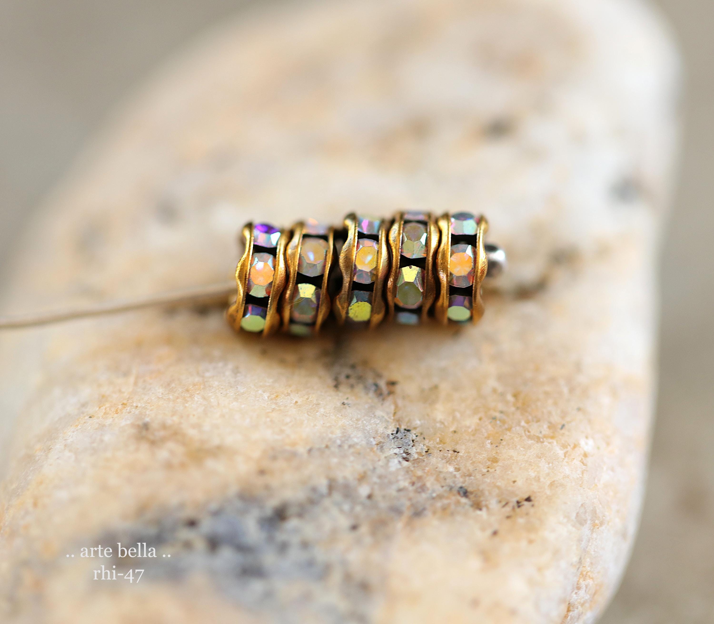 NEW .. 12 Premium Czech 6mm Antique Brass Metal AB Crystal Rhinestone Rondelles (rhi-47/12) .. jewelry making supplies