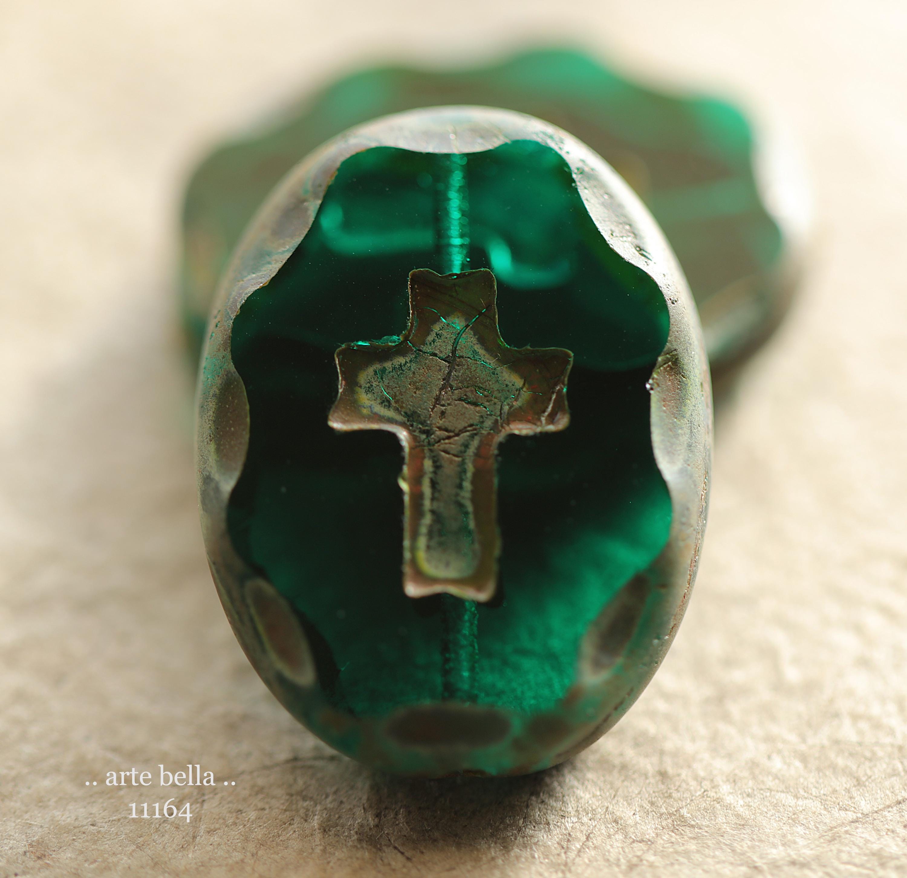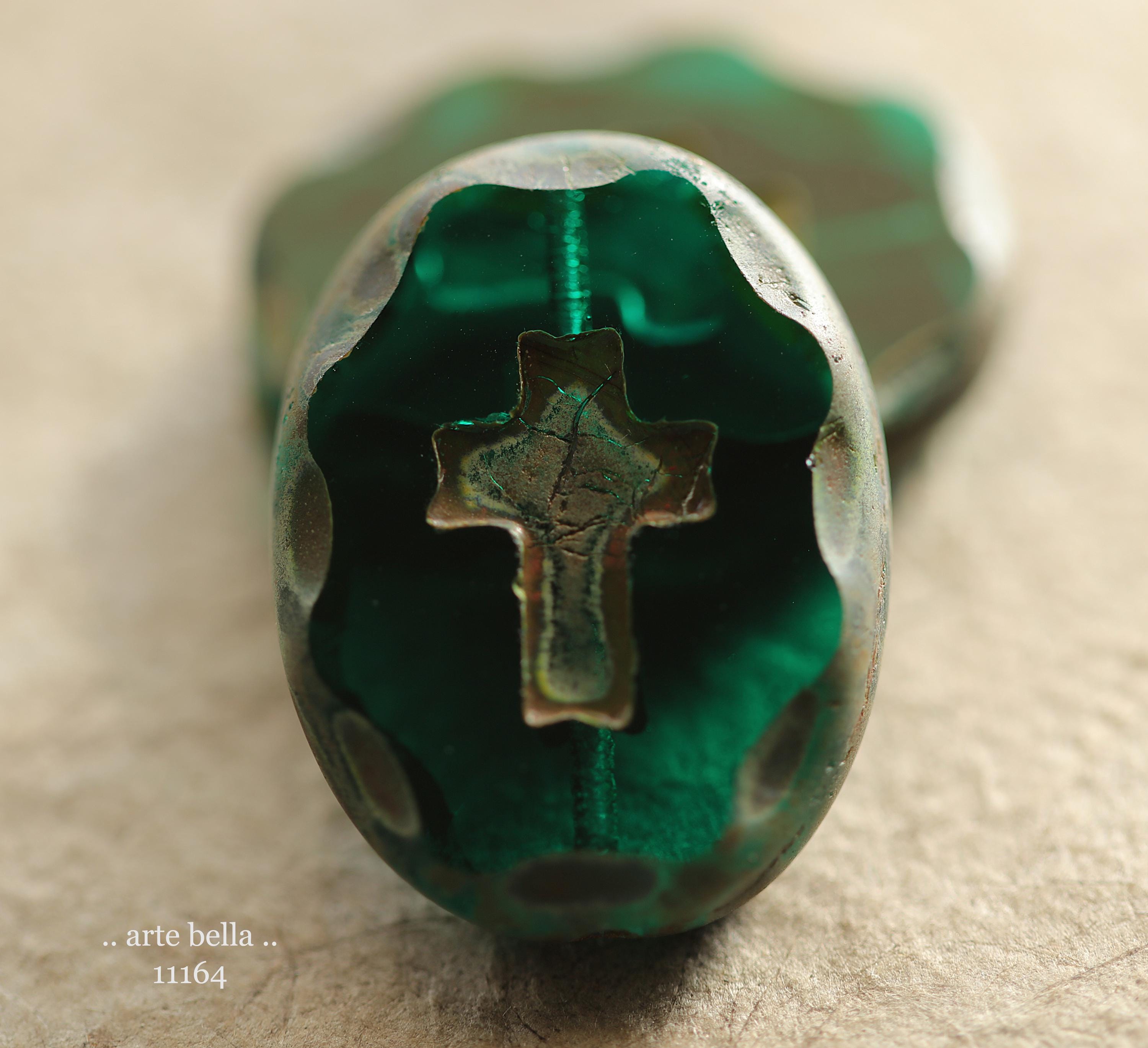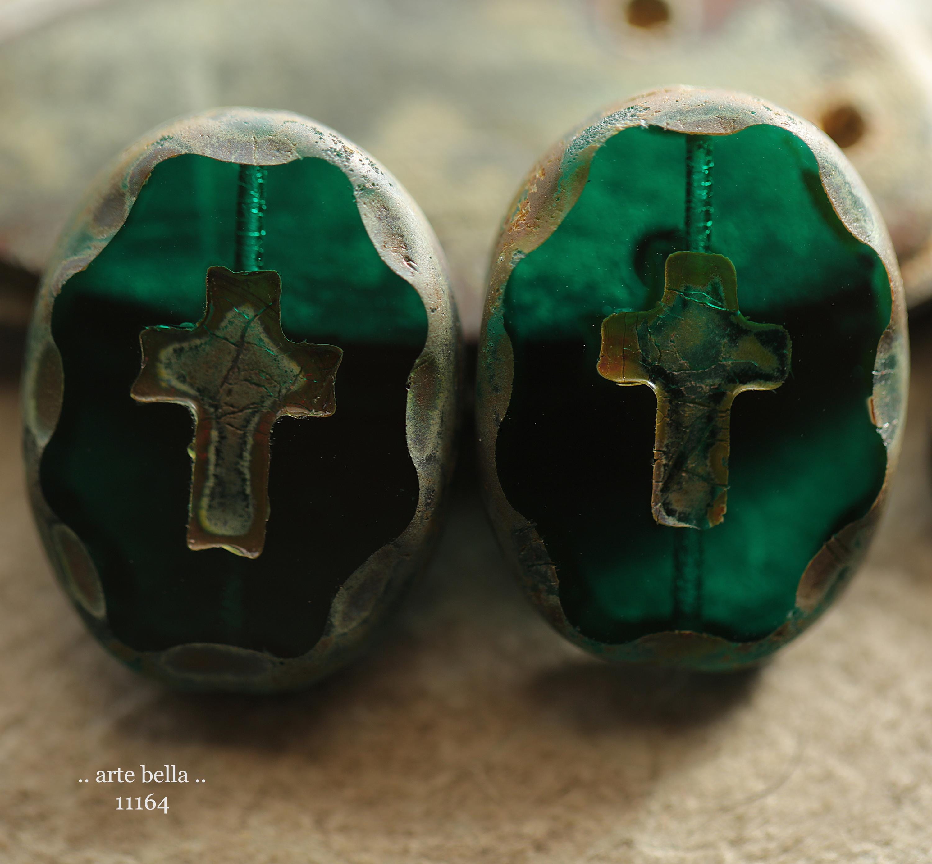 New .. DEEP OCEAN CROSSES No. 1 .. 2 Premium Matte Picasso Czech Glass Oval Cross Bead Mix 25x19mm (11164-2) .. jewelry making supplies