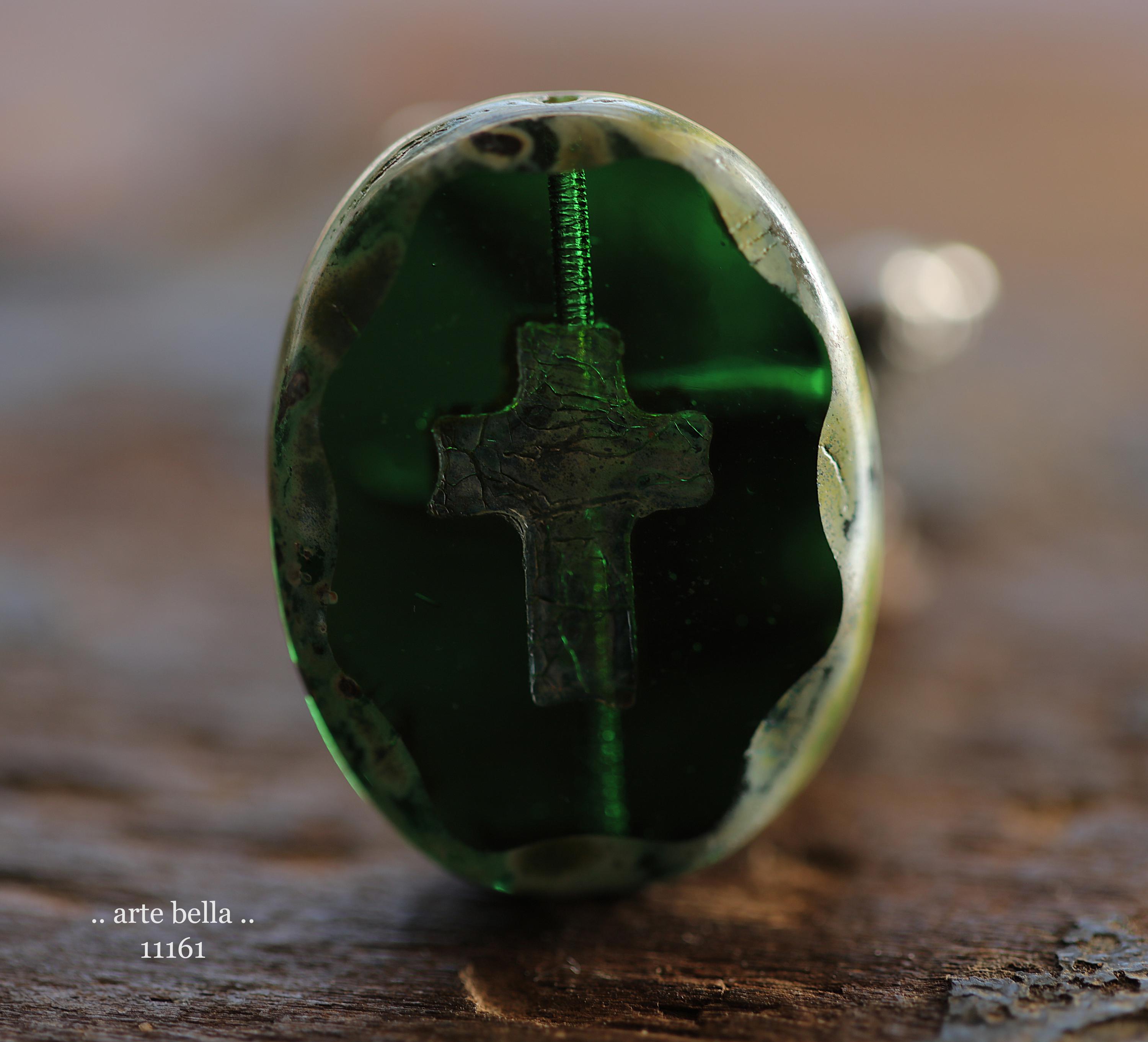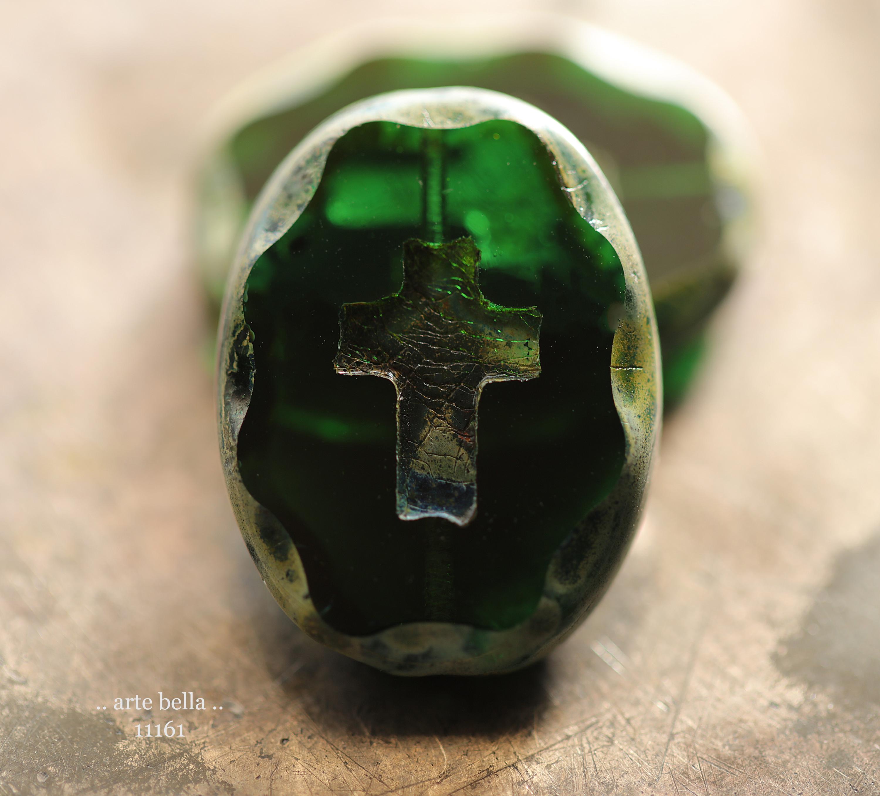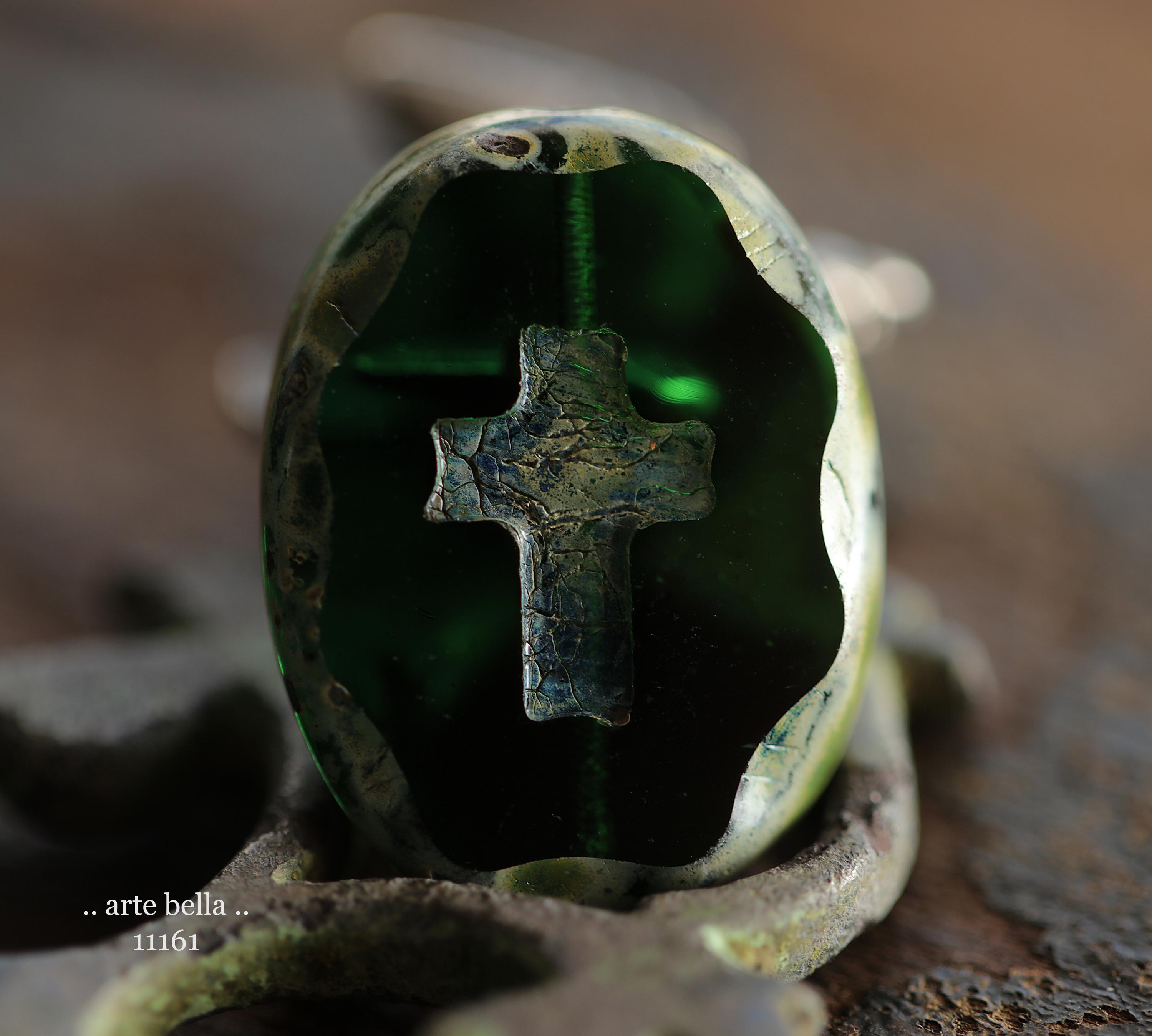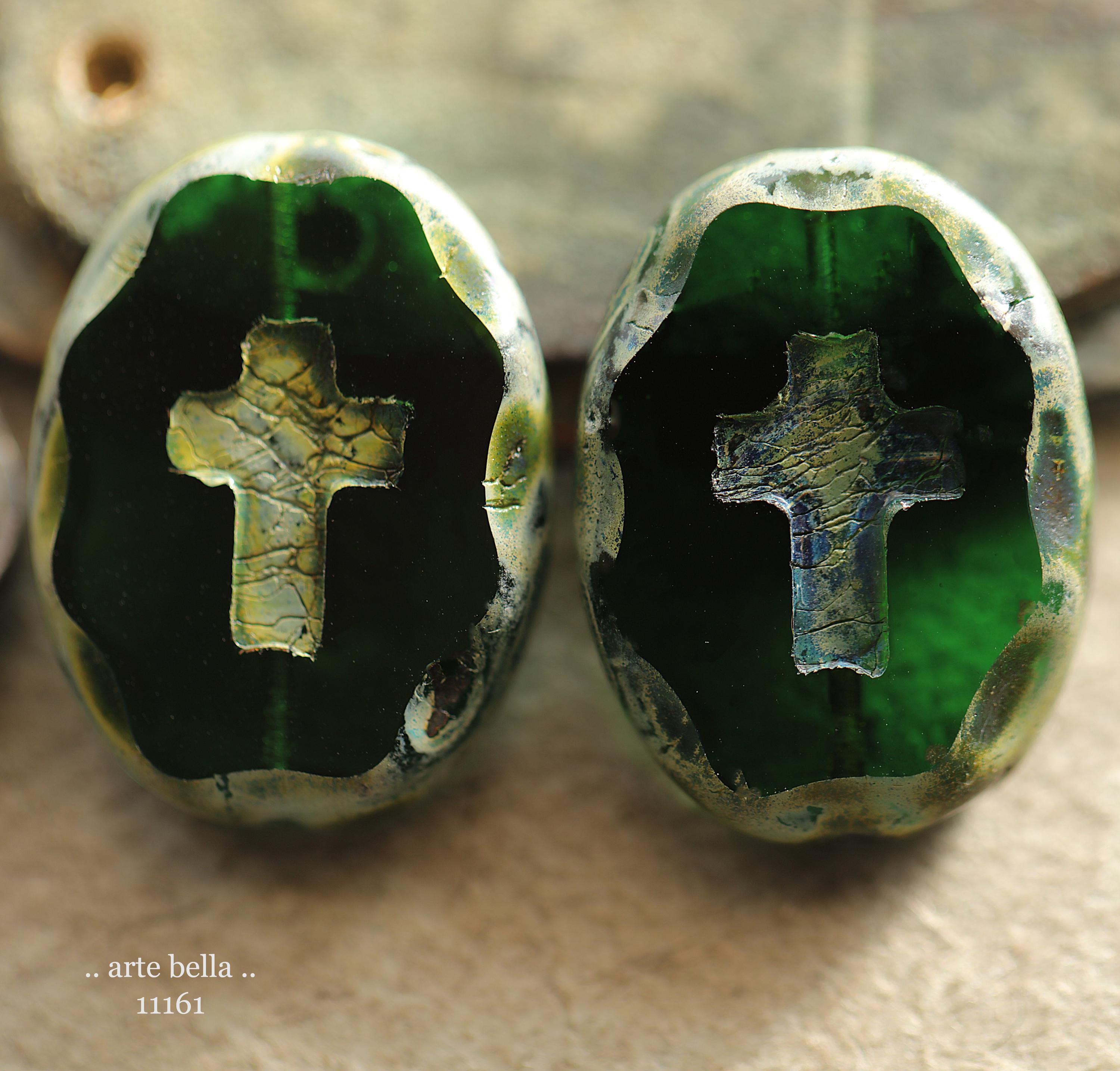 New .. EARTHY FOREST CROSSES .. 2 Premium Picasso Czech Glass Oval Cross Bead Mix 25x19mm (11161-2) .. jewelry making supplies